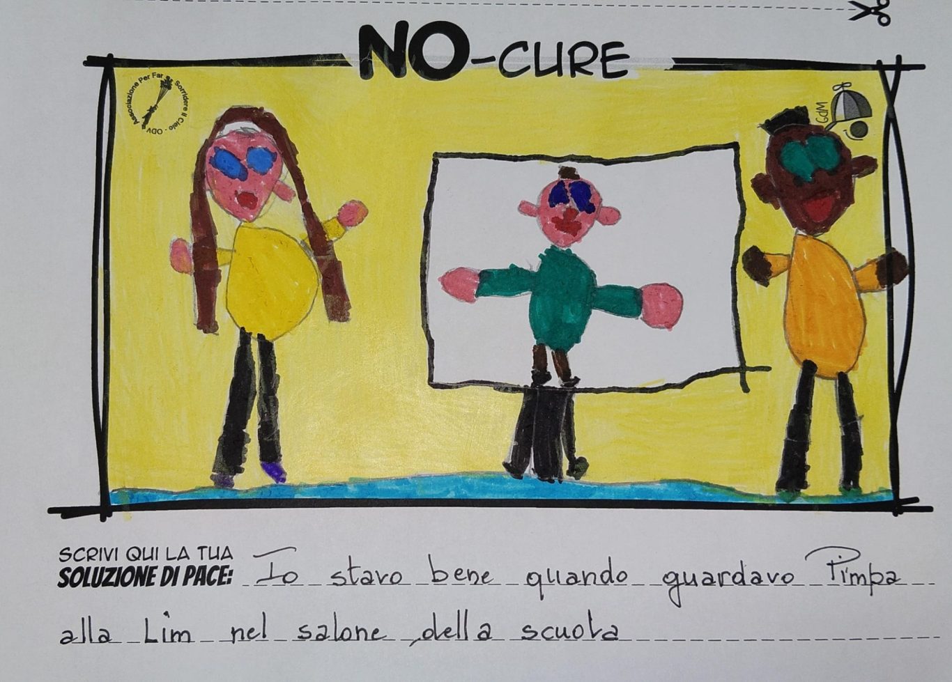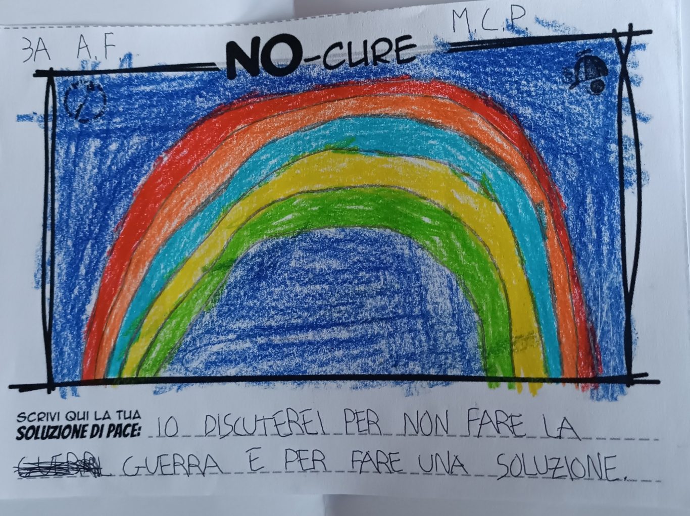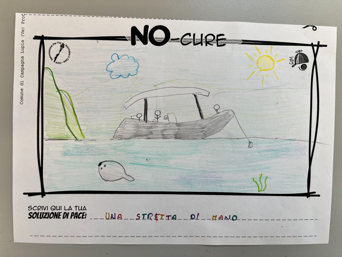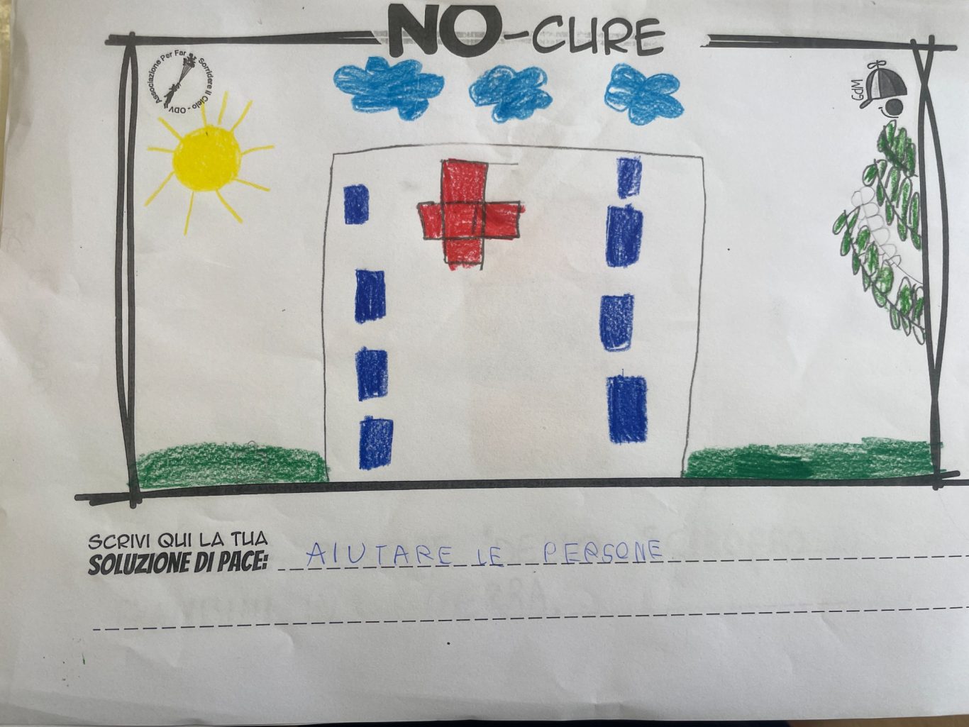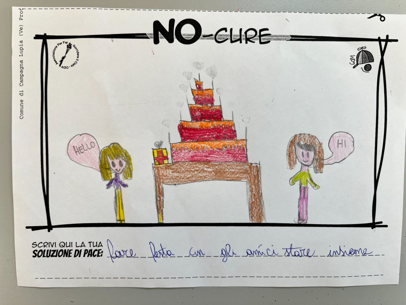 L’opera di sensibilizzazione si si esprime concretamente con la creazione di un DISEGNO DELLA MERAVIGLIA che andrà ad aiutare una delle 12 fatiche. Allo stesso modo chiederemo a tutti i partecipanti di andare a scrivere una “Soluzione di Pace” che possa aiutare anch’essa una delle 12 fatiche dei Bambini della guerra.