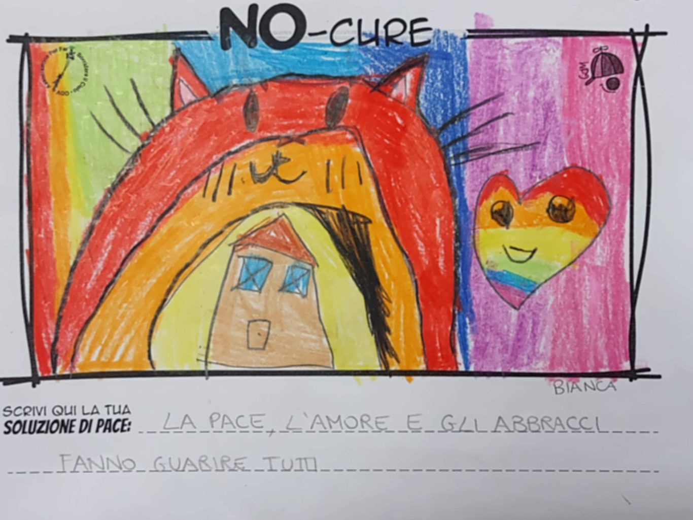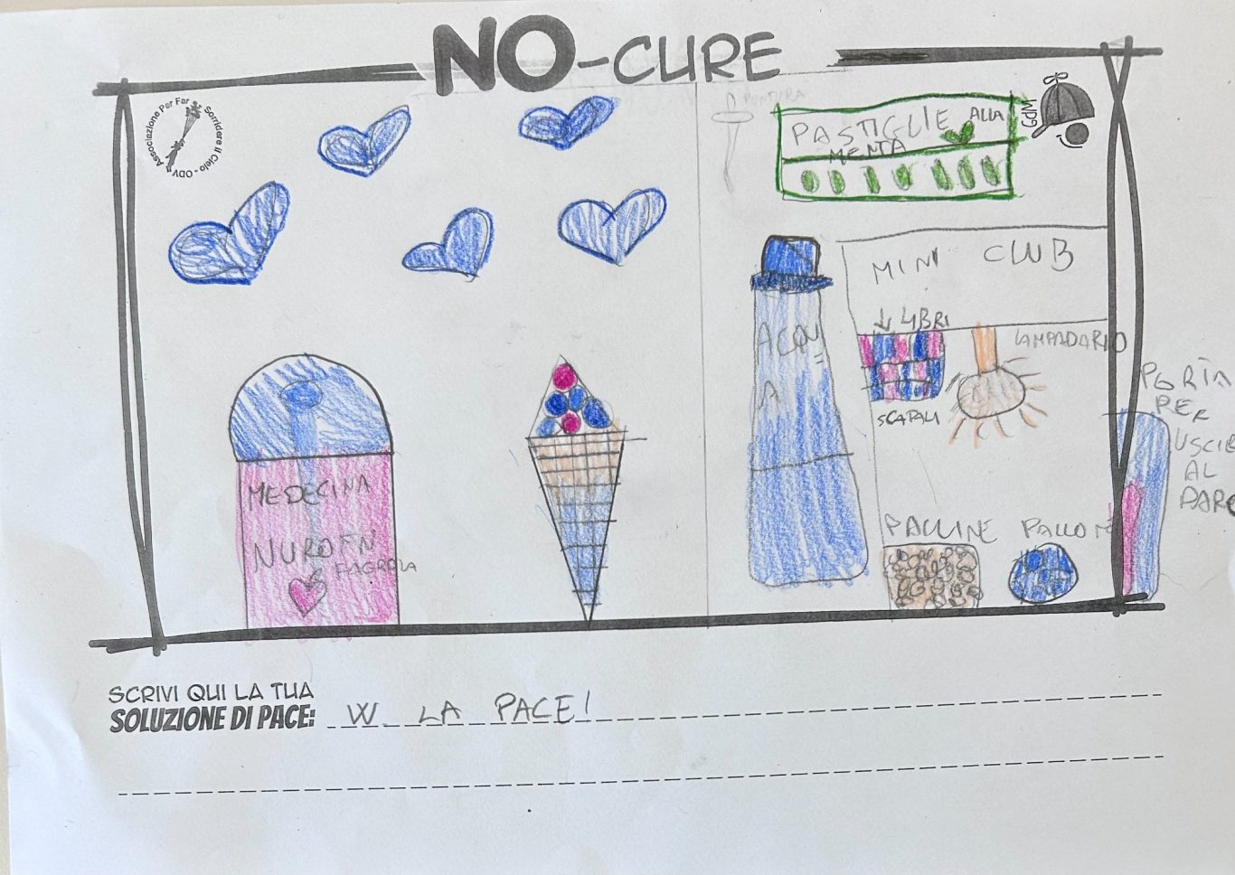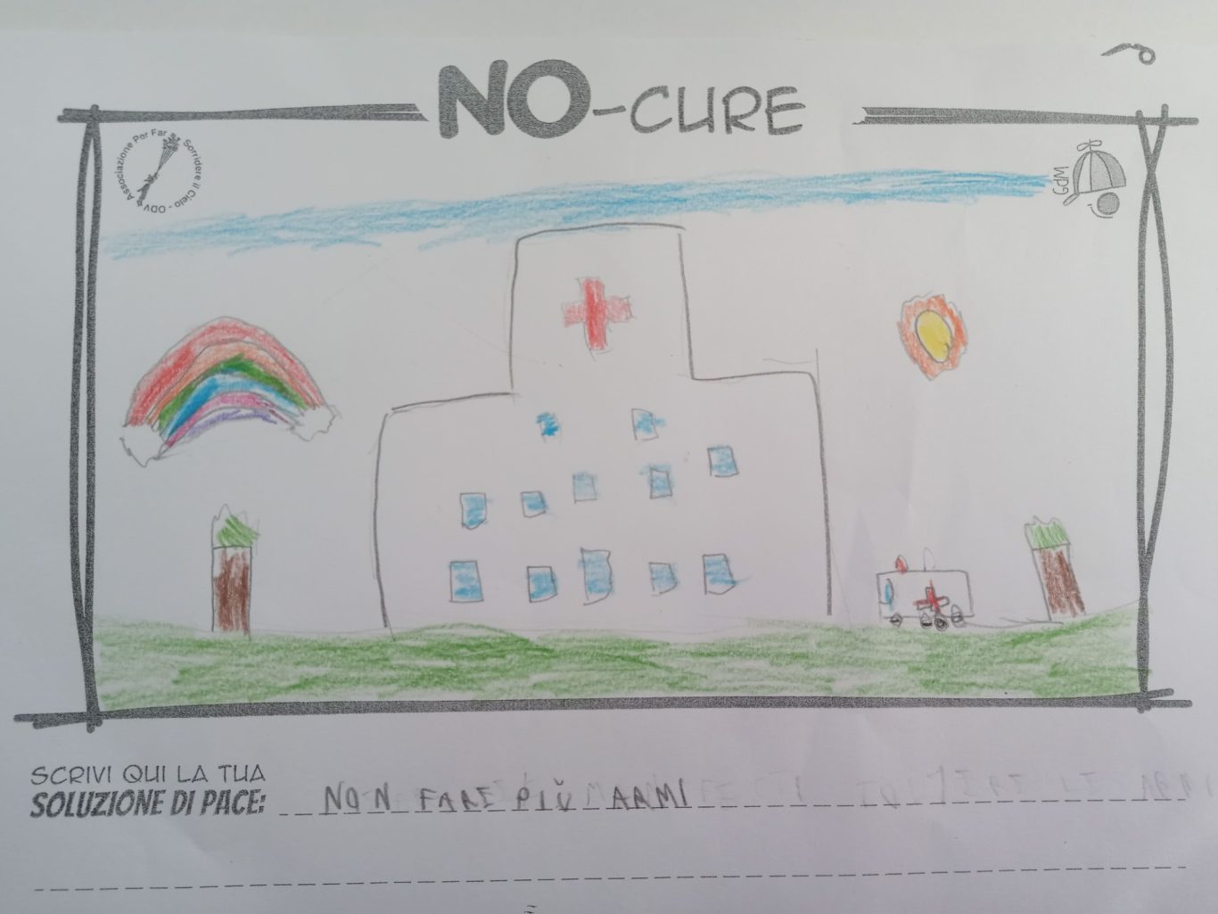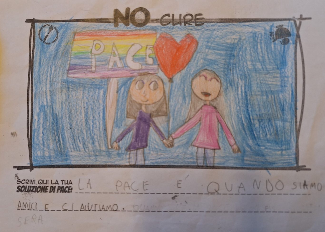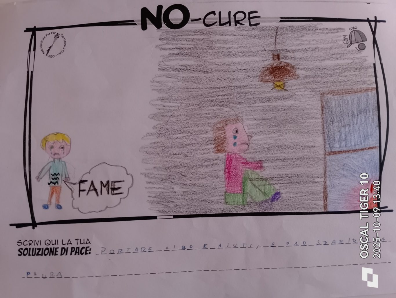 L’opera di sensibilizzazione si si esprime concretamente con la creazione di un DISEGNO DELLA MERAVIGLIA che andrà ad aiutare una delle 12 fatiche. Allo stesso modo chiederemo a tutti i partecipanti di andare a scrivere una “Soluzione di Pace” che possa aiutare anch’essa una delle 12 fatiche dei Bambini della guerra.
