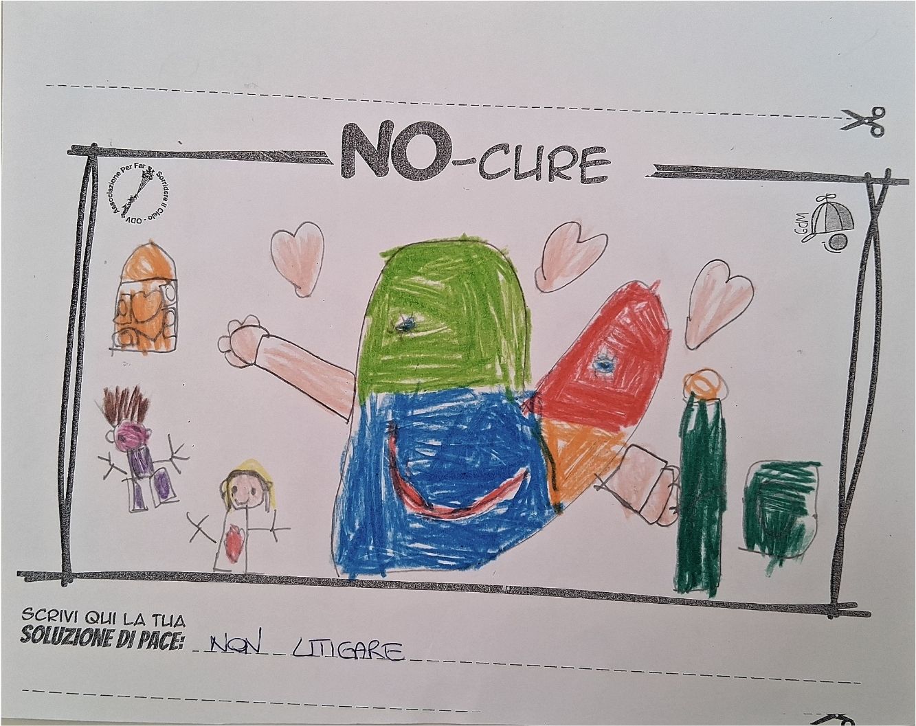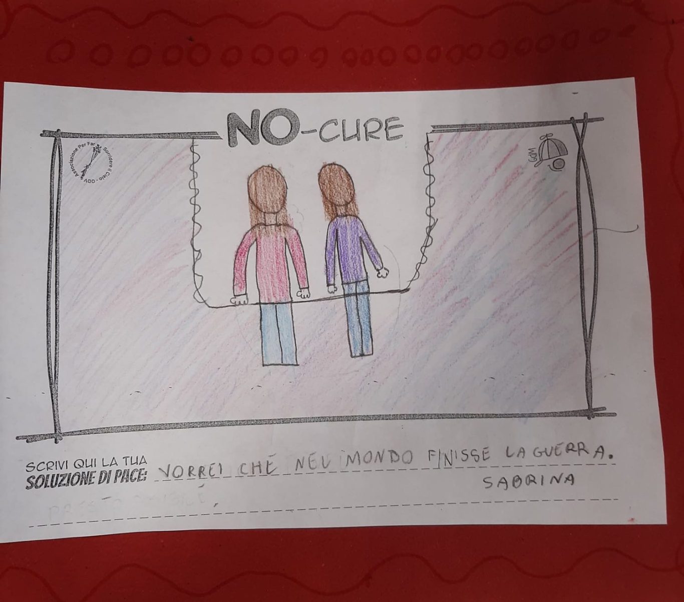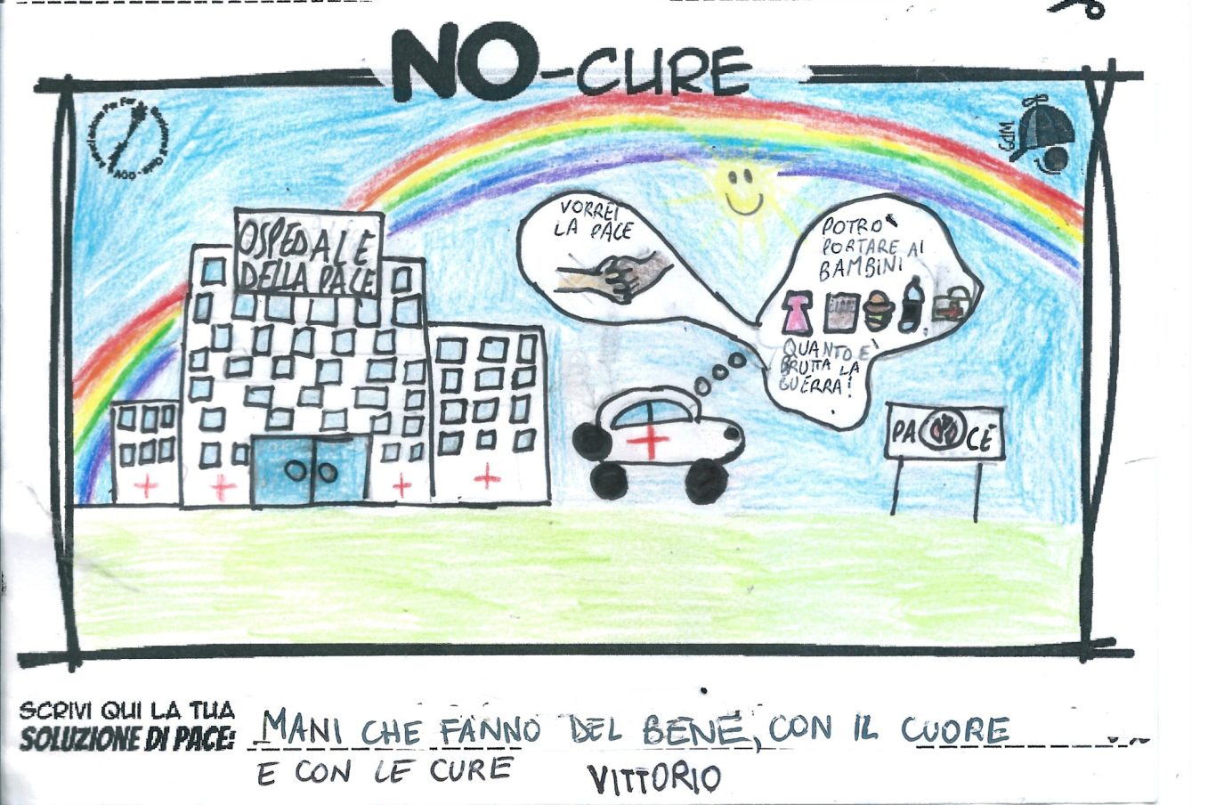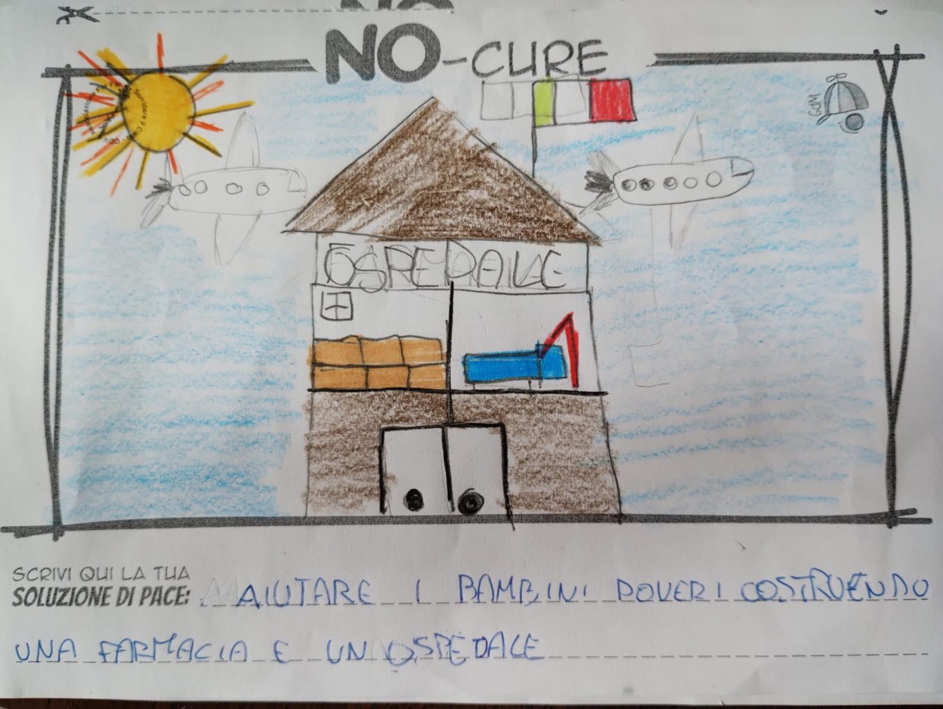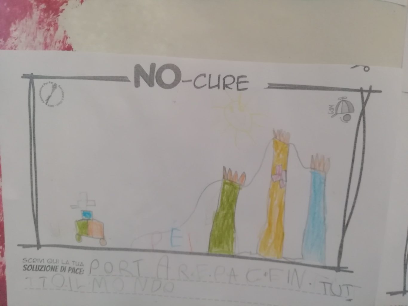L’opera di sensibilizzazione si si esprime concretamente con la creazione di un DISEGNO DELLA MERAVIGLIA che andrà ad aiutare una delle 12 fatiche. Allo stesso modo chiederemo a tutti i partecipanti di andare a scrivere una “Soluzione di Pace” che possa aiutare anch’essa una delle 12 fatiche dei Bambini della guerra.