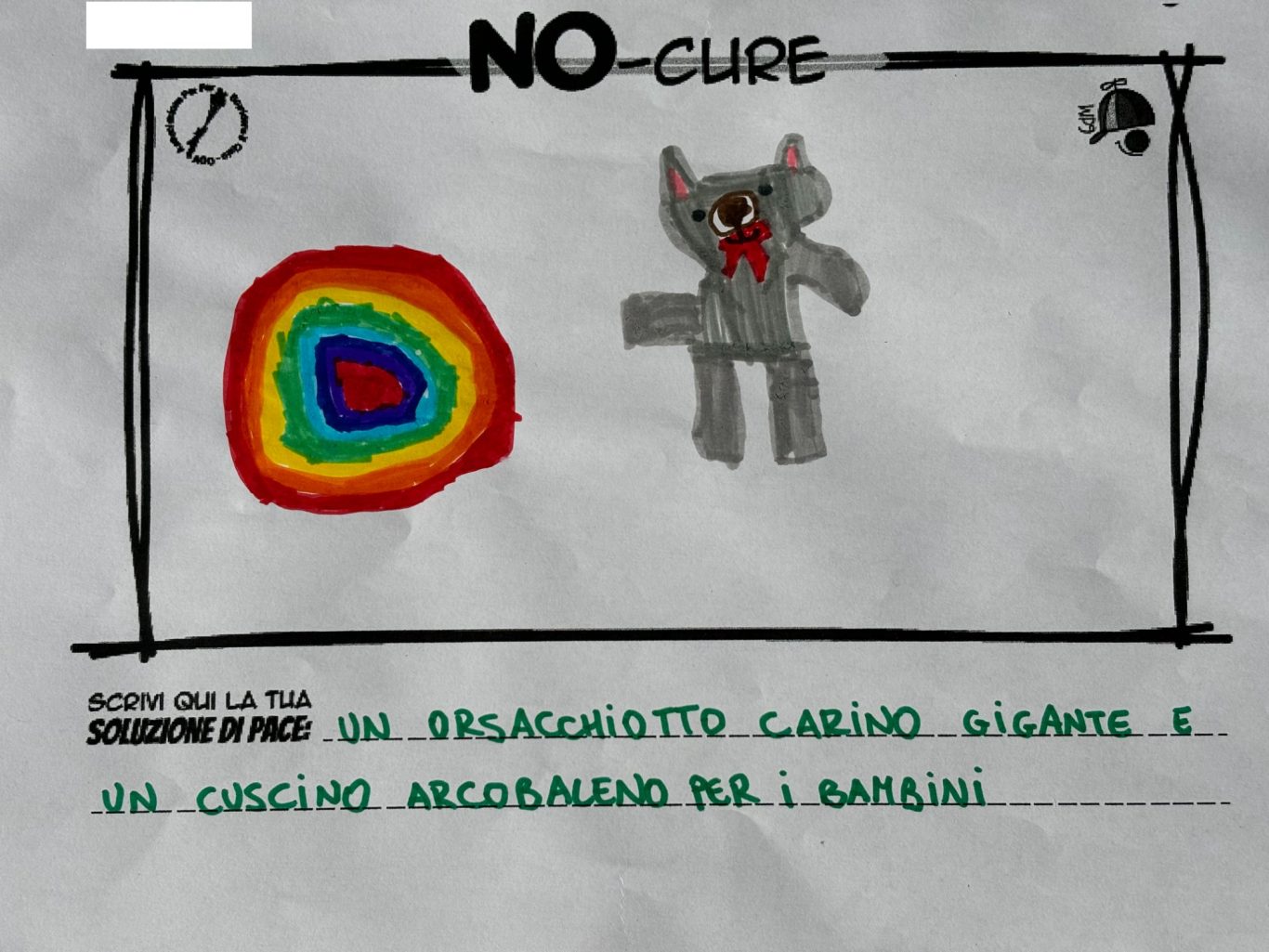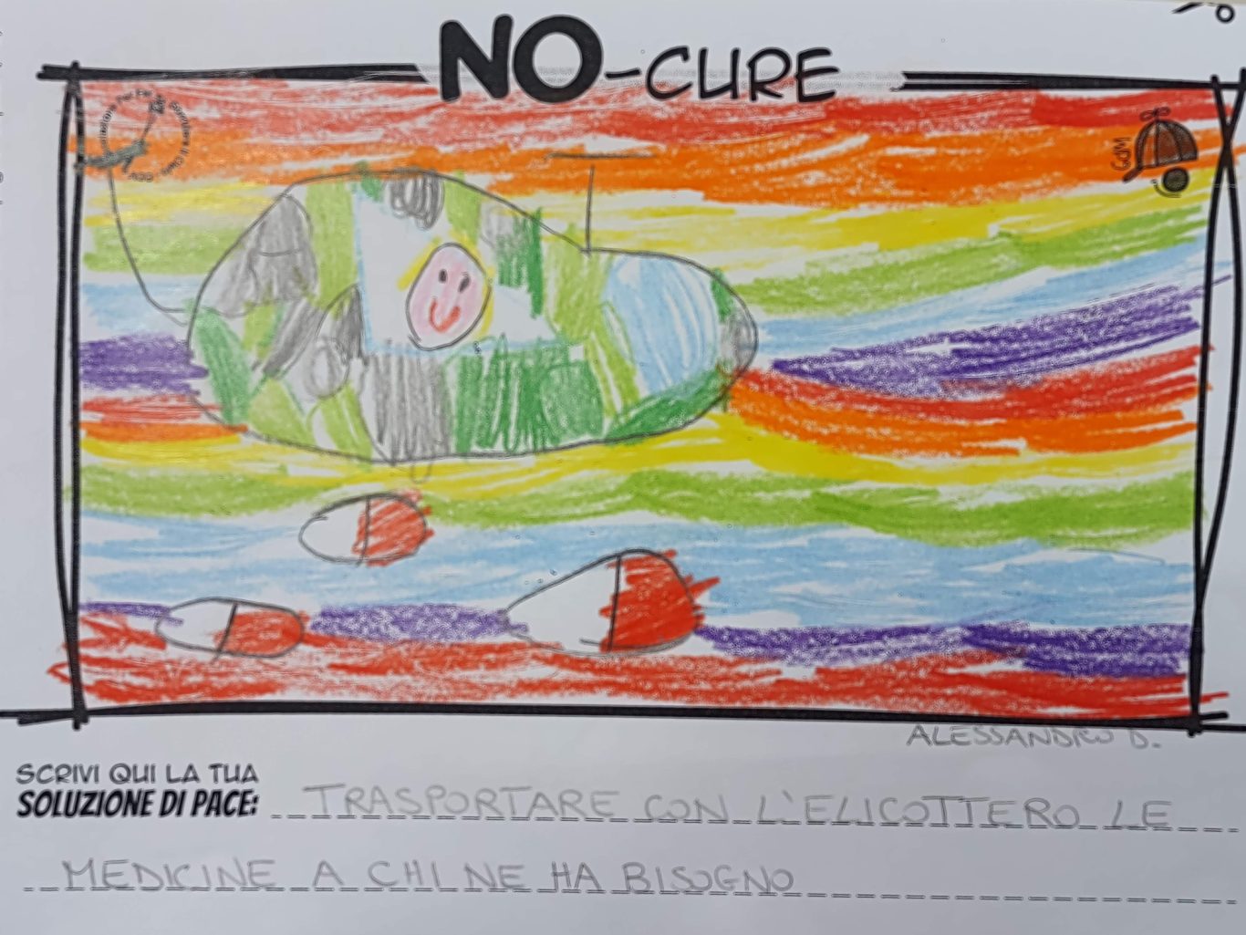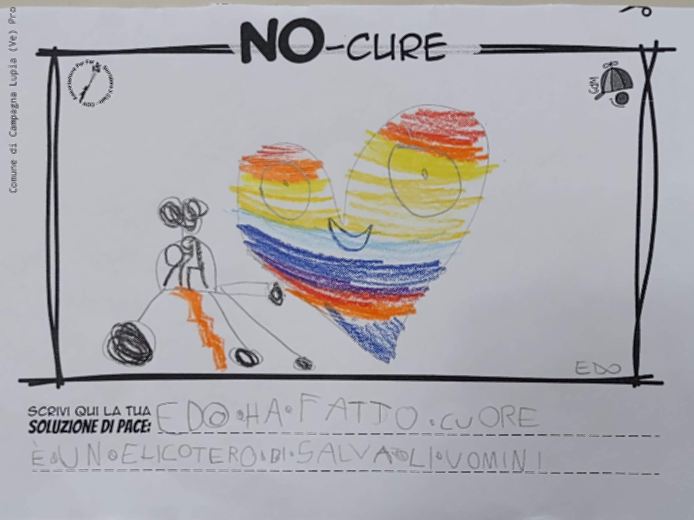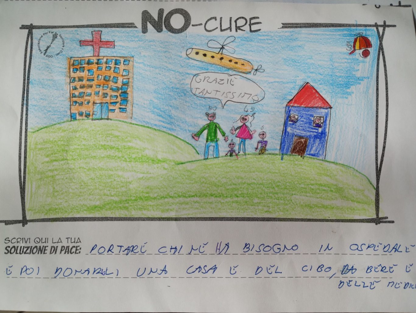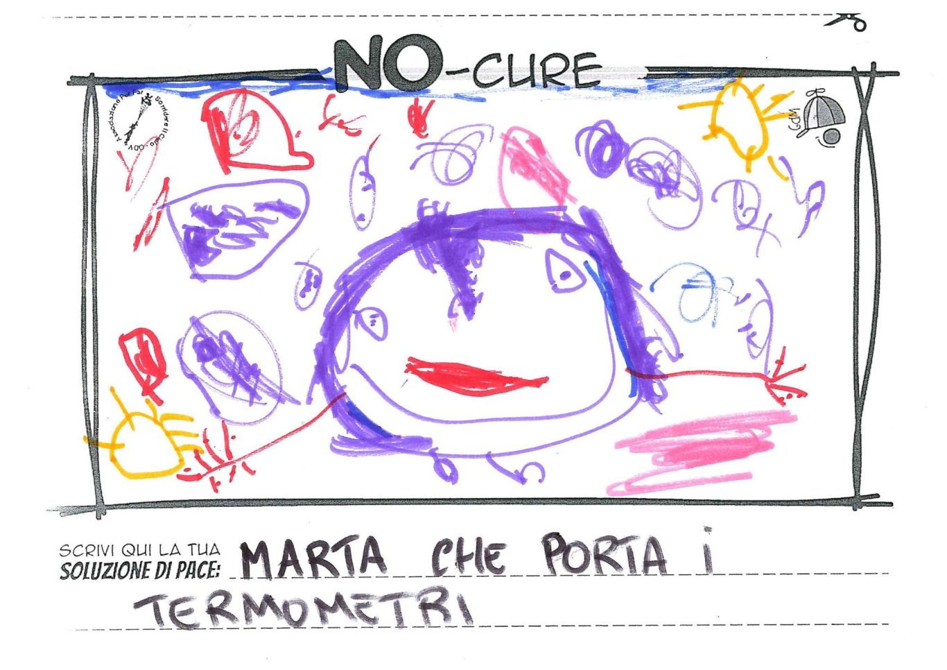 L’opera di sensibilizzazione si si esprime concretamente con la creazione di un DISEGNO DELLA MERAVIGLIA che andrà ad aiutare una delle 12 fatiche. Allo stesso modo chiederemo a tutti i partecipanti di andare a scrivere una “Soluzione di Pace” che possa aiutare anch’essa una delle 12 fatiche dei Bambini della guerra.