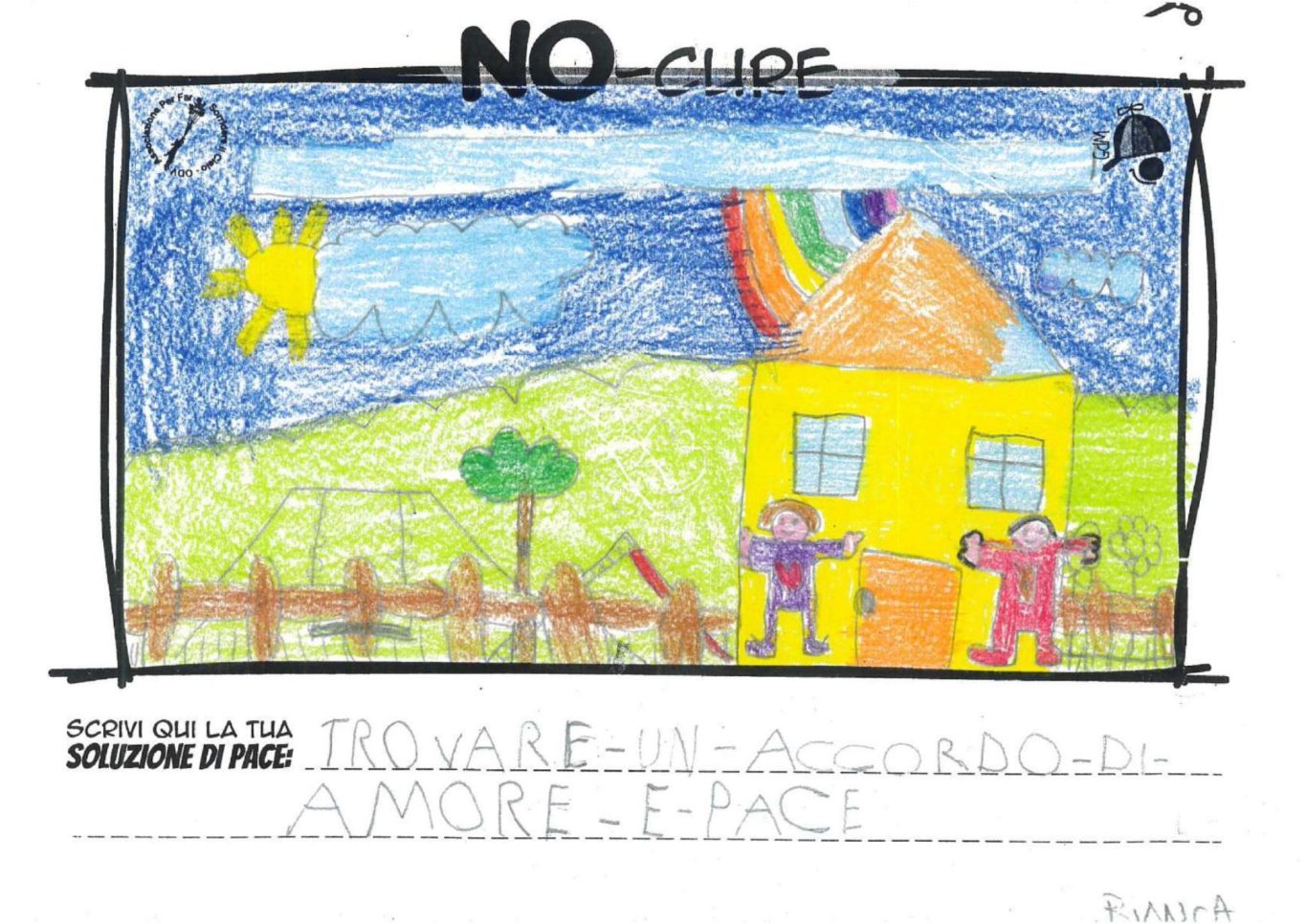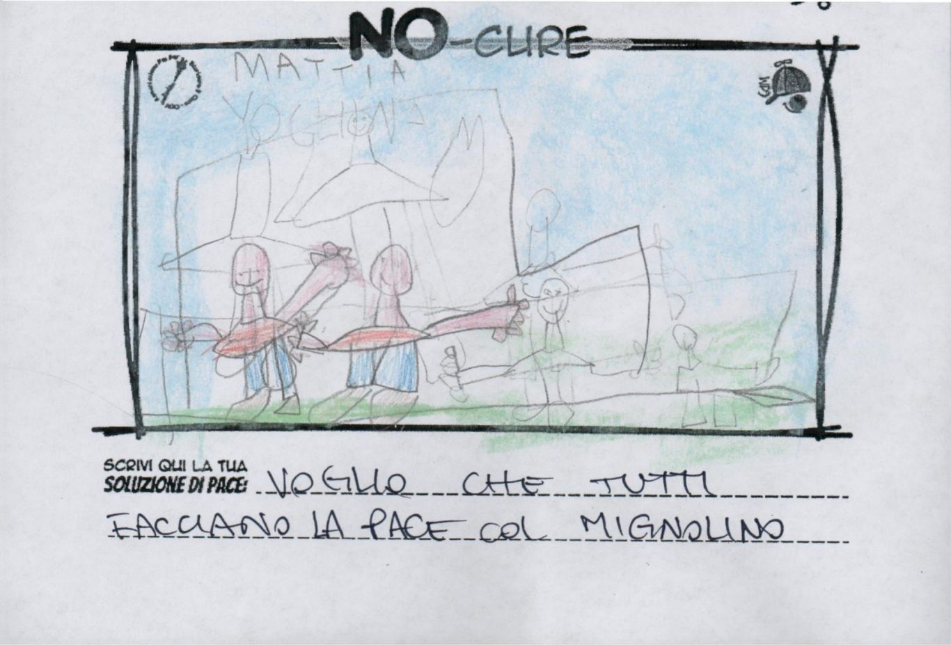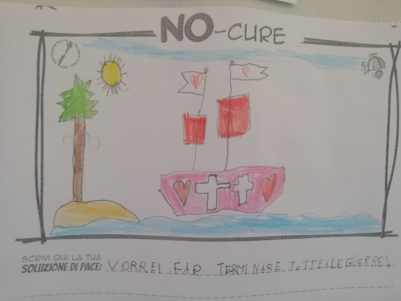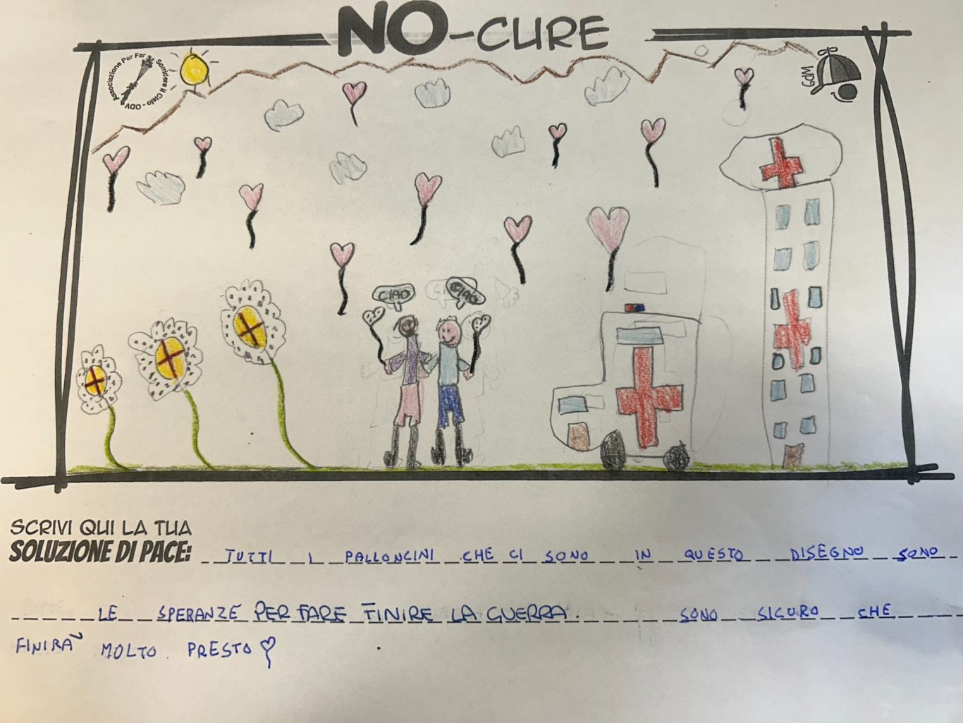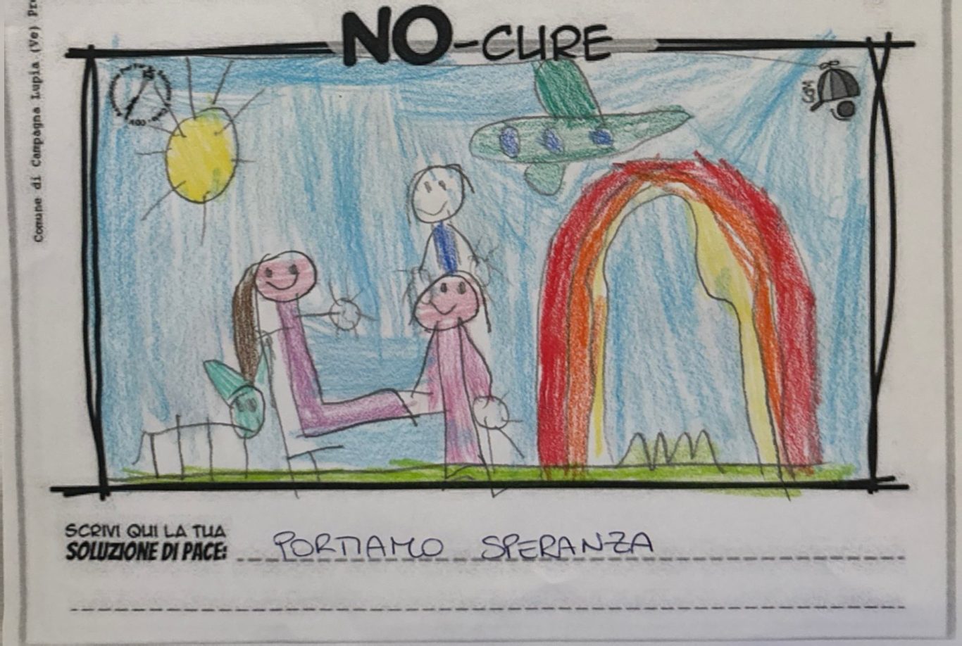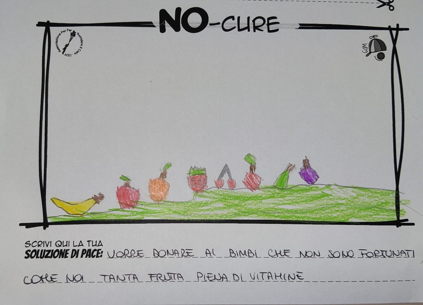 L’opera di sensibilizzazione si si esprime concretamente con la creazione di un DISEGNO DELLA MERAVIGLIA che andrà ad aiutare una delle 12 fatiche. Allo stesso modo chiederemo a tutti i partecipanti di andare a scrivere una “Soluzione di Pace” che possa aiutare anch’essa una delle 12 fatiche dei Bambini della guerra.