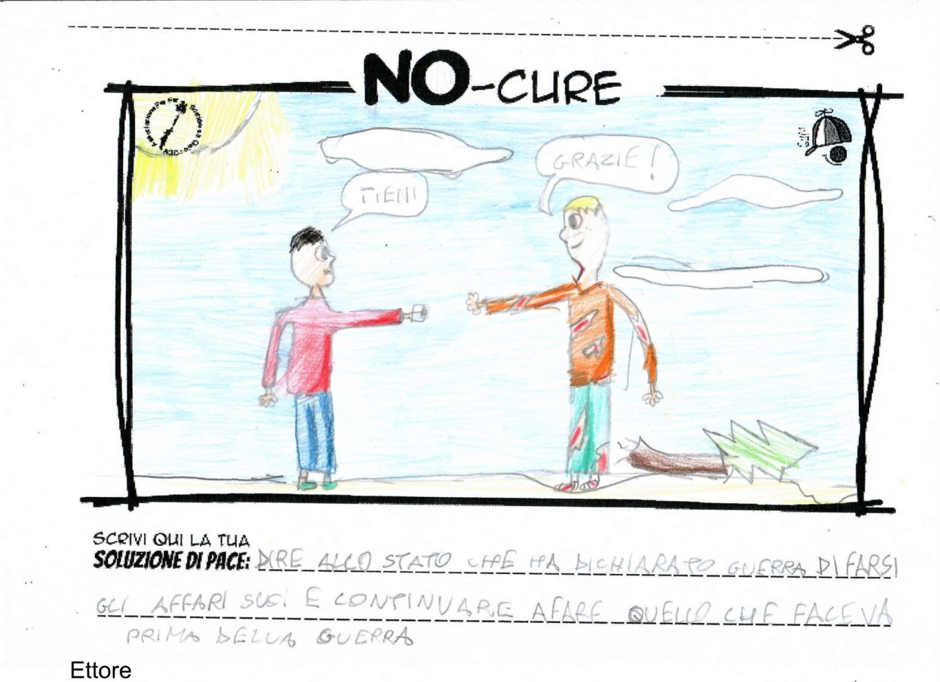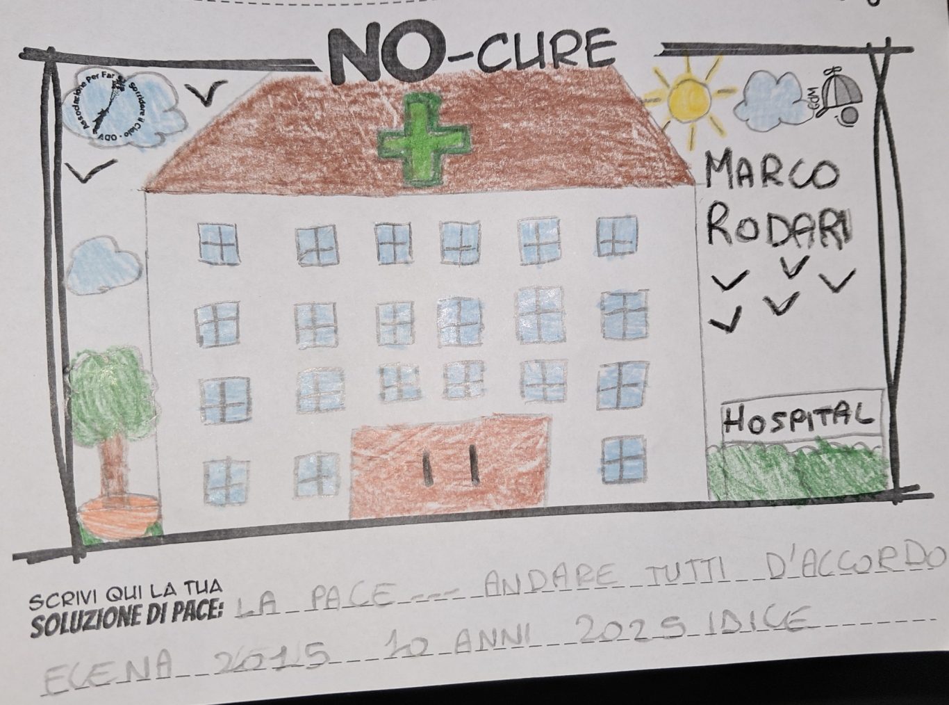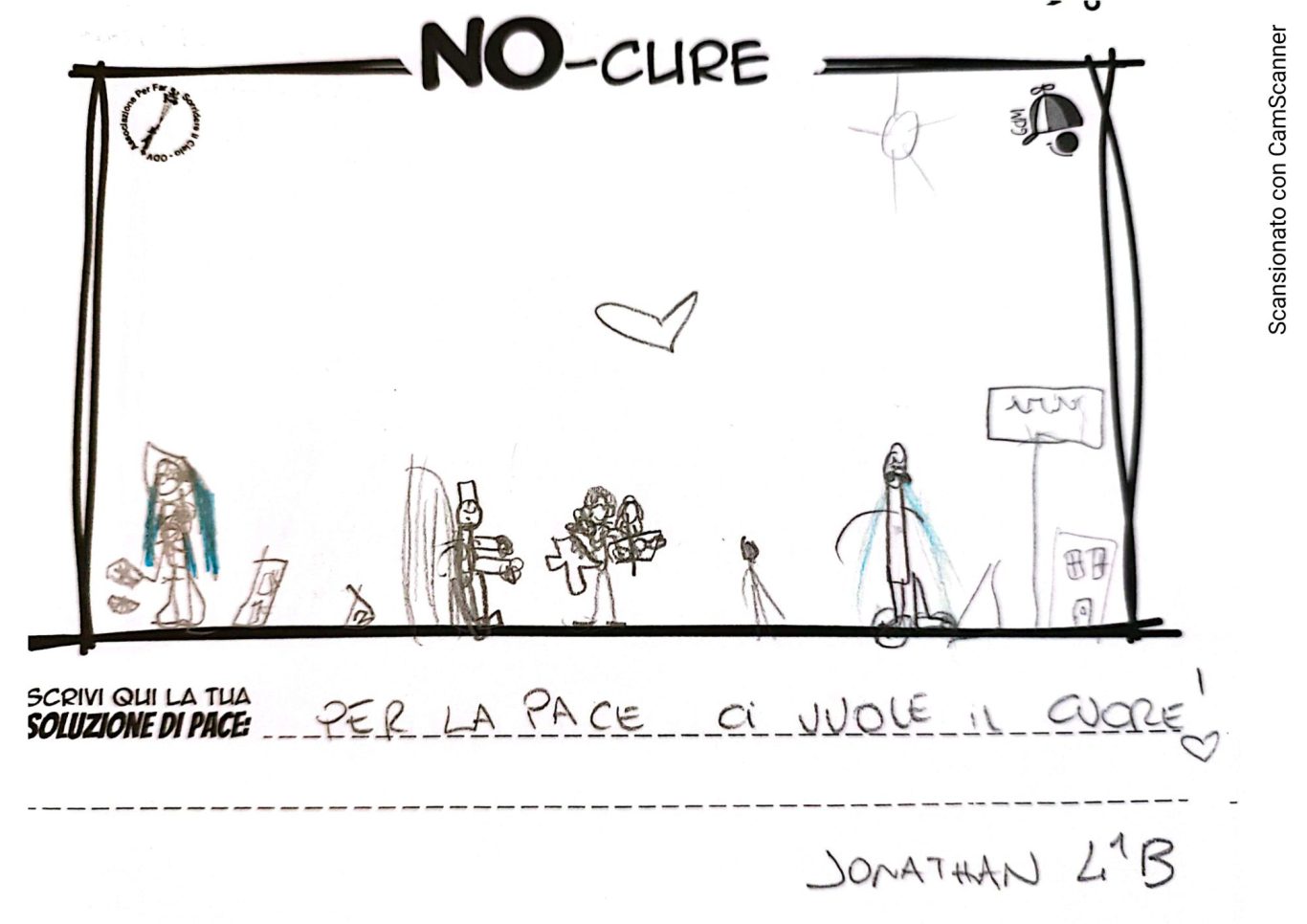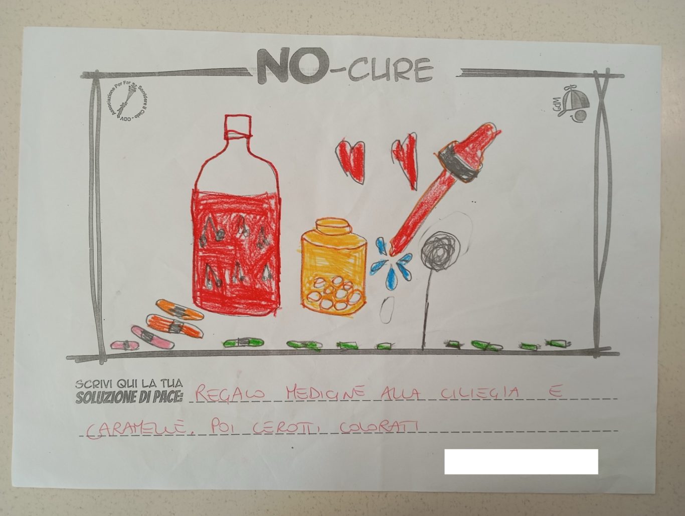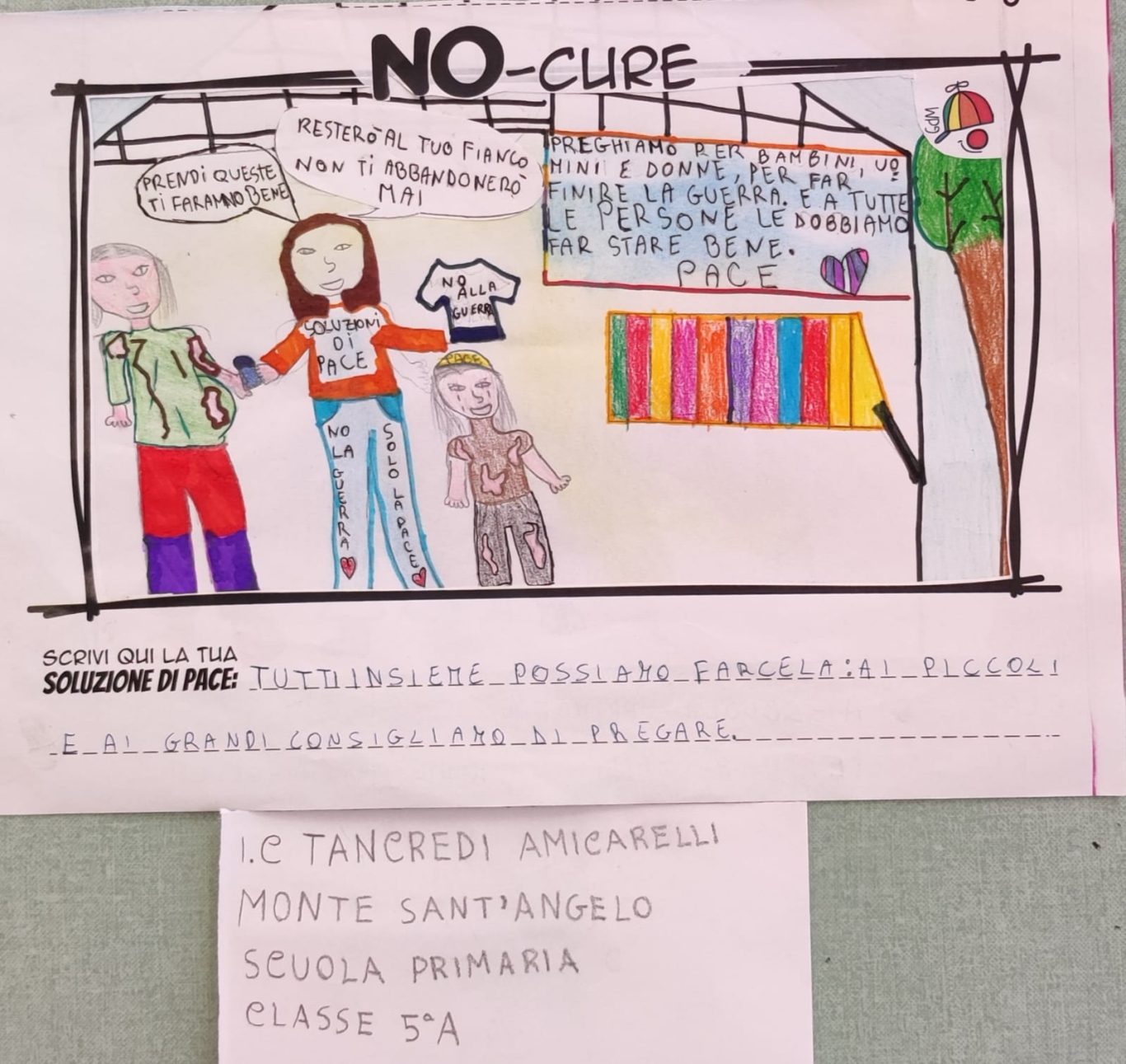 L’opera di sensibilizzazione si si esprime concretamente con la creazione di un DISEGNO DELLA MERAVIGLIA che andrà ad aiutare una delle 12 fatiche. Allo stesso modo chiederemo a tutti i partecipanti di andare a scrivere una “Soluzione di Pace” che possa aiutare anch’essa una delle 12 fatiche dei Bambini della guerra.