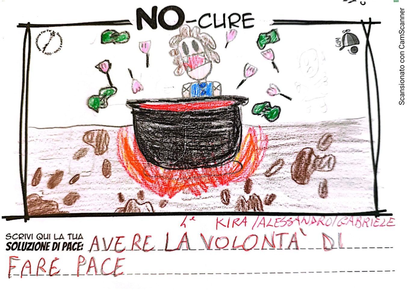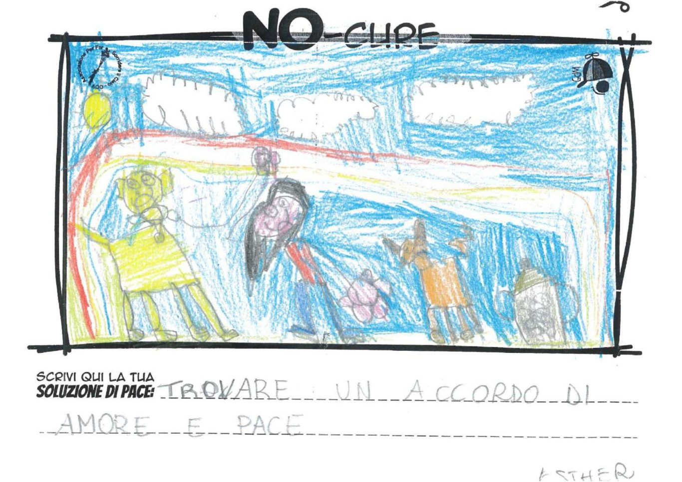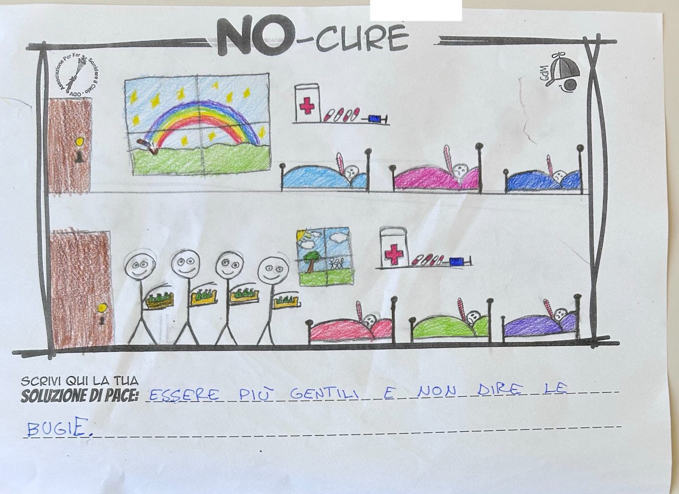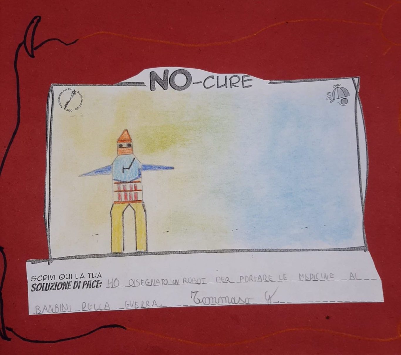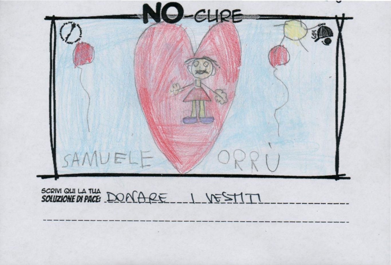 L’opera di sensibilizzazione si si esprime concretamente con la creazione di un DISEGNO DELLA MERAVIGLIA che andrà ad aiutare una delle 12 fatiche. Allo stesso modo chiederemo a tutti i partecipanti di andare a scrivere una “Soluzione di Pace” che possa aiutare anch’essa una delle 12 fatiche dei Bambini della guerra.