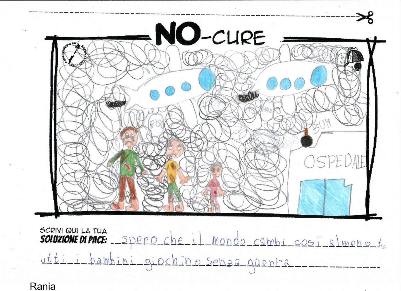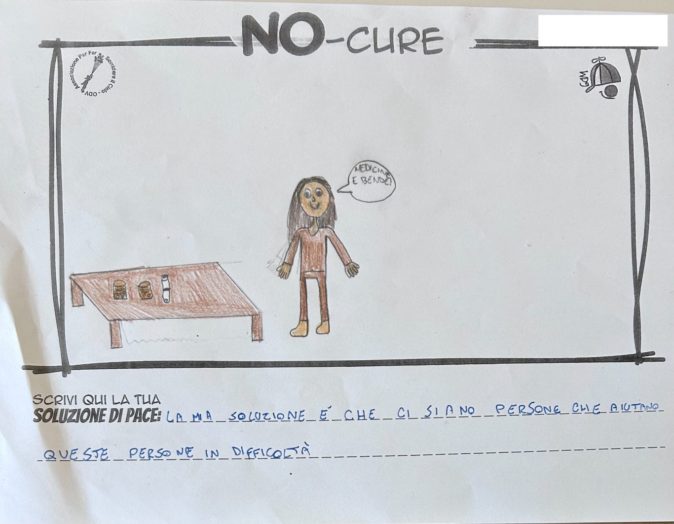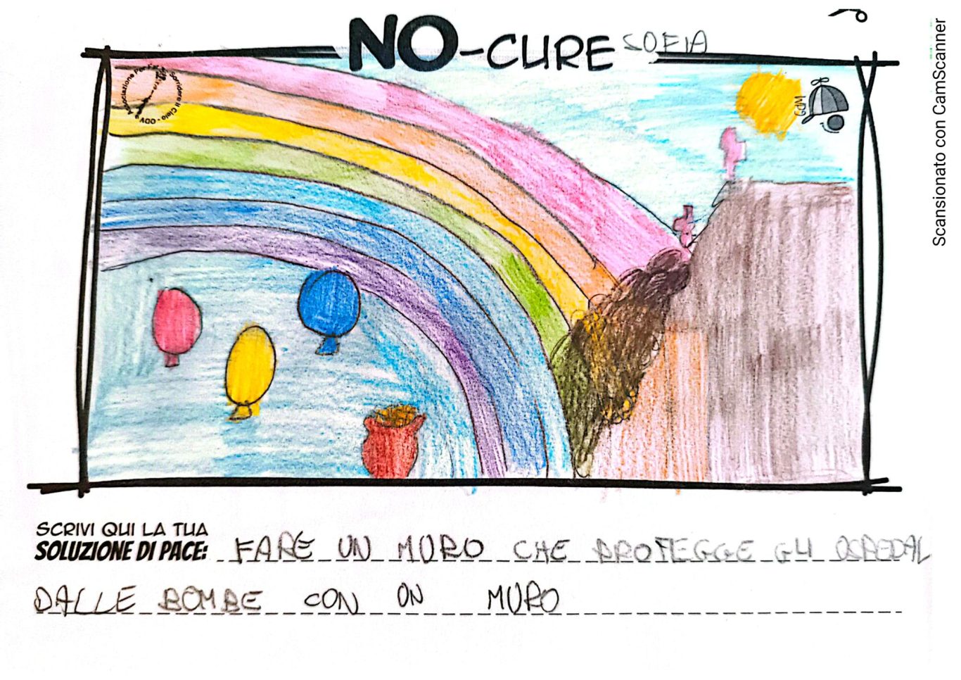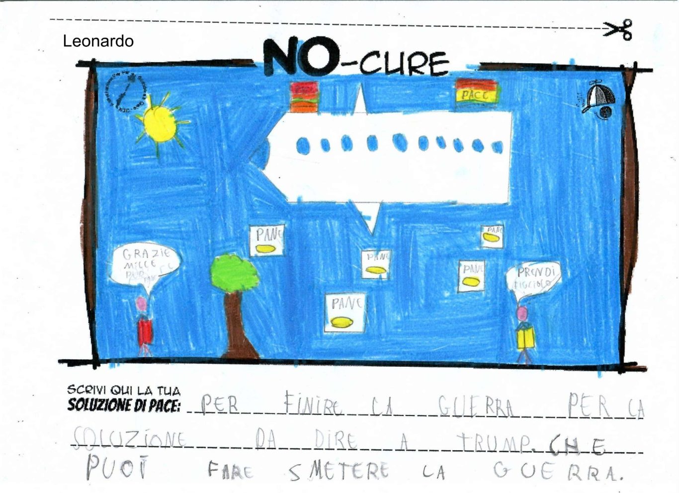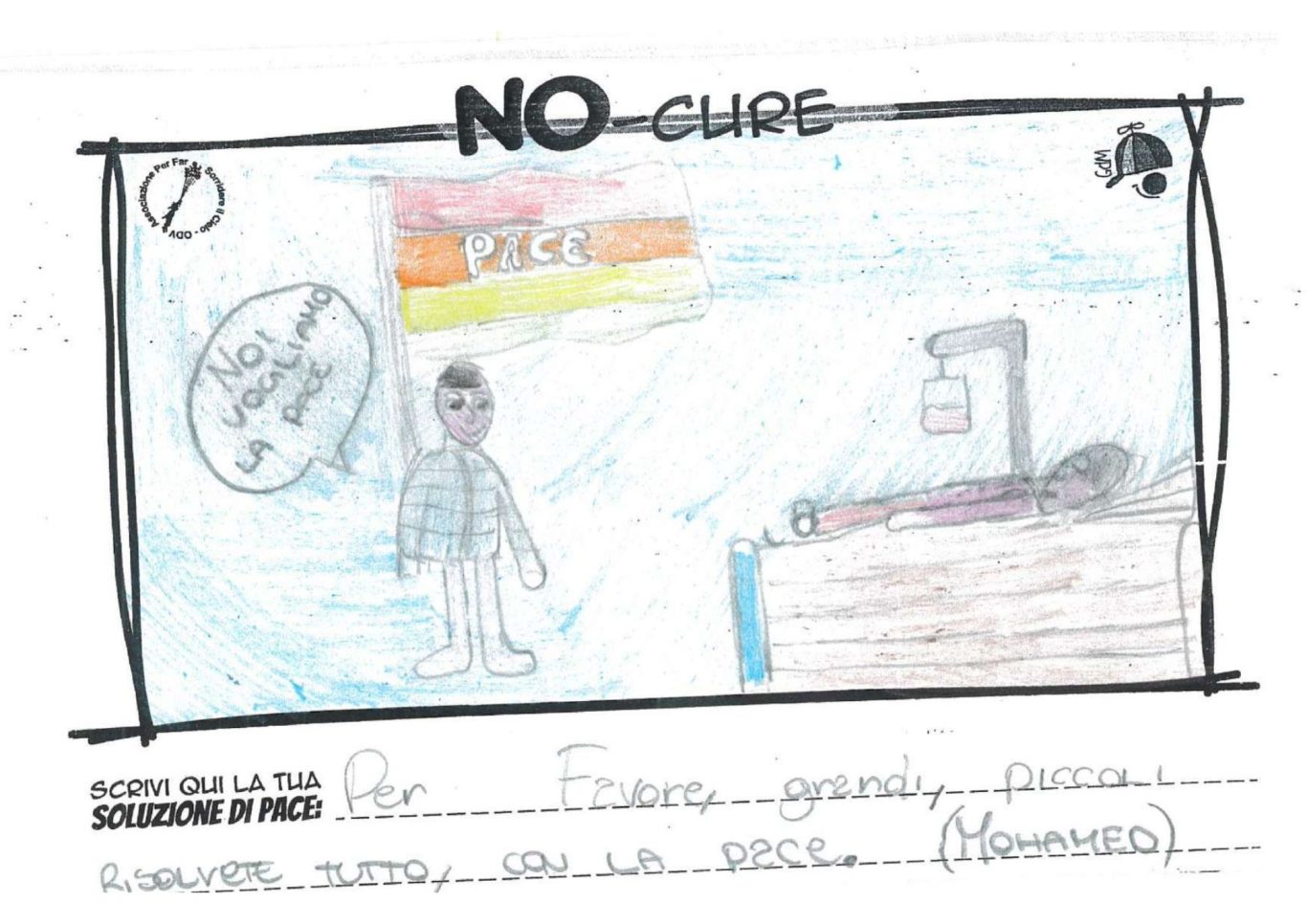 L’opera di sensibilizzazione si si esprime concretamente con la creazione di un DISEGNO DELLA MERAVIGLIA che andrà ad aiutare una delle 12 fatiche. Allo stesso modo chiederemo a tutti i partecipanti di andare a scrivere una “Soluzione di Pace” che possa aiutare anch’essa una delle 12 fatiche dei Bambini della guerra.
