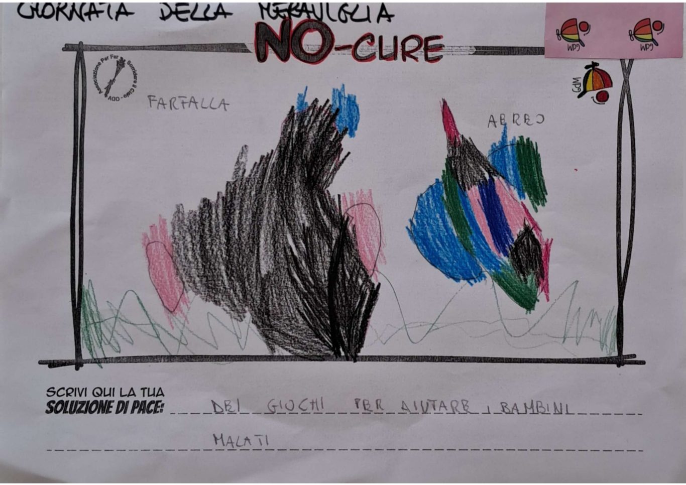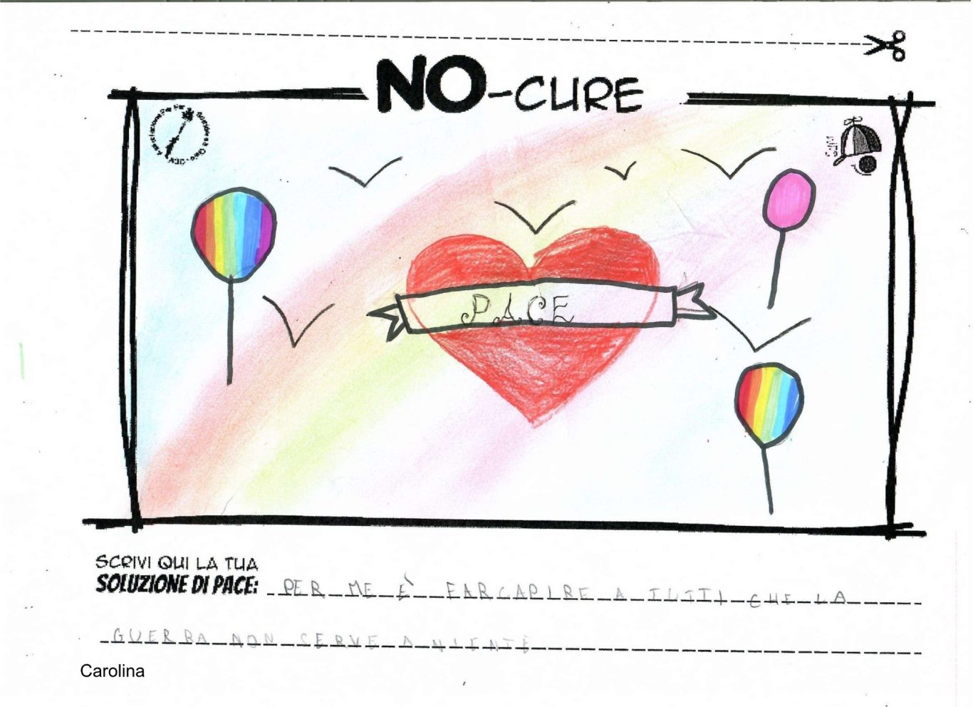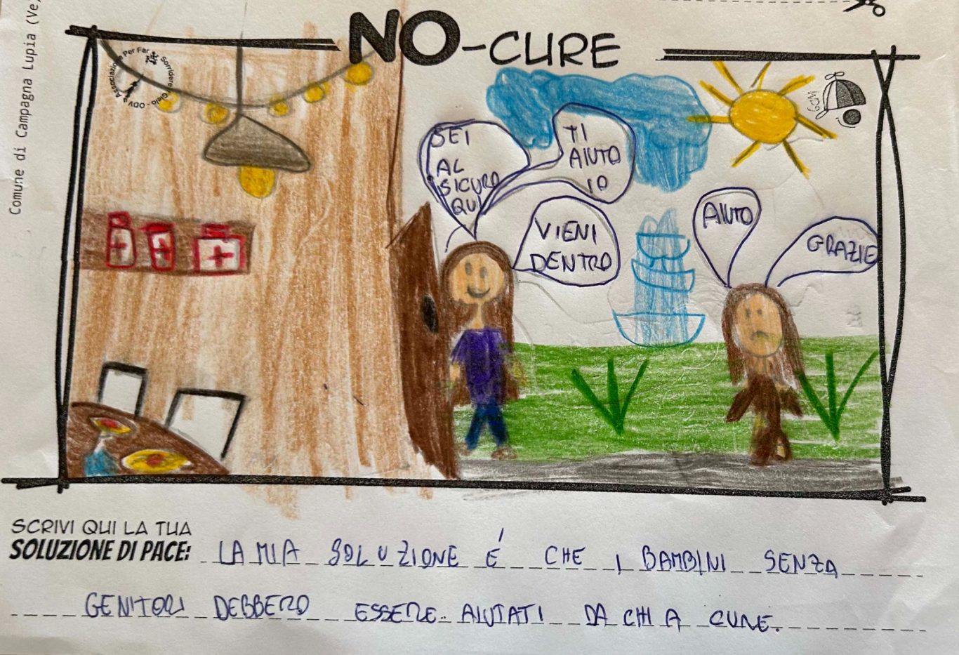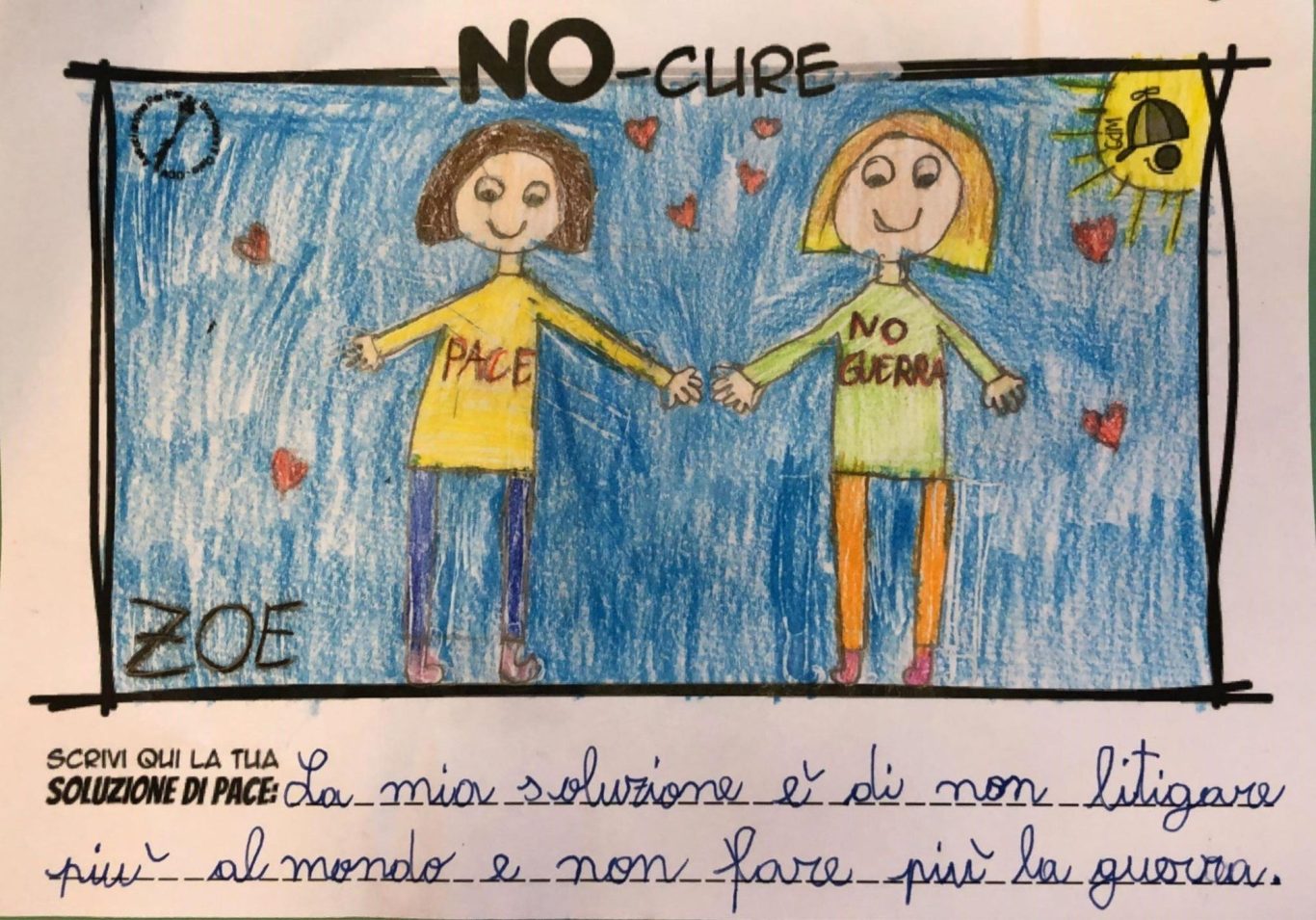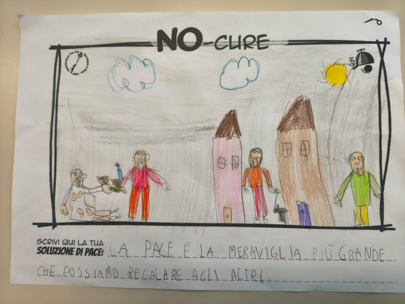 L’opera di sensibilizzazione si si esprime concretamente con la creazione di un DISEGNO DELLA MERAVIGLIA che andrà ad aiutare una delle 12 fatiche. Allo stesso modo chiederemo a tutti i partecipanti di andare a scrivere una “Soluzione di Pace” che possa aiutare anch’essa una delle 12 fatiche dei Bambini della guerra.
