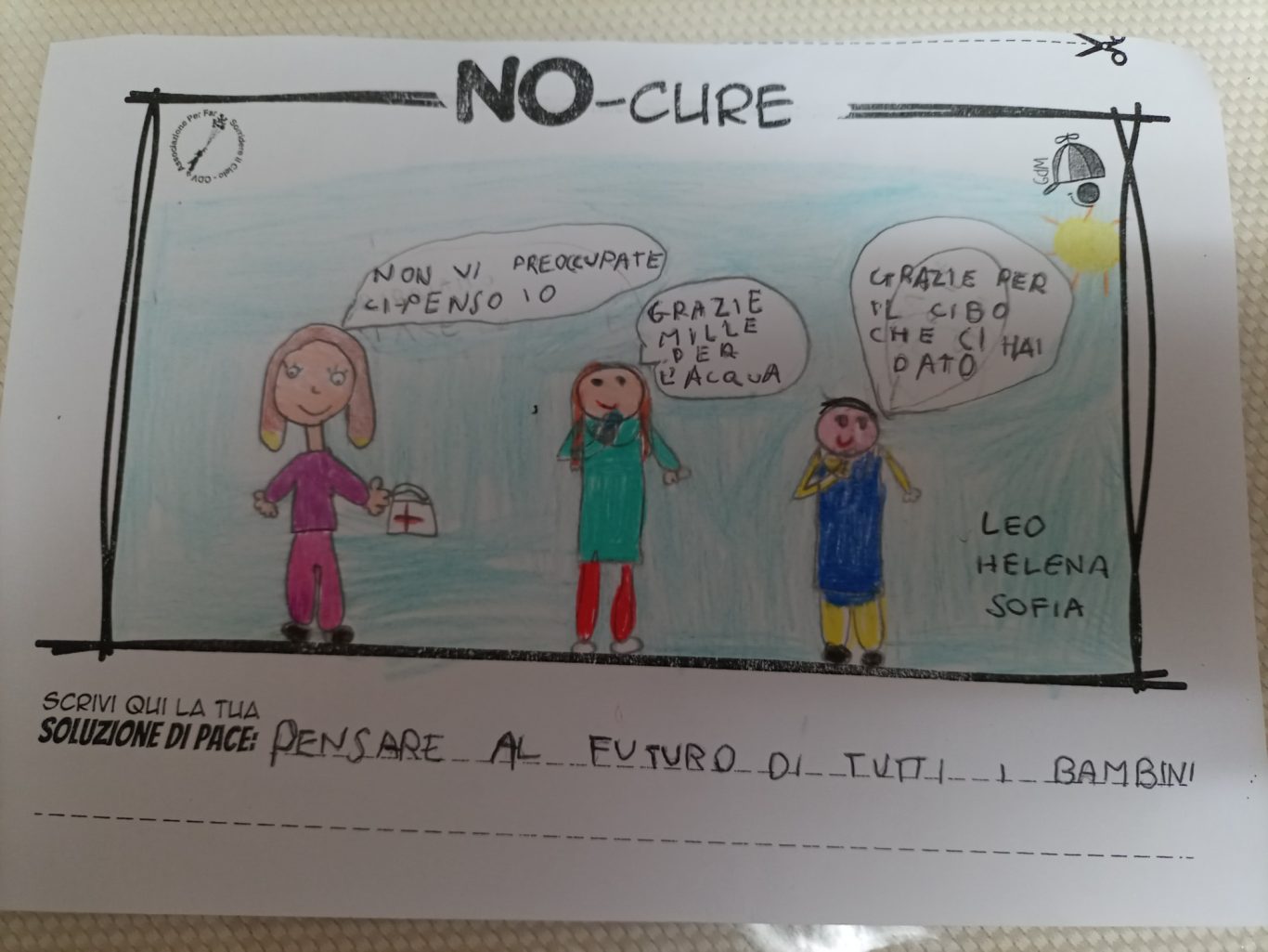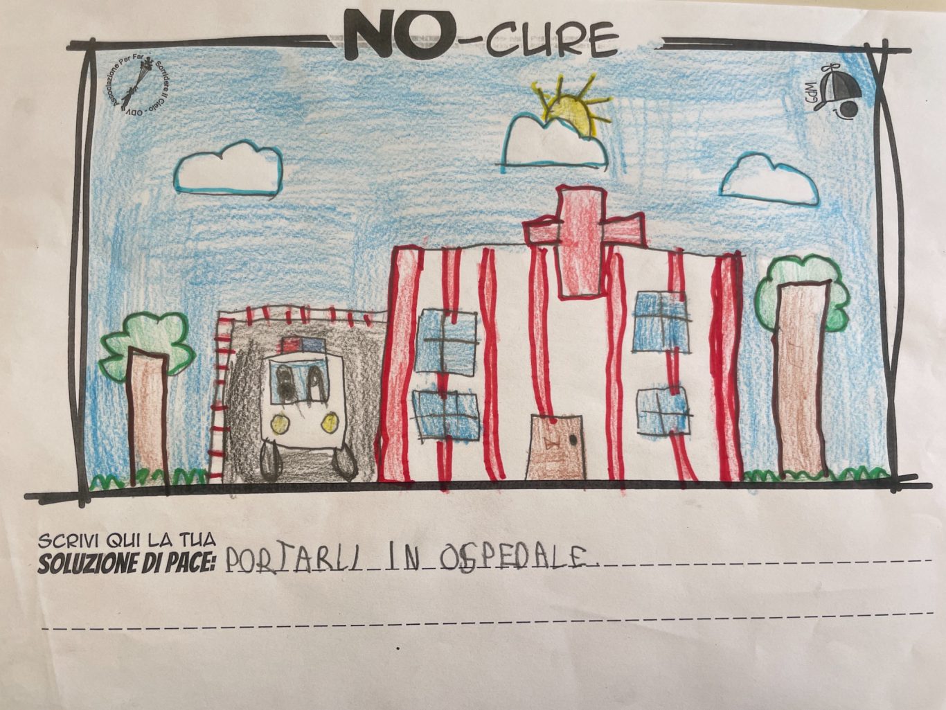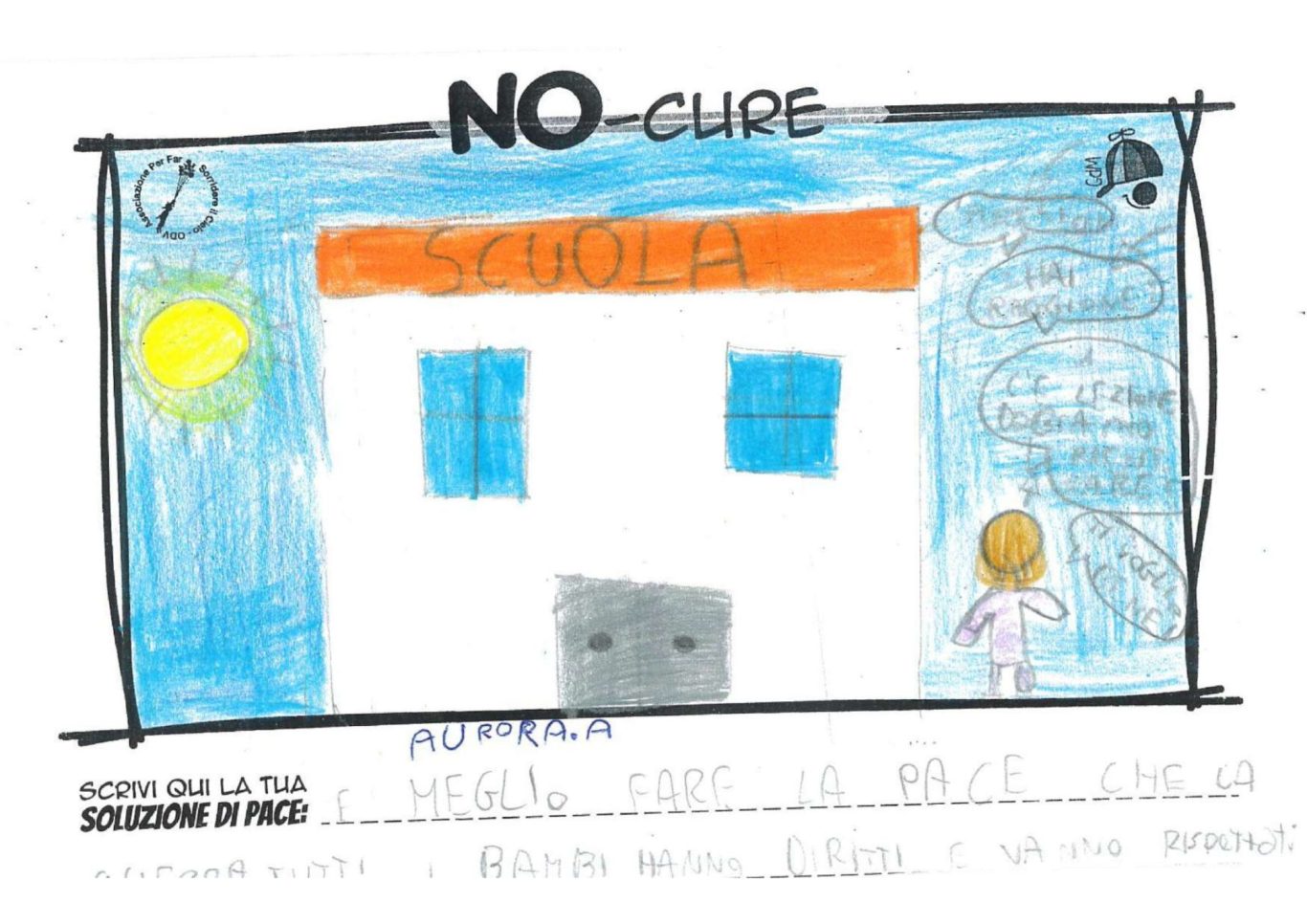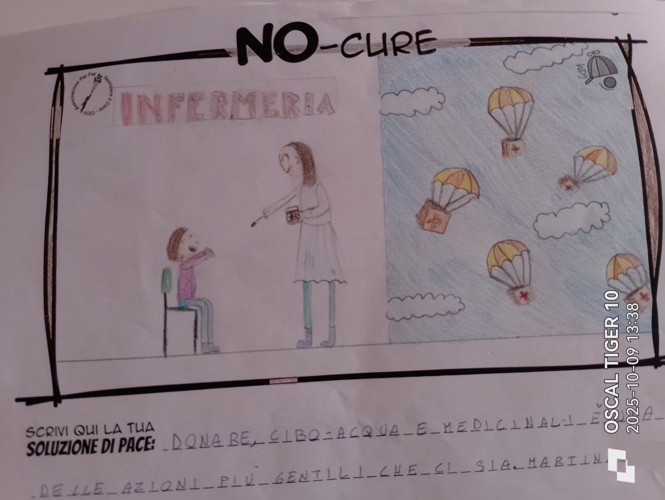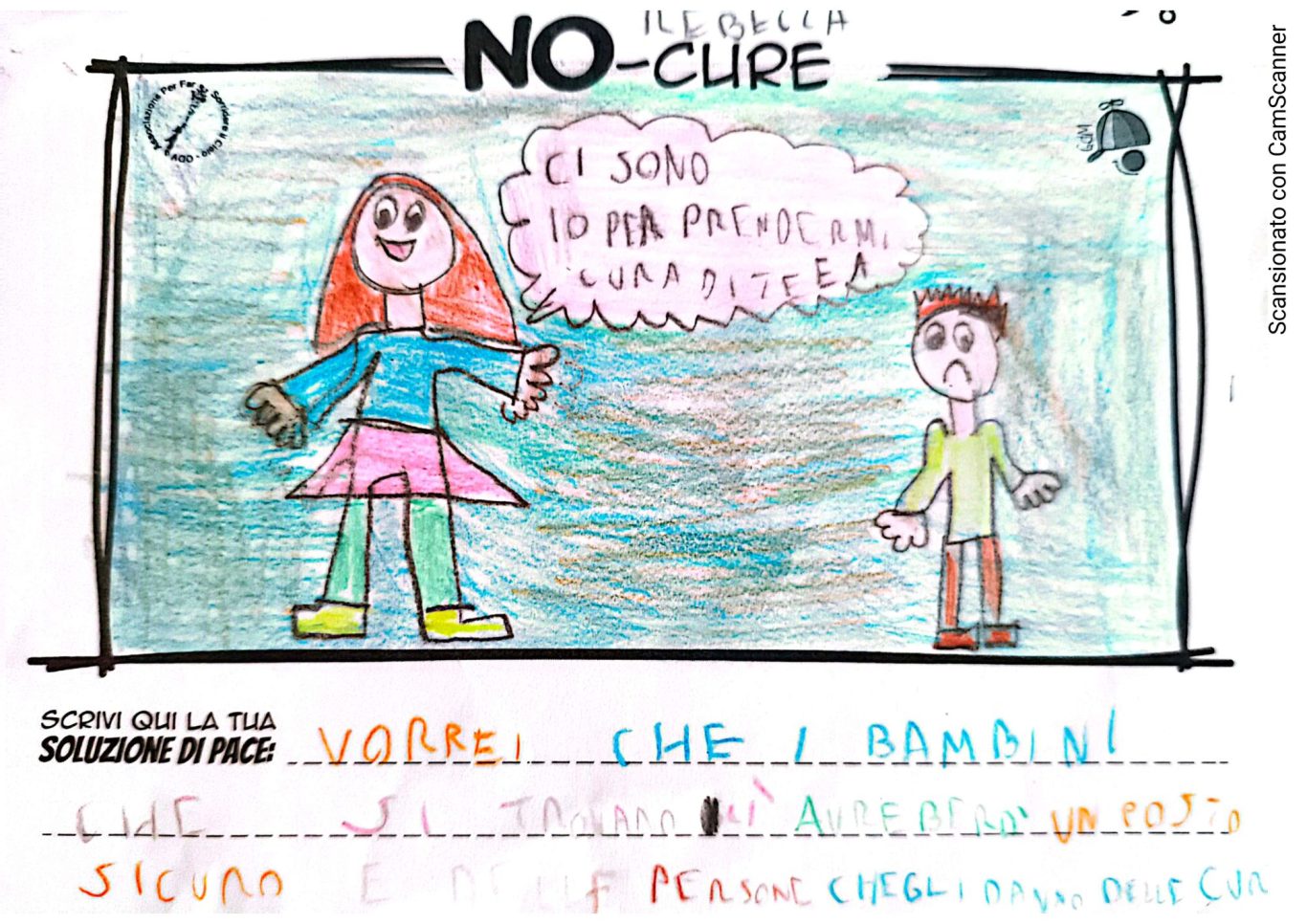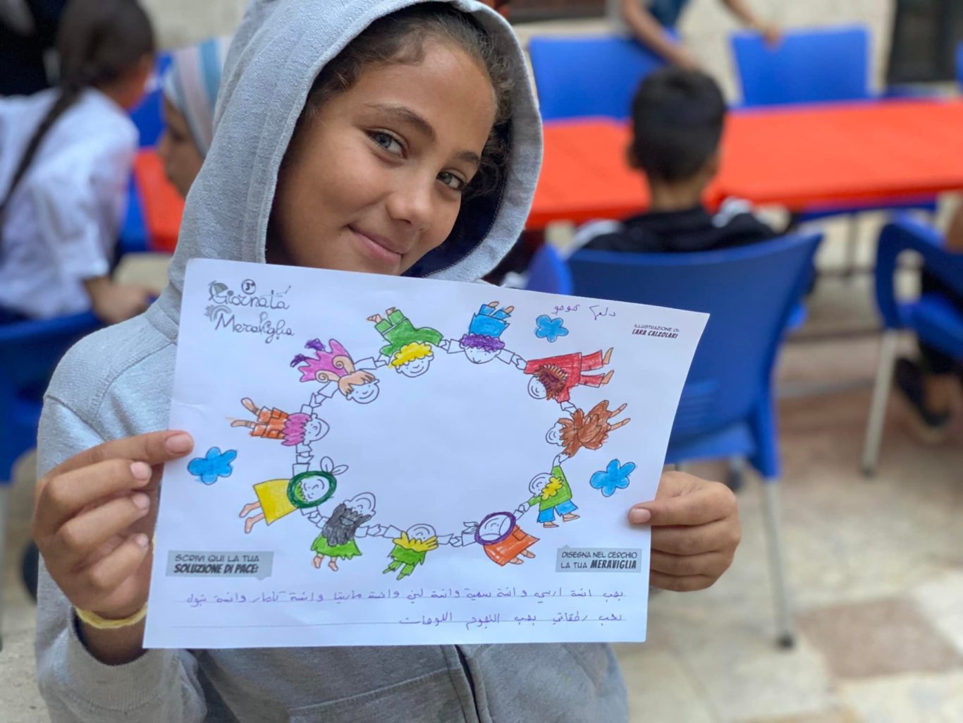 L’opera di sensibilizzazione si si esprime concretamente con la creazione di un DISEGNO DELLA MERAVIGLIA che andrà ad aiutare una delle 12 fatiche. Allo stesso modo chiederemo a tutti i partecipanti di andare a scrivere una “Soluzione di Pace” che possa aiutare anch’essa una delle 12 fatiche dei Bambini della guerra.