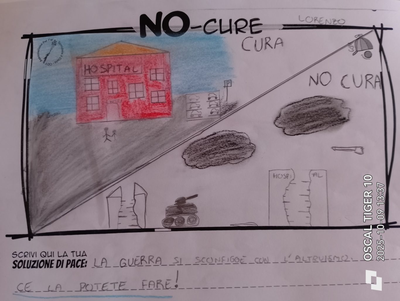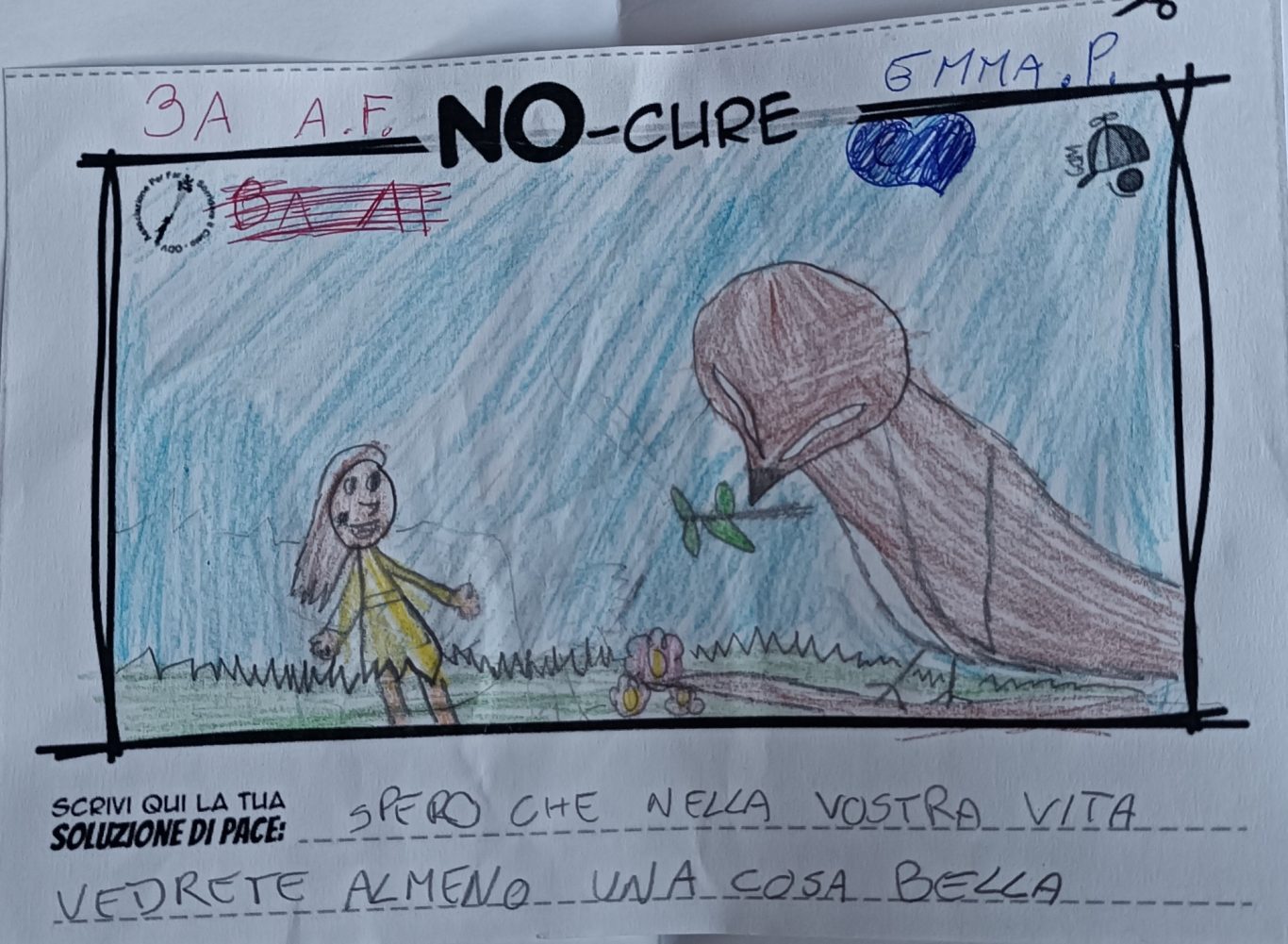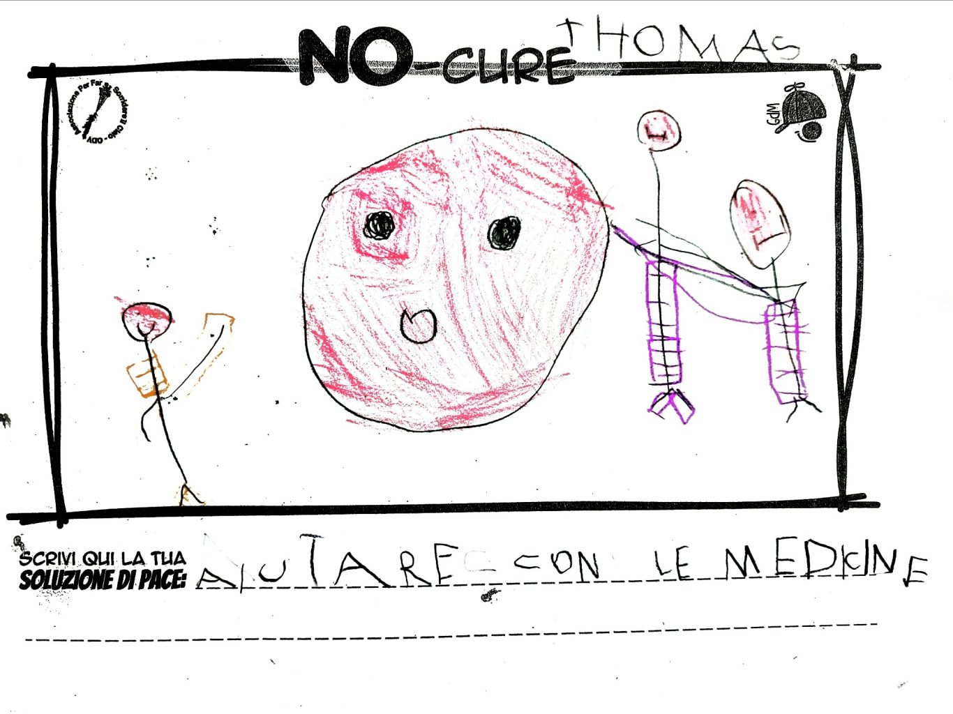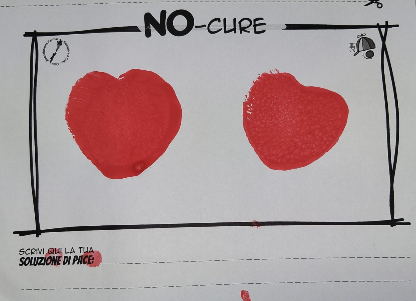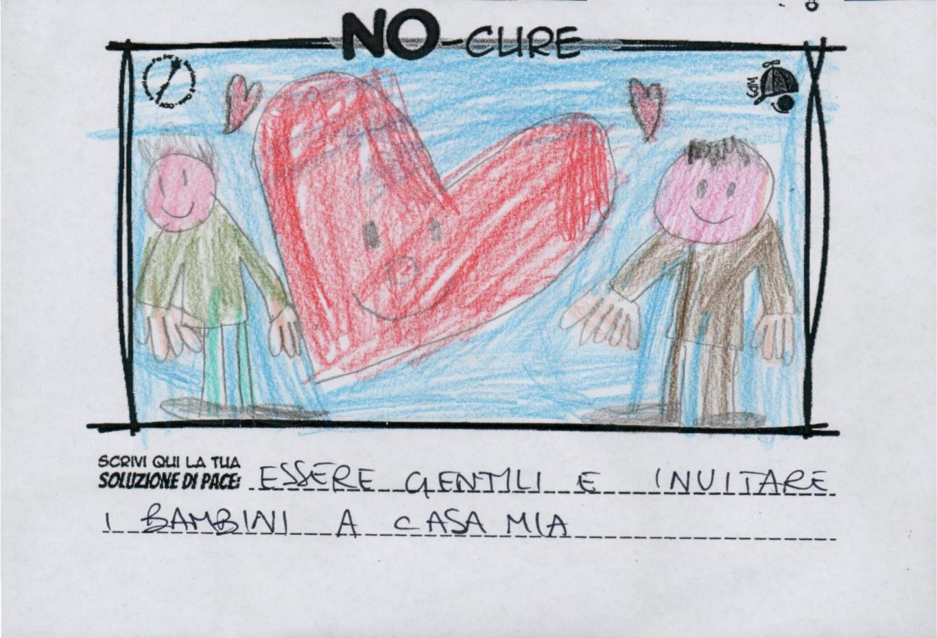 L’opera di sensibilizzazione si si esprime concretamente con la creazione di un DISEGNO DELLA MERAVIGLIA che andrà ad aiutare una delle 12 fatiche. Allo stesso modo chiederemo a tutti i partecipanti di andare a scrivere una “Soluzione di Pace” che possa aiutare anch’essa una delle 12 fatiche dei Bambini della guerra.