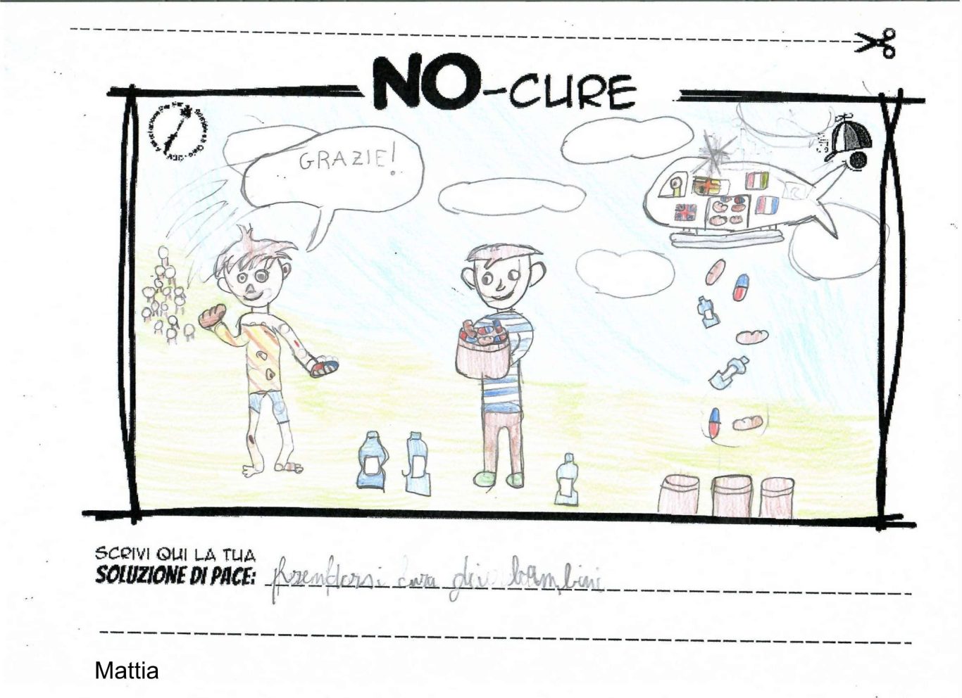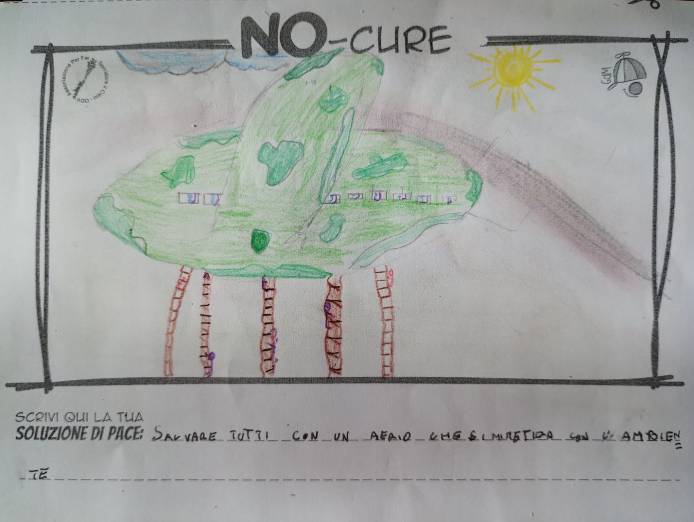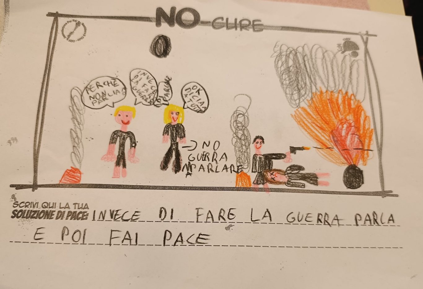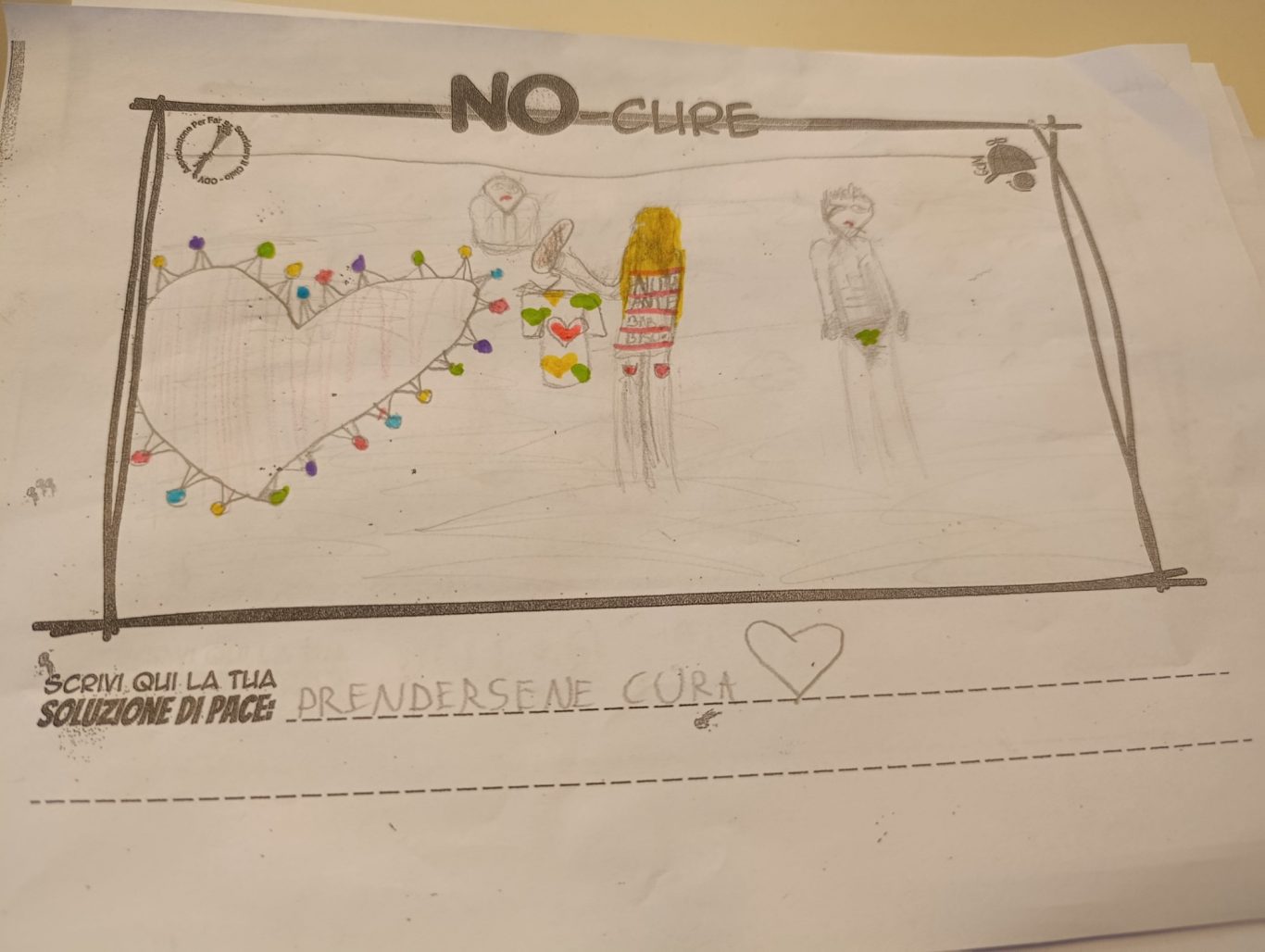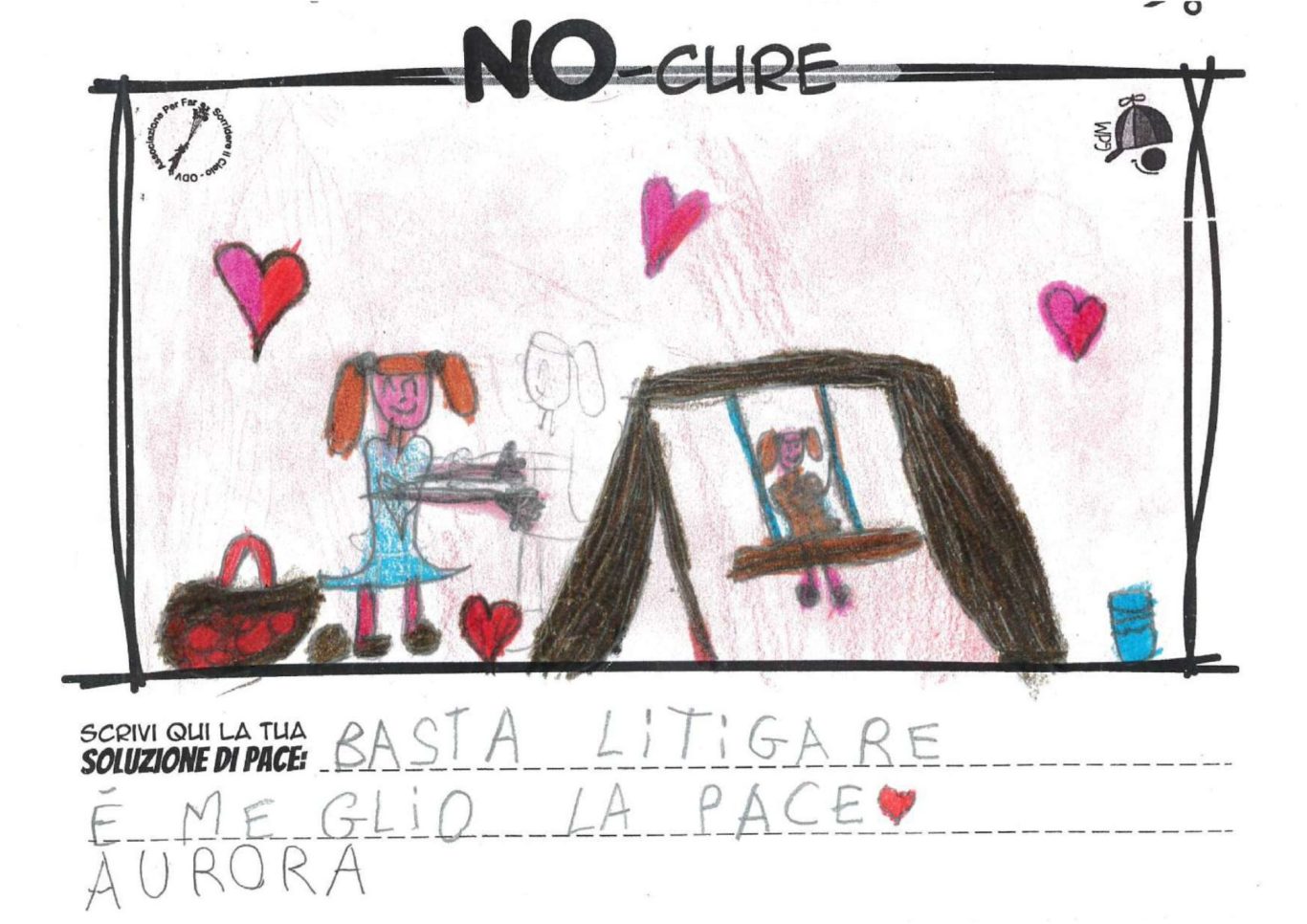 L’opera di sensibilizzazione si si esprime concretamente con la creazione di un DISEGNO DELLA MERAVIGLIA che andrà ad aiutare una delle 12 fatiche. Allo stesso modo chiederemo a tutti i partecipanti di andare a scrivere una “Soluzione di Pace” che possa aiutare anch’essa una delle 12 fatiche dei Bambini della guerra.