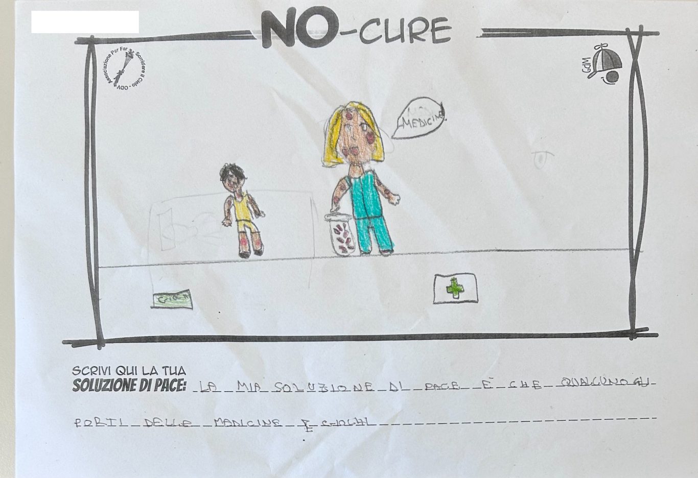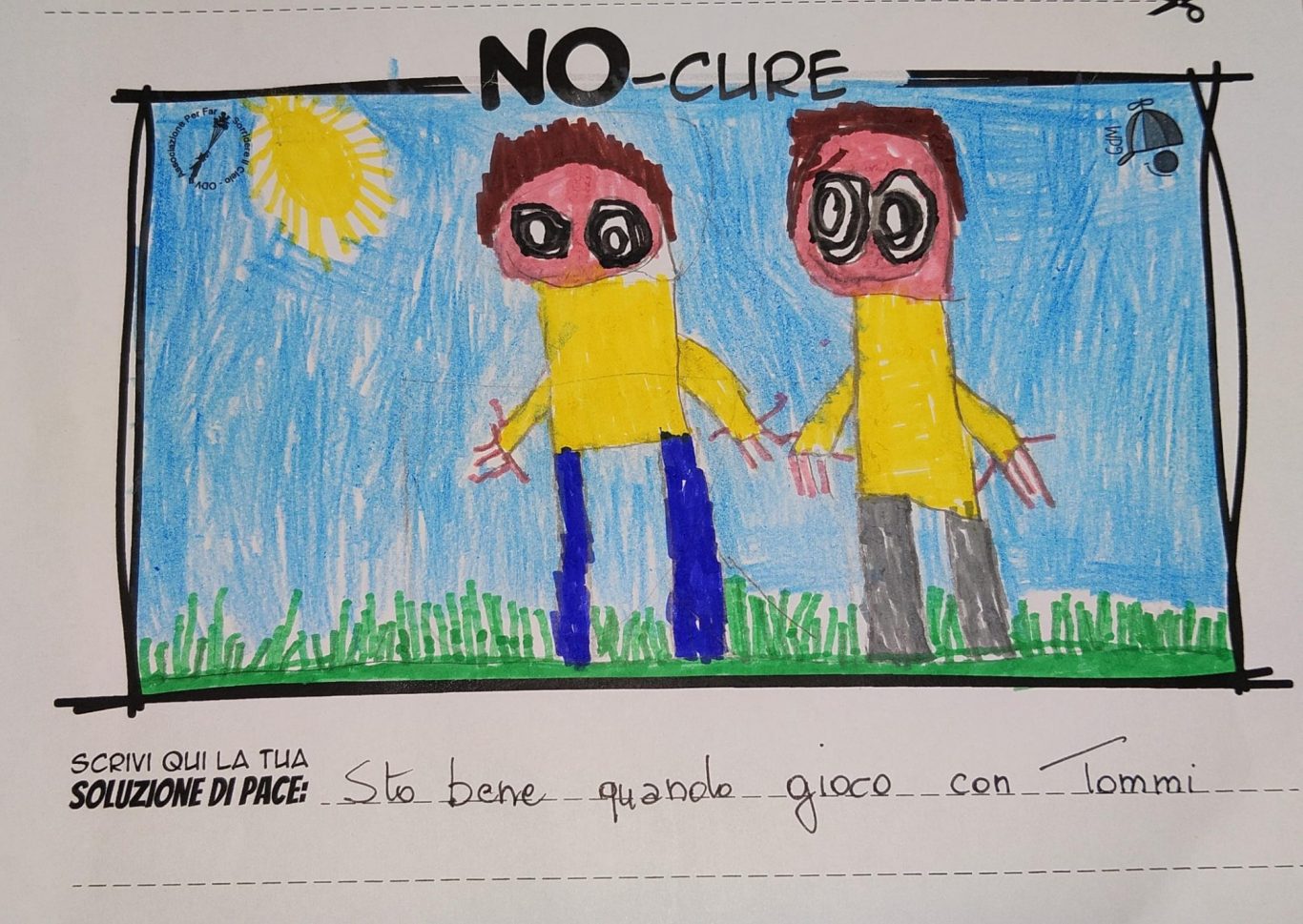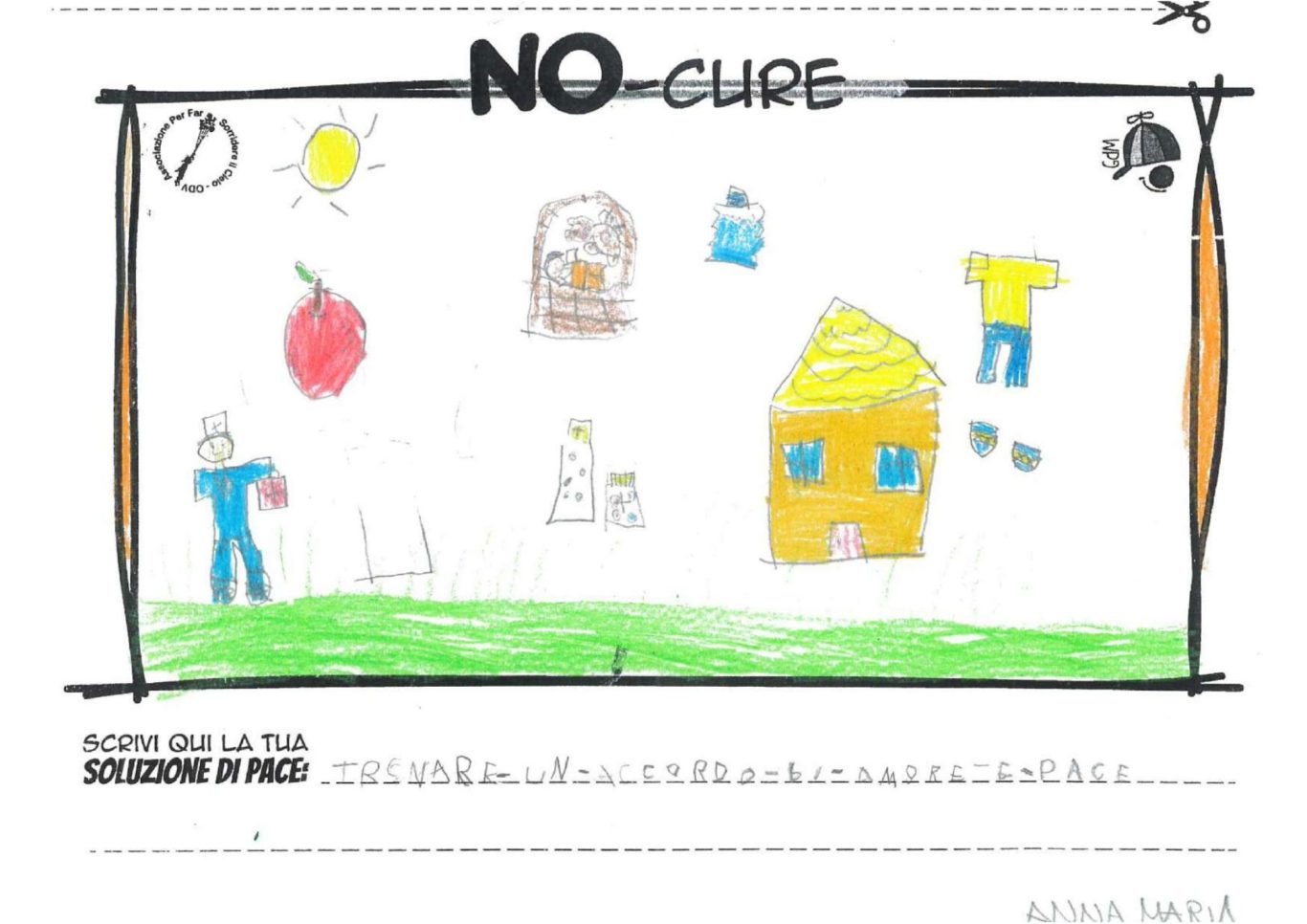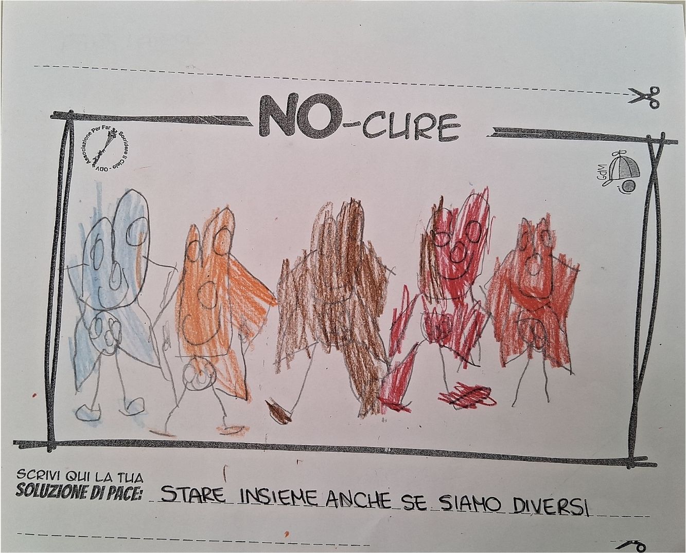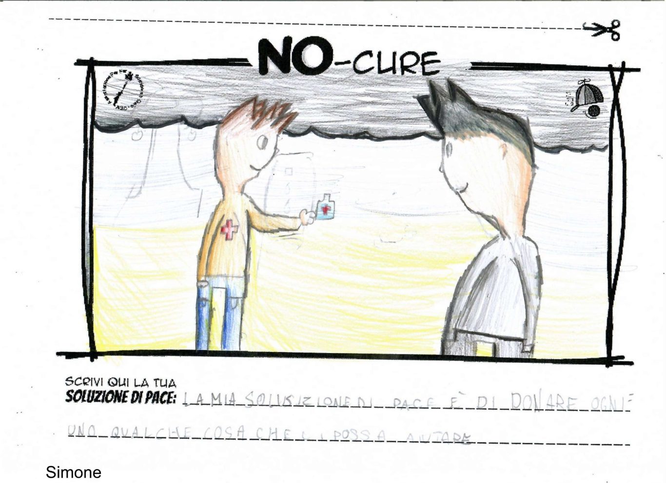 L’opera di sensibilizzazione si si esprime concretamente con la creazione di un DISEGNO DELLA MERAVIGLIA che andrà ad aiutare una delle 12 fatiche. Allo stesso modo chiederemo a tutti i partecipanti di andare a scrivere una “Soluzione di Pace” che possa aiutare anch’essa una delle 12 fatiche dei Bambini della guerra.