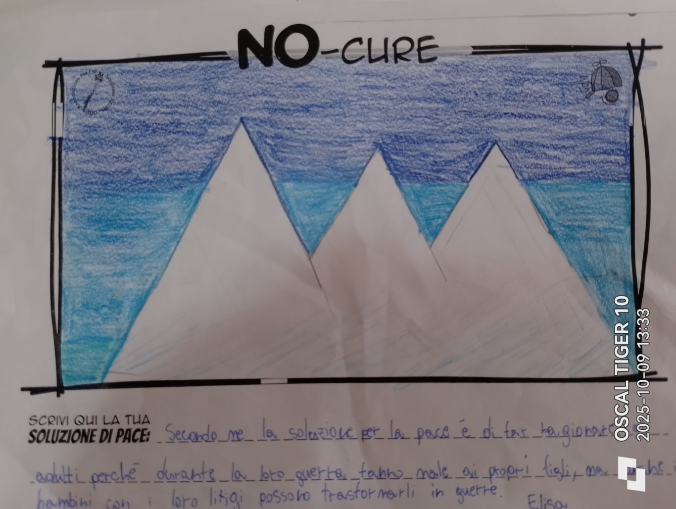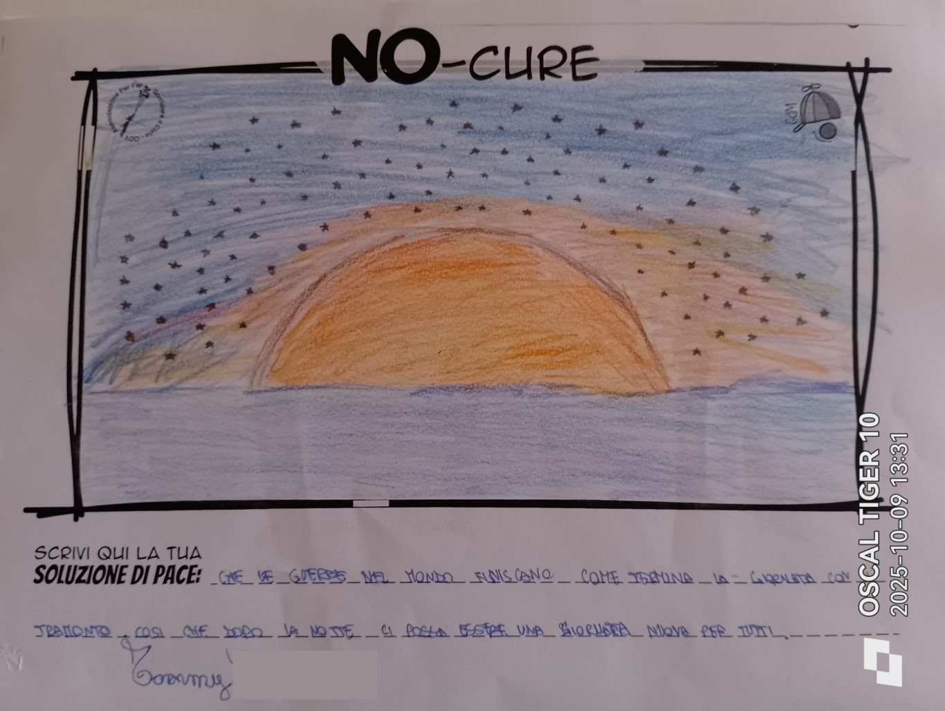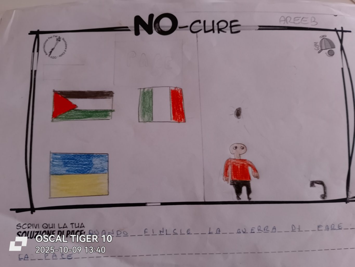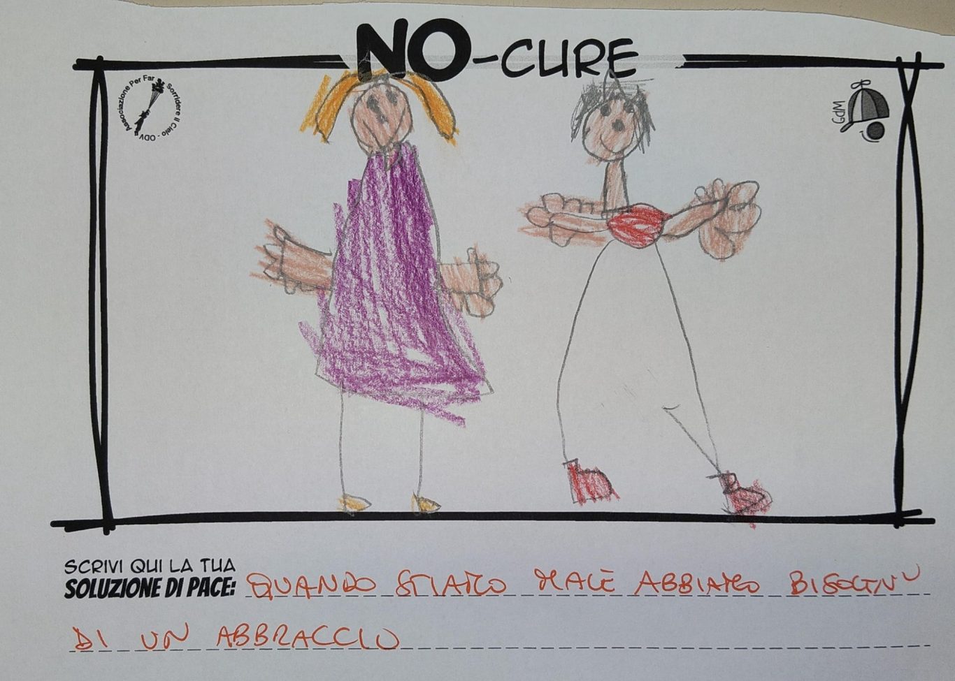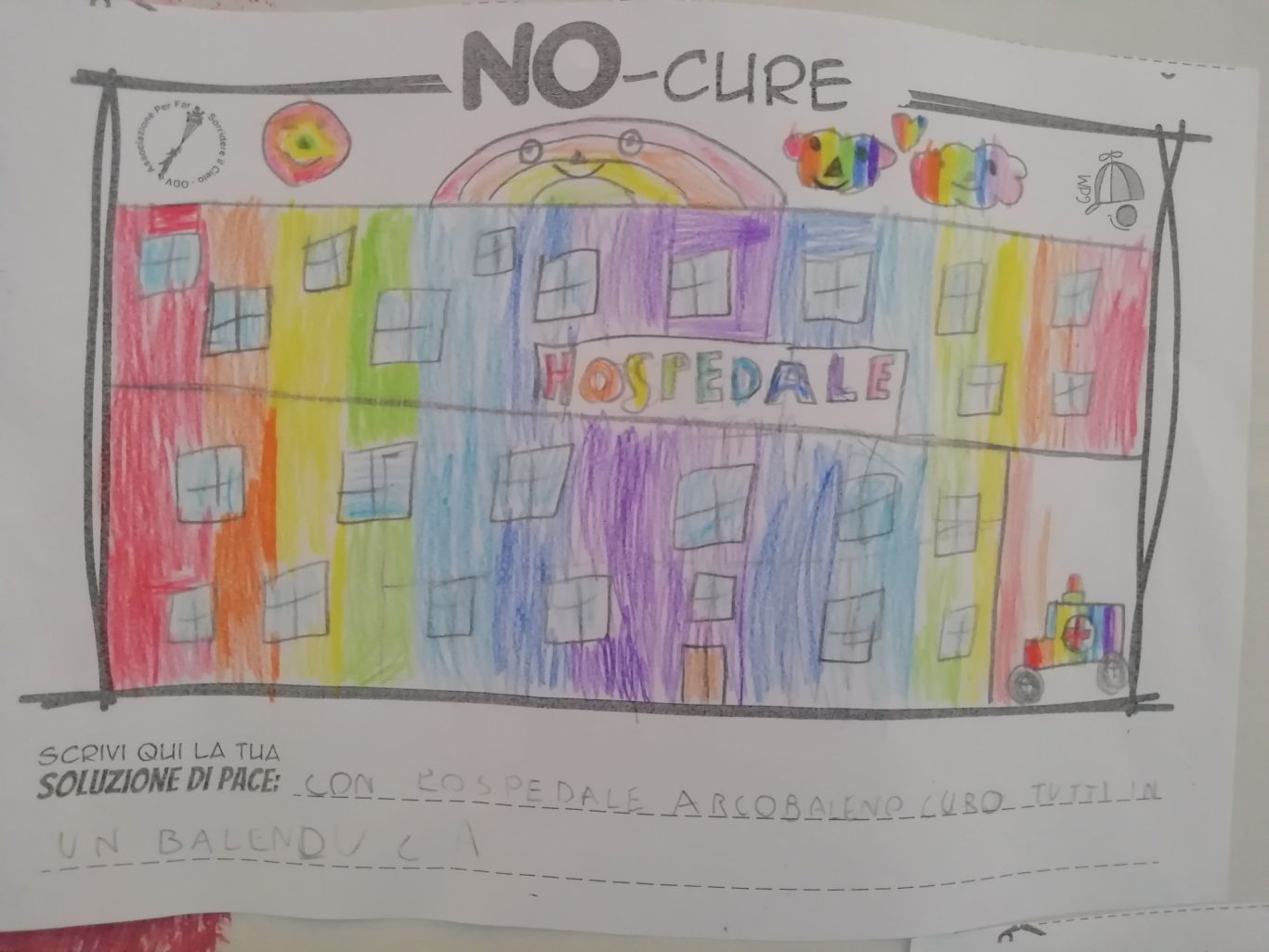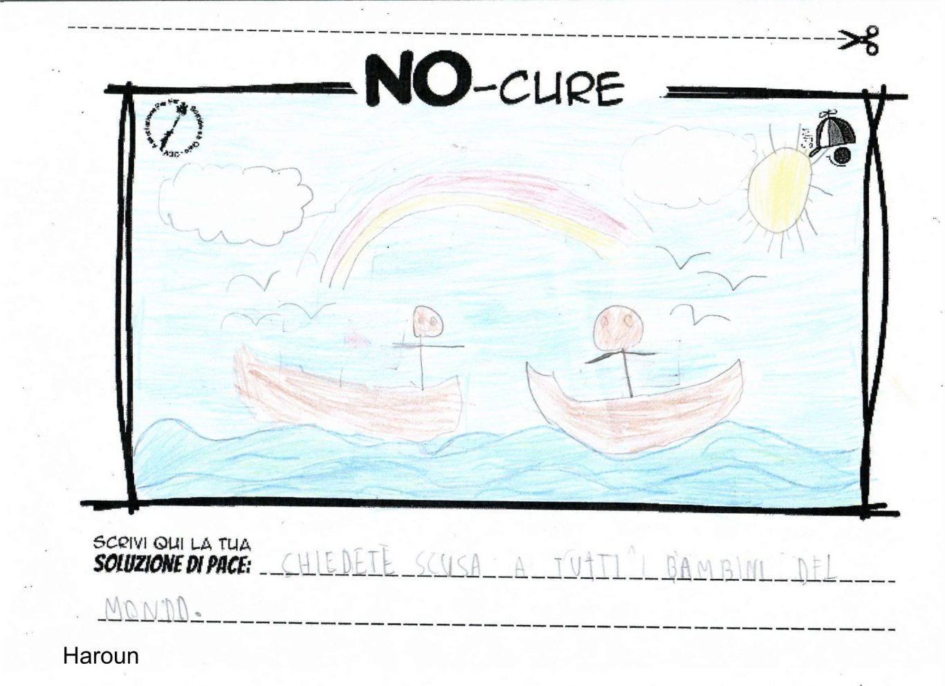 L’opera di sensibilizzazione si si esprime concretamente con la creazione di un DISEGNO DELLA MERAVIGLIA che andrà ad aiutare una delle 12 fatiche. Allo stesso modo chiederemo a tutti i partecipanti di andare a scrivere una “Soluzione di Pace” che possa aiutare anch’essa una delle 12 fatiche dei Bambini della guerra.