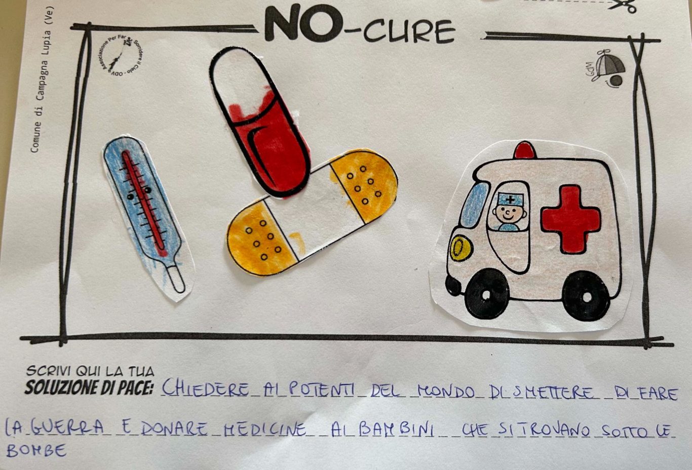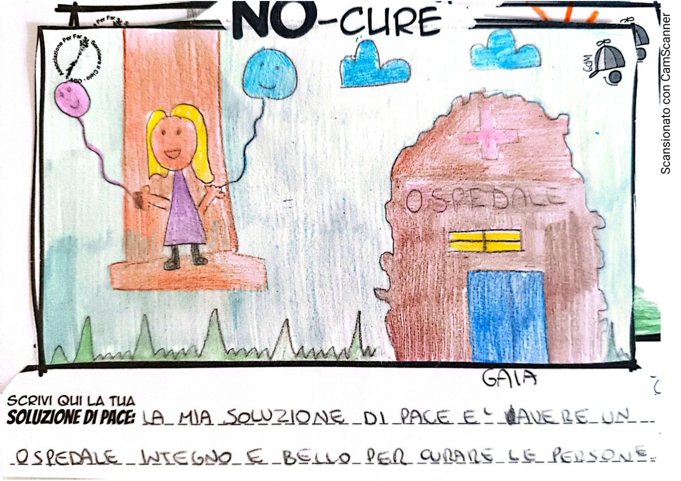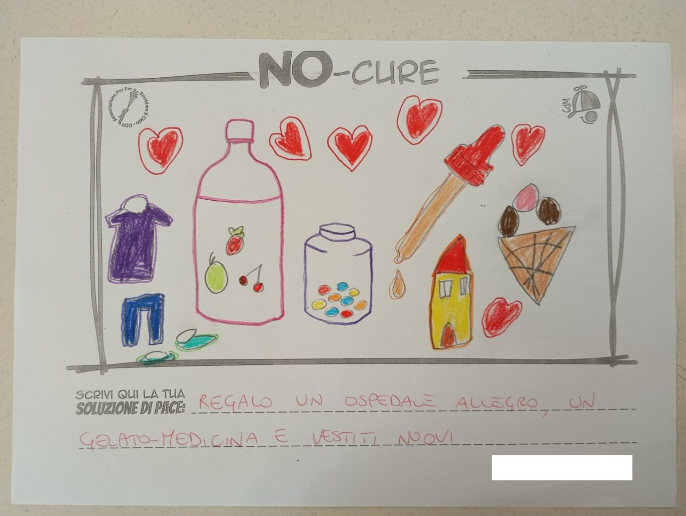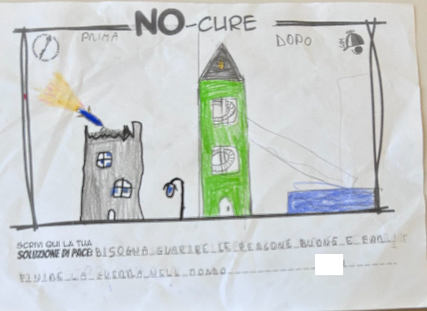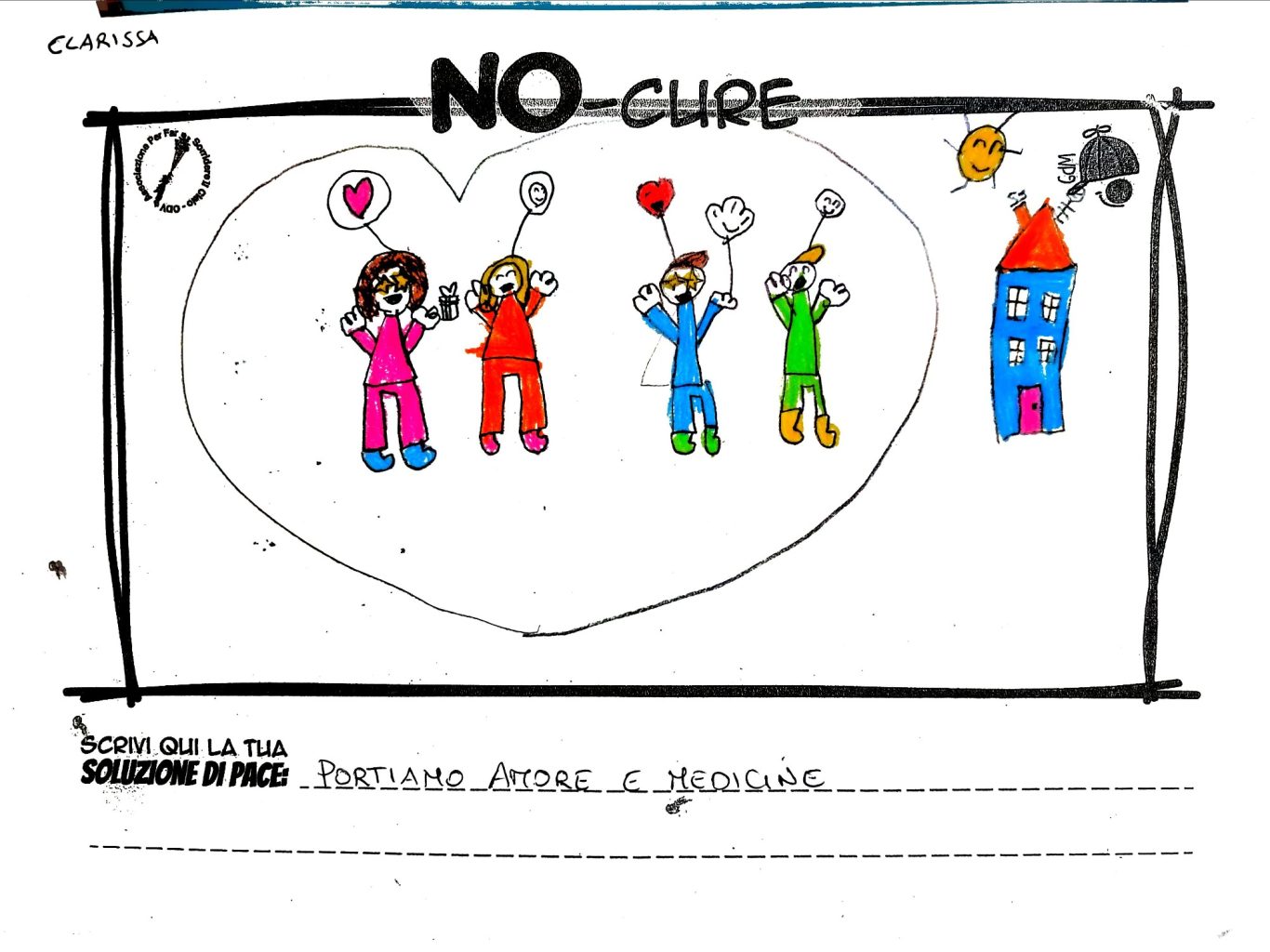 L’opera di sensibilizzazione si si esprime concretamente con la creazione di un DISEGNO DELLA MERAVIGLIA che andrà ad aiutare una delle 12 fatiche. Allo stesso modo chiederemo a tutti i partecipanti di andare a scrivere una “Soluzione di Pace” che possa aiutare anch’essa una delle 12 fatiche dei Bambini della guerra.