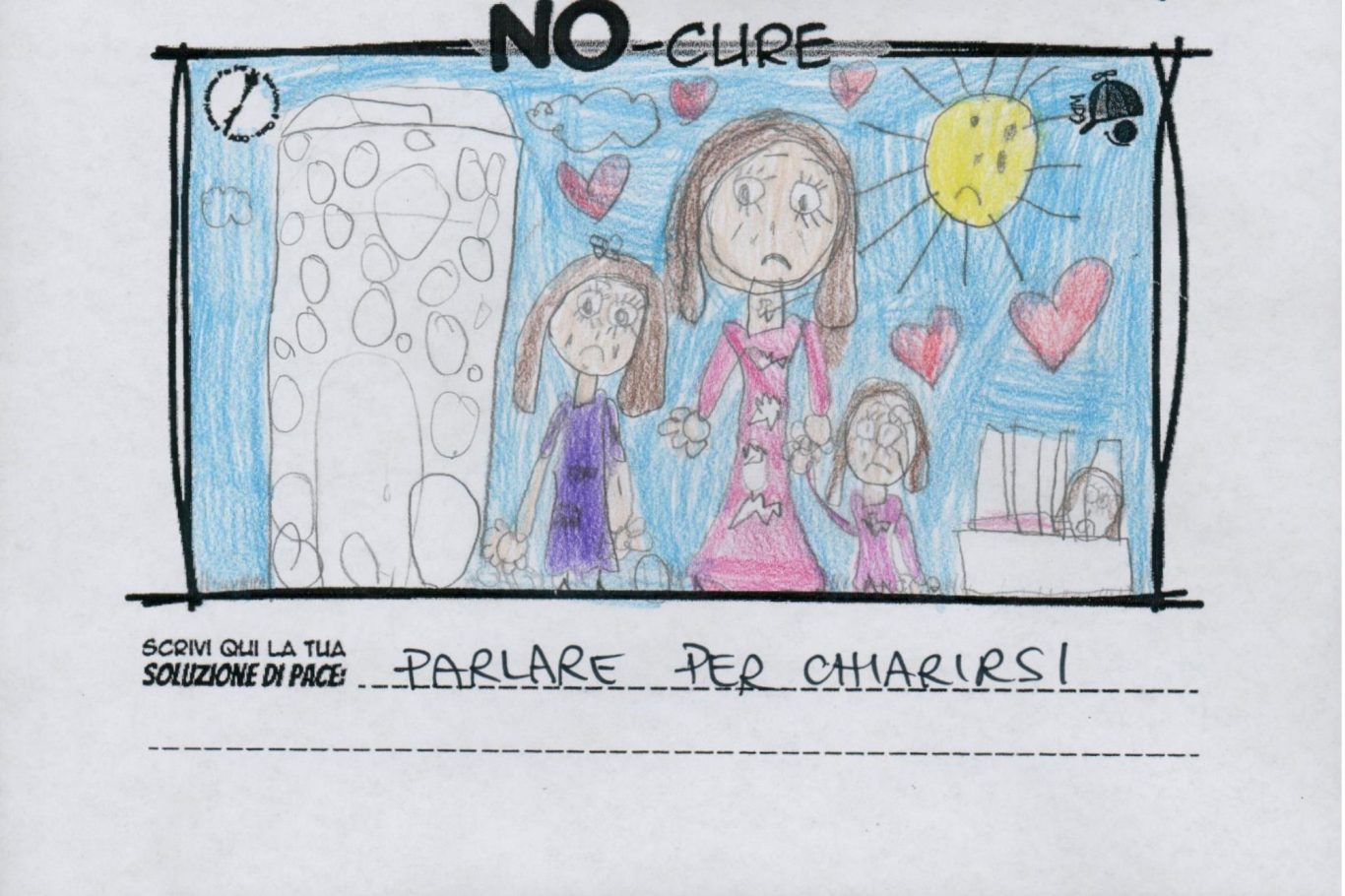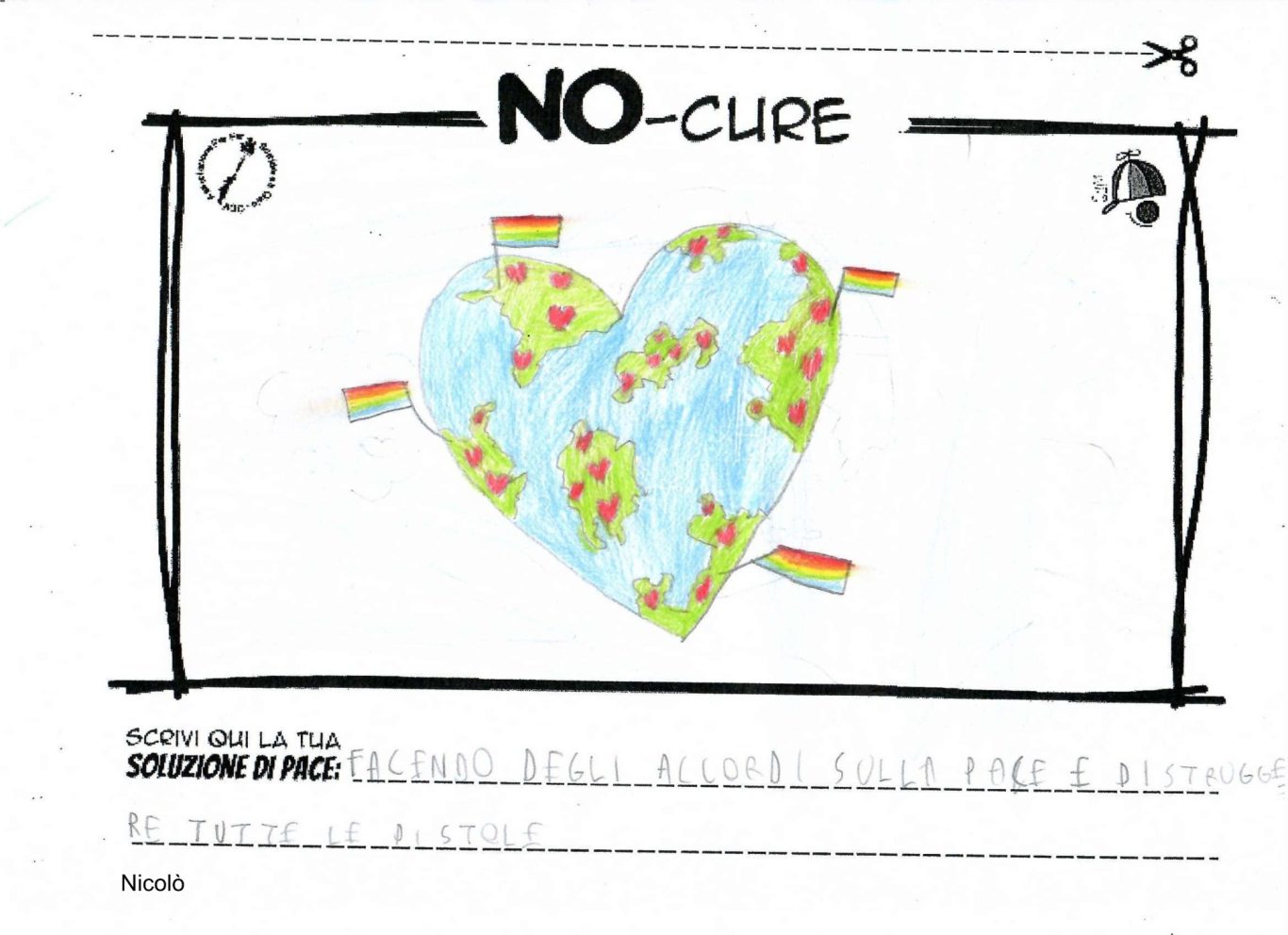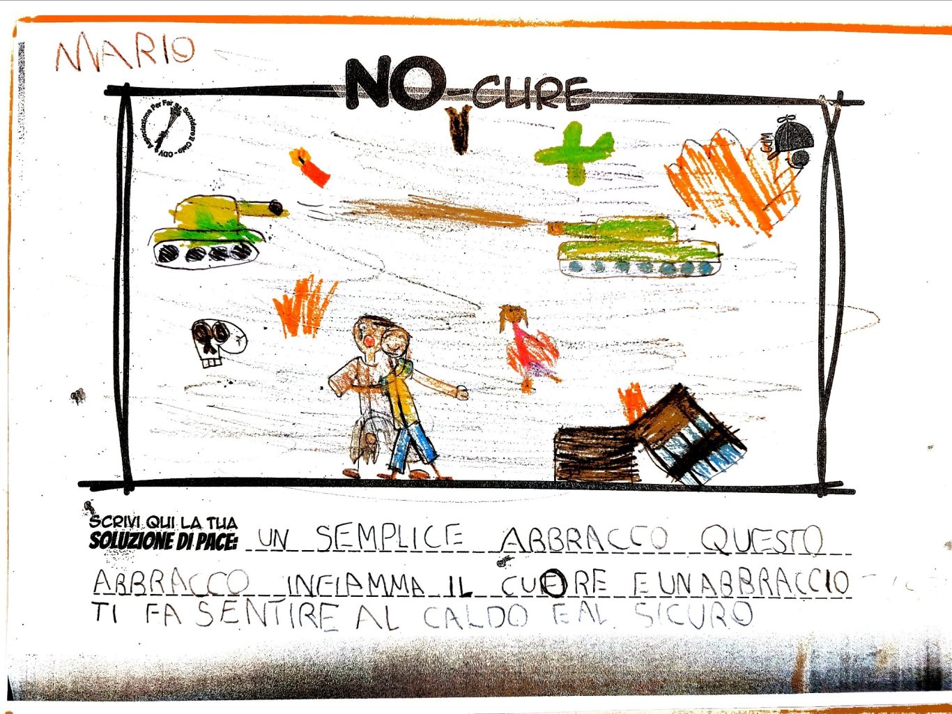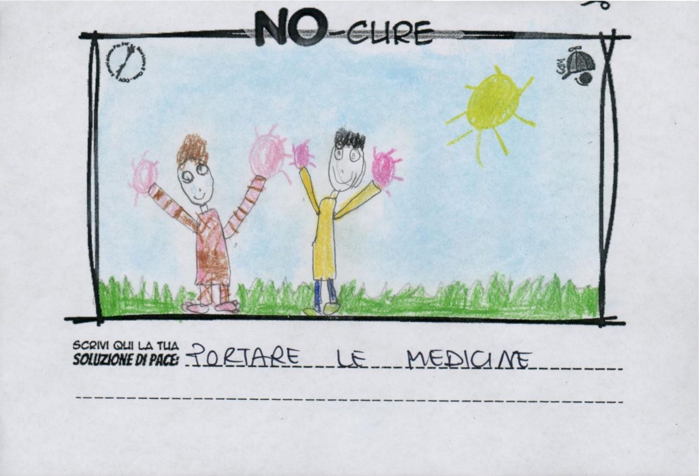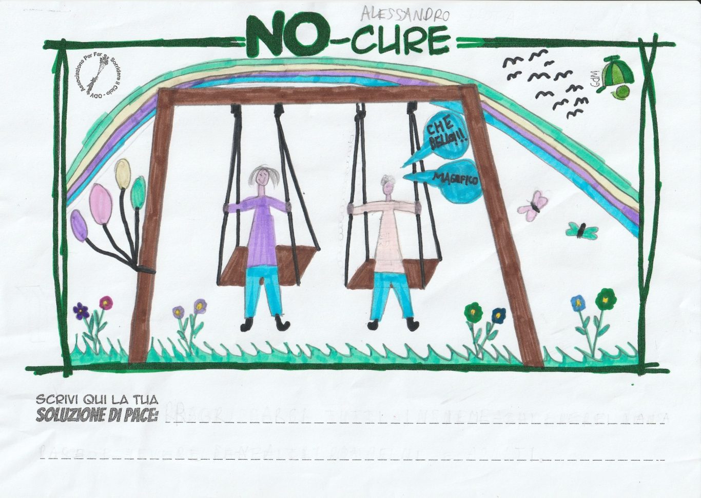 L’opera di sensibilizzazione si si esprime concretamente con la creazione di un DISEGNO DELLA MERAVIGLIA che andrà ad aiutare una delle 12 fatiche. Allo stesso modo chiederemo a tutti i partecipanti di andare a scrivere una “Soluzione di Pace” che possa aiutare anch’essa una delle 12 fatiche dei Bambini della guerra.