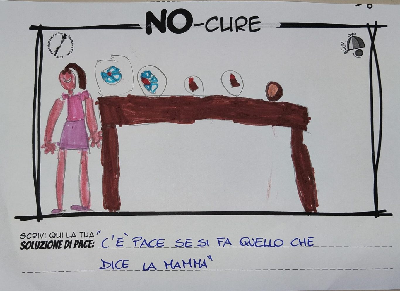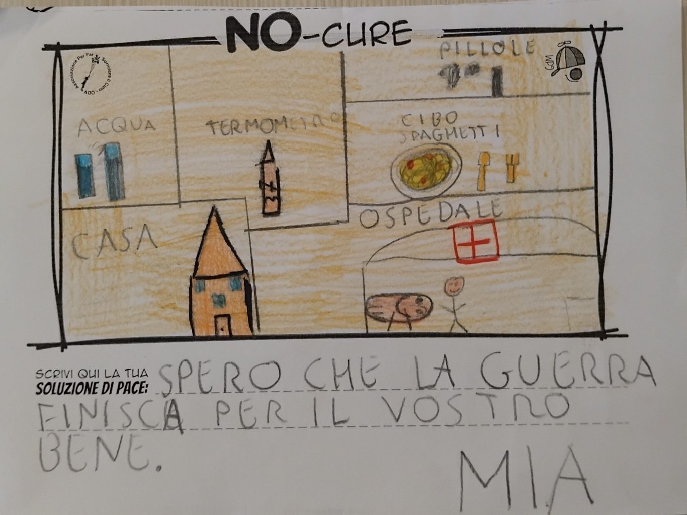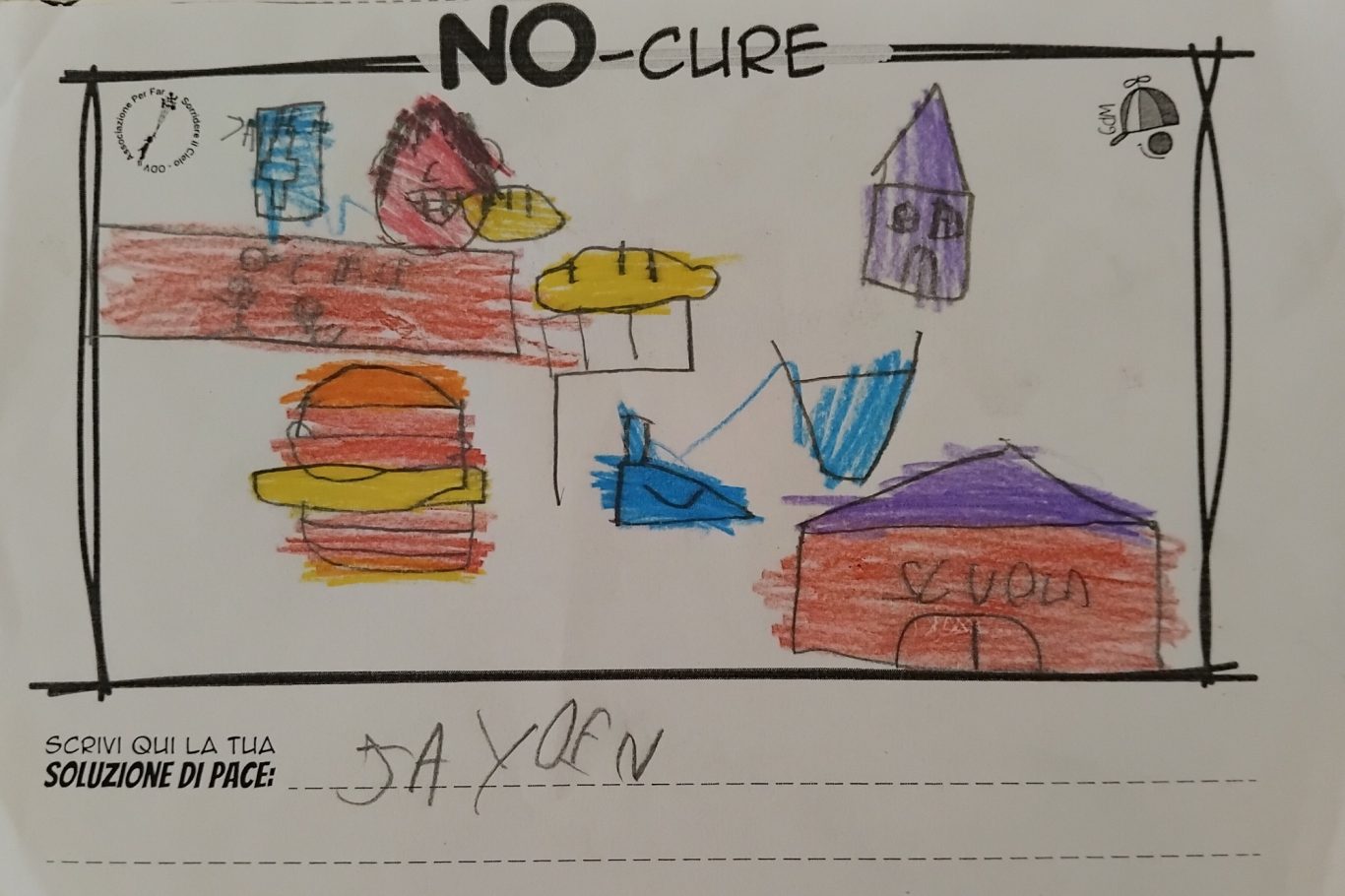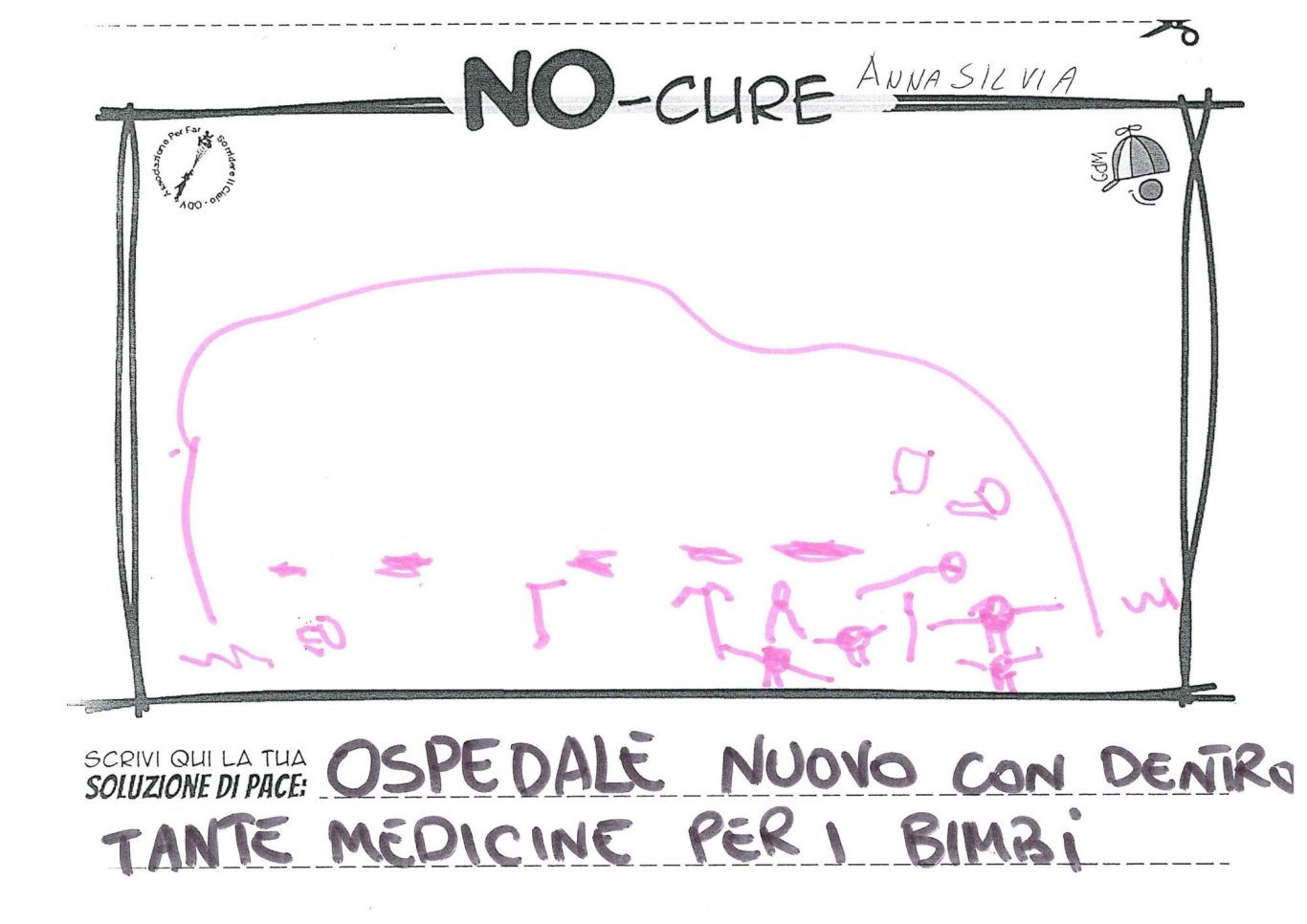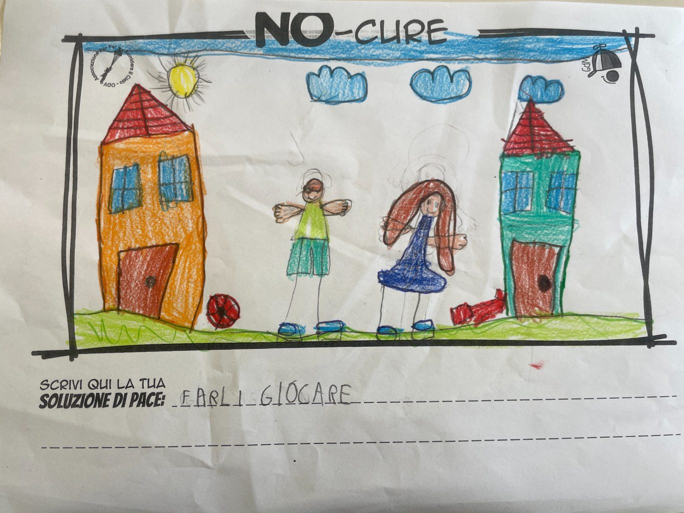 L’opera di sensibilizzazione si si esprime concretamente con la creazione di un DISEGNO DELLA MERAVIGLIA che andrà ad aiutare una delle 12 fatiche. Allo stesso modo chiederemo a tutti i partecipanti di andare a scrivere una “Soluzione di Pace” che possa aiutare anch’essa una delle 12 fatiche dei Bambini della guerra.