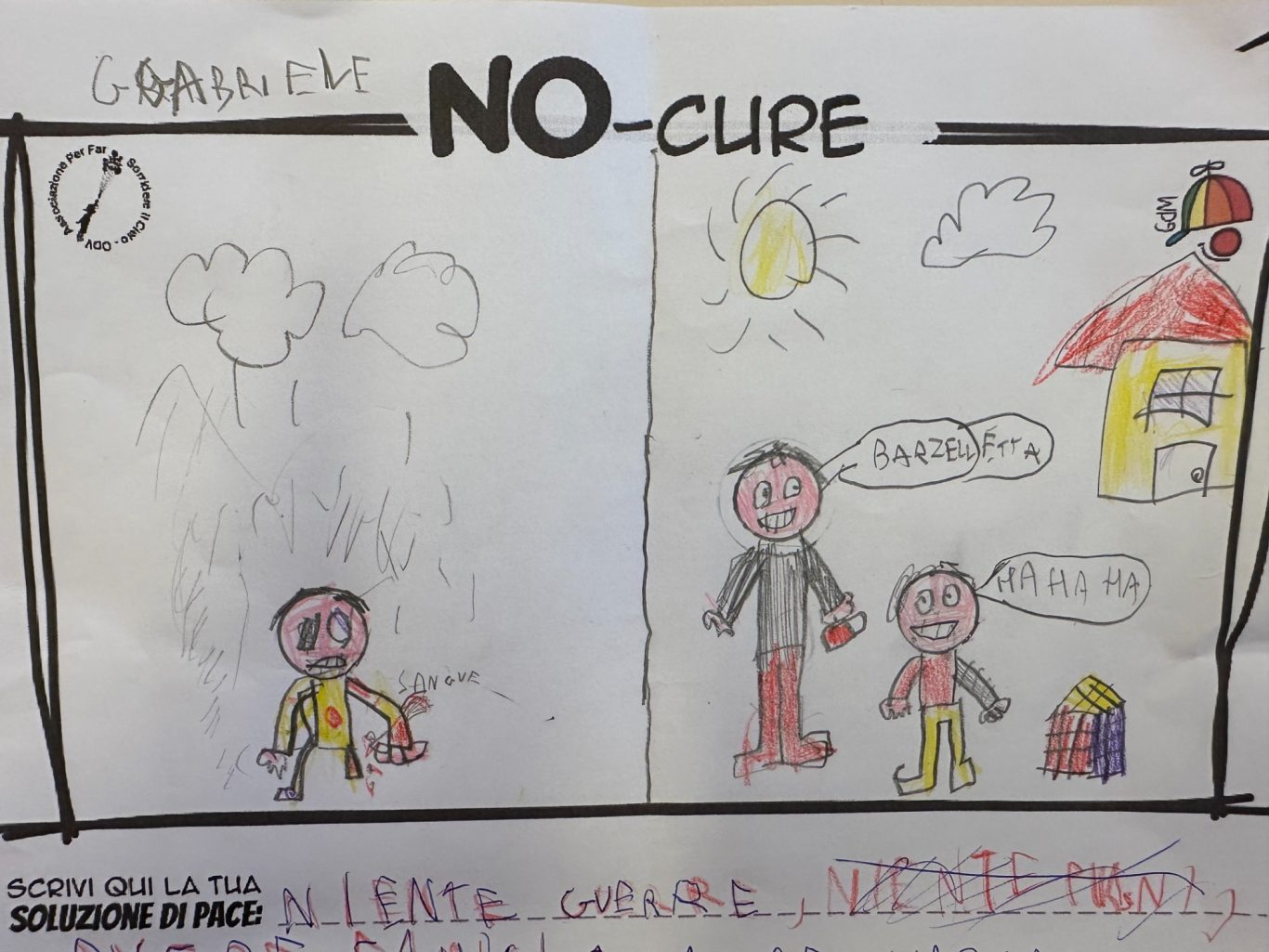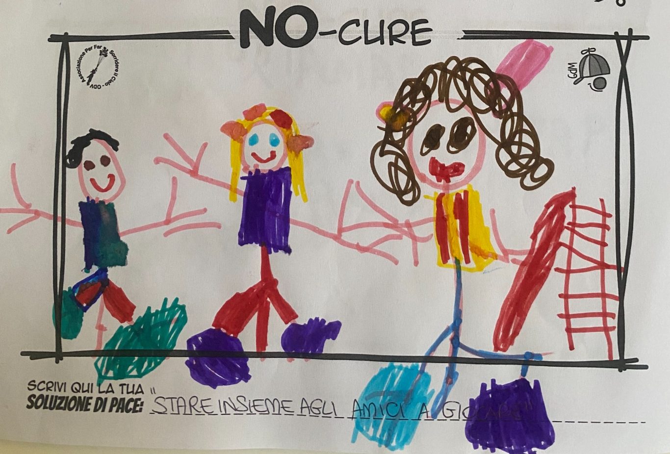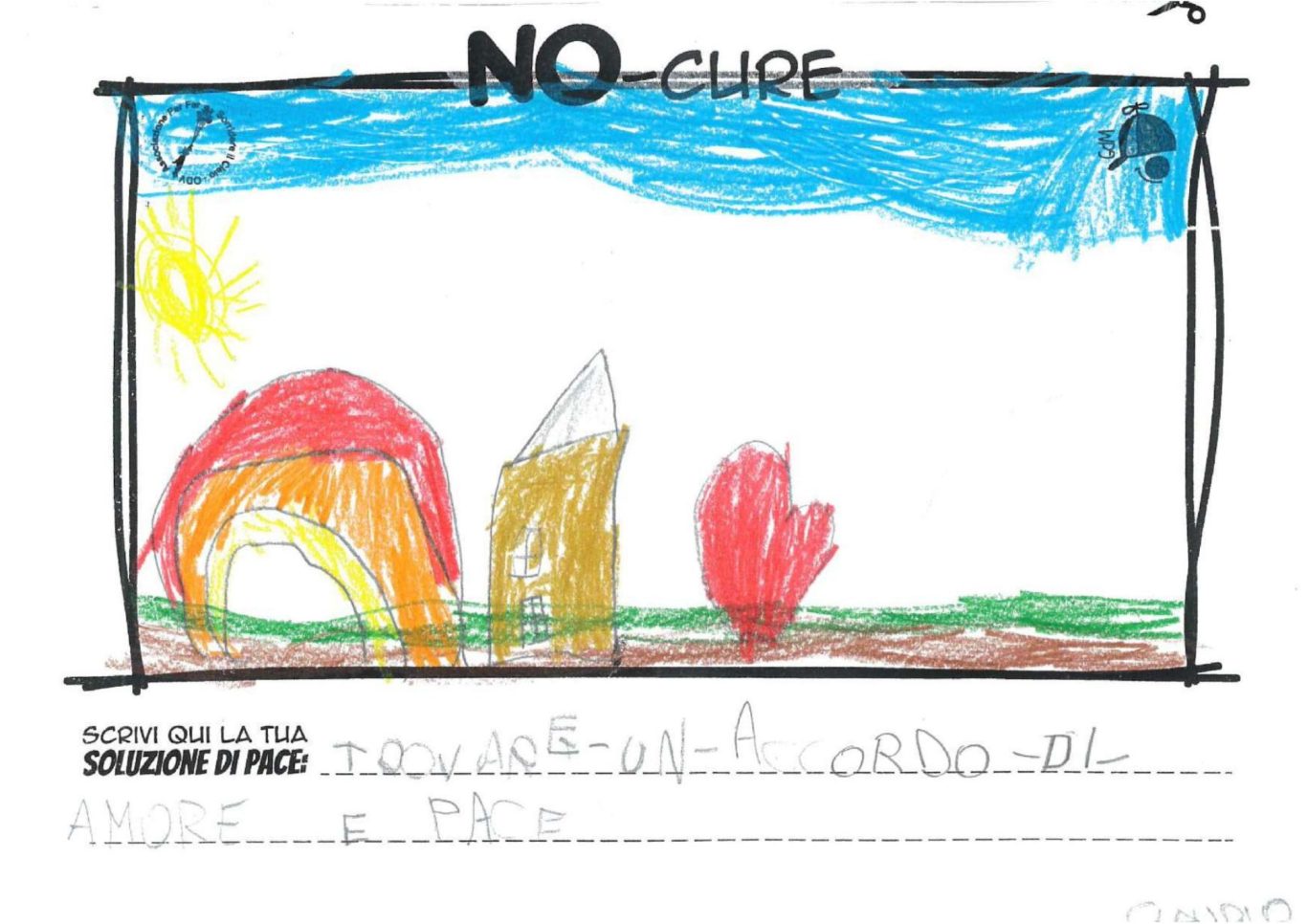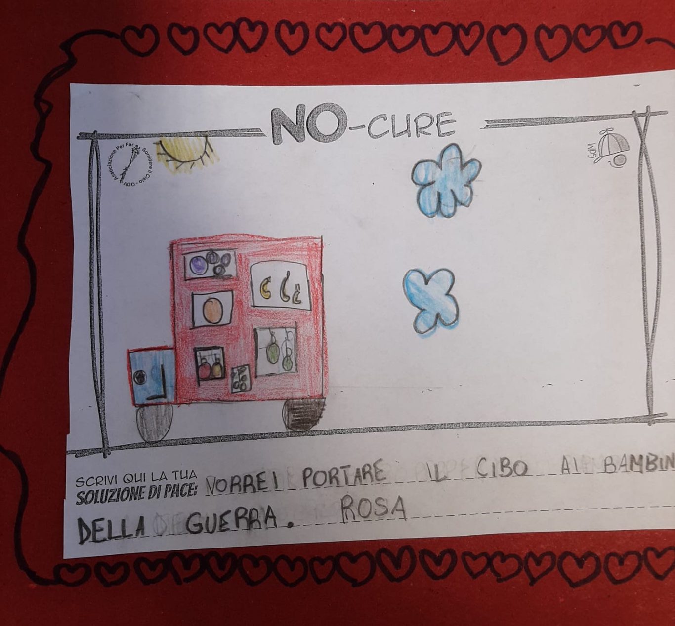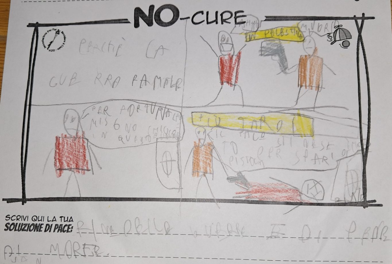 L’opera di sensibilizzazione si si esprime concretamente con la creazione di un DISEGNO DELLA MERAVIGLIA che andrà ad aiutare una delle 12 fatiche. Allo stesso modo chiederemo a tutti i partecipanti di andare a scrivere una “Soluzione di Pace” che possa aiutare anch’essa una delle 12 fatiche dei Bambini della guerra.
