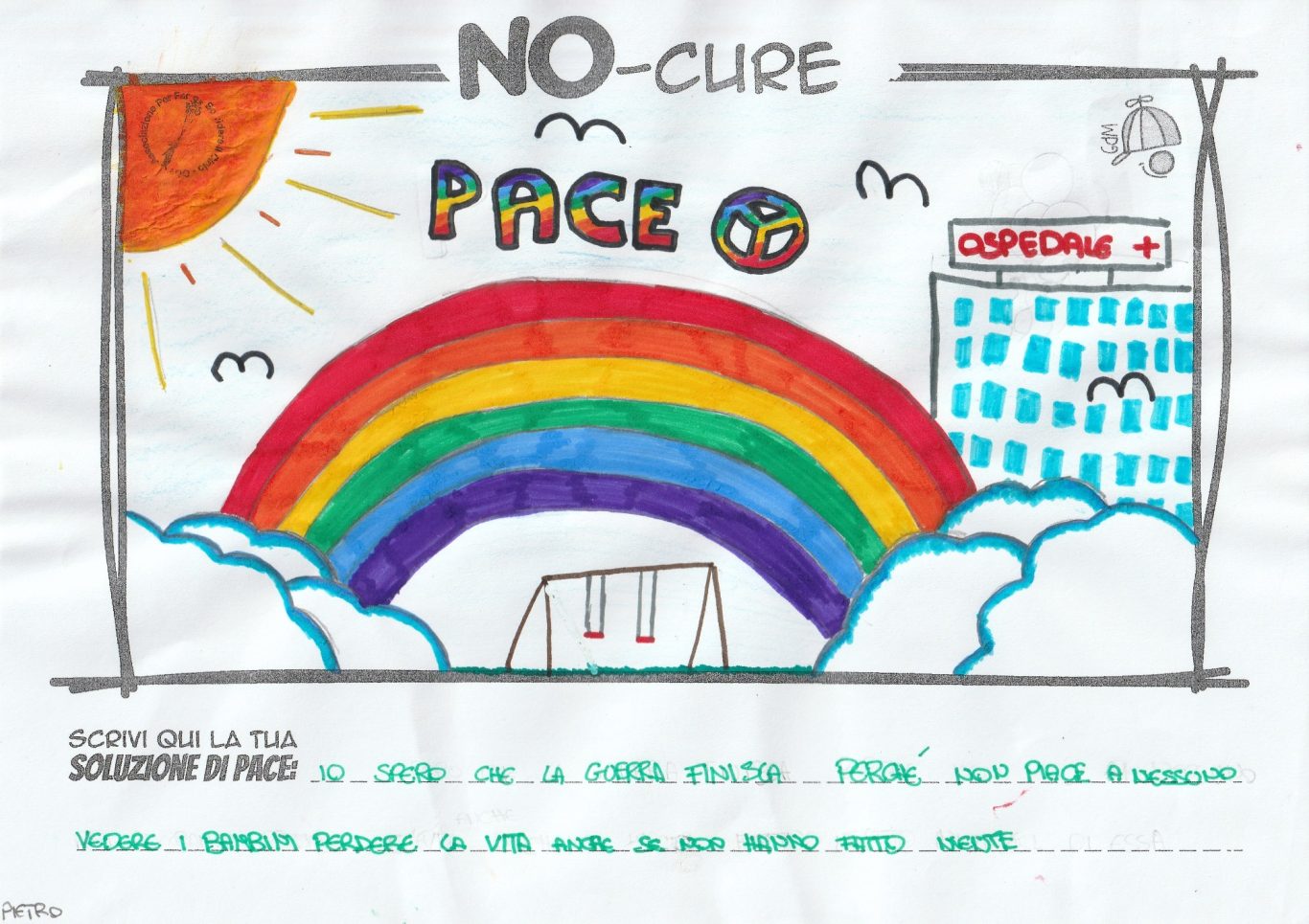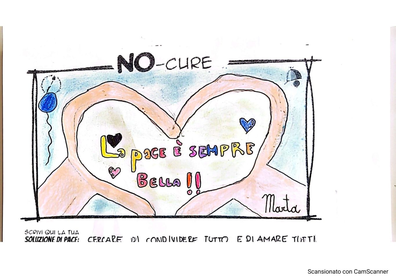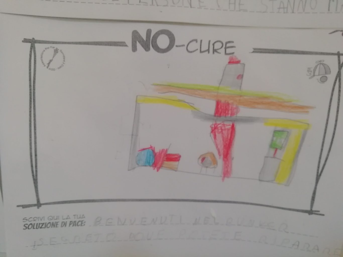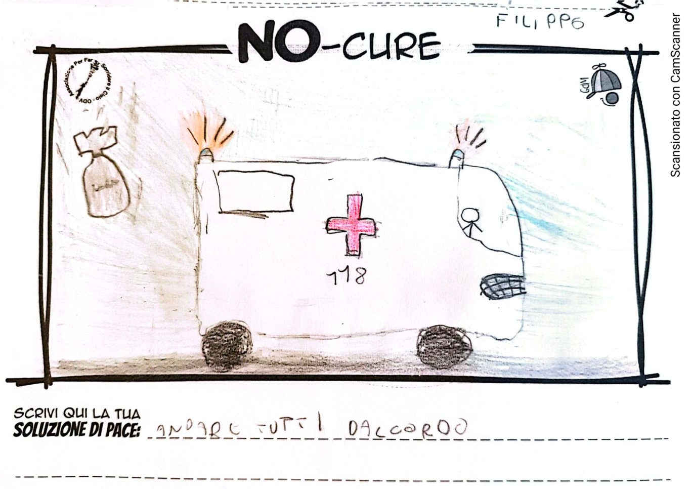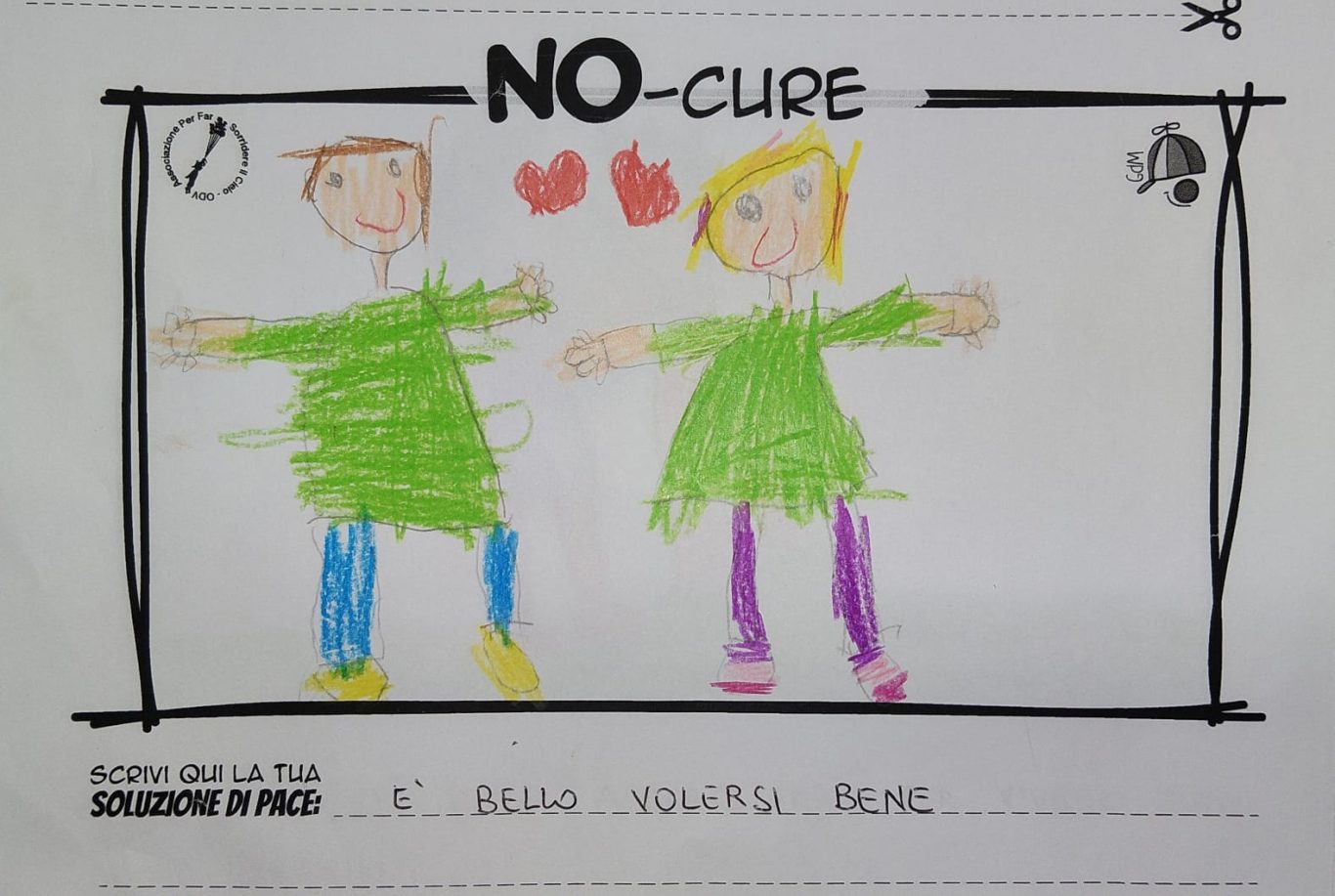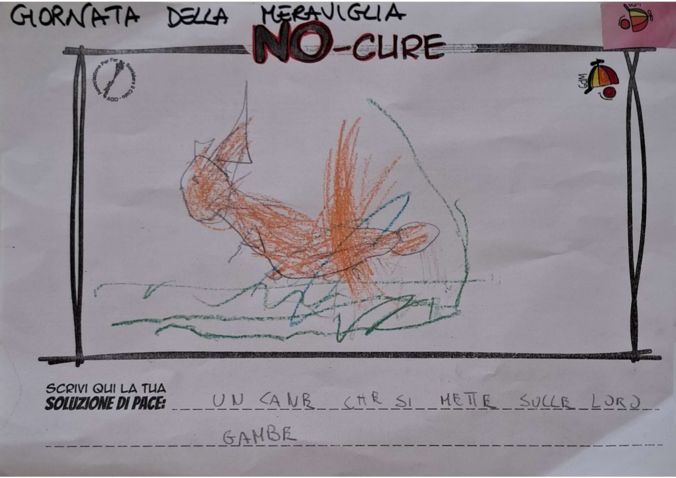 L’opera di sensibilizzazione si si esprime concretamente con la creazione di un DISEGNO DELLA MERAVIGLIA che andrà ad aiutare una delle 12 fatiche. Allo stesso modo chiederemo a tutti i partecipanti di andare a scrivere una “Soluzione di Pace” che possa aiutare anch’essa una delle 12 fatiche dei Bambini della guerra.
