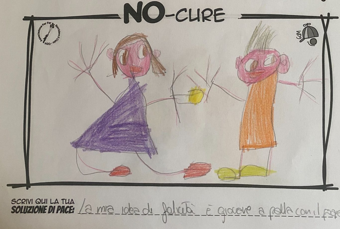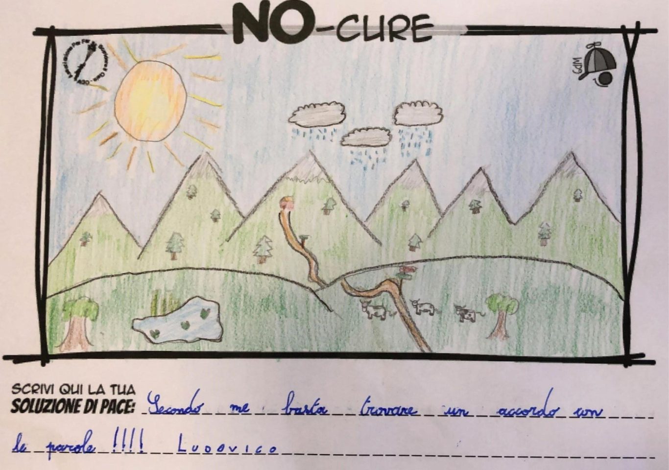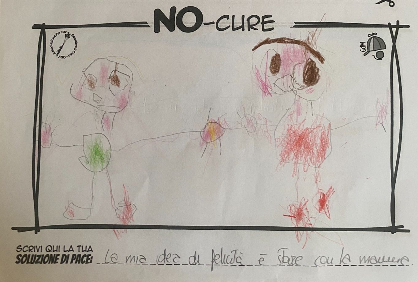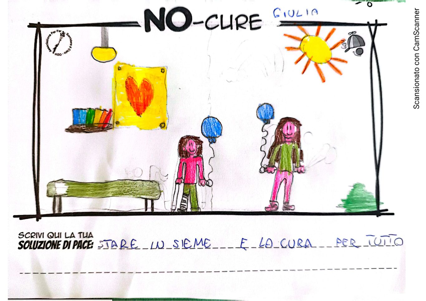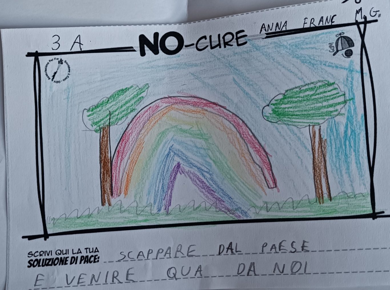 L’opera di sensibilizzazione si si esprime concretamente con la creazione di un DISEGNO DELLA MERAVIGLIA che andrà ad aiutare una delle 12 fatiche. Allo stesso modo chiederemo a tutti i partecipanti di andare a scrivere una “Soluzione di Pace” che possa aiutare anch’essa una delle 12 fatiche dei Bambini della guerra.