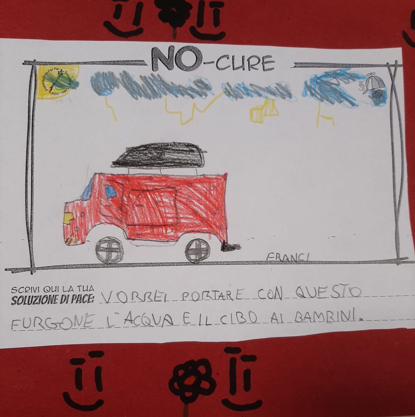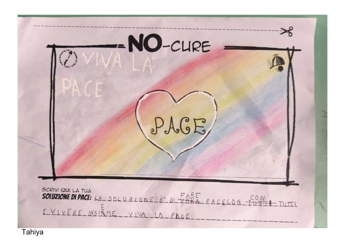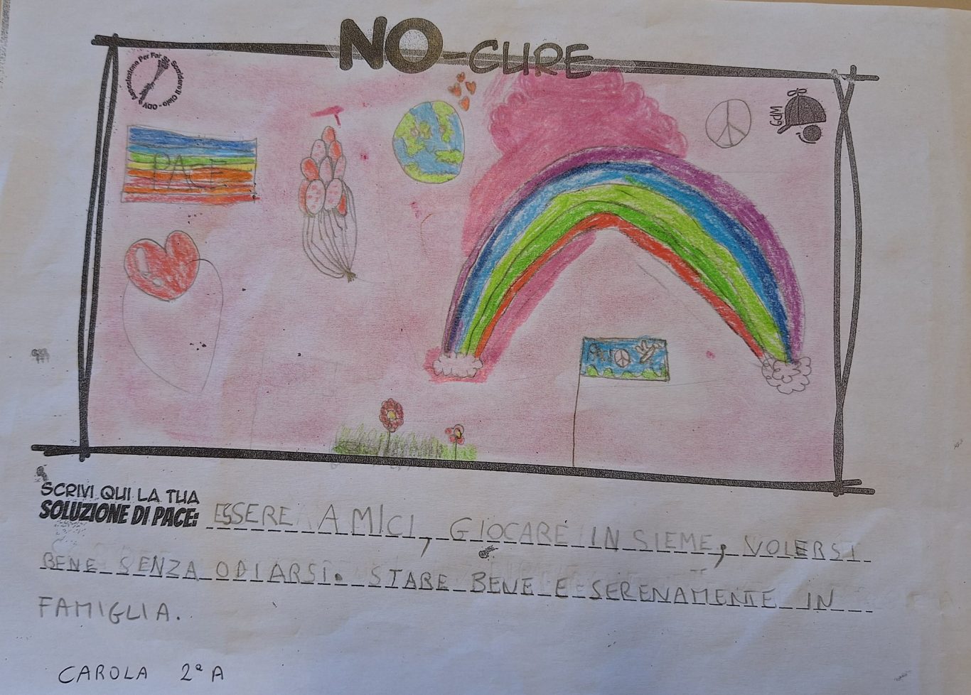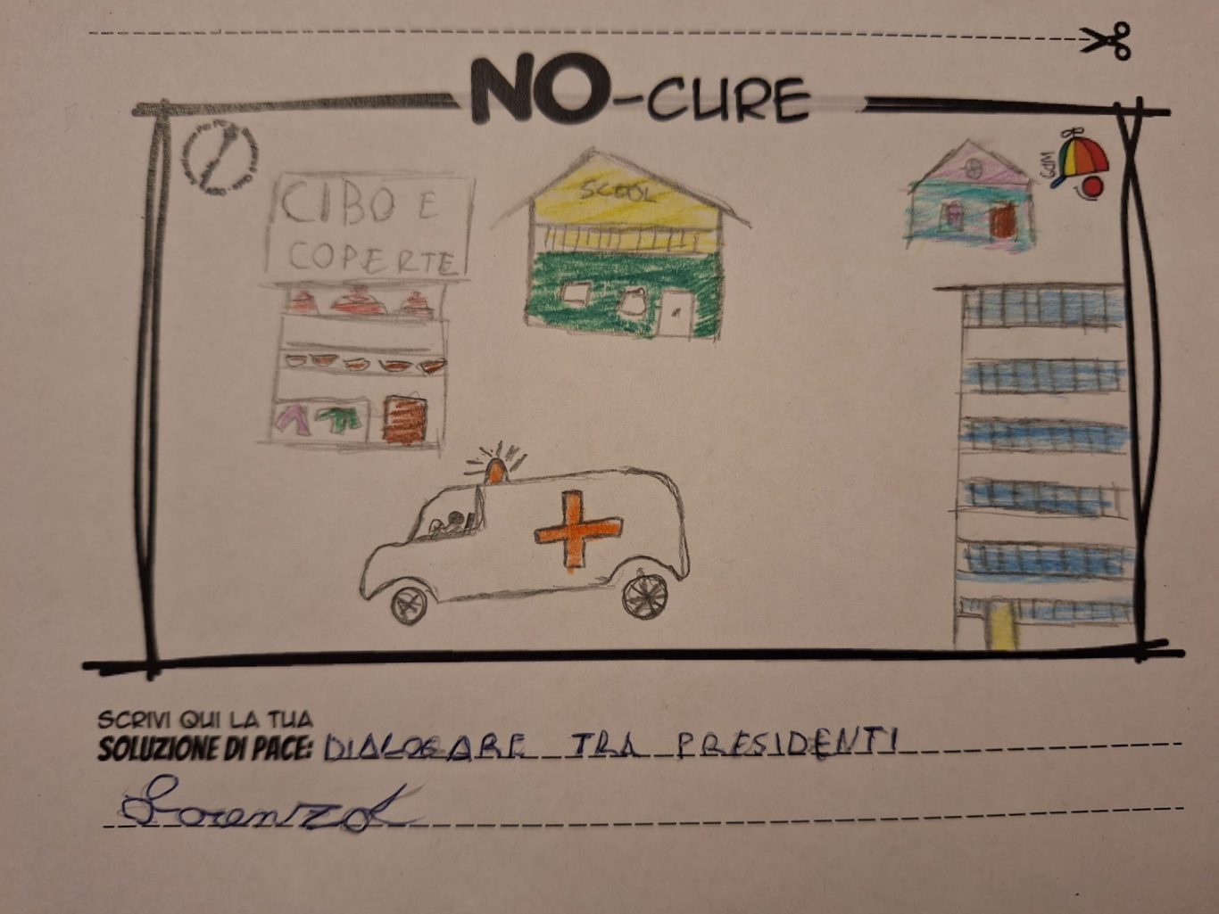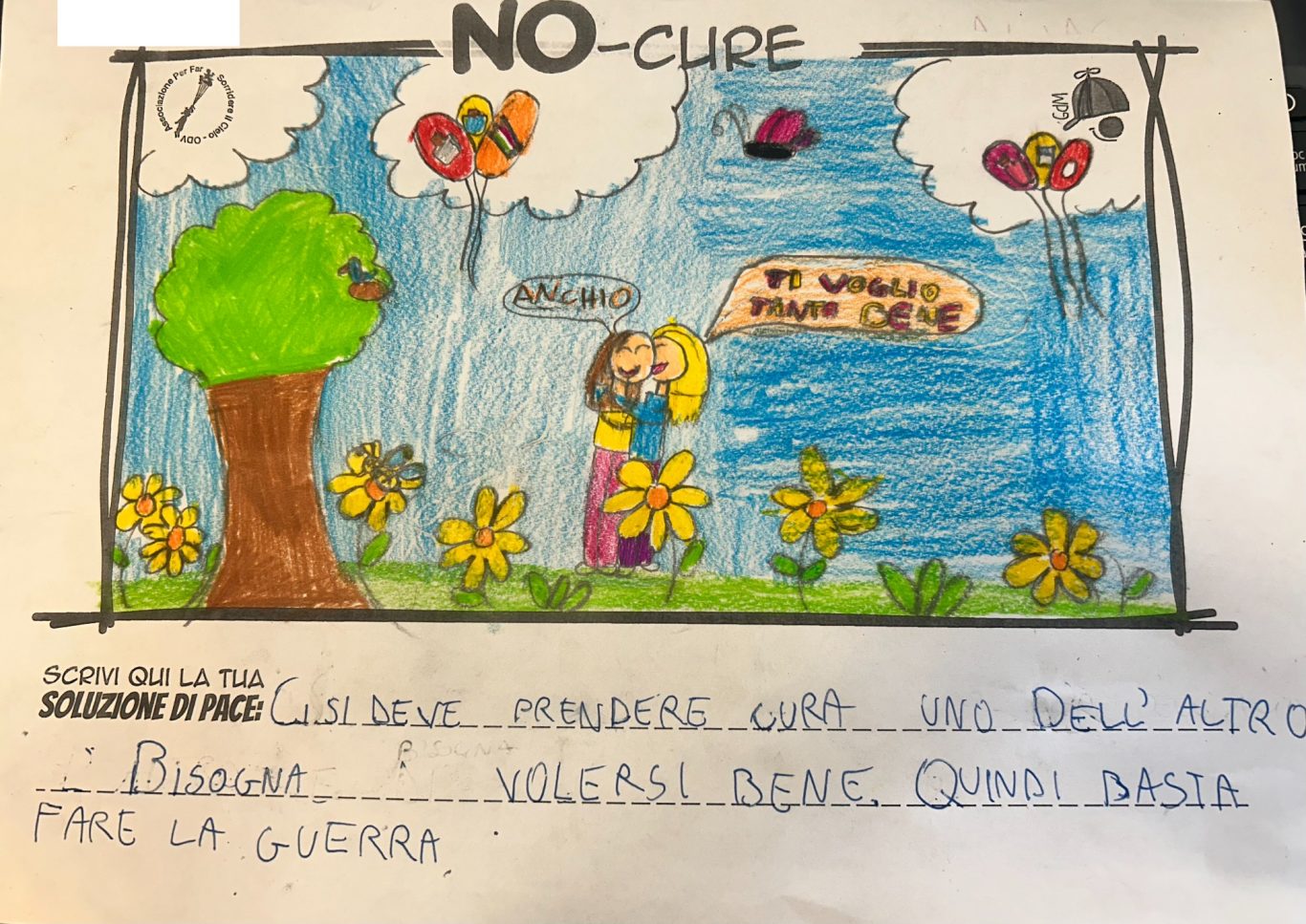 L’opera di sensibilizzazione si si esprime concretamente con la creazione di un DISEGNO DELLA MERAVIGLIA che andrà ad aiutare una delle 12 fatiche. Allo stesso modo chiederemo a tutti i partecipanti di andare a scrivere una “Soluzione di Pace” che possa aiutare anch’essa una delle 12 fatiche dei Bambini della guerra.