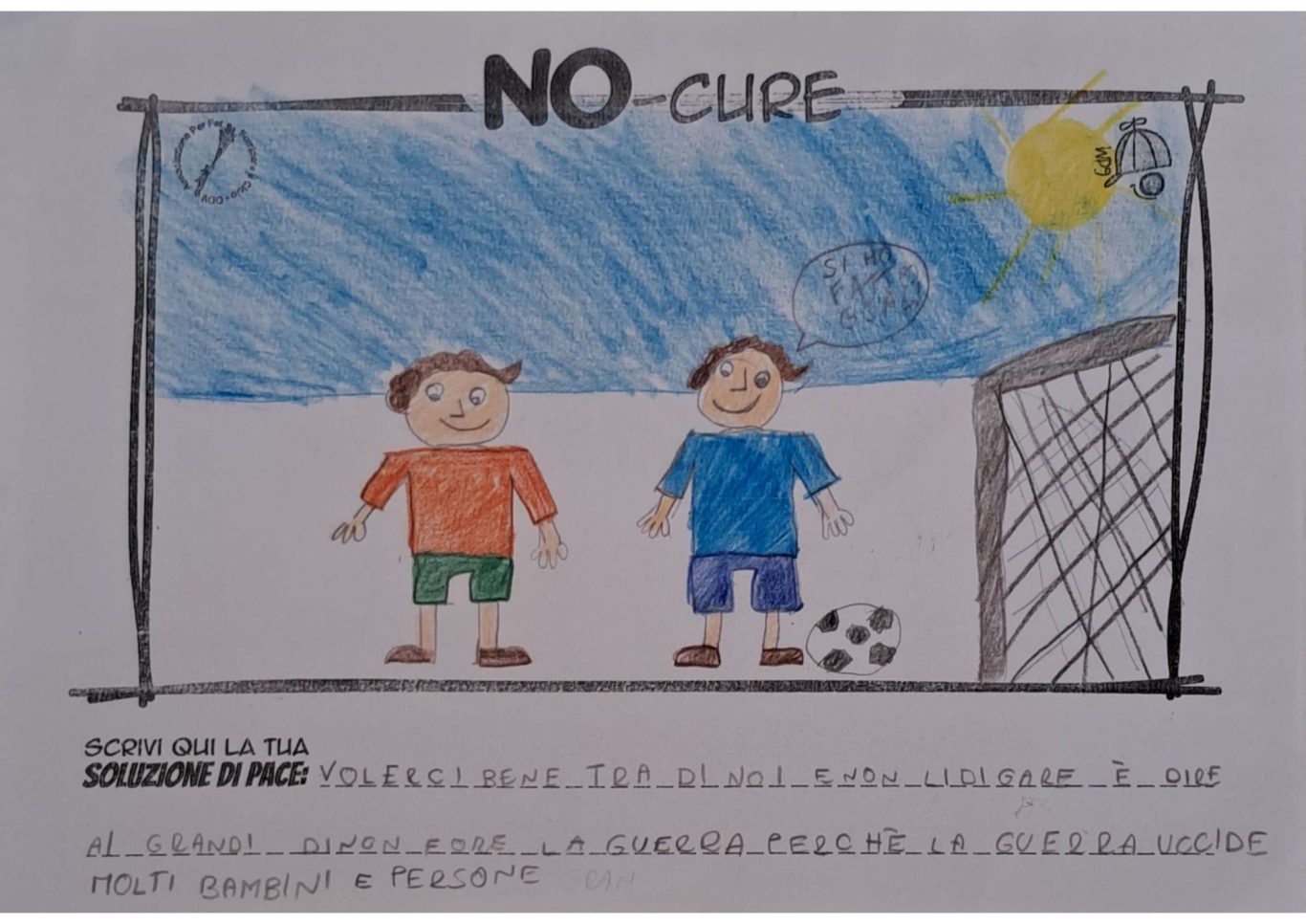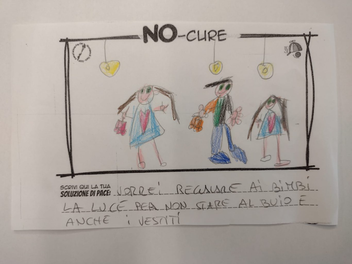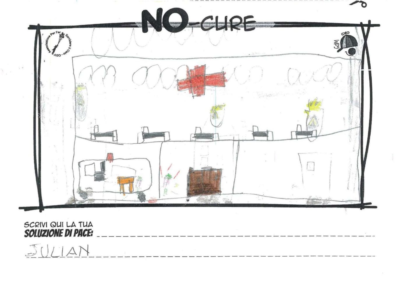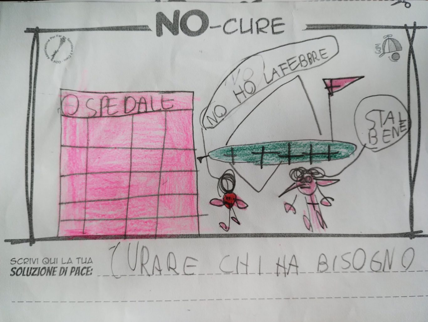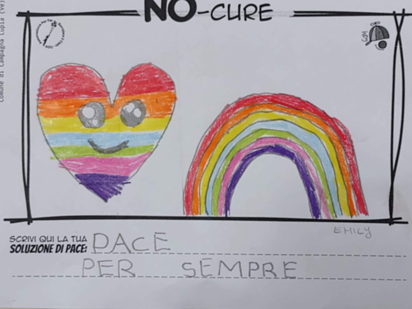 L’opera di sensibilizzazione si si esprime concretamente con la creazione di un DISEGNO DELLA MERAVIGLIA che andrà ad aiutare una delle 12 fatiche. Allo stesso modo chiederemo a tutti i partecipanti di andare a scrivere una “Soluzione di Pace” che possa aiutare anch’essa una delle 12 fatiche dei Bambini della guerra.
