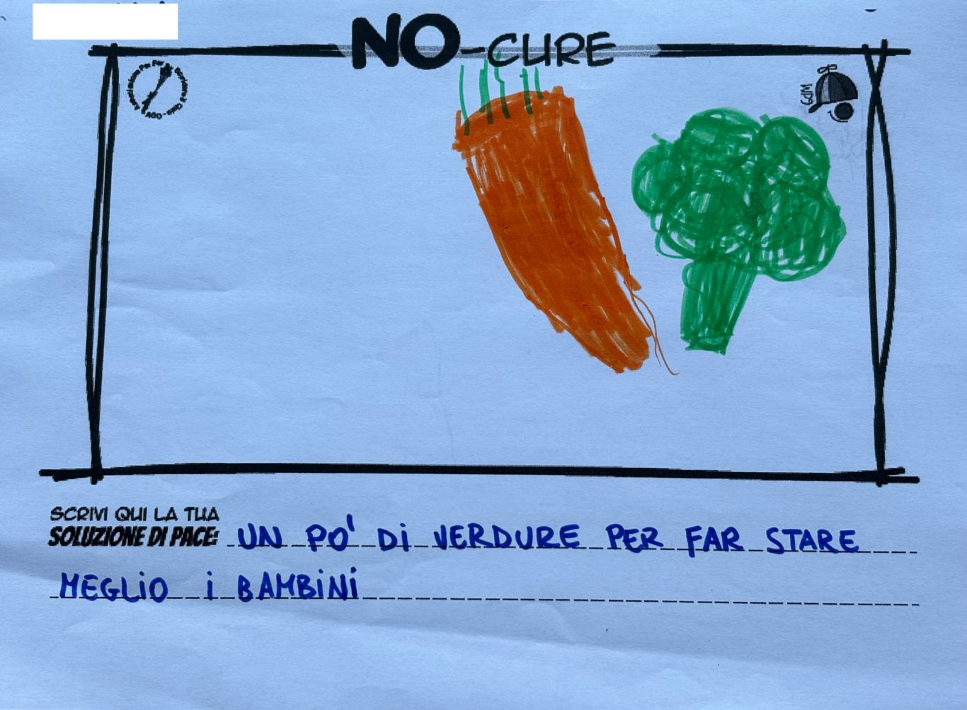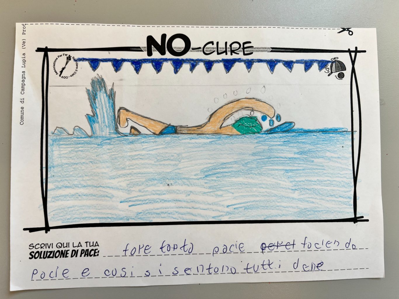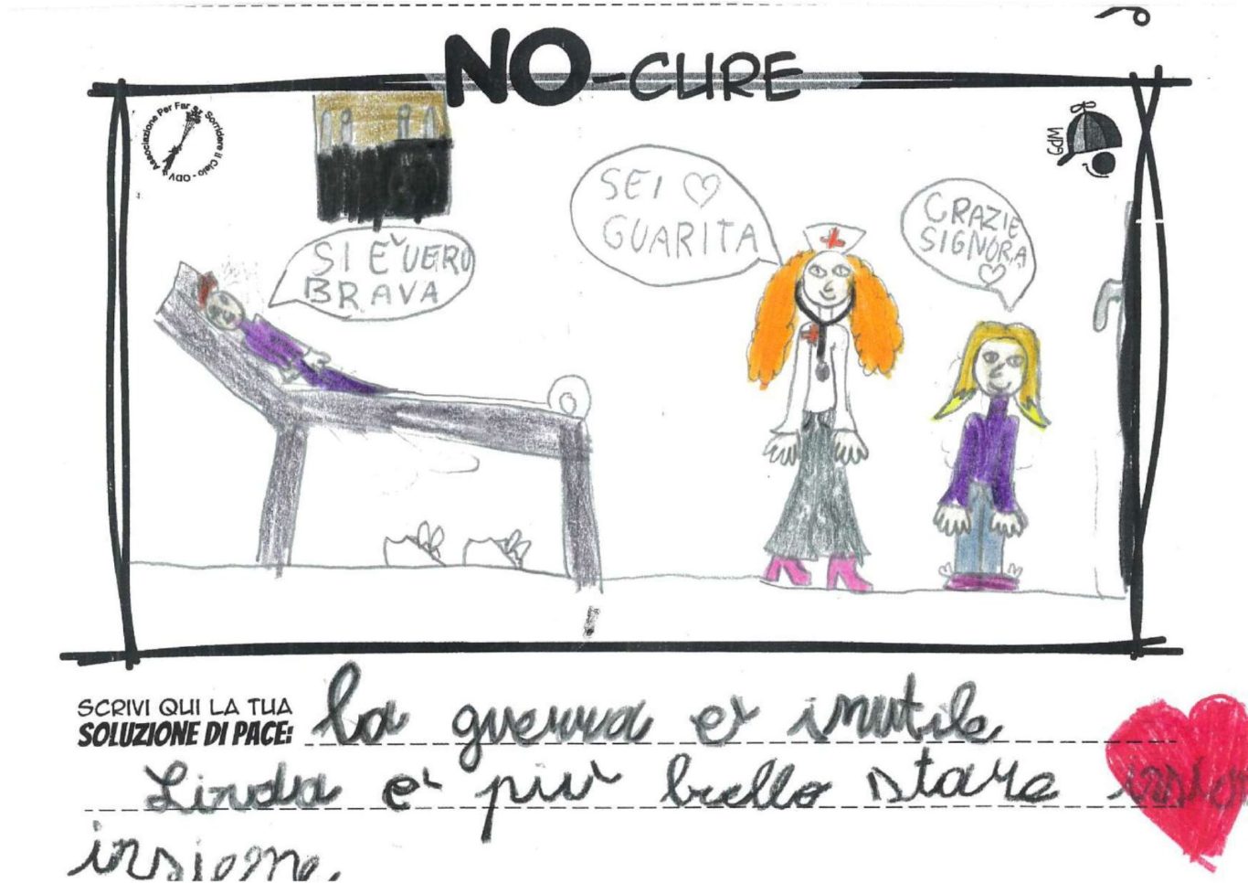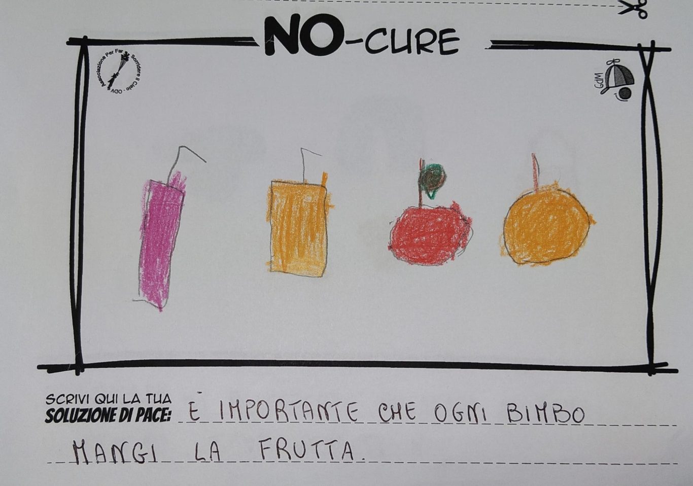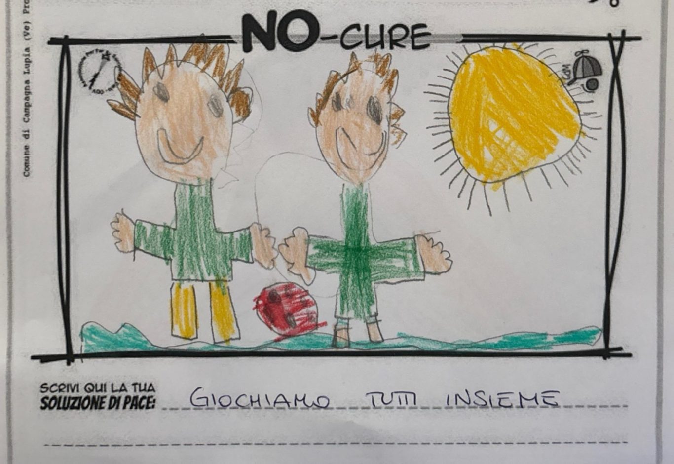 L’opera di sensibilizzazione si si esprime concretamente con la creazione di un DISEGNO DELLA MERAVIGLIA che andrà ad aiutare una delle 12 fatiche. Allo stesso modo chiederemo a tutti i partecipanti di andare a scrivere una “Soluzione di Pace” che possa aiutare anch’essa una delle 12 fatiche dei Bambini della guerra.