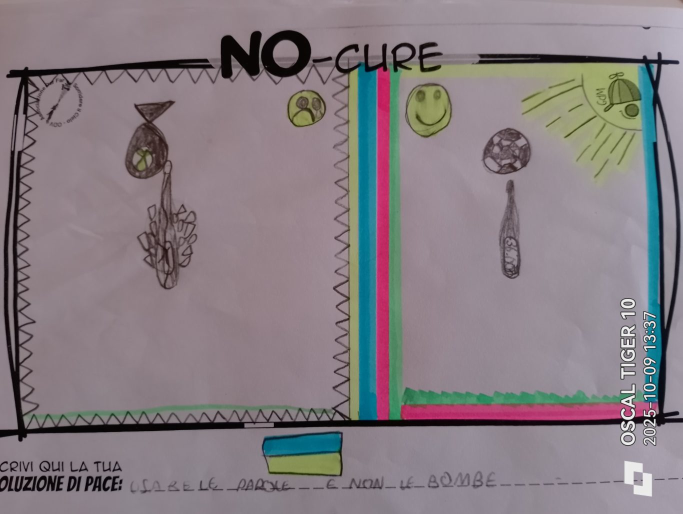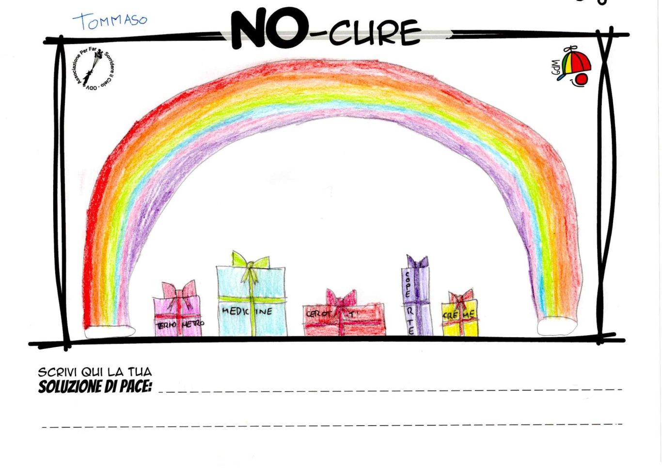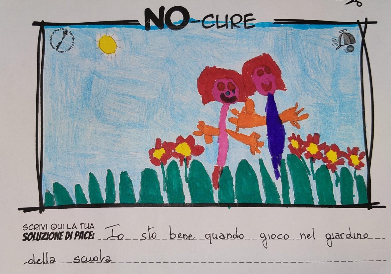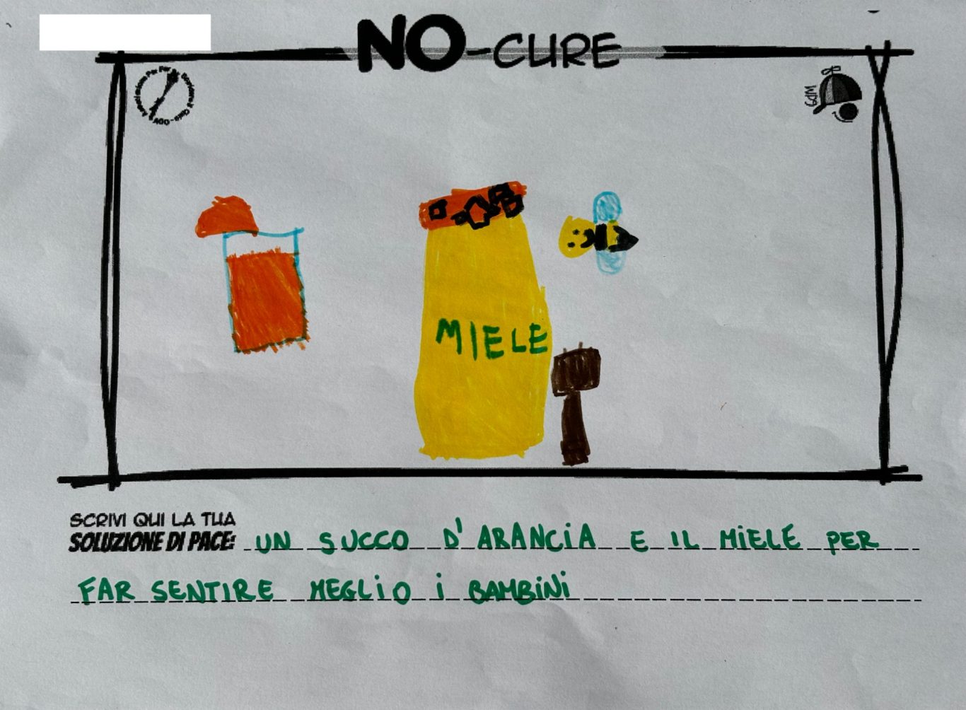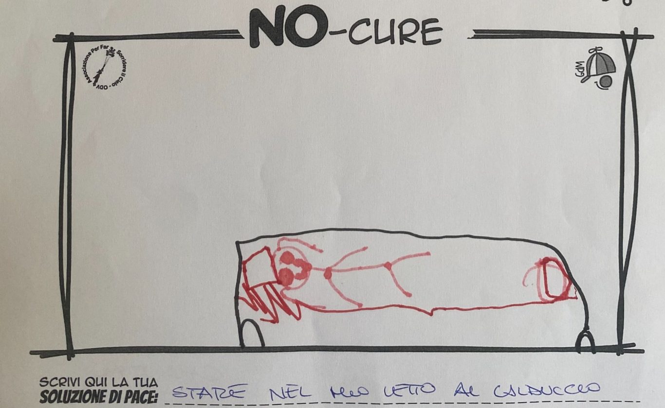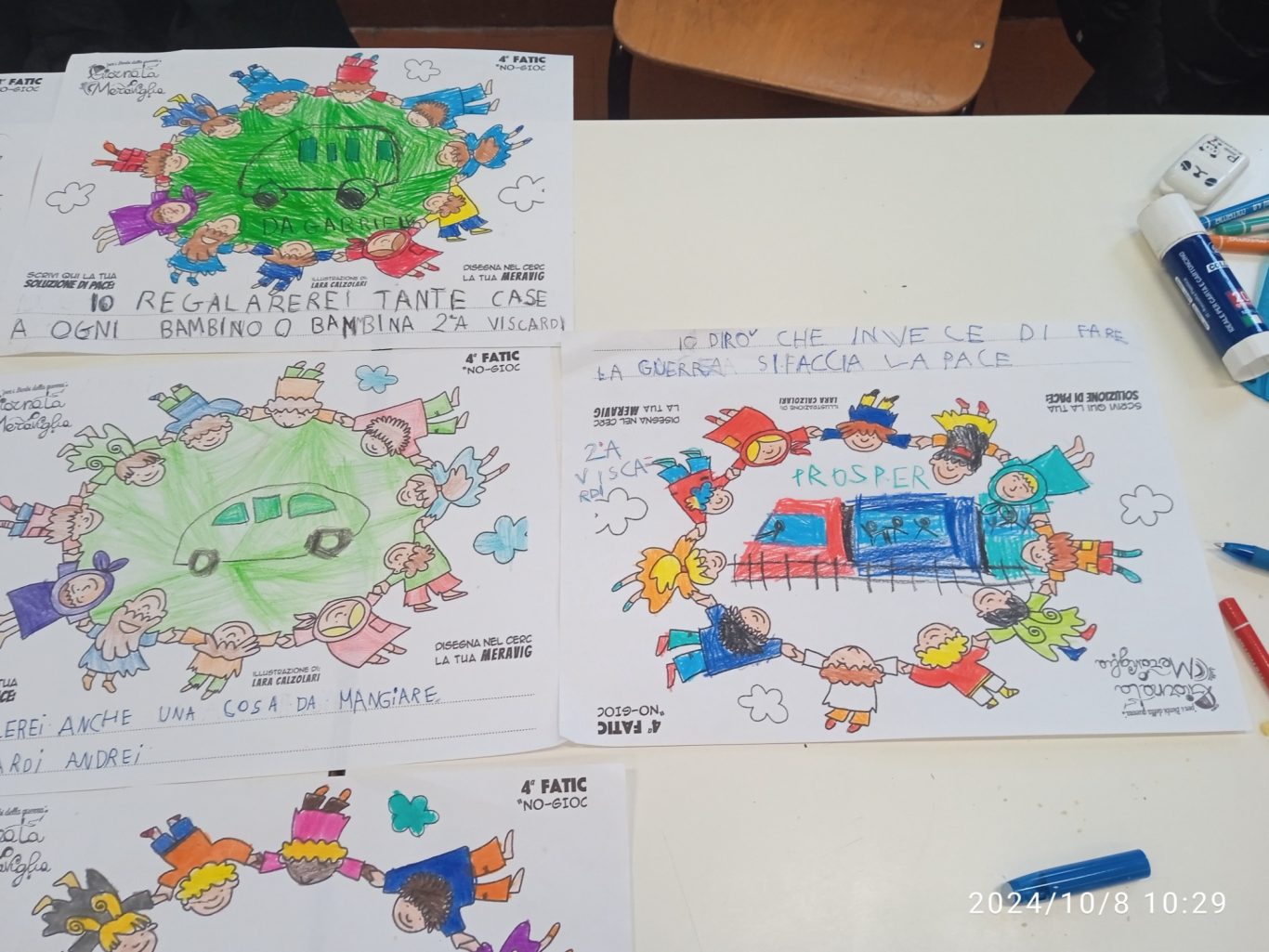 L’opera di sensibilizzazione si si esprime concretamente con la creazione di un DISEGNO DELLA MERAVIGLIA che andrà ad aiutare una delle 12 fatiche. Allo stesso modo chiederemo a tutti i partecipanti di andare a scrivere una “Soluzione di Pace” che possa aiutare anch’essa una delle 12 fatiche dei Bambini della guerra.