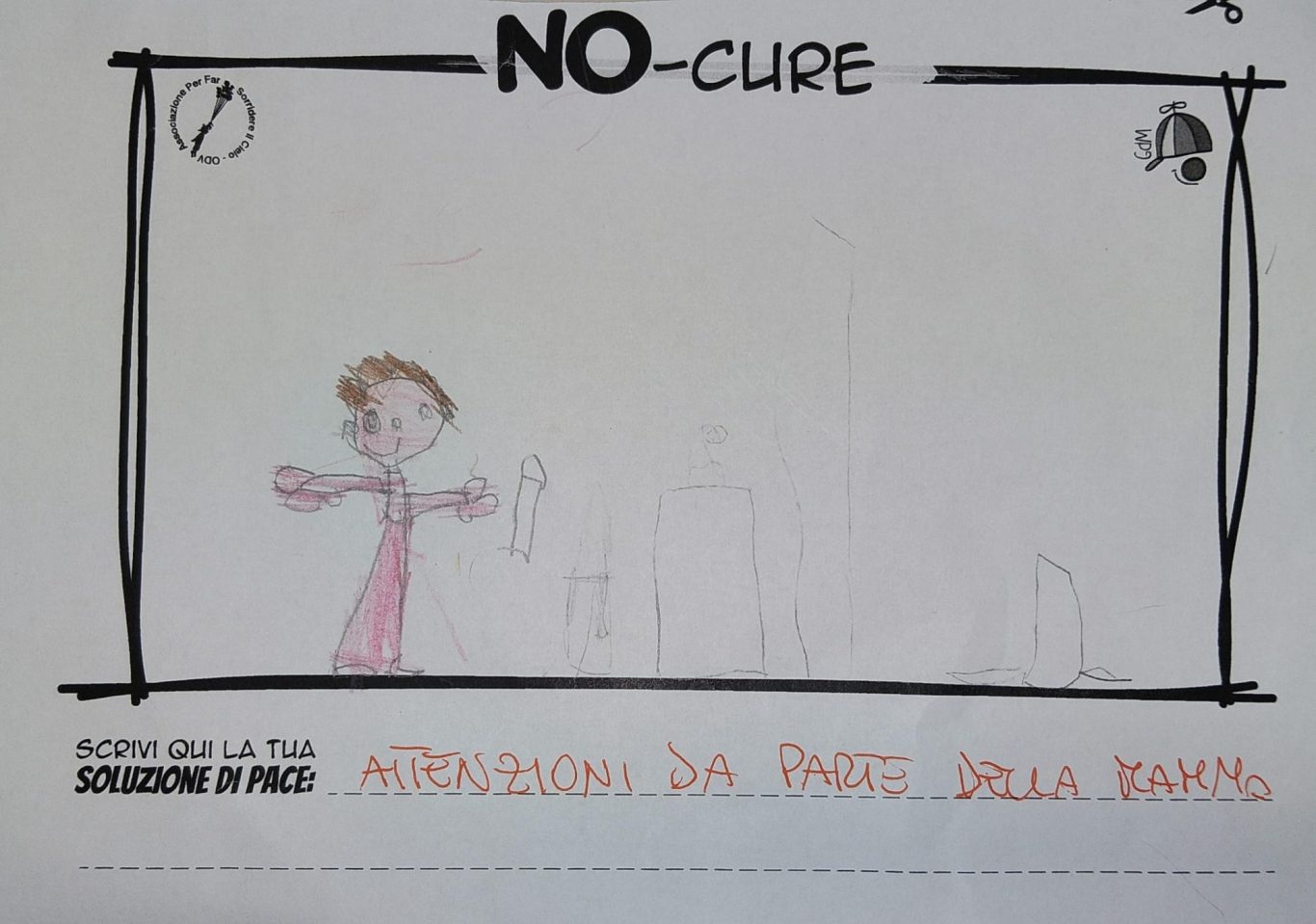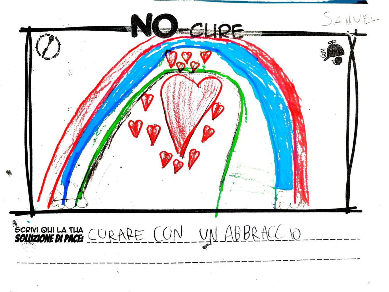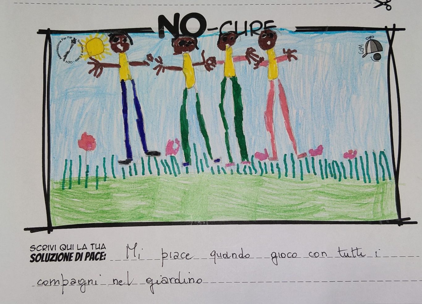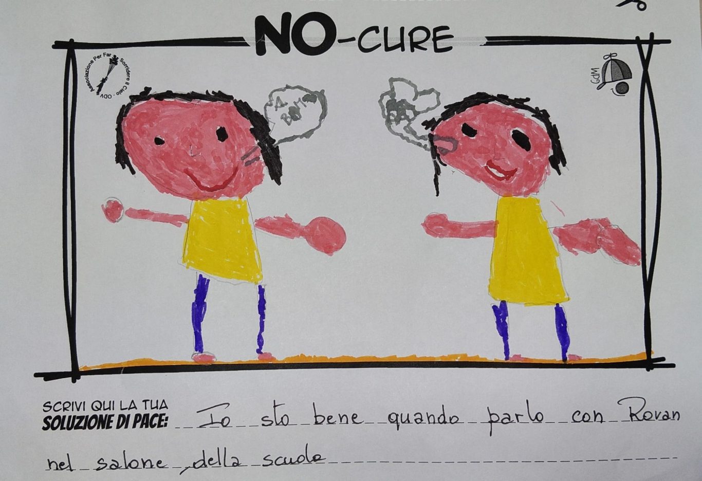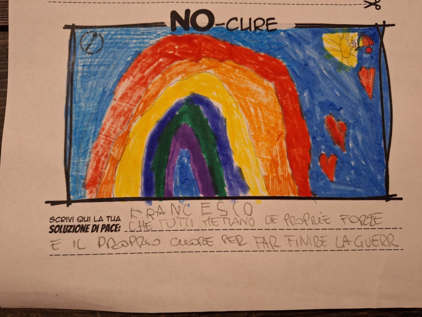 L’opera di sensibilizzazione si si esprime concretamente con la creazione di un DISEGNO DELLA MERAVIGLIA che andrà ad aiutare una delle 12 fatiche. Allo stesso modo chiederemo a tutti i partecipanti di andare a scrivere una “Soluzione di Pace” che possa aiutare anch’essa una delle 12 fatiche dei Bambini della guerra.