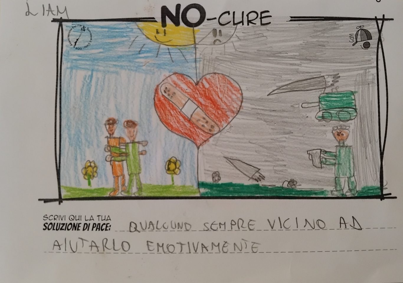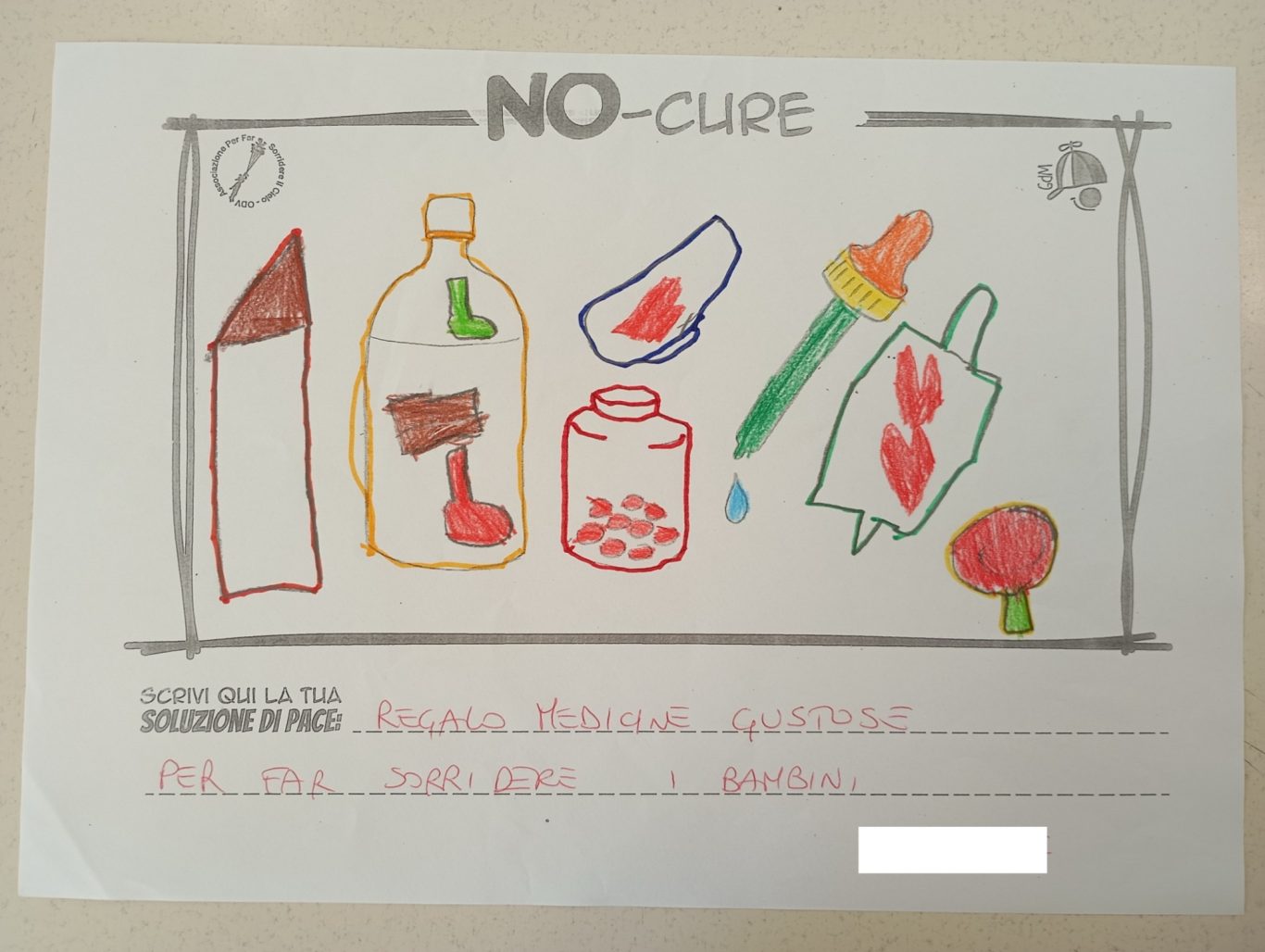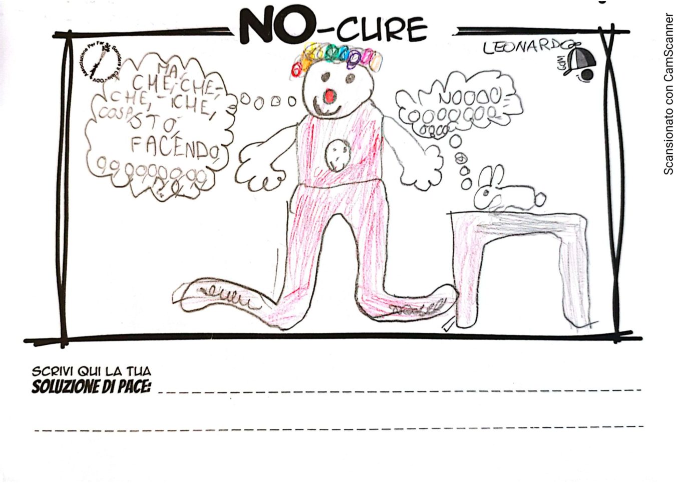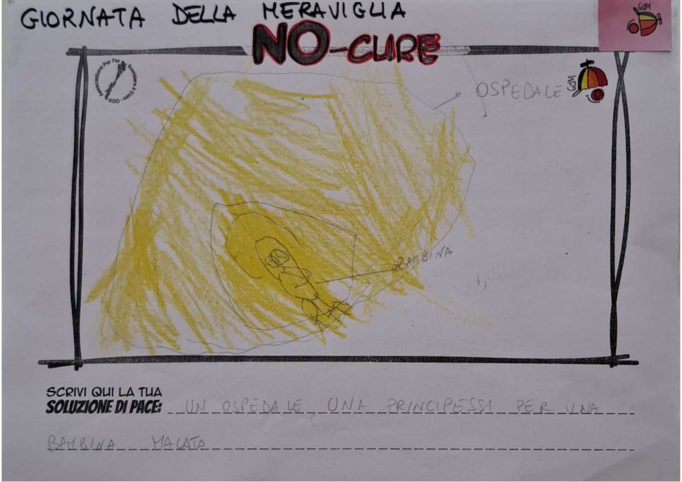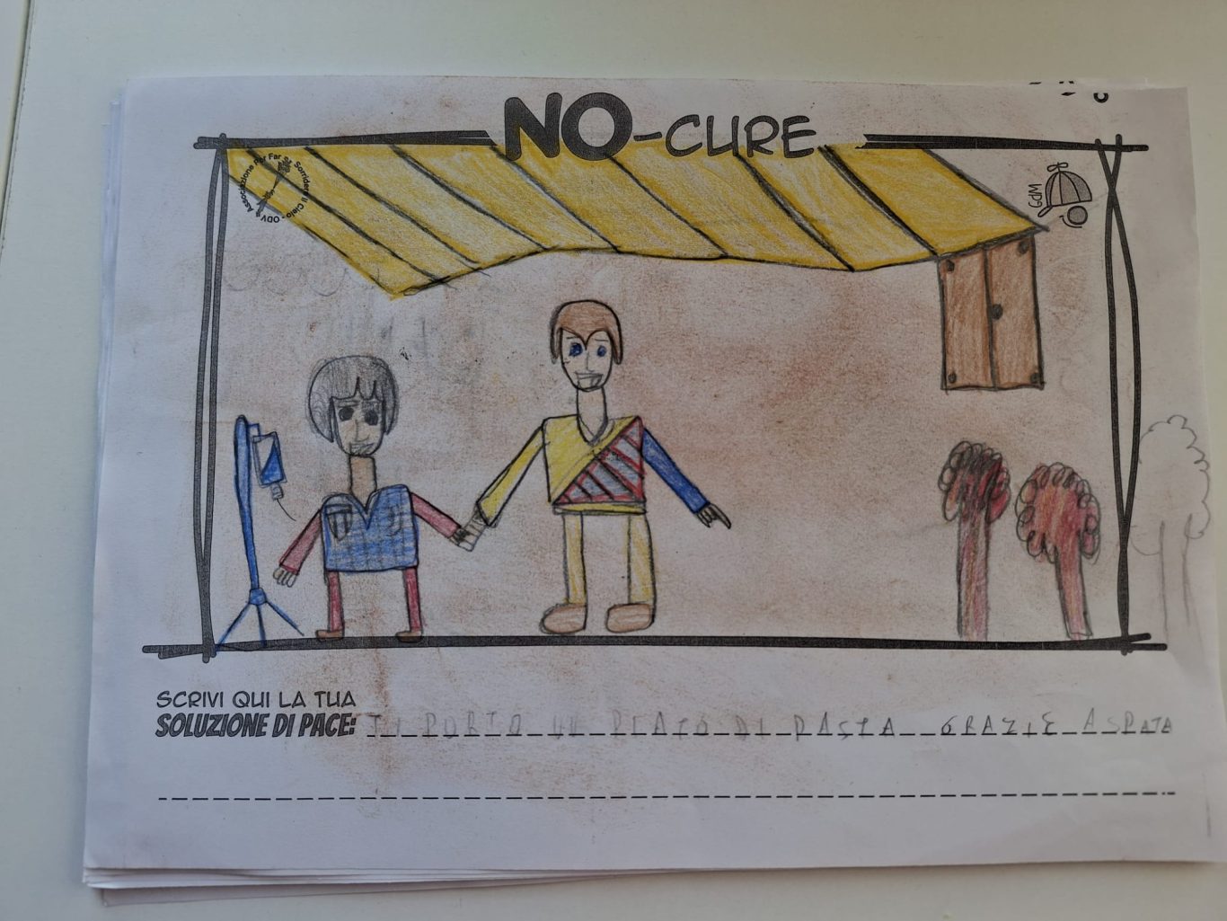 L’opera di sensibilizzazione si si esprime concretamente con la creazione di un DISEGNO DELLA MERAVIGLIA che andrà ad aiutare una delle 12 fatiche. Allo stesso modo chiederemo a tutti i partecipanti di andare a scrivere una “Soluzione di Pace” che possa aiutare anch’essa una delle 12 fatiche dei Bambini della guerra.