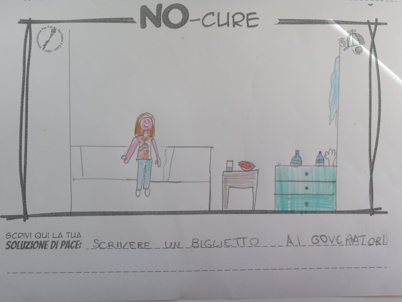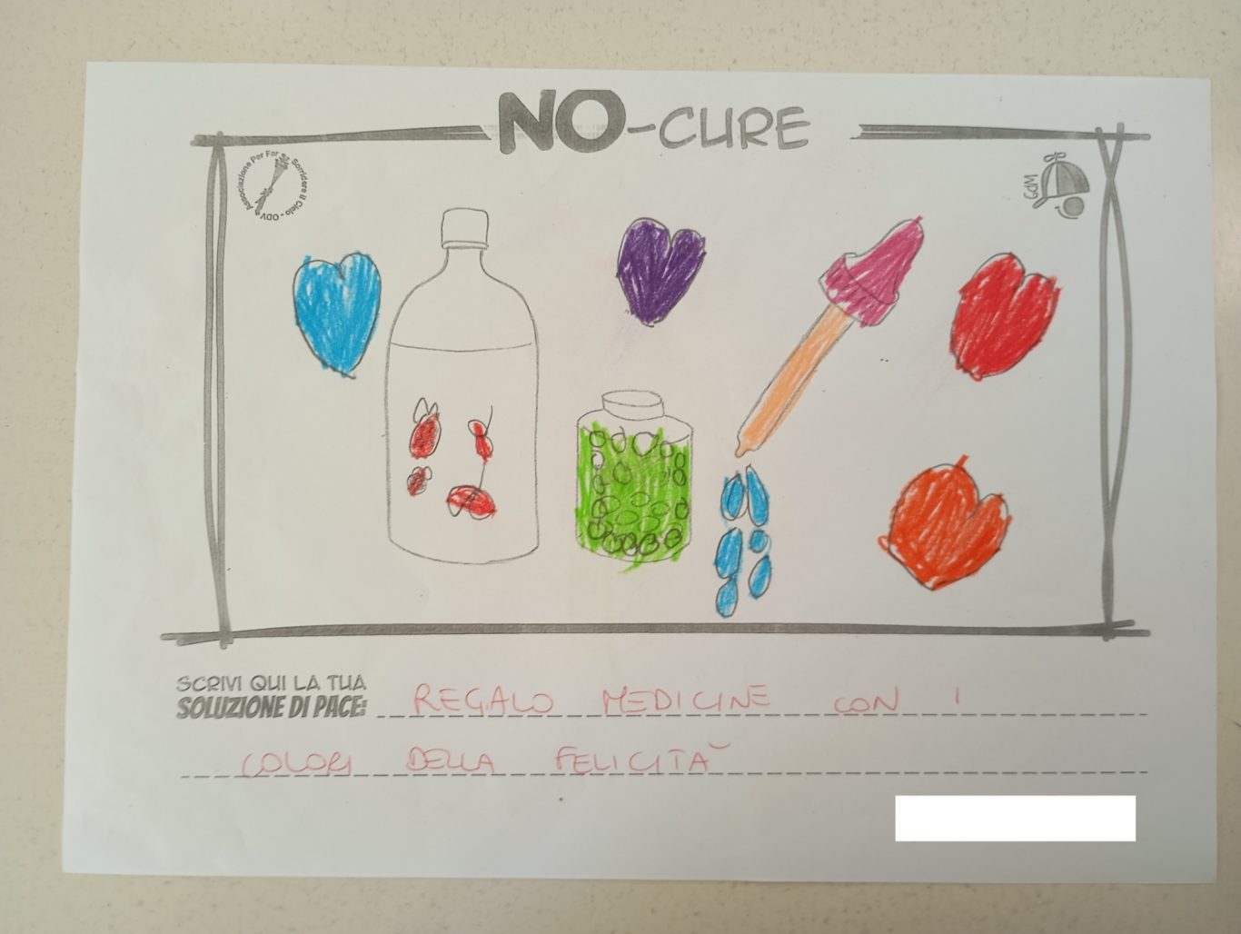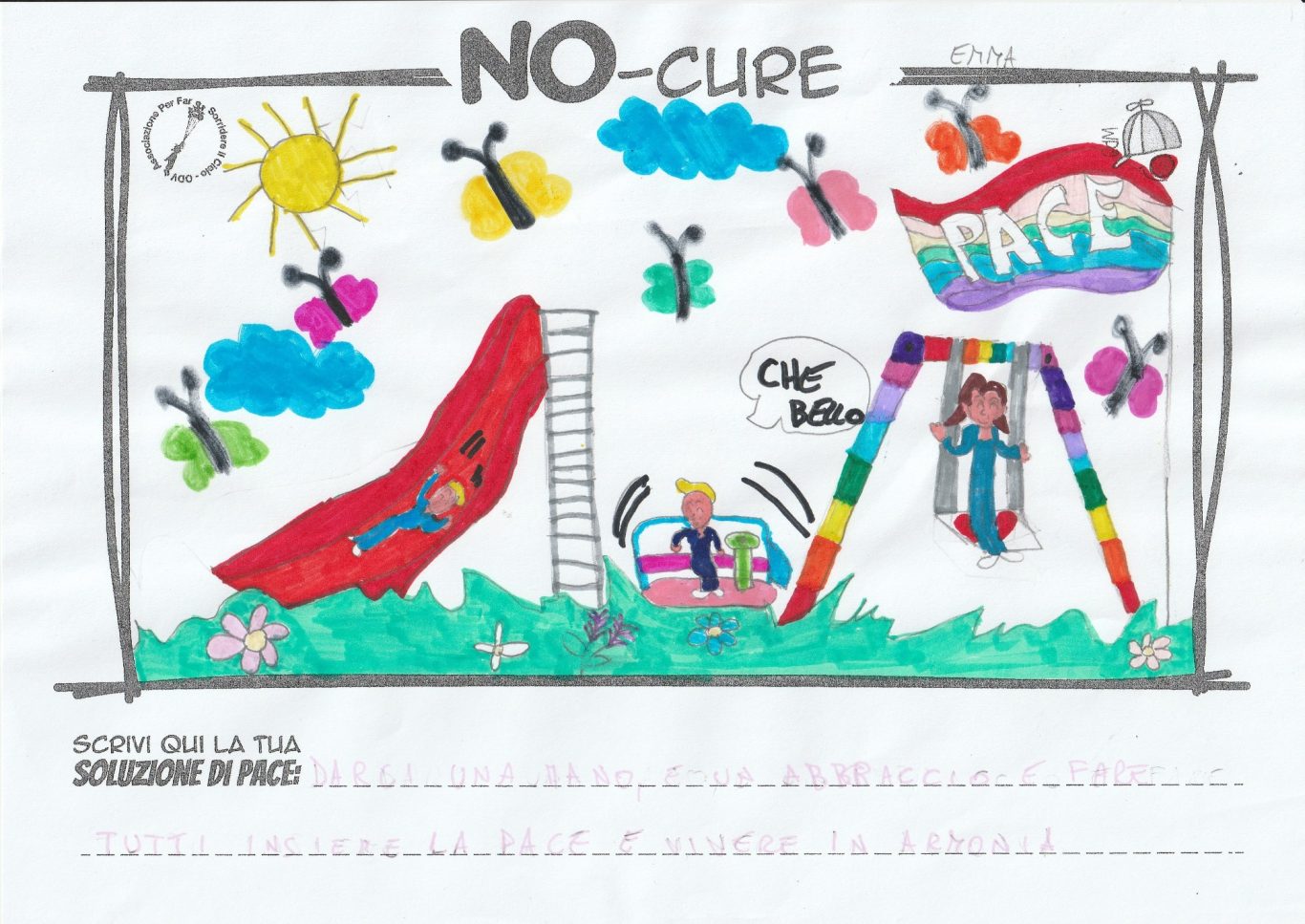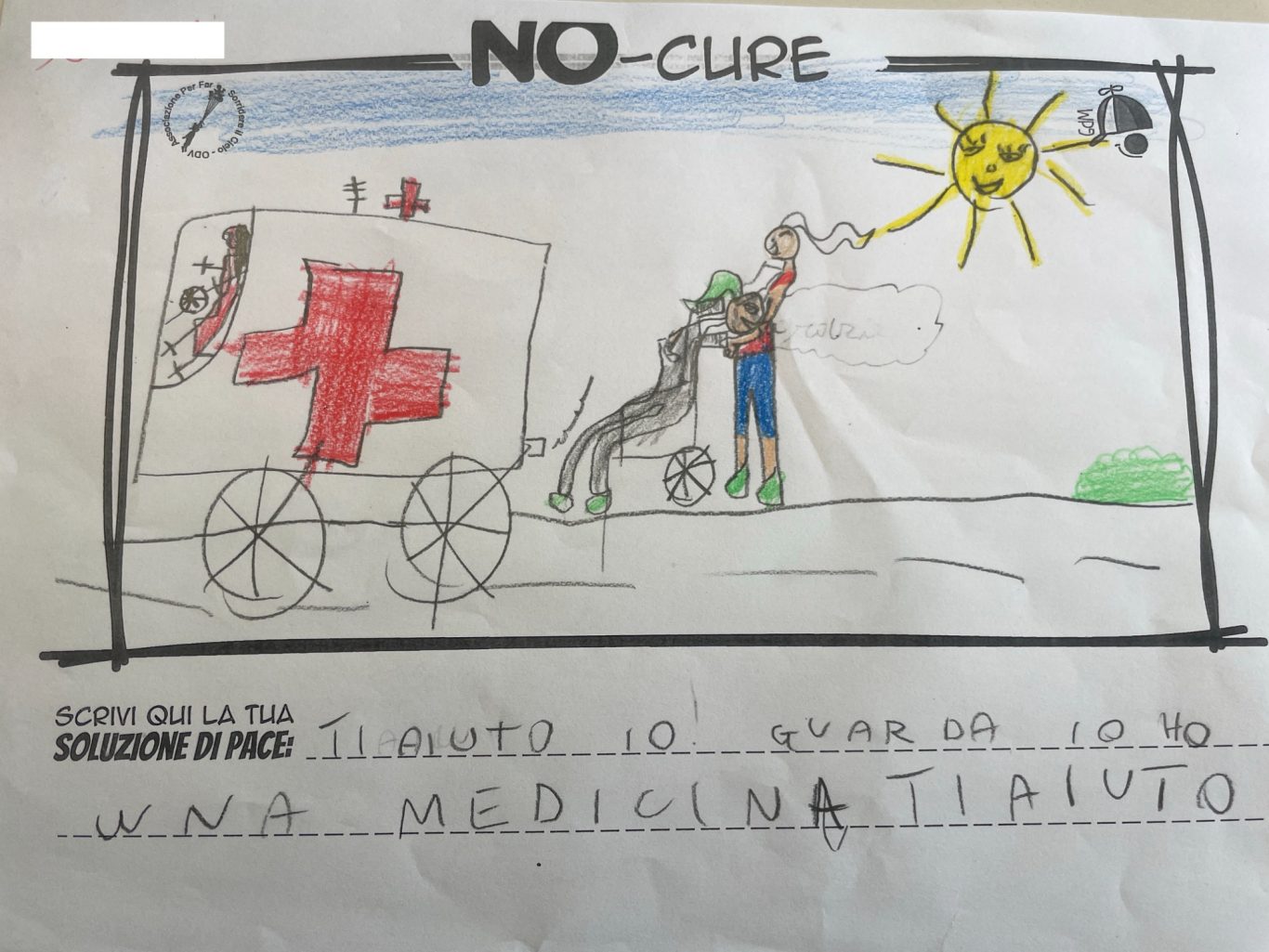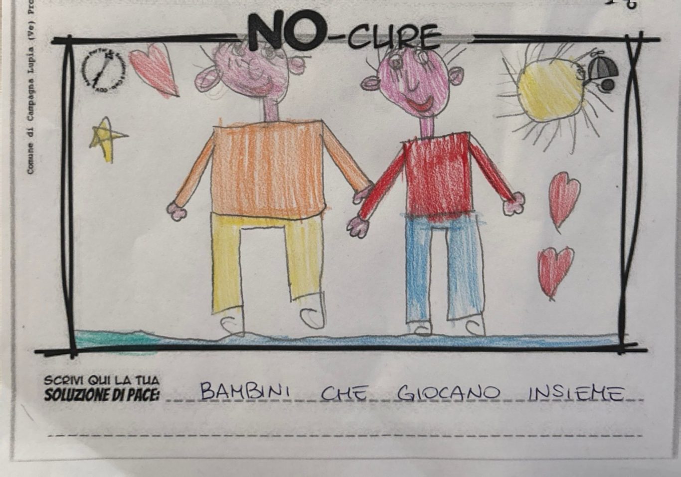 L’opera di sensibilizzazione si si esprime concretamente con la creazione di un DISEGNO DELLA MERAVIGLIA che andrà ad aiutare una delle 12 fatiche. Allo stesso modo chiederemo a tutti i partecipanti di andare a scrivere una “Soluzione di Pace” che possa aiutare anch’essa una delle 12 fatiche dei Bambini della guerra.