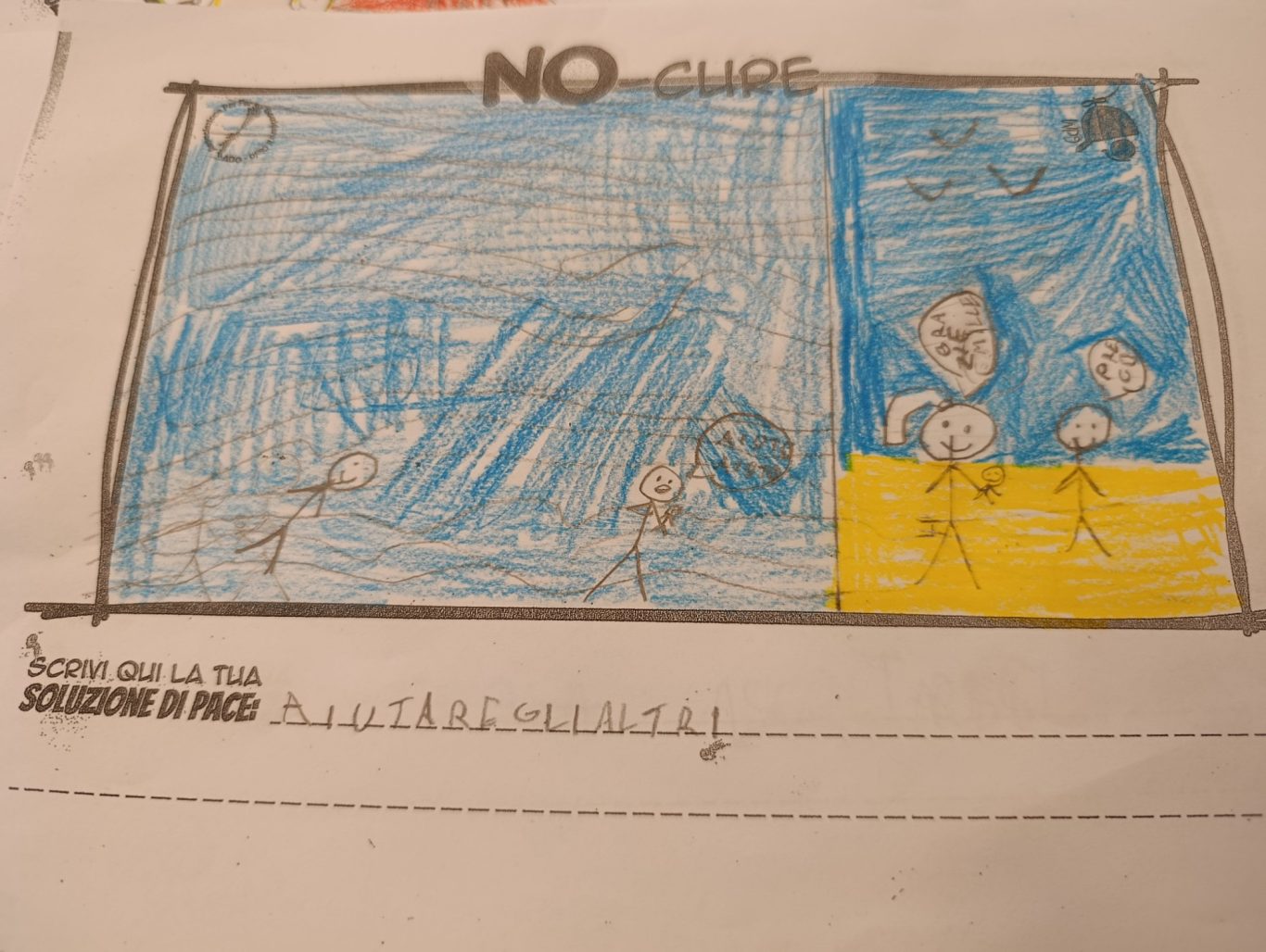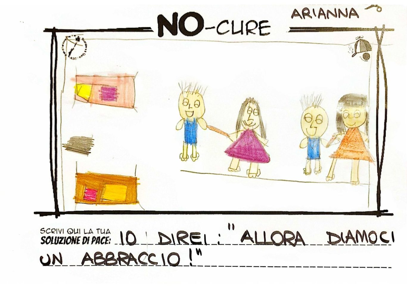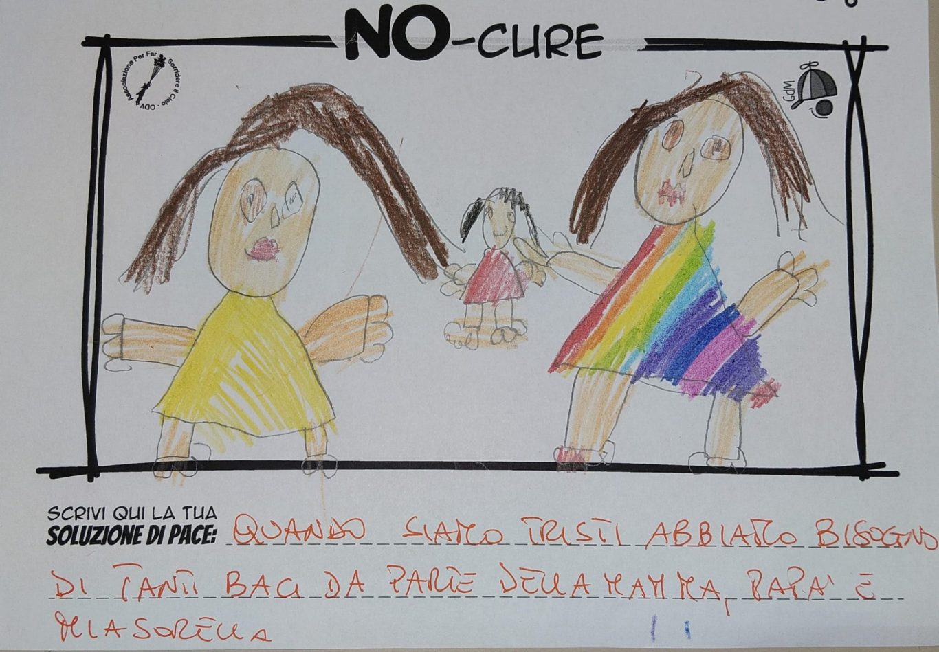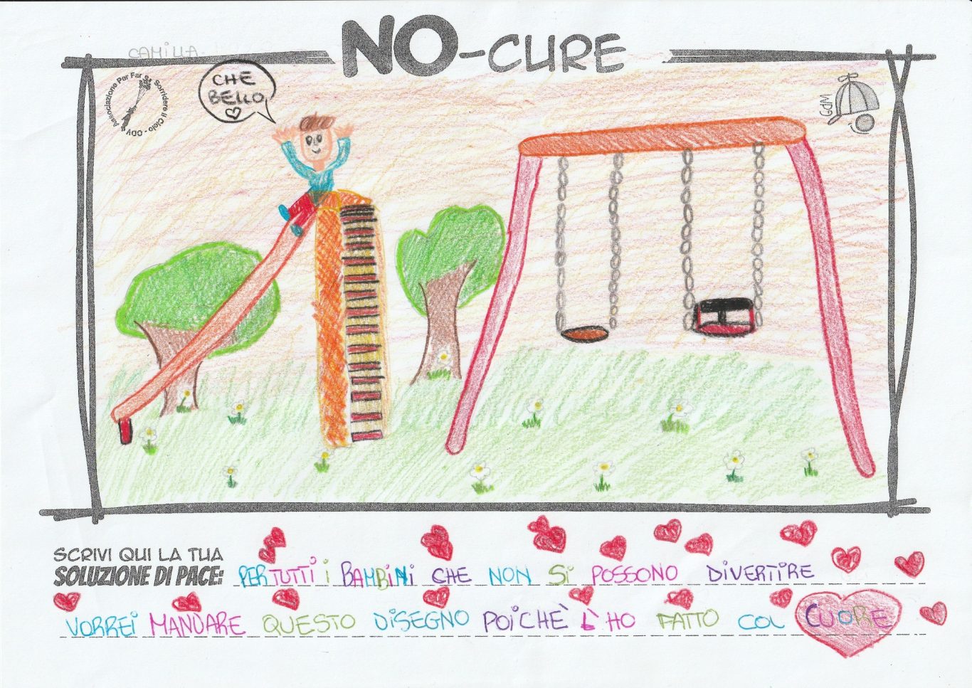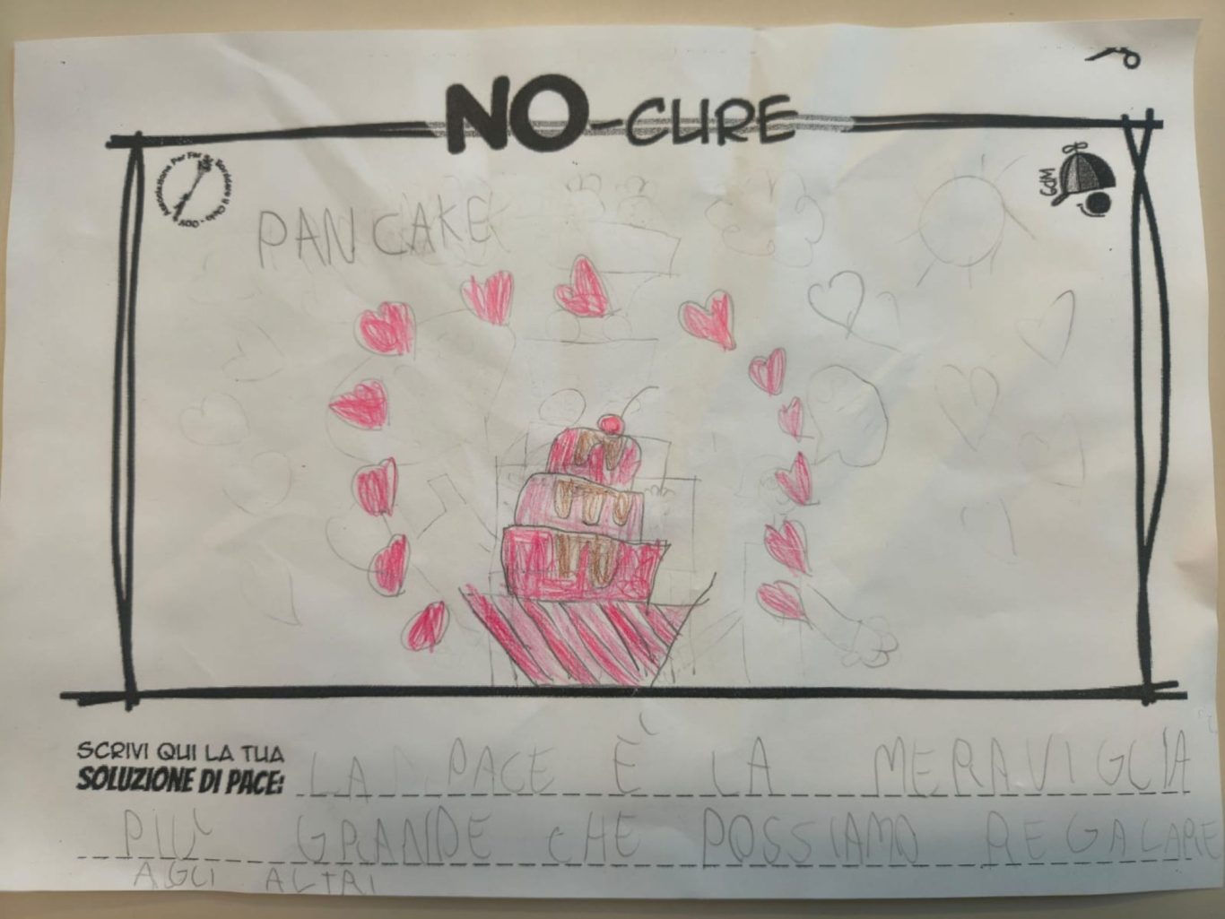 L’opera di sensibilizzazione si si esprime concretamente con la creazione di un DISEGNO DELLA MERAVIGLIA che andrà ad aiutare una delle 12 fatiche. Allo stesso modo chiederemo a tutti i partecipanti di andare a scrivere una “Soluzione di Pace” che possa aiutare anch’essa una delle 12 fatiche dei Bambini della guerra.