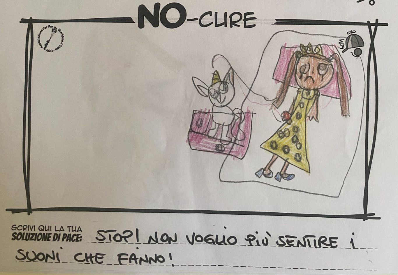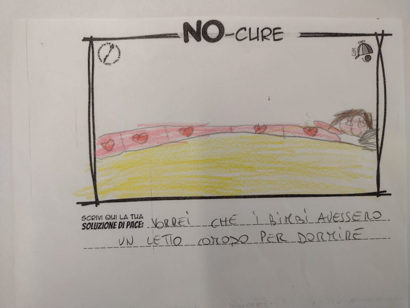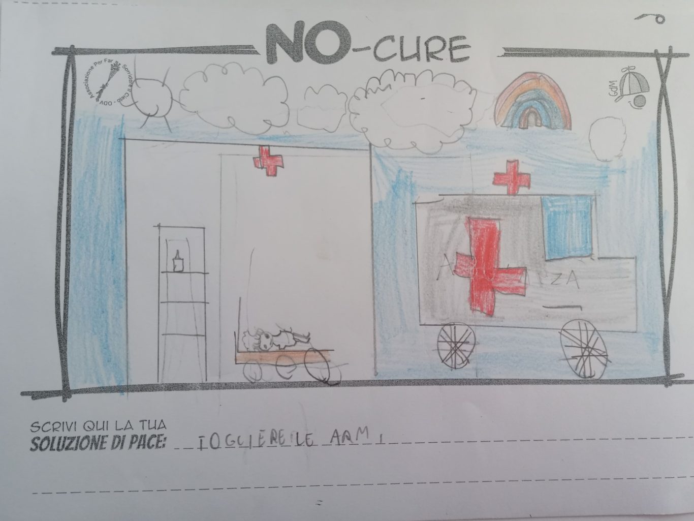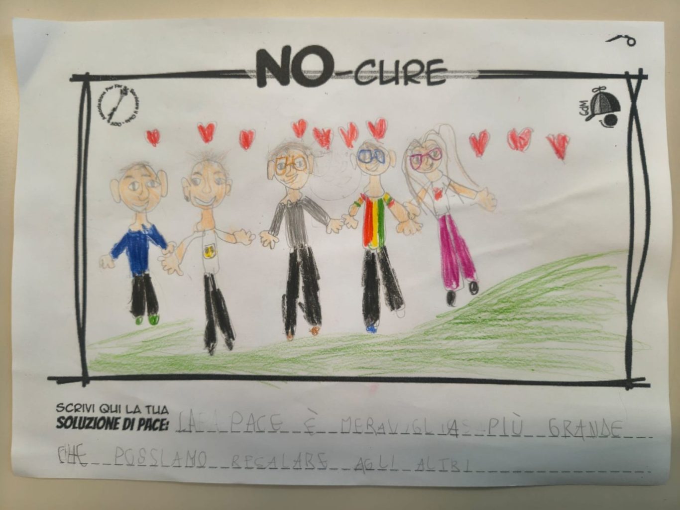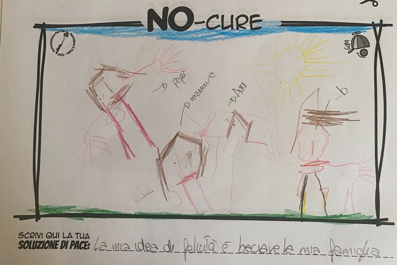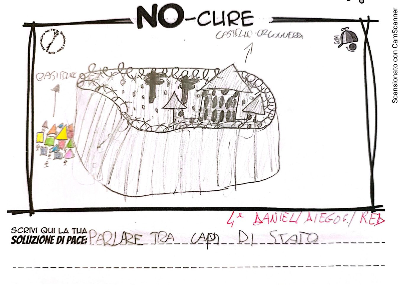L’opera di sensibilizzazione si si esprime concretamente con la creazione di un DISEGNO DELLA MERAVIGLIA che andrà ad aiutare una delle 12 fatiche. Allo stesso modo chiederemo a tutti i partecipanti di andare a scrivere una “Soluzione di Pace” che possa aiutare anch’essa una delle 12 fatiche dei Bambini della guerra.