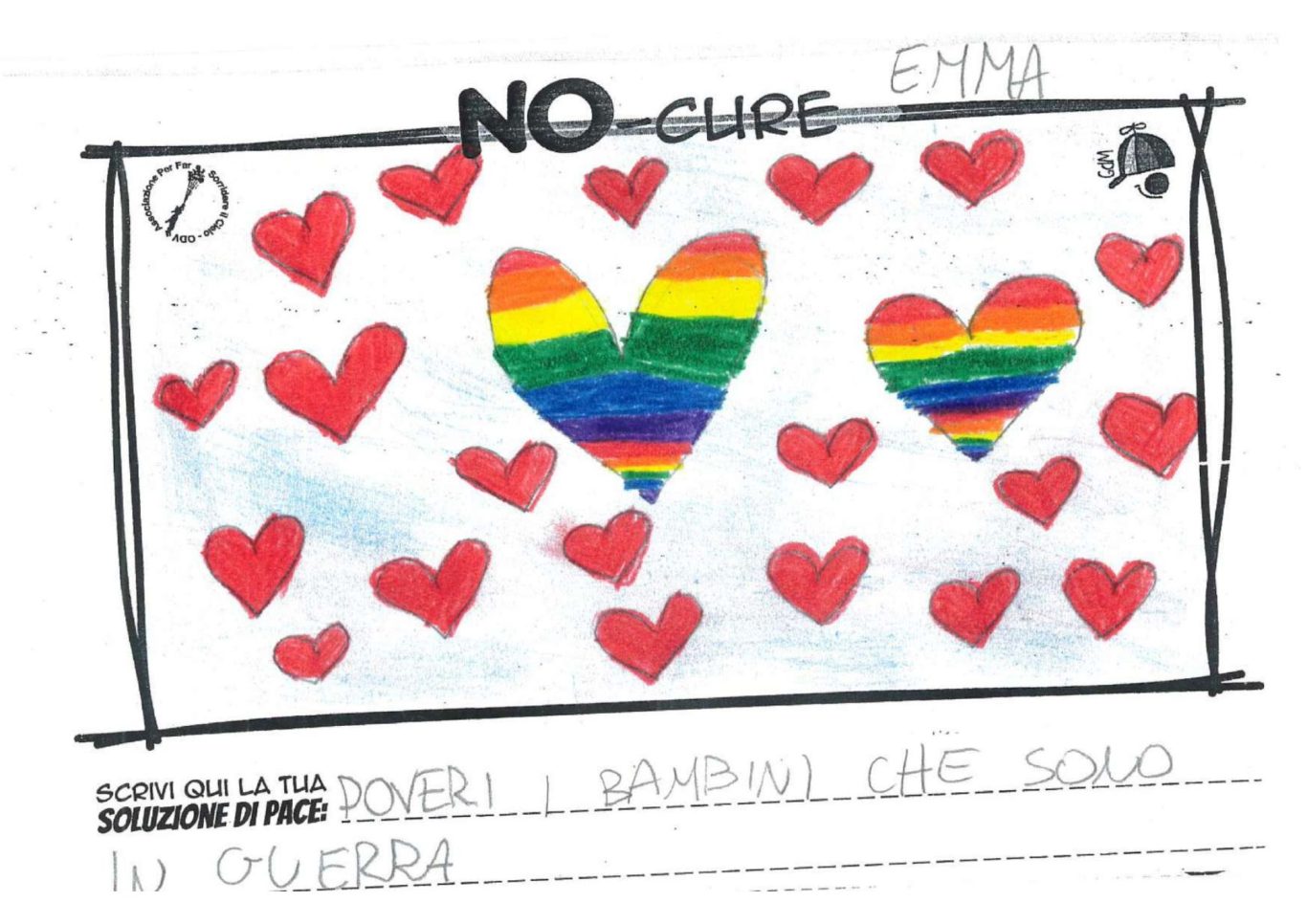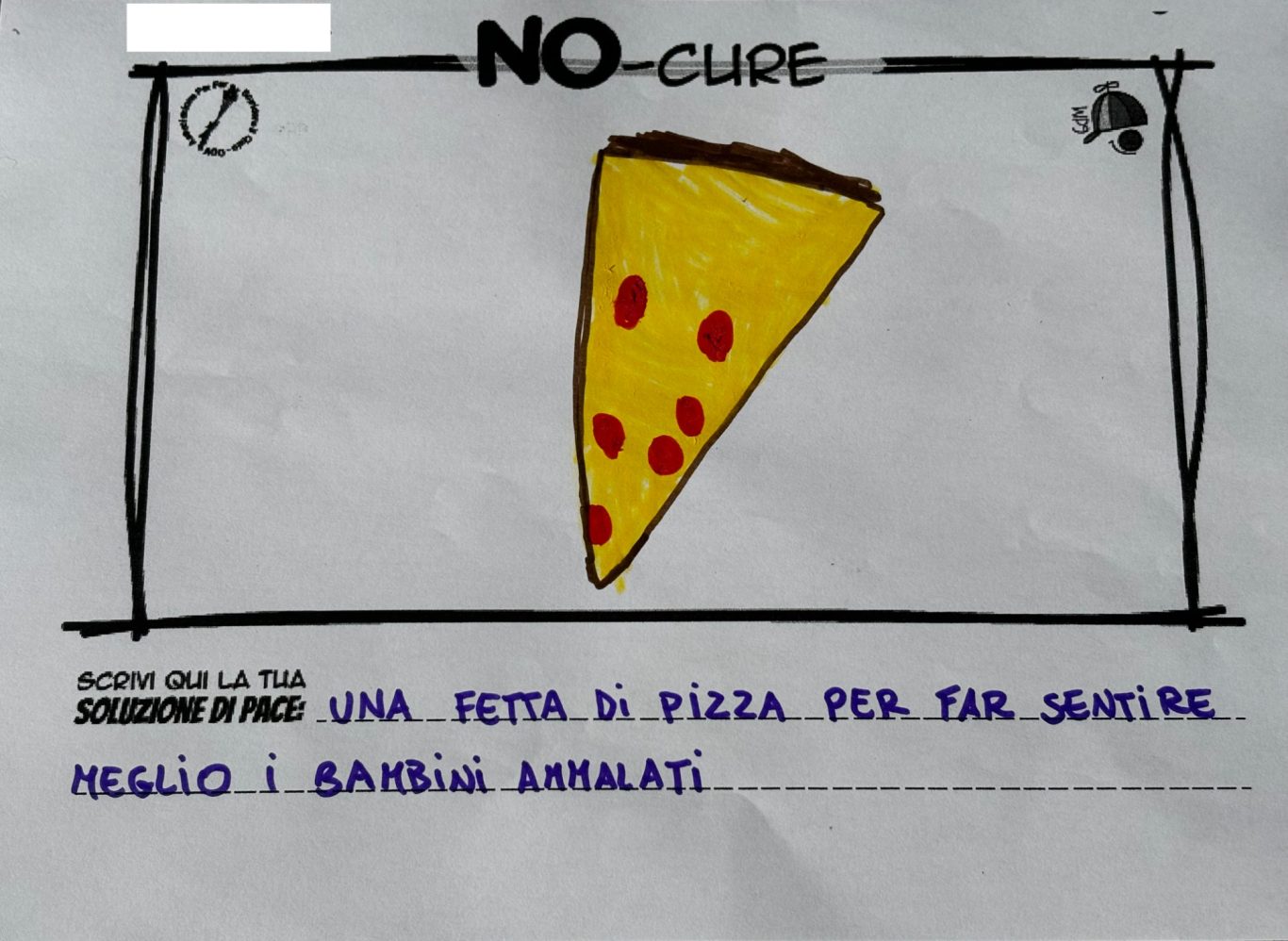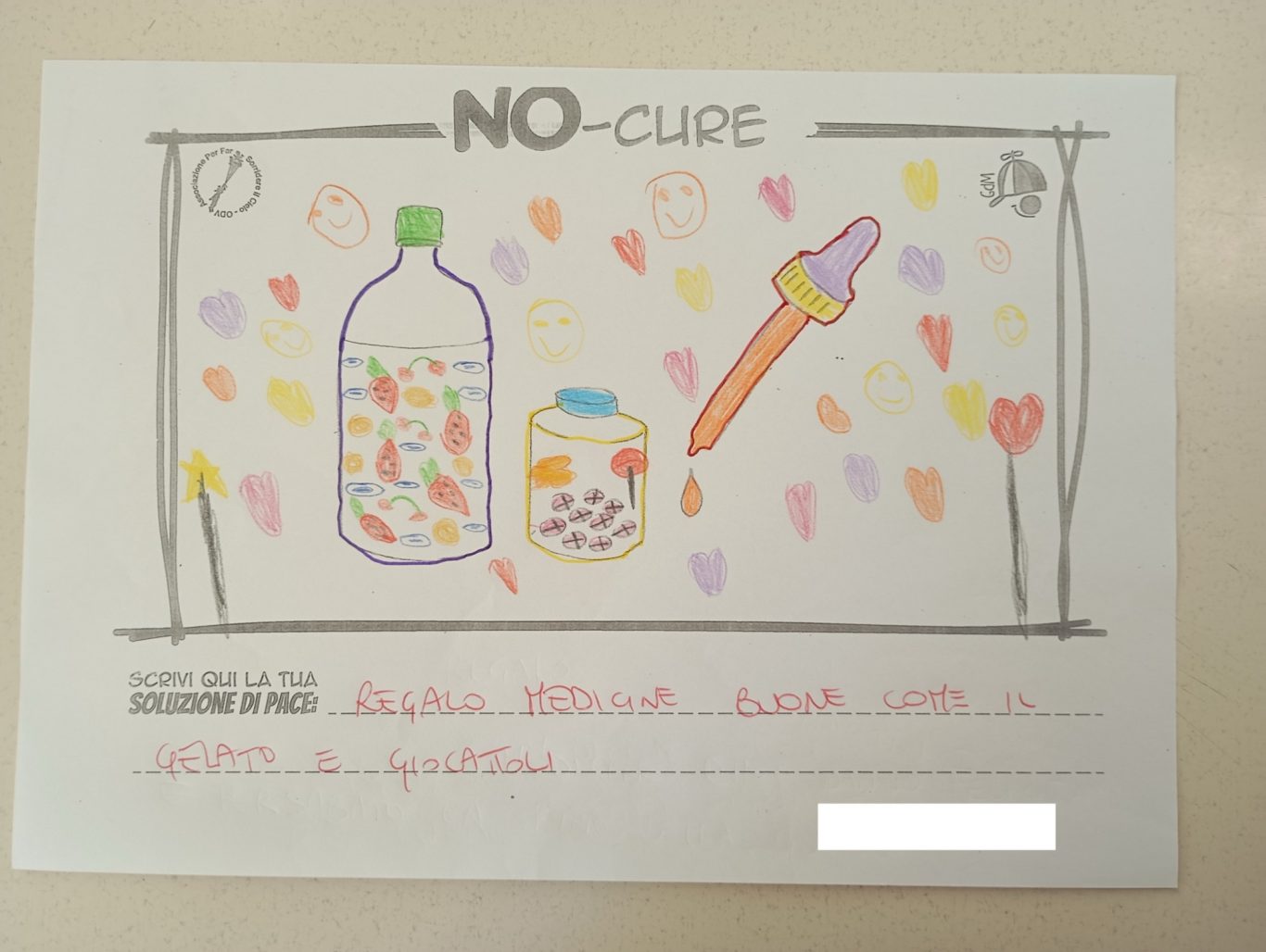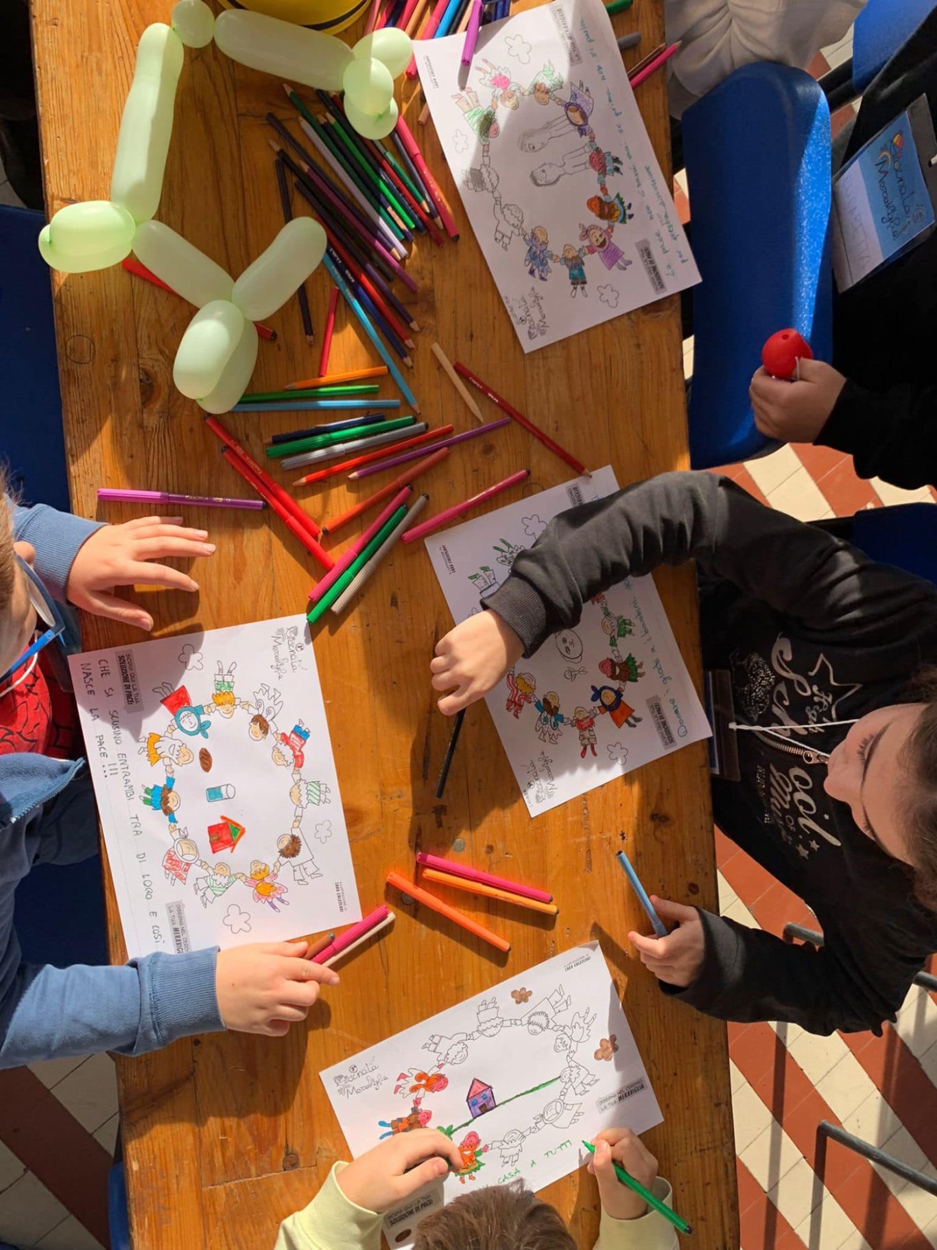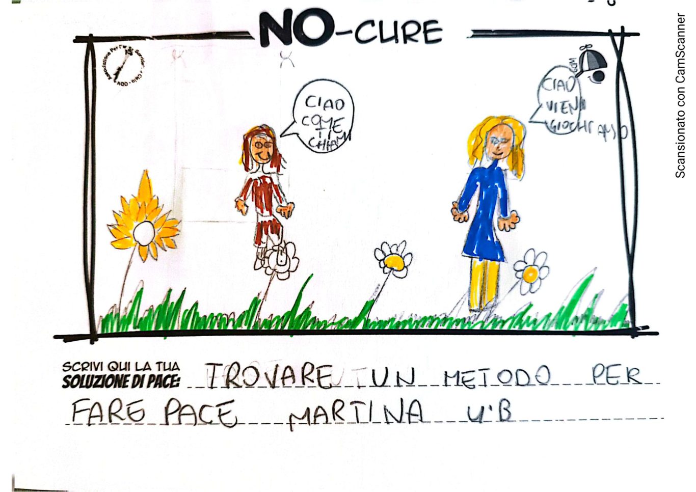 L’opera di sensibilizzazione si si esprime concretamente con la creazione di un DISEGNO DELLA MERAVIGLIA che andrà ad aiutare una delle 12 fatiche. Allo stesso modo chiederemo a tutti i partecipanti di andare a scrivere una “Soluzione di Pace” che possa aiutare anch’essa una delle 12 fatiche dei Bambini della guerra.