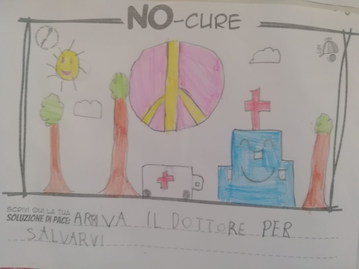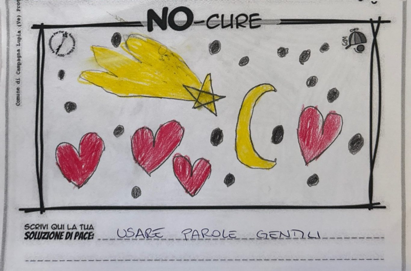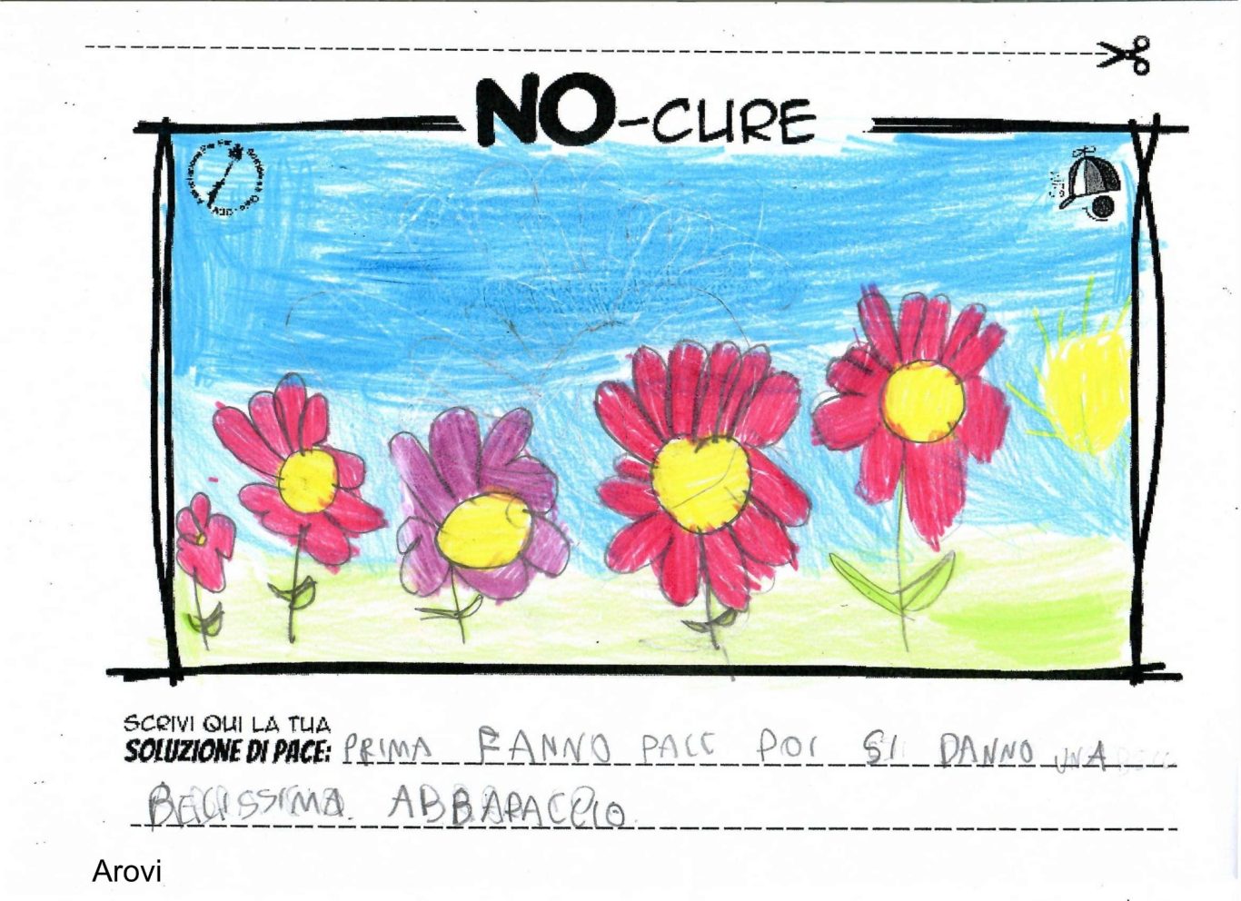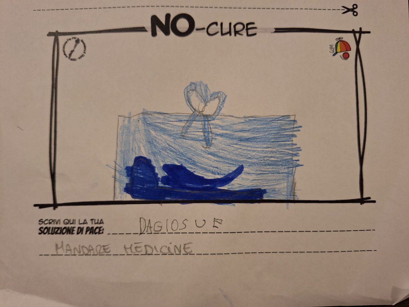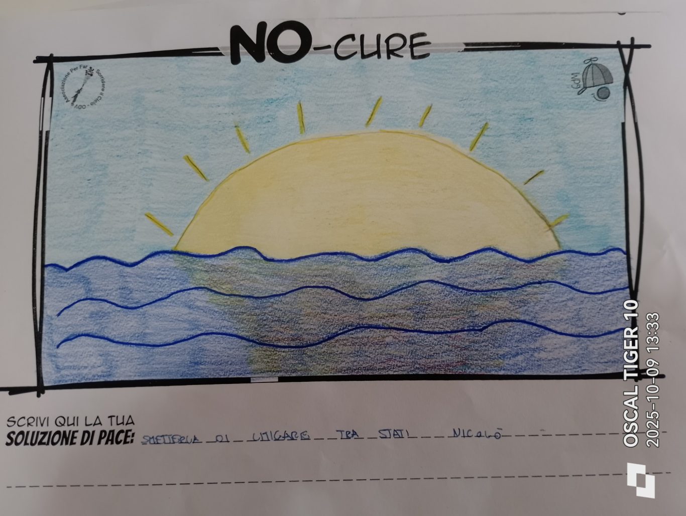 L’opera di sensibilizzazione si si esprime concretamente con la creazione di un DISEGNO DELLA MERAVIGLIA che andrà ad aiutare una delle 12 fatiche. Allo stesso modo chiederemo a tutti i partecipanti di andare a scrivere una “Soluzione di Pace” che possa aiutare anch’essa una delle 12 fatiche dei Bambini della guerra.