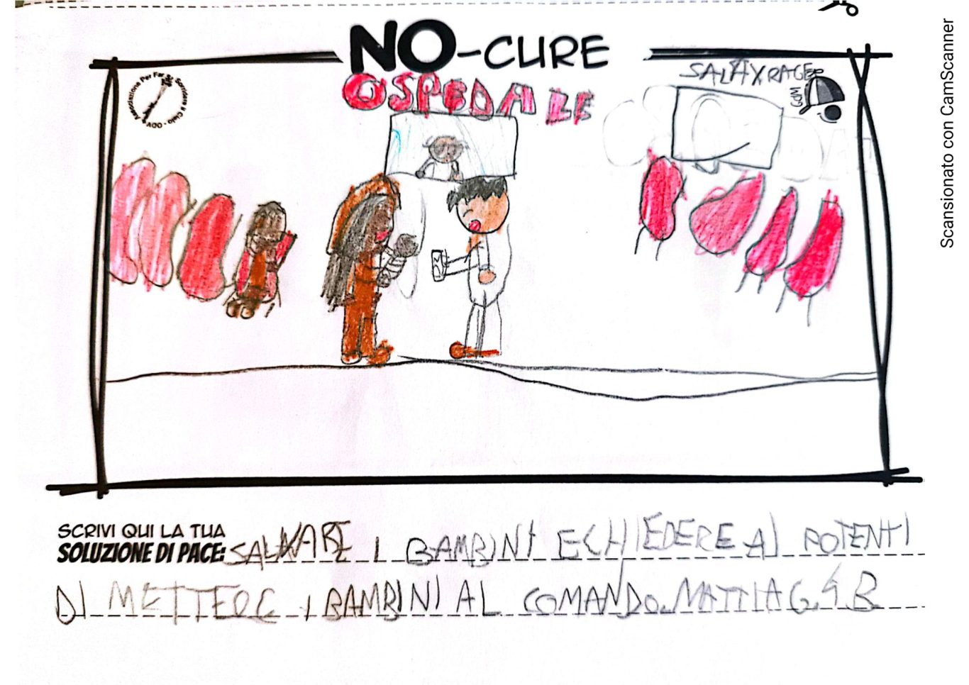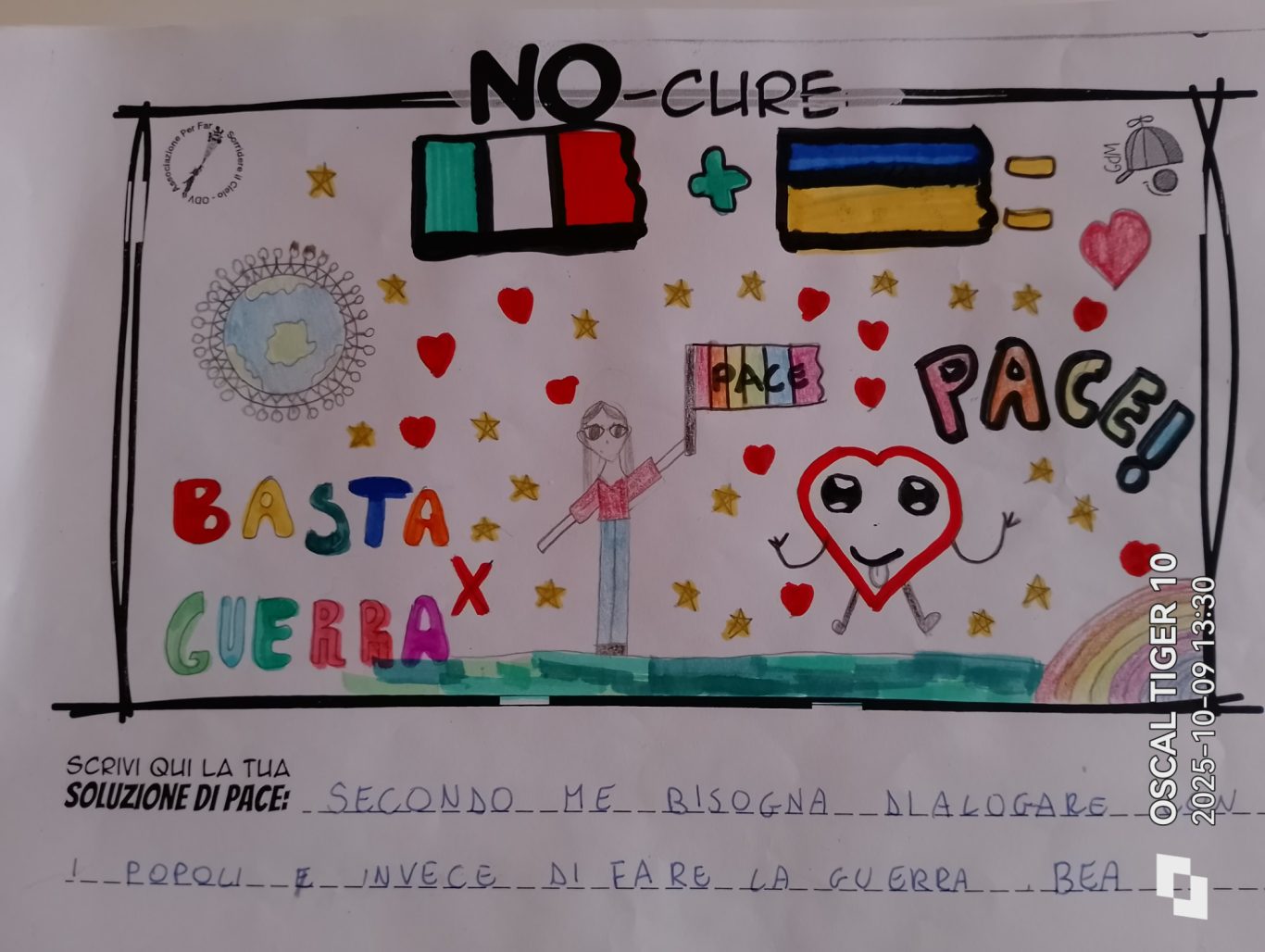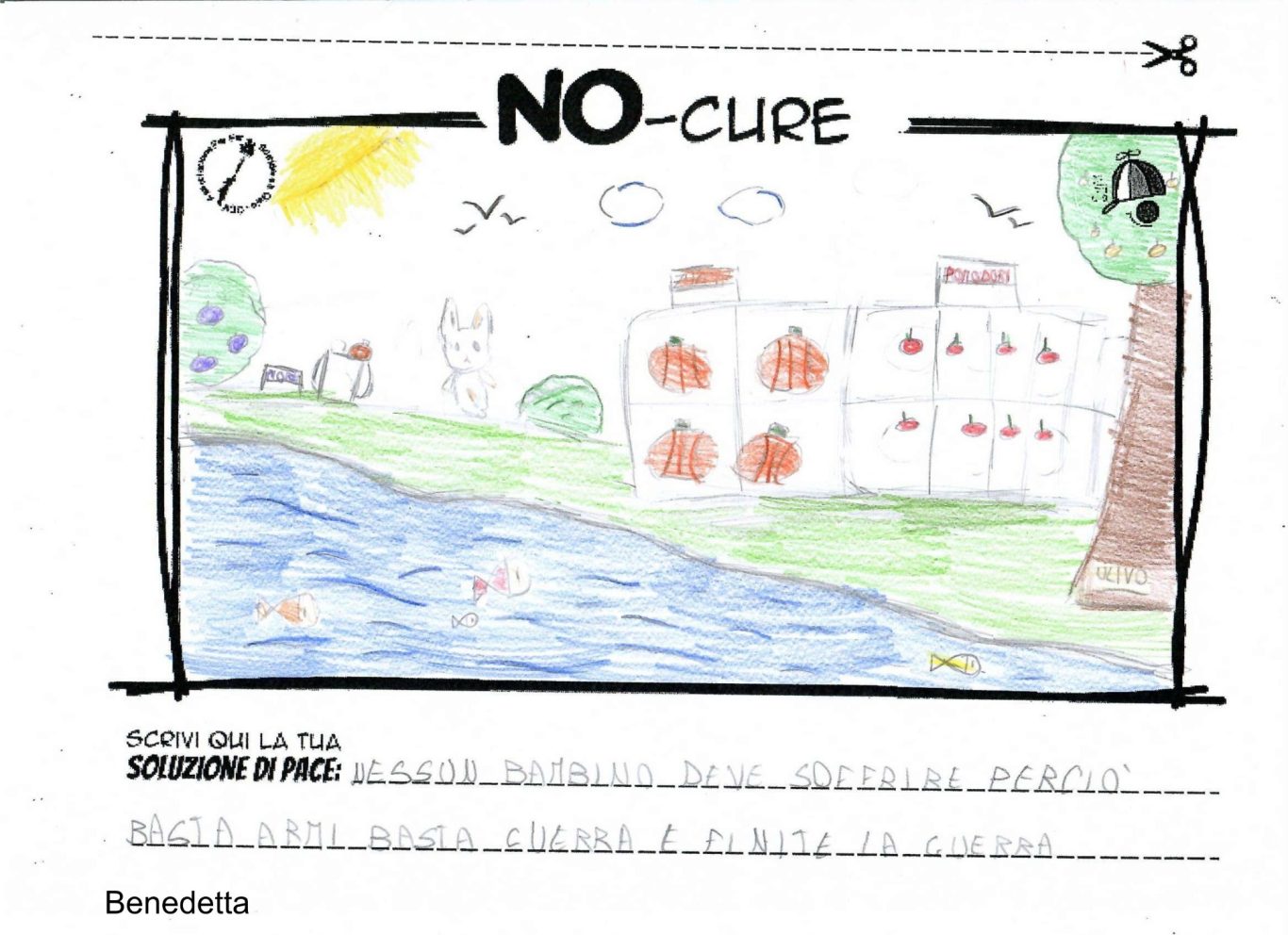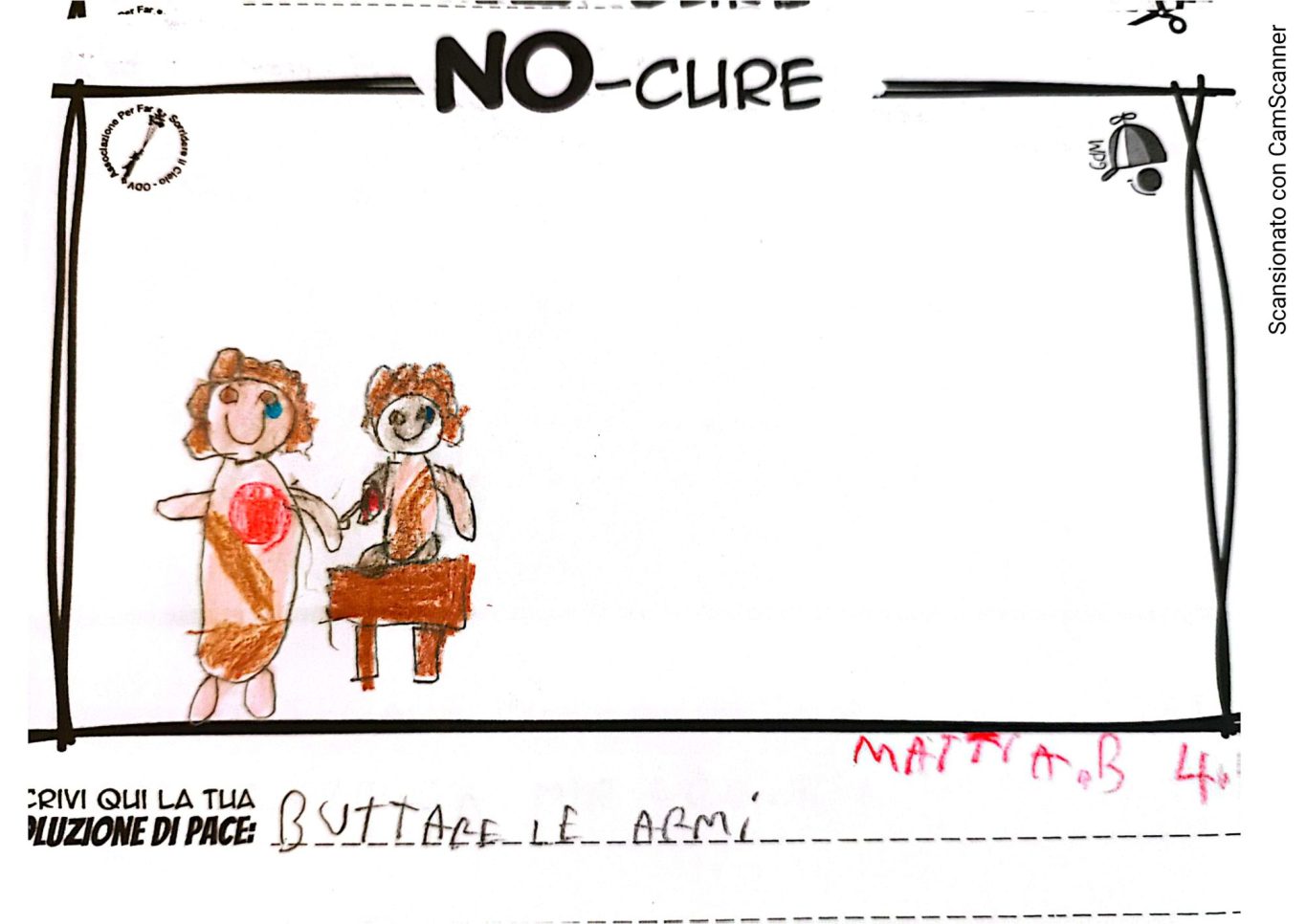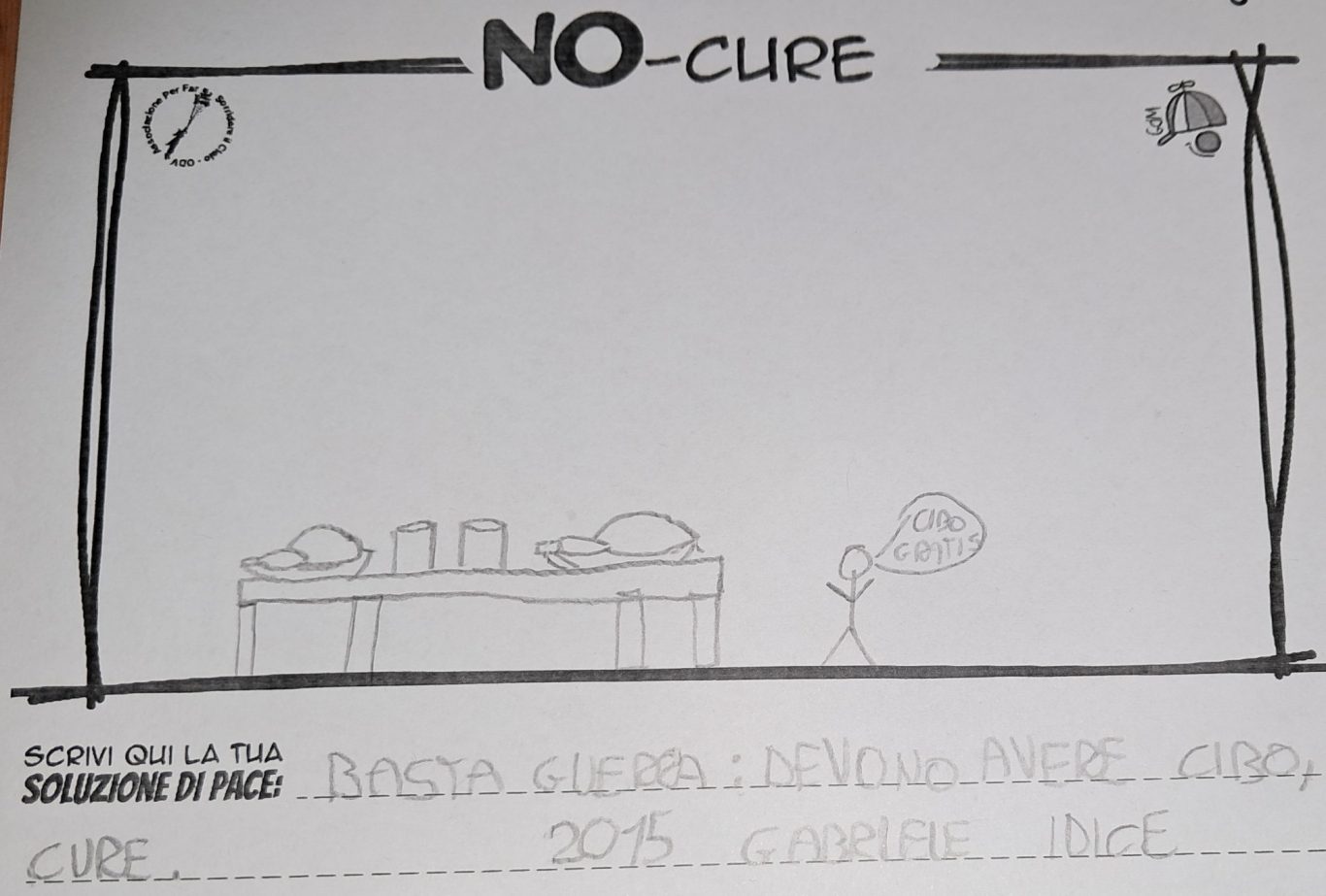 L’opera di sensibilizzazione si si esprime concretamente con la creazione di un DISEGNO DELLA MERAVIGLIA che andrà ad aiutare una delle 12 fatiche. Allo stesso modo chiederemo a tutti i partecipanti di andare a scrivere una “Soluzione di Pace” che possa aiutare anch’essa una delle 12 fatiche dei Bambini della guerra.