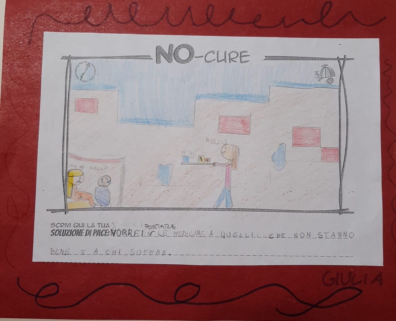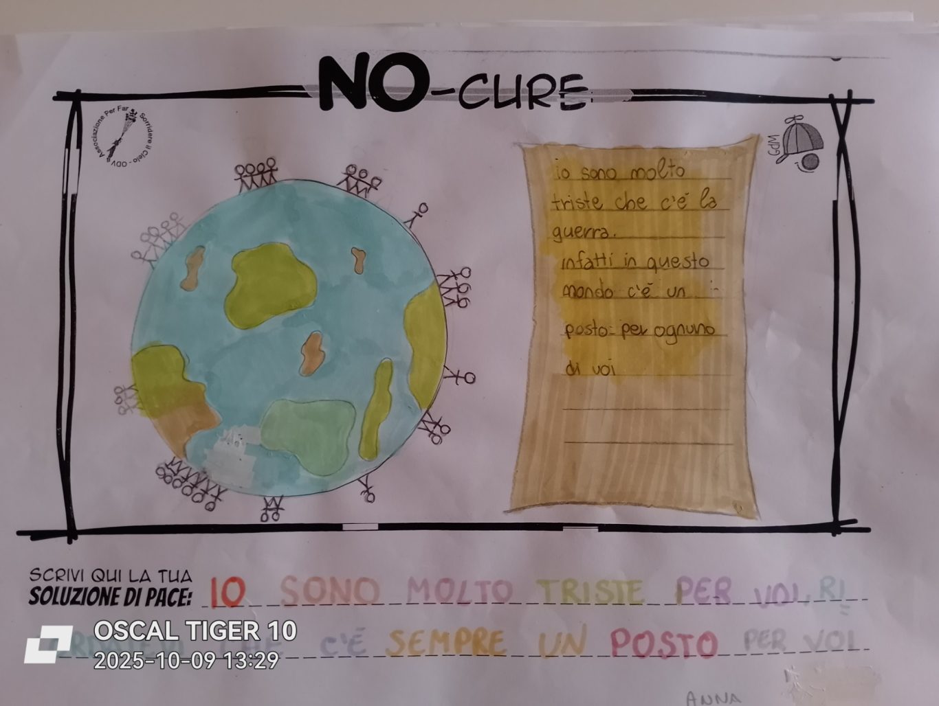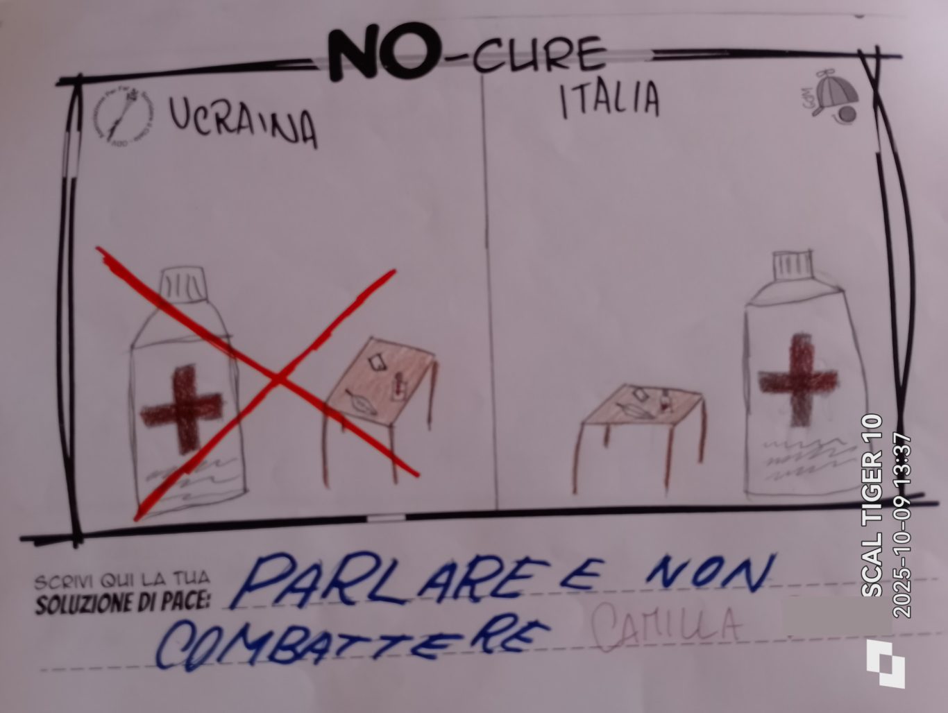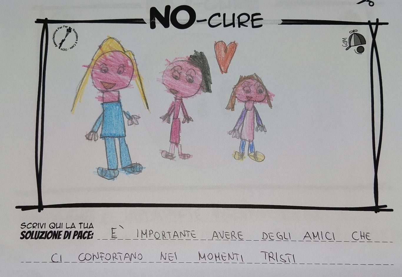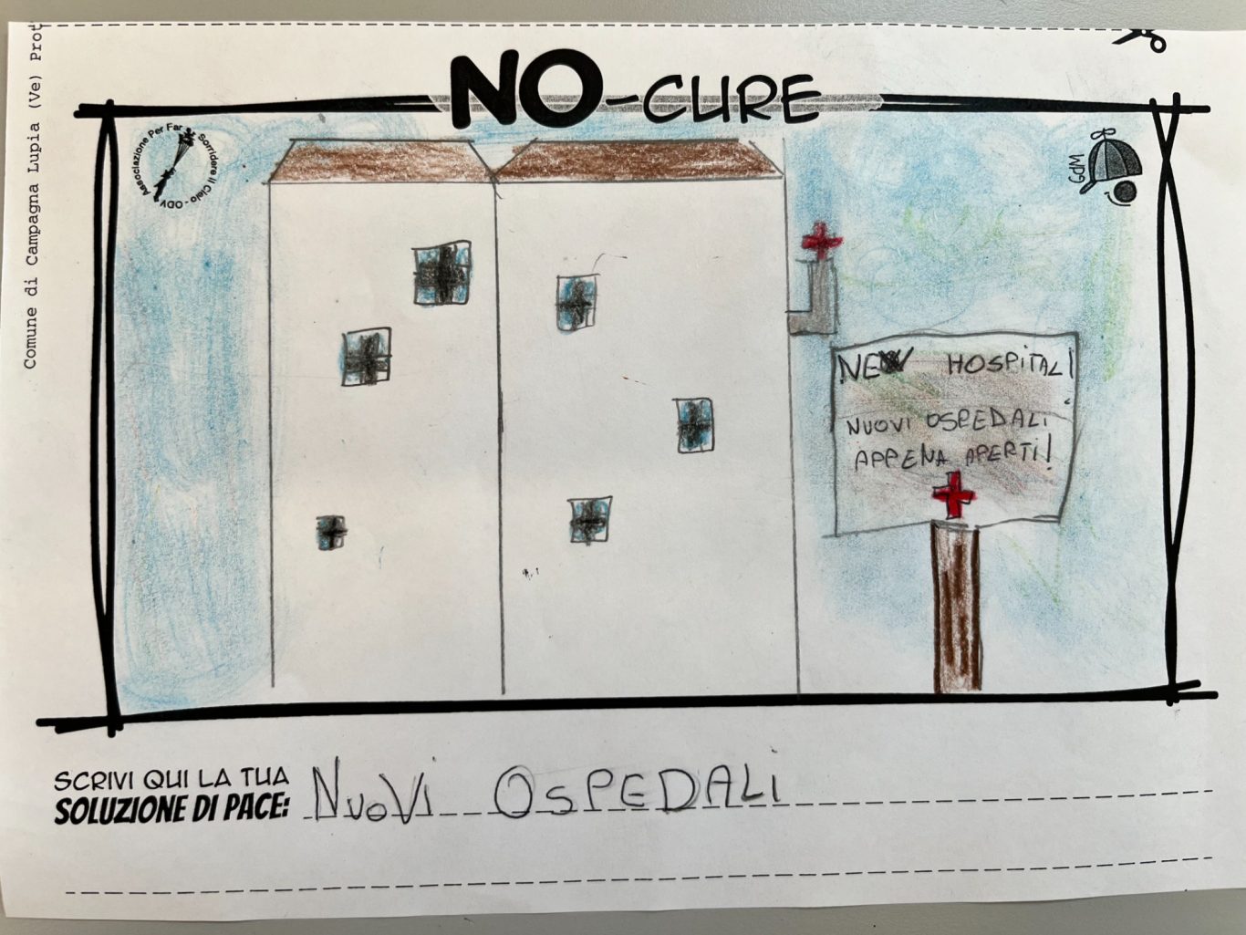 L’opera di sensibilizzazione si si esprime concretamente con la creazione di un DISEGNO DELLA MERAVIGLIA che andrà ad aiutare una delle 12 fatiche. Allo stesso modo chiederemo a tutti i partecipanti di andare a scrivere una “Soluzione di Pace” che possa aiutare anch’essa una delle 12 fatiche dei Bambini della guerra.