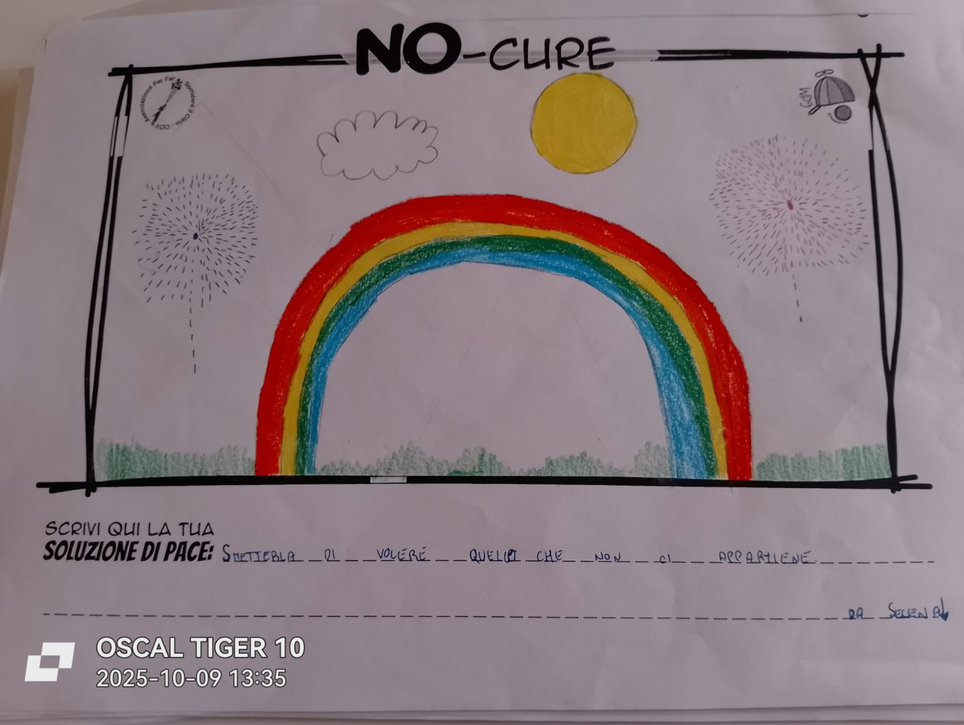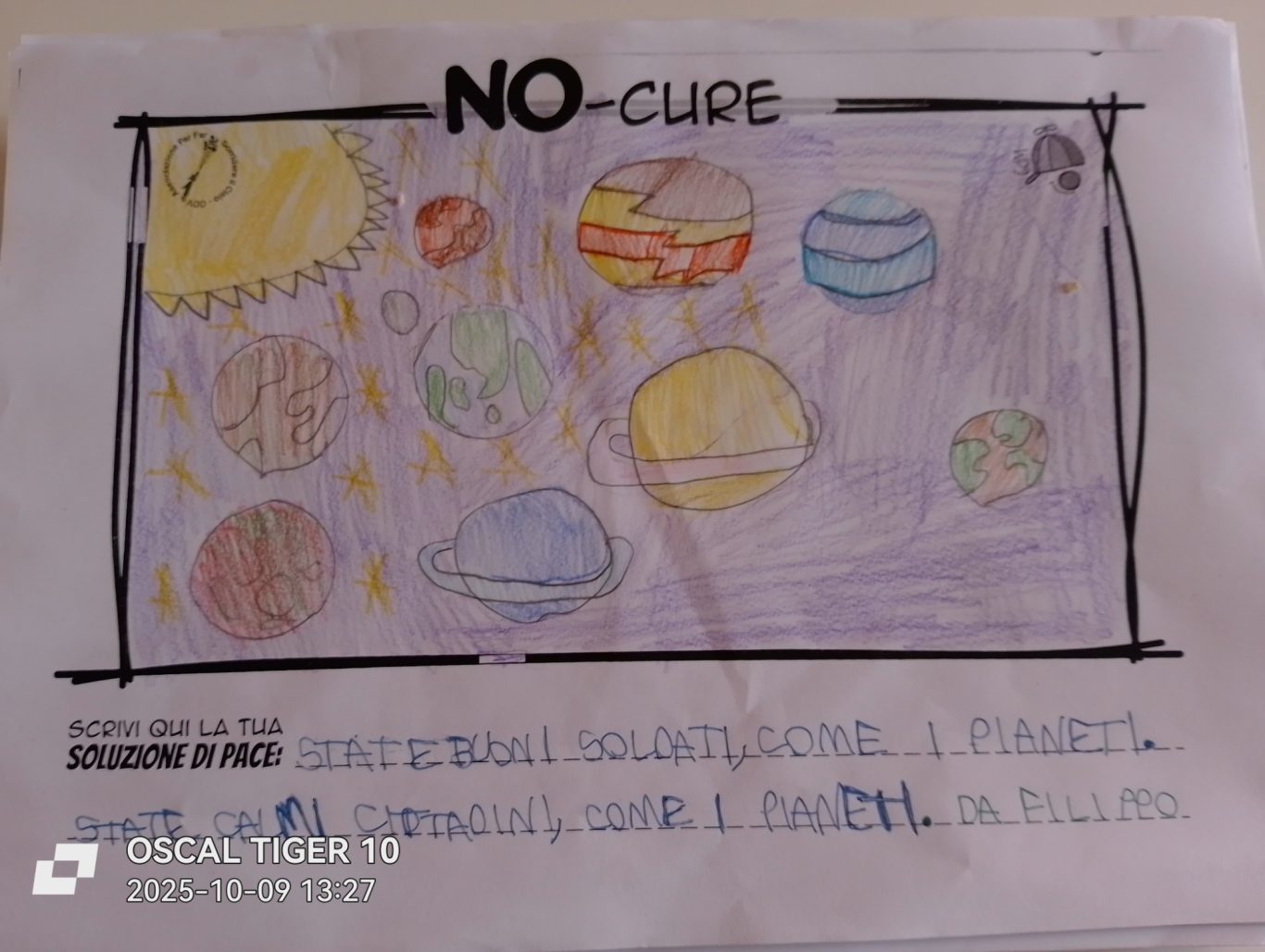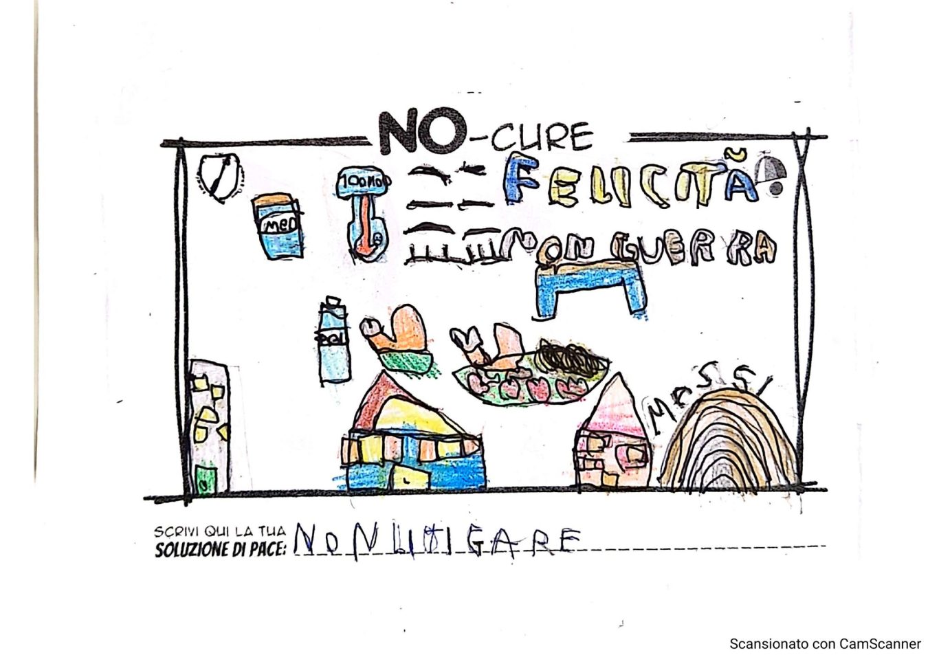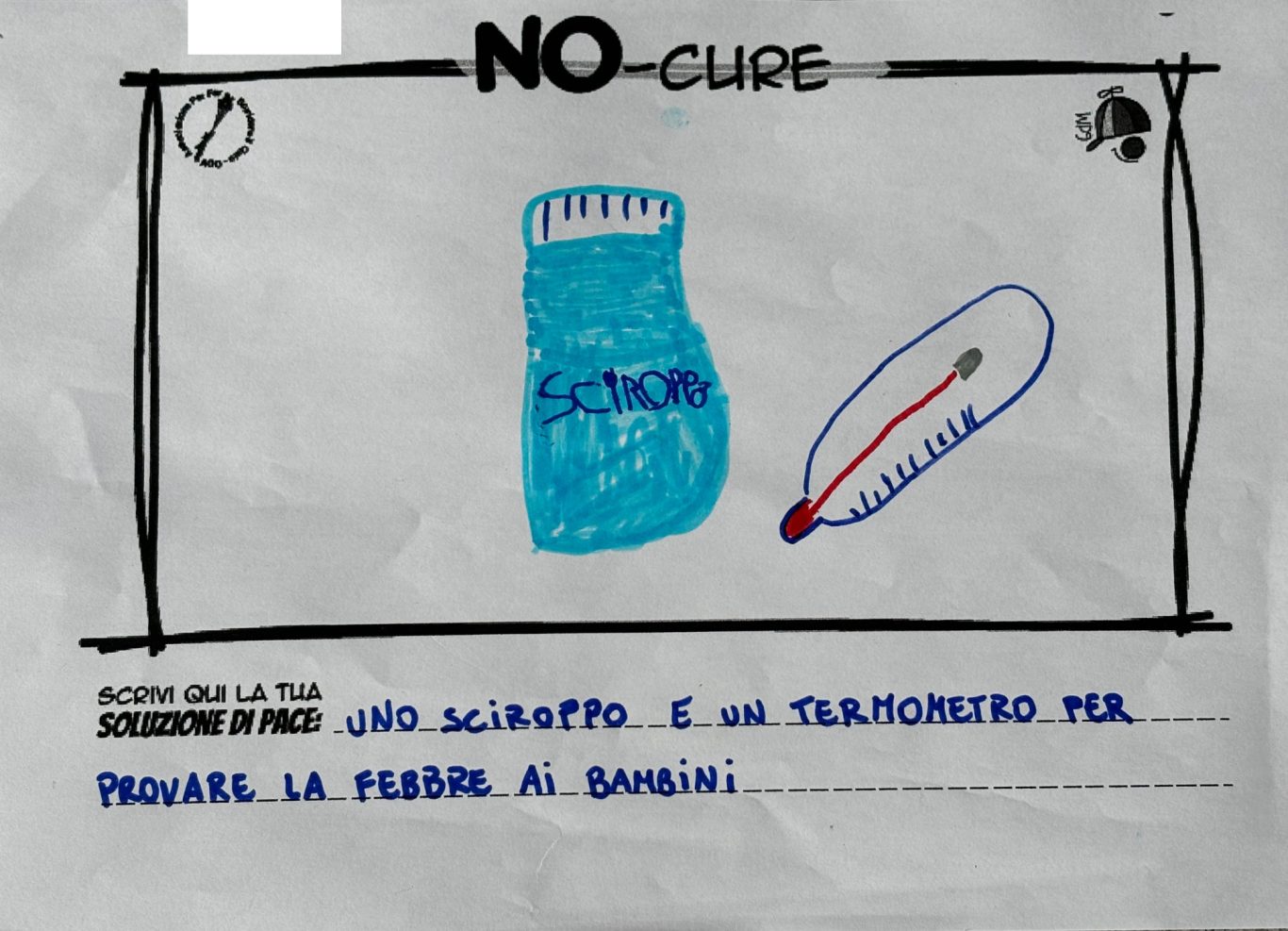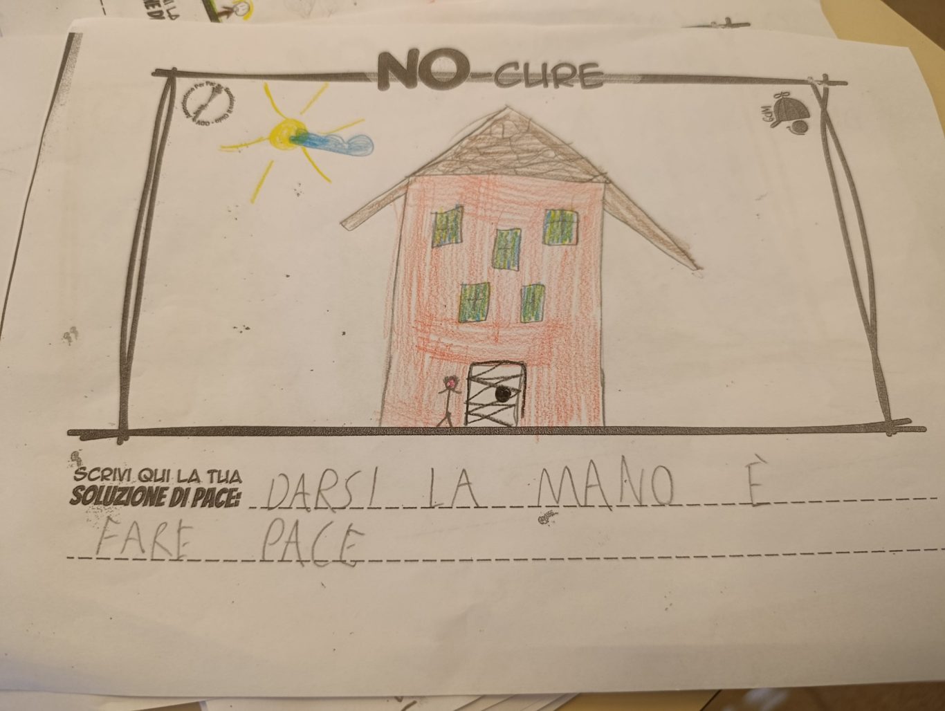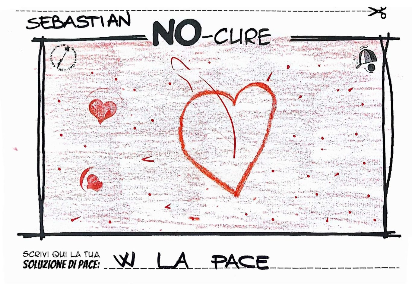L’opera di sensibilizzazione si si esprime concretamente con la creazione di un DISEGNO DELLA MERAVIGLIA che andrà ad aiutare una delle 12 fatiche. Allo stesso modo chiederemo a tutti i partecipanti di andare a scrivere una “Soluzione di Pace” che possa aiutare anch’essa una delle 12 fatiche dei Bambini della guerra.