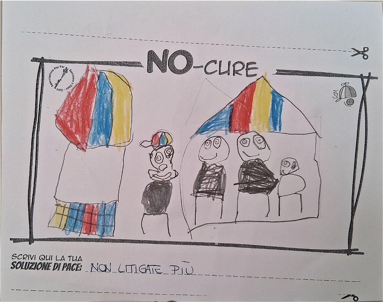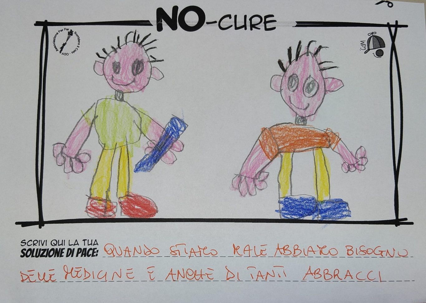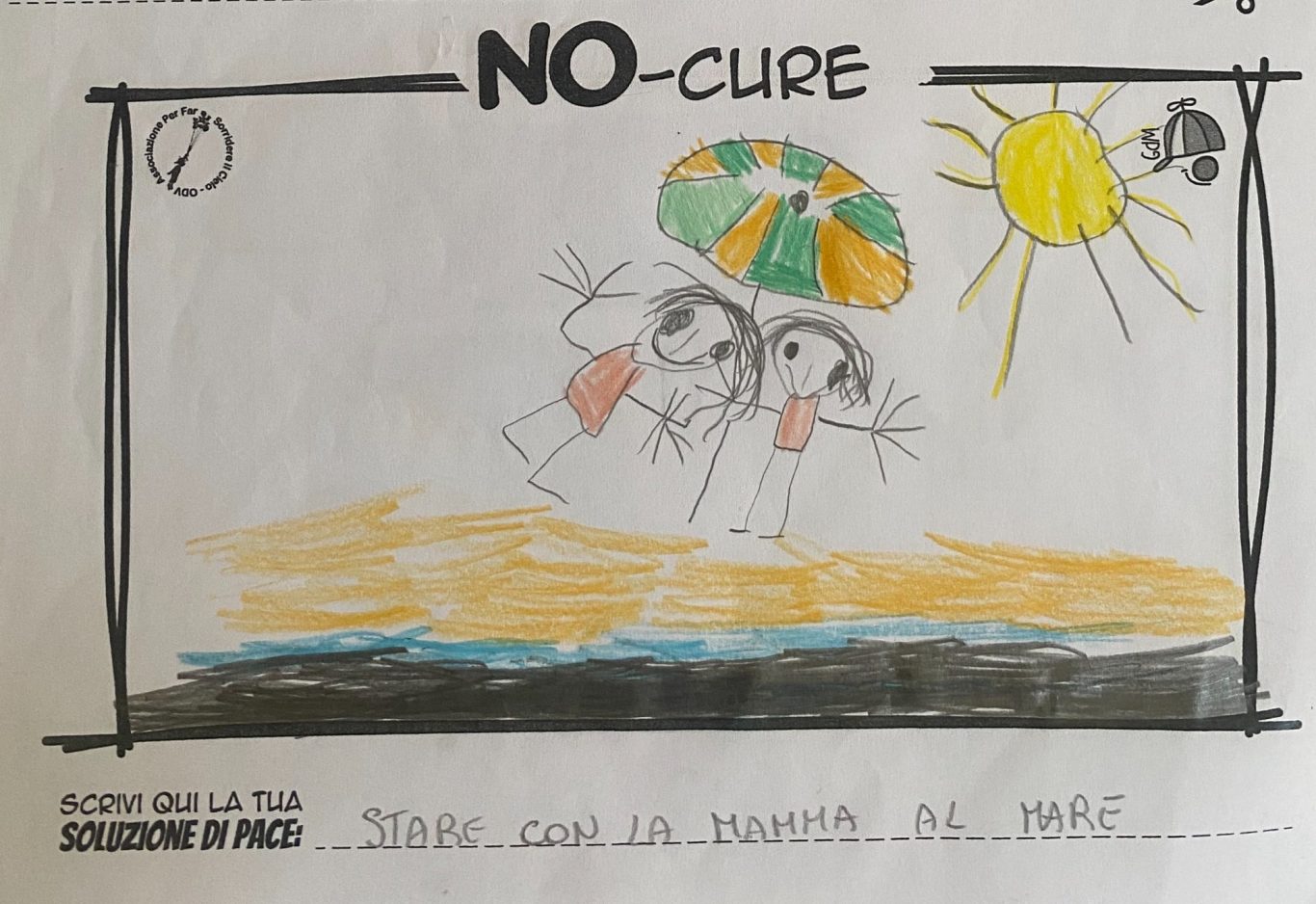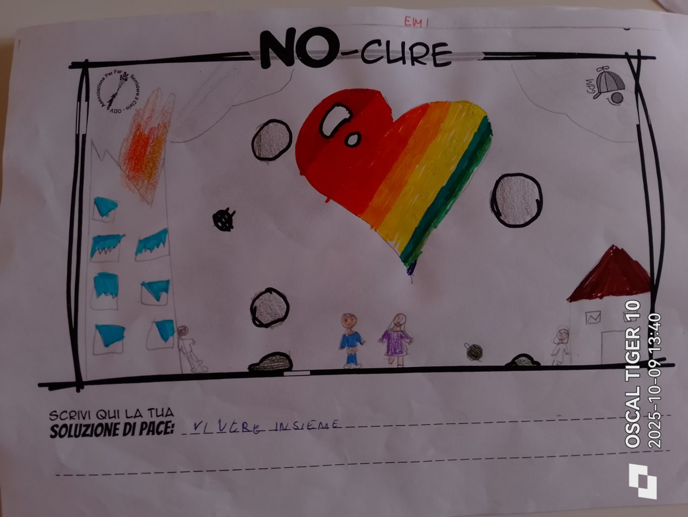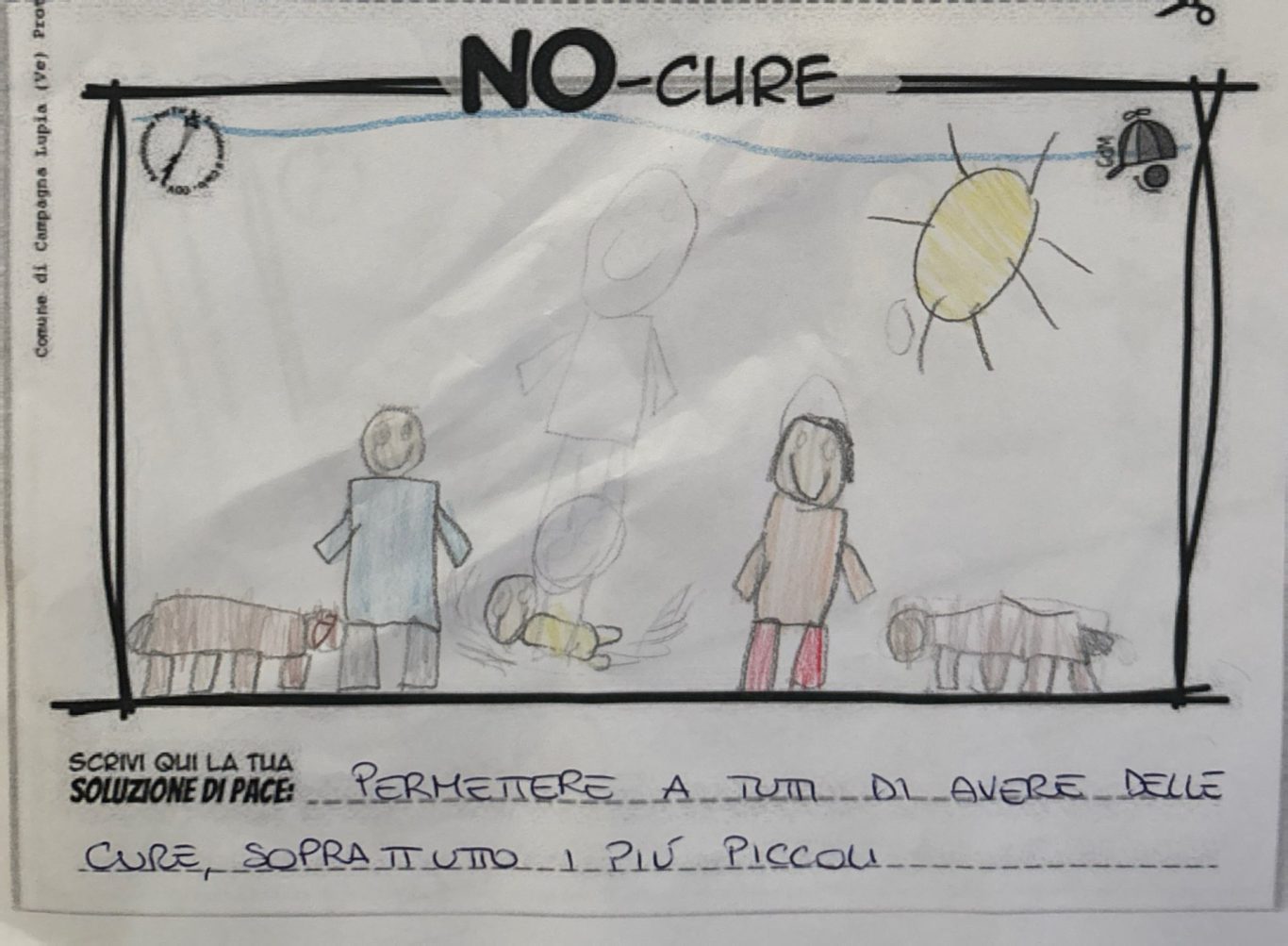 L’opera di sensibilizzazione si si esprime concretamente con la creazione di un DISEGNO DELLA MERAVIGLIA che andrà ad aiutare una delle 12 fatiche. Allo stesso modo chiederemo a tutti i partecipanti di andare a scrivere una “Soluzione di Pace” che possa aiutare anch’essa una delle 12 fatiche dei Bambini della guerra.