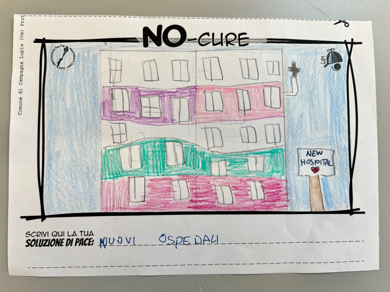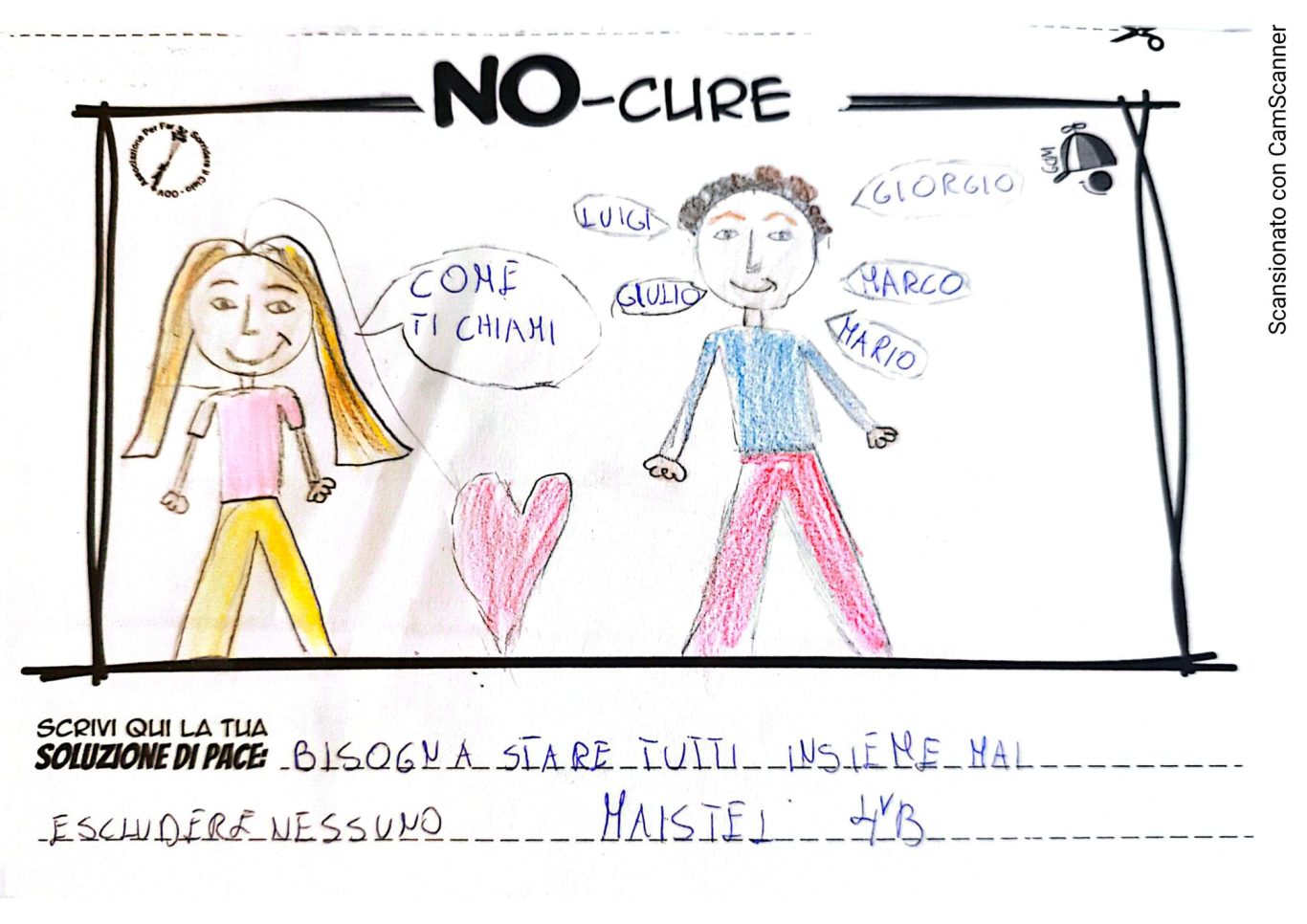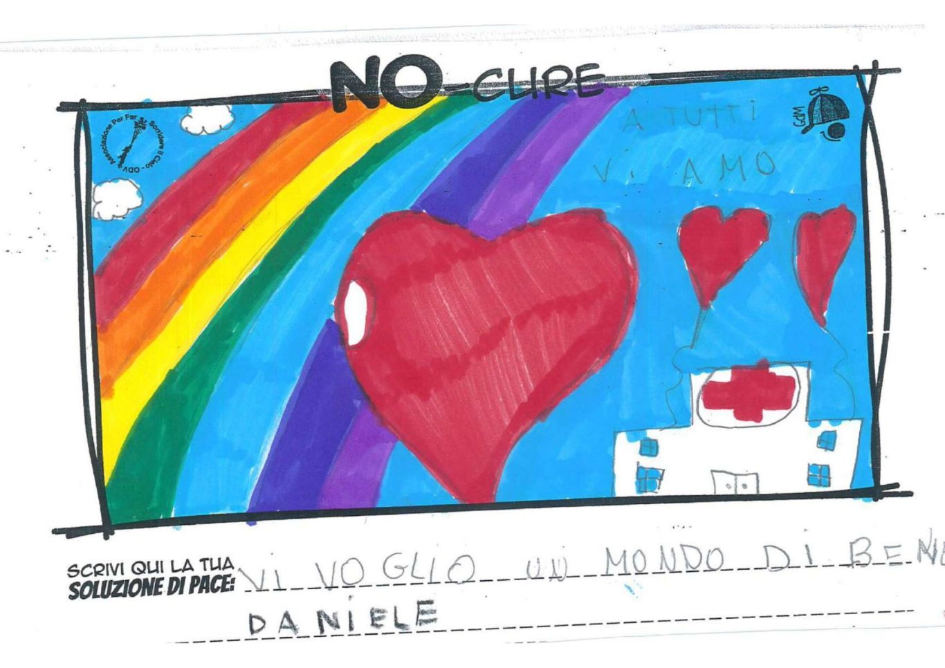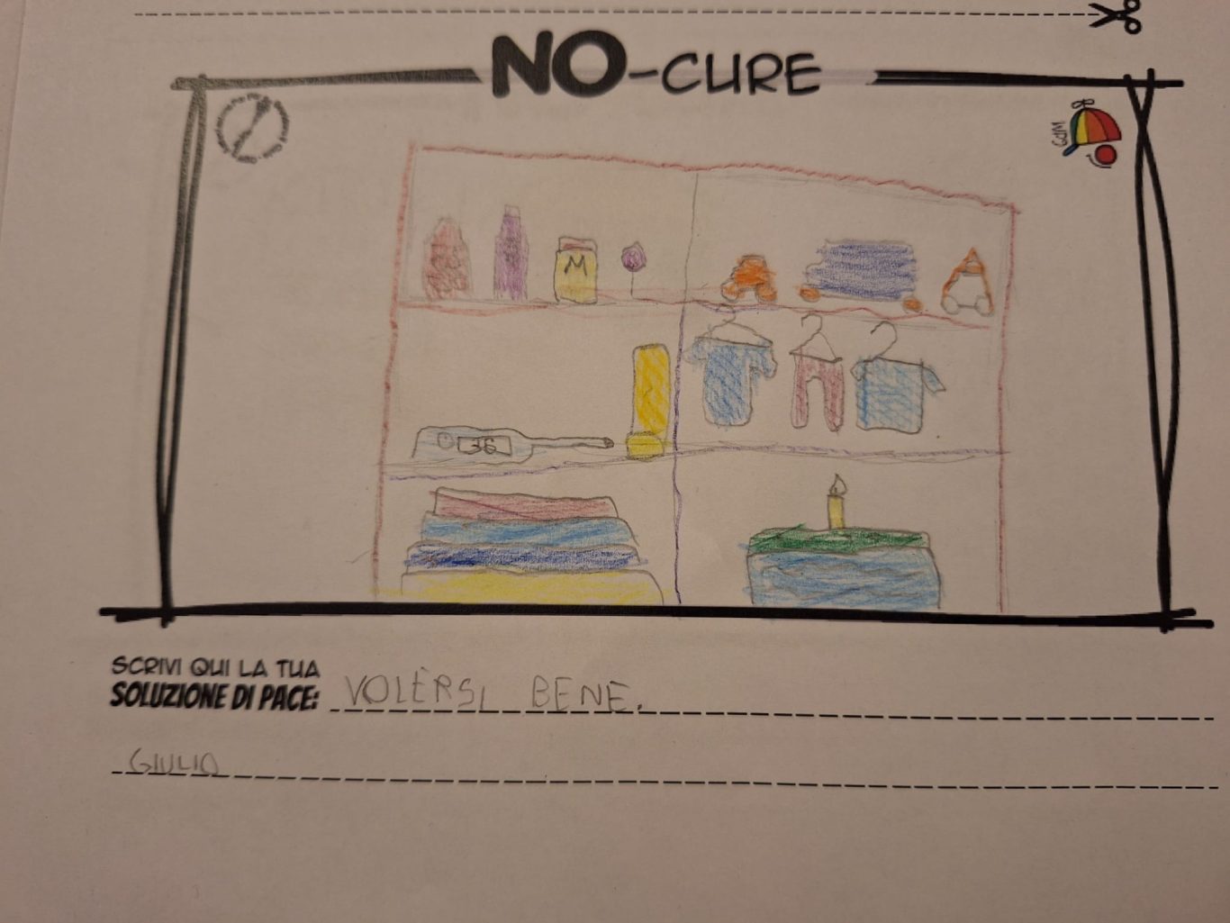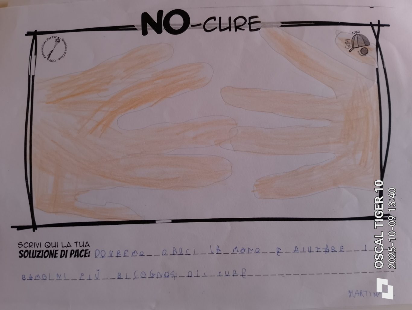 L’opera di sensibilizzazione si si esprime concretamente con la creazione di un DISEGNO DELLA MERAVIGLIA che andrà ad aiutare una delle 12 fatiche. Allo stesso modo chiederemo a tutti i partecipanti di andare a scrivere una “Soluzione di Pace” che possa aiutare anch’essa una delle 12 fatiche dei Bambini della guerra.