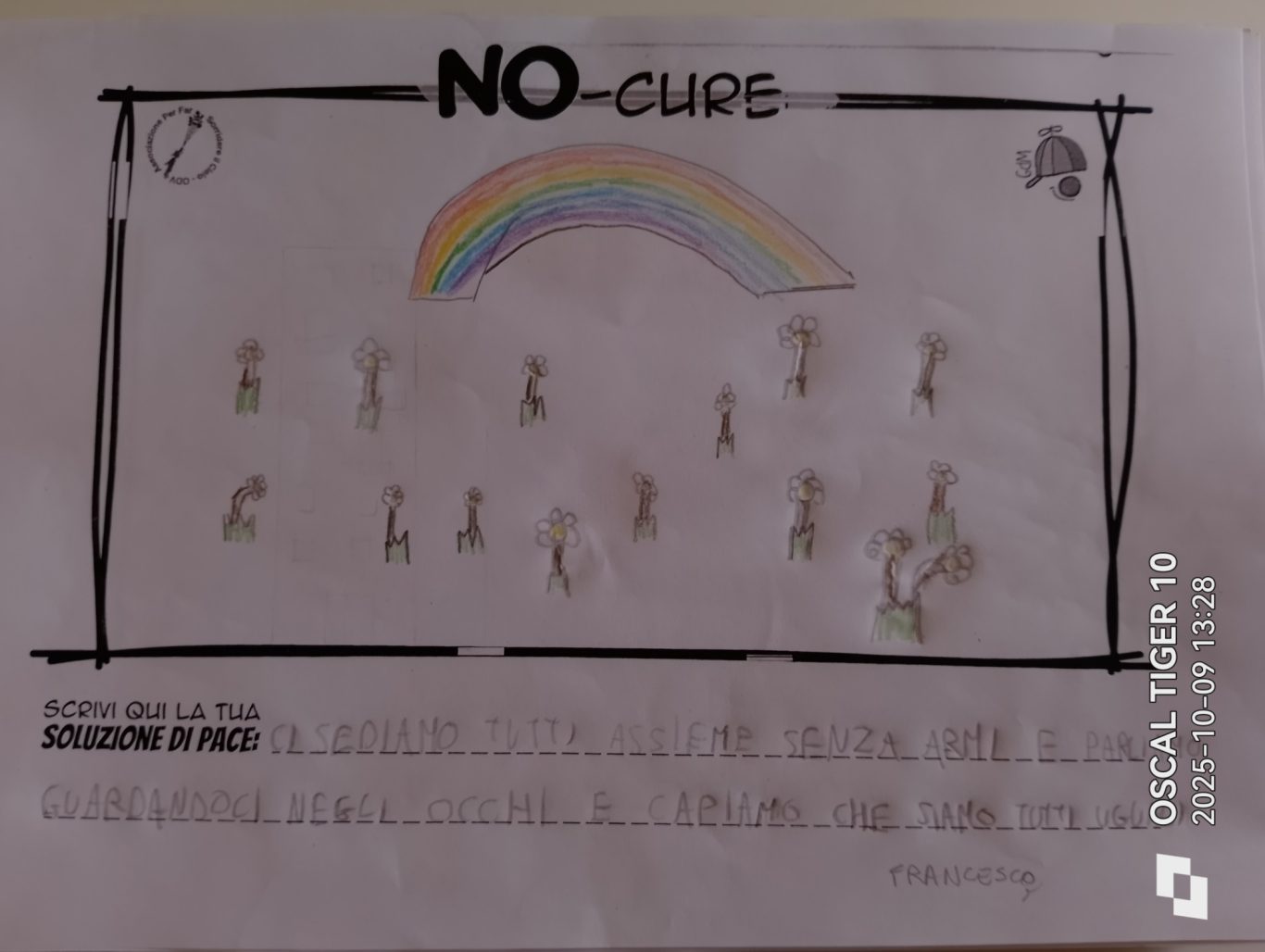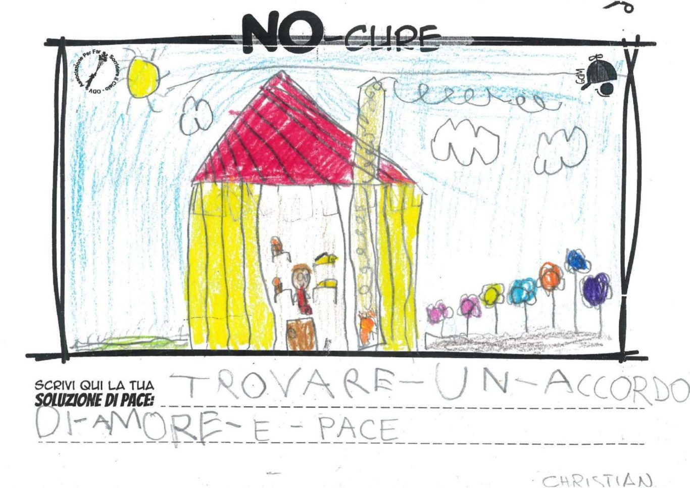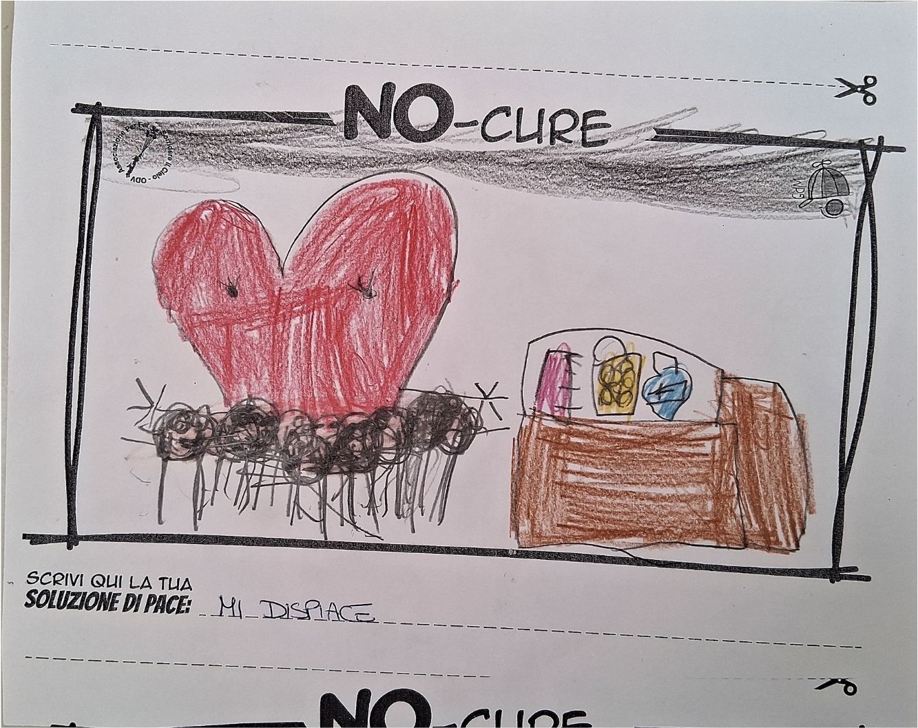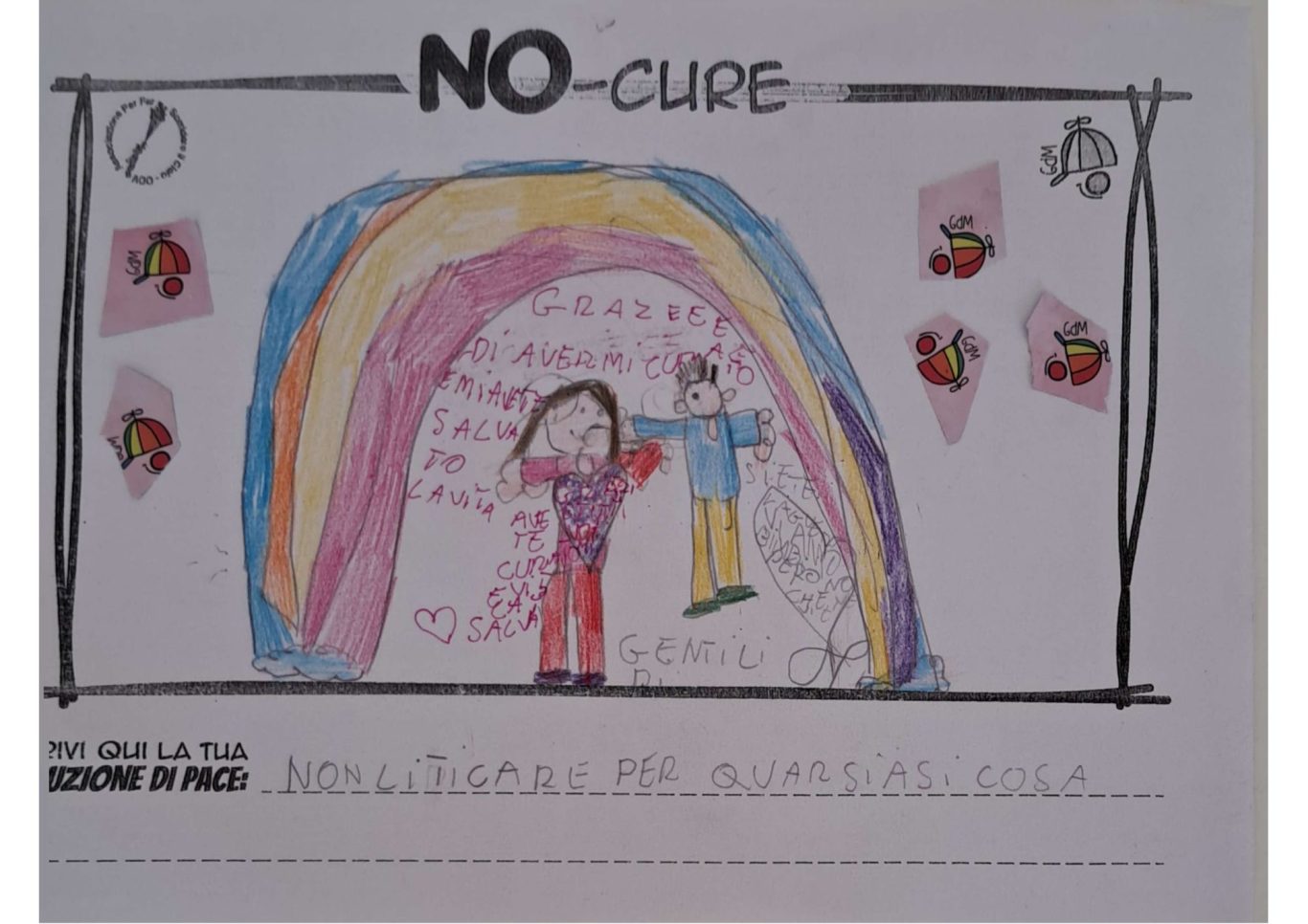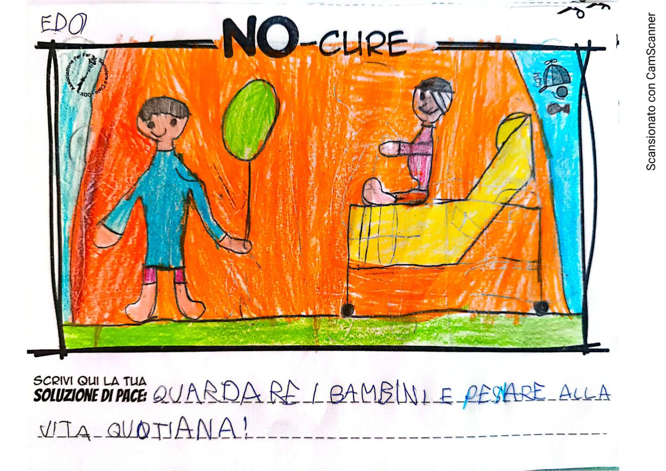L’opera di sensibilizzazione si si esprime concretamente con la creazione di un DISEGNO DELLA MERAVIGLIA che andrà ad aiutare una delle 12 fatiche. Allo stesso modo chiederemo a tutti i partecipanti di andare a scrivere una “Soluzione di Pace” che possa aiutare anch’essa una delle 12 fatiche dei Bambini della guerra.