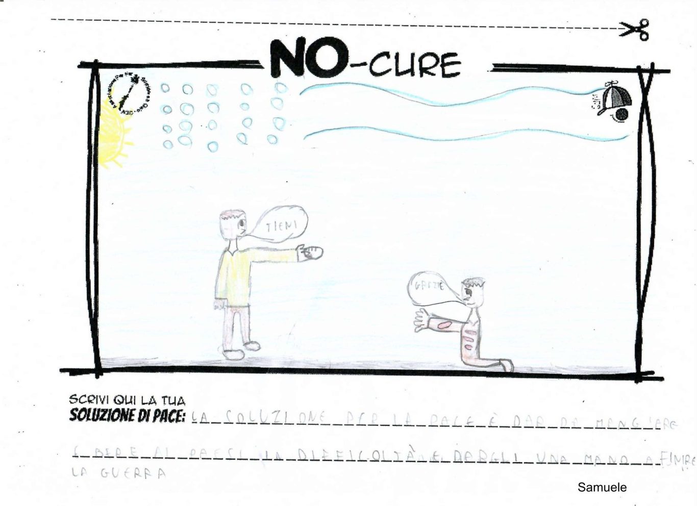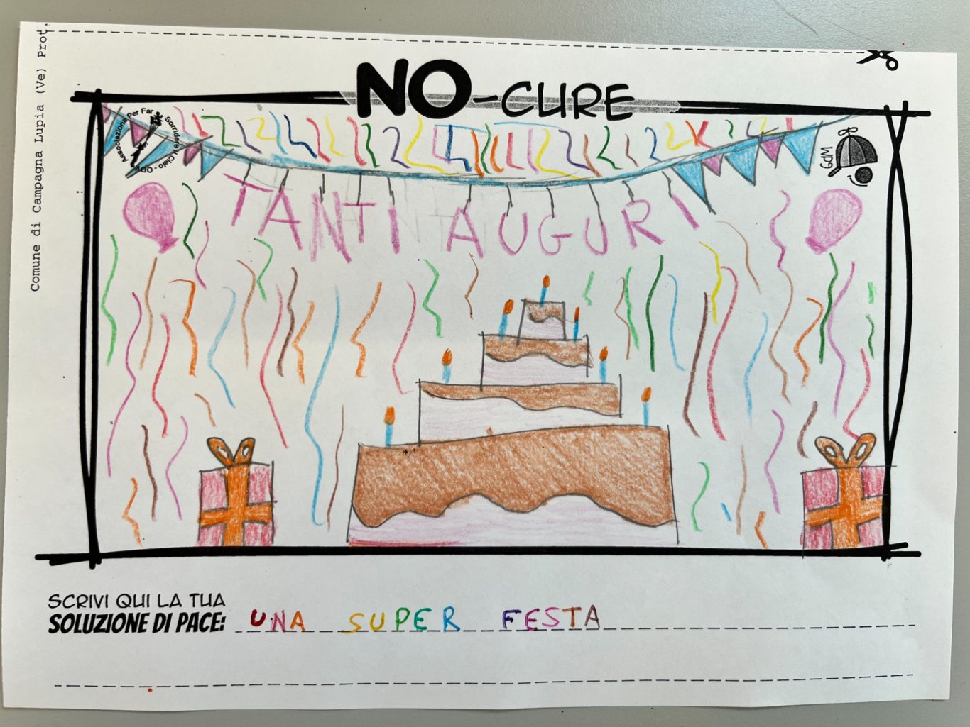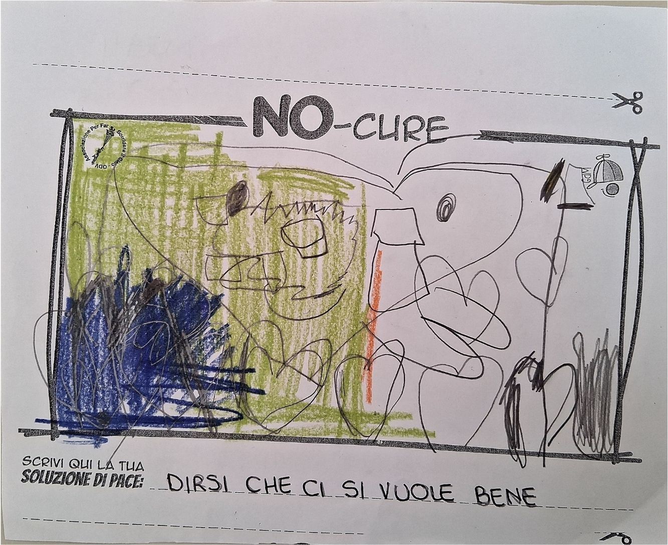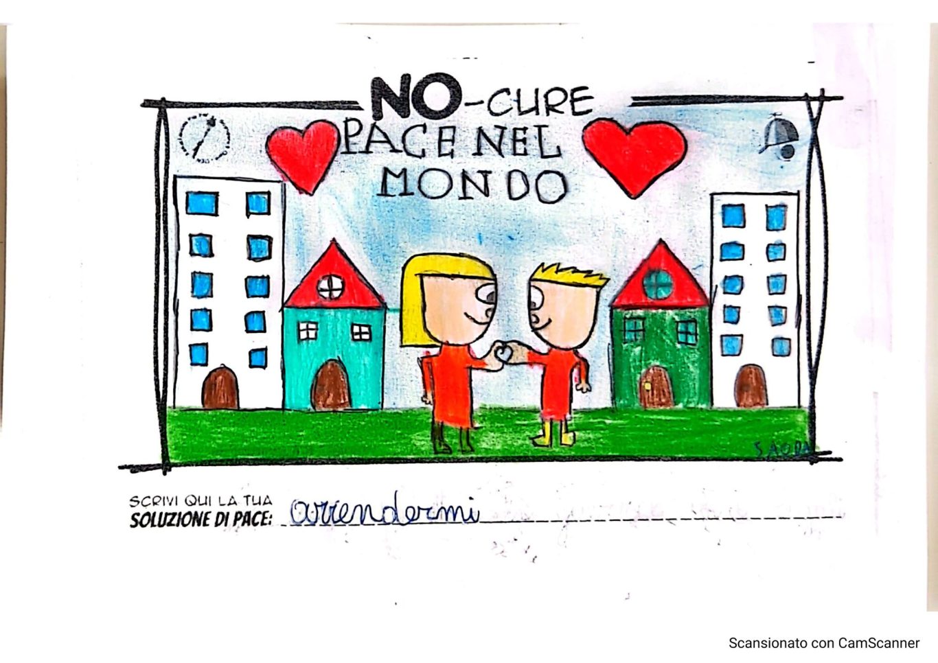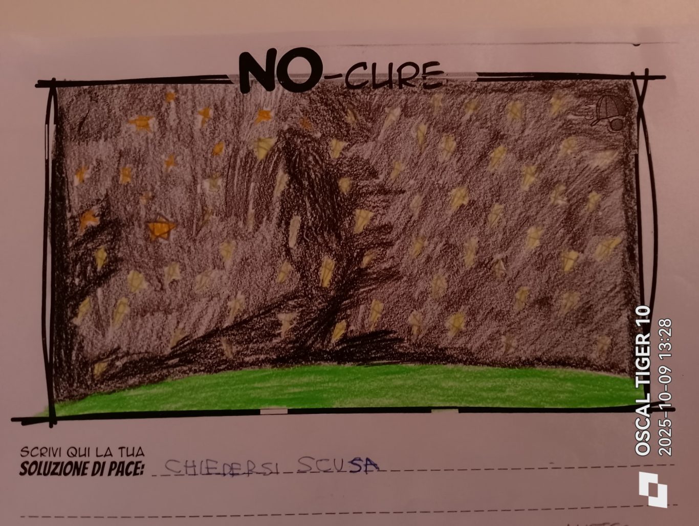 L’opera di sensibilizzazione si si esprime concretamente con la creazione di un DISEGNO DELLA MERAVIGLIA che andrà ad aiutare una delle 12 fatiche. Allo stesso modo chiederemo a tutti i partecipanti di andare a scrivere una “Soluzione di Pace” che possa aiutare anch’essa una delle 12 fatiche dei Bambini della guerra.