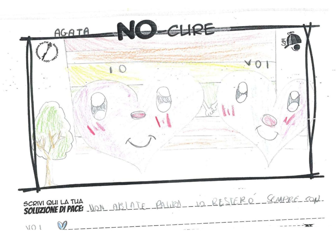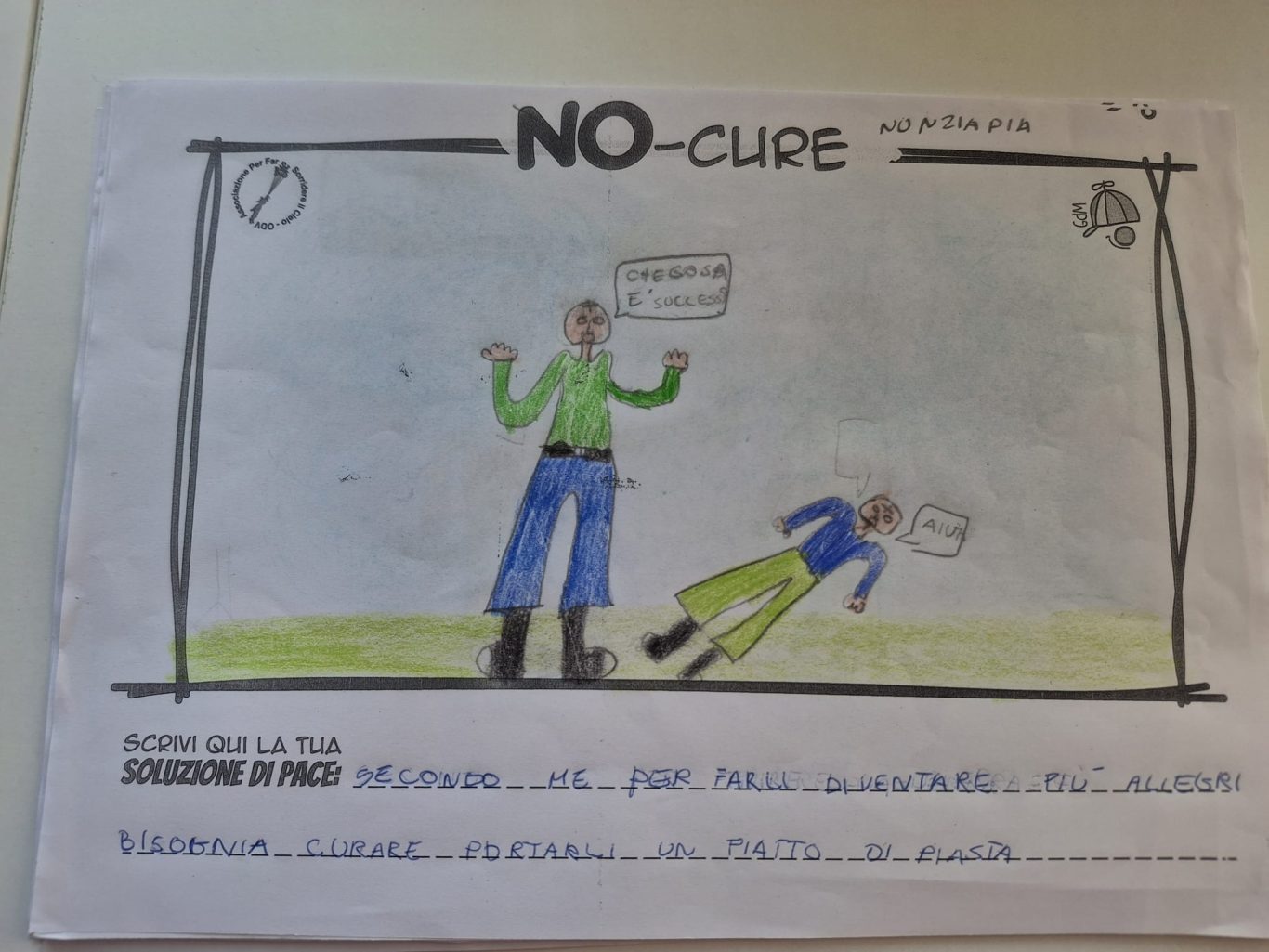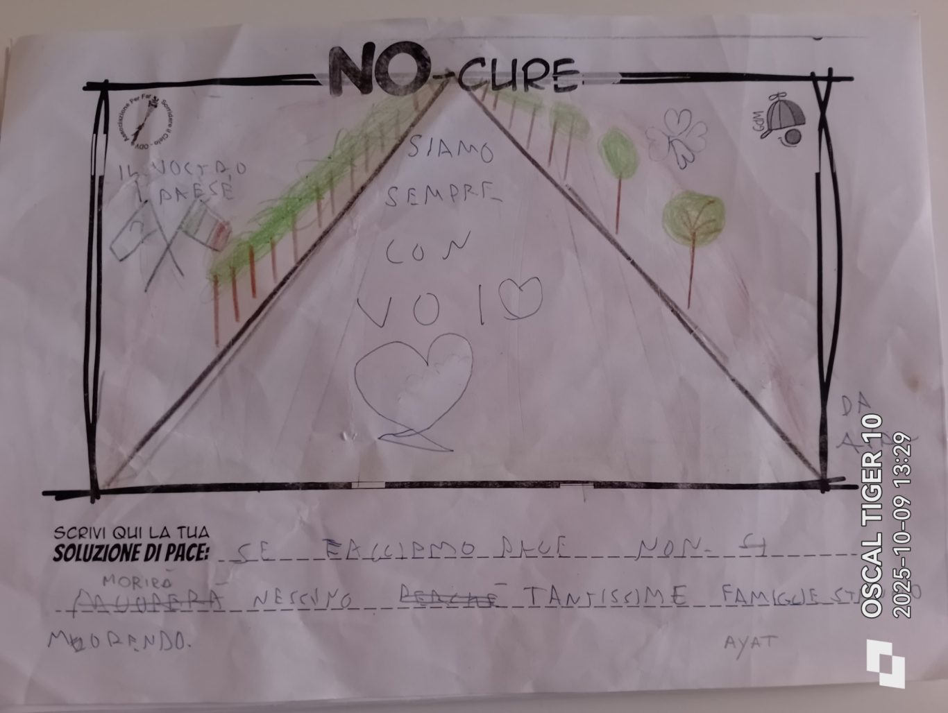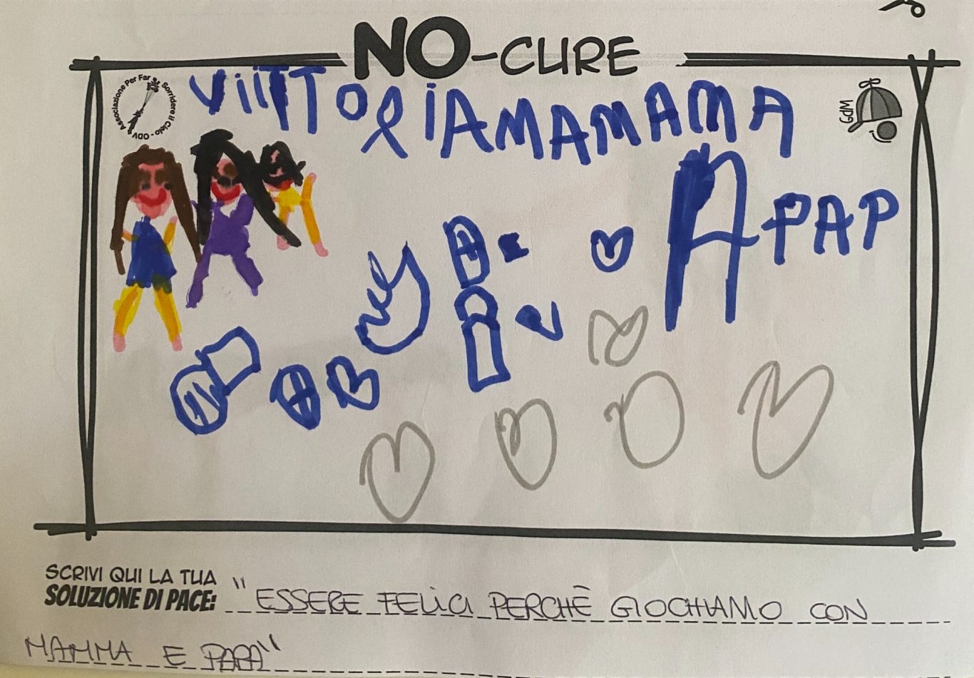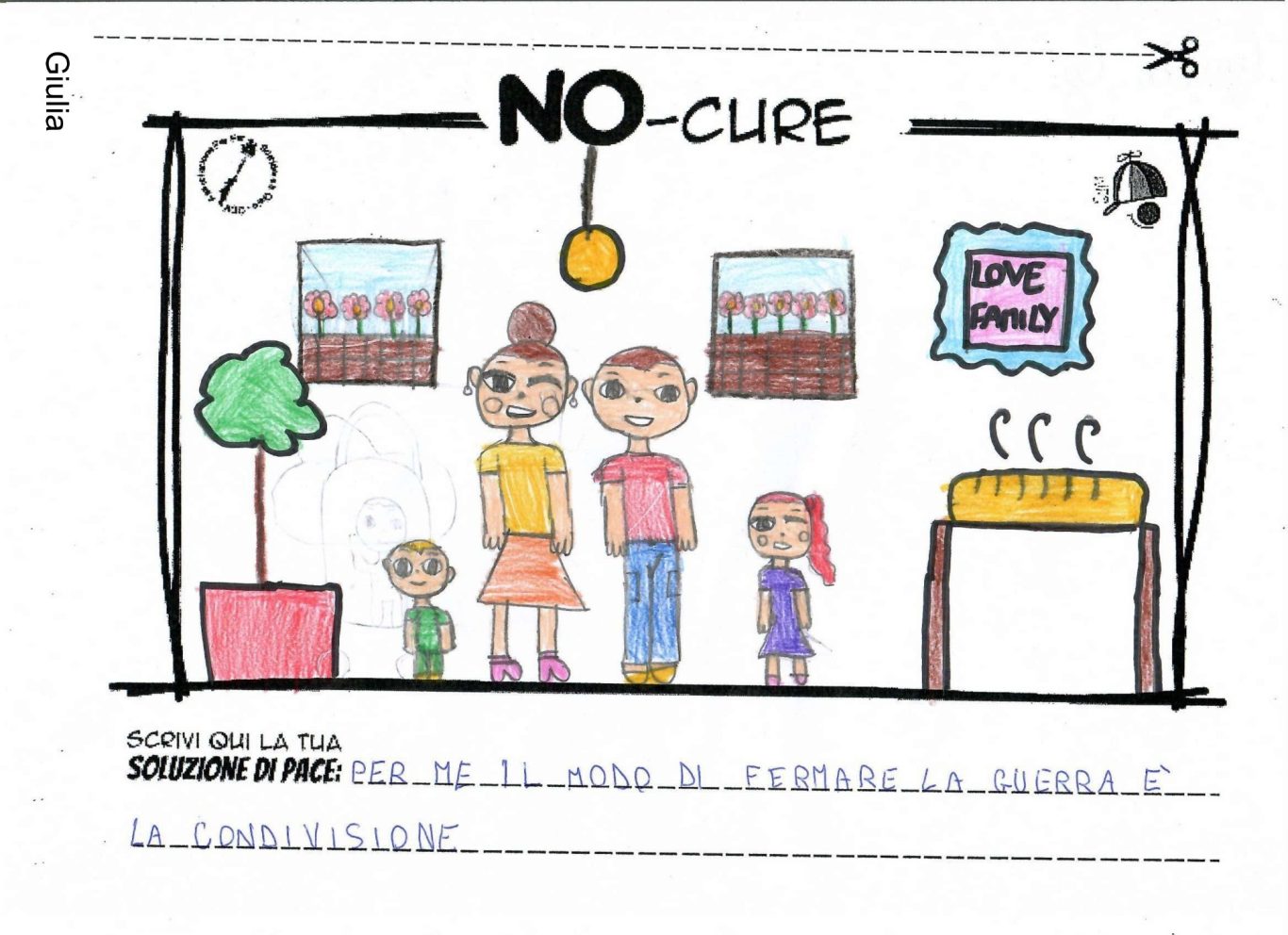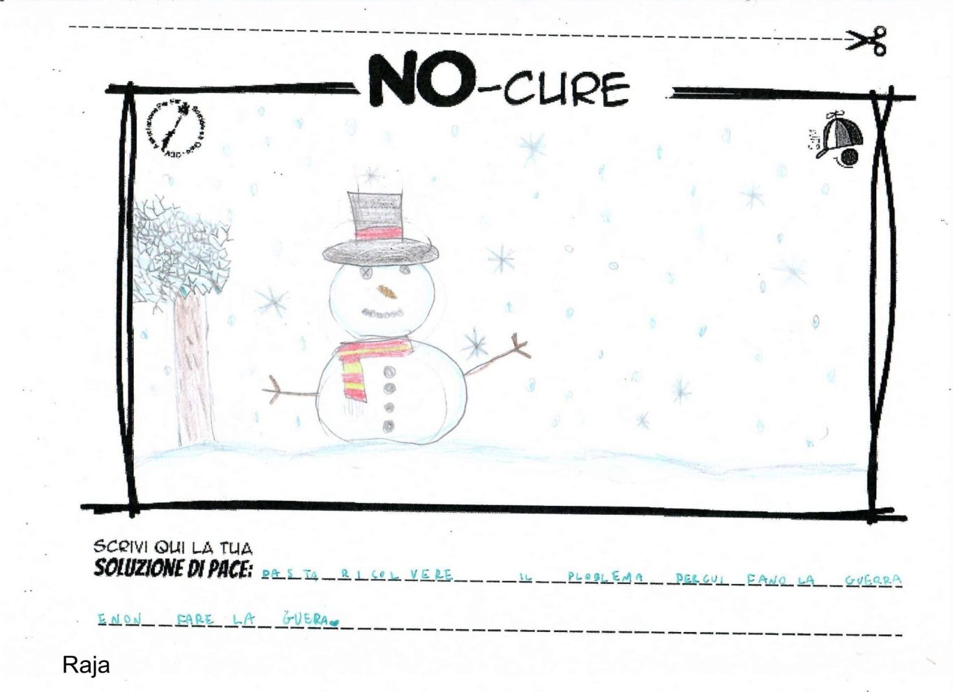 L’opera di sensibilizzazione si si esprime concretamente con la creazione di un DISEGNO DELLA MERAVIGLIA che andrà ad aiutare una delle 12 fatiche. Allo stesso modo chiederemo a tutti i partecipanti di andare a scrivere una “Soluzione di Pace” che possa aiutare anch’essa una delle 12 fatiche dei Bambini della guerra.