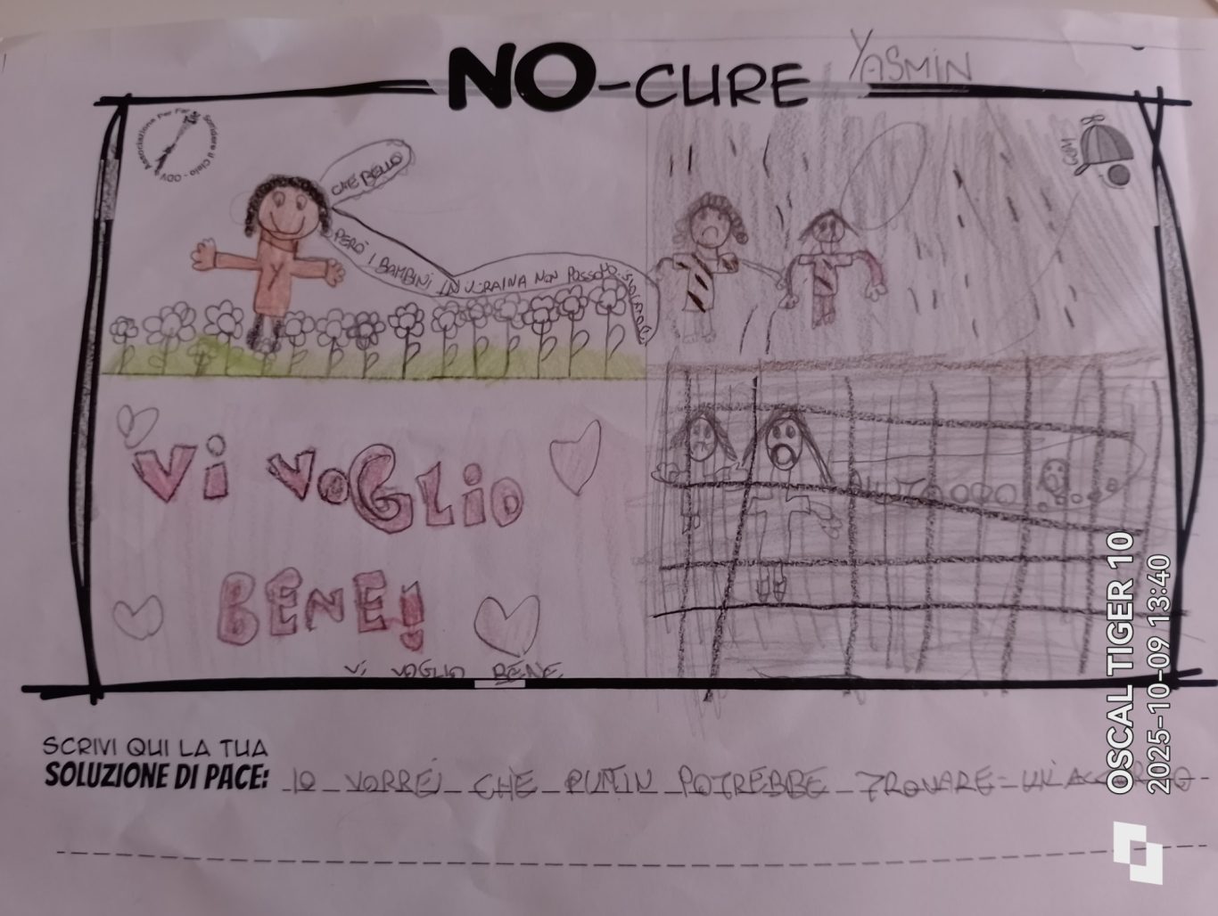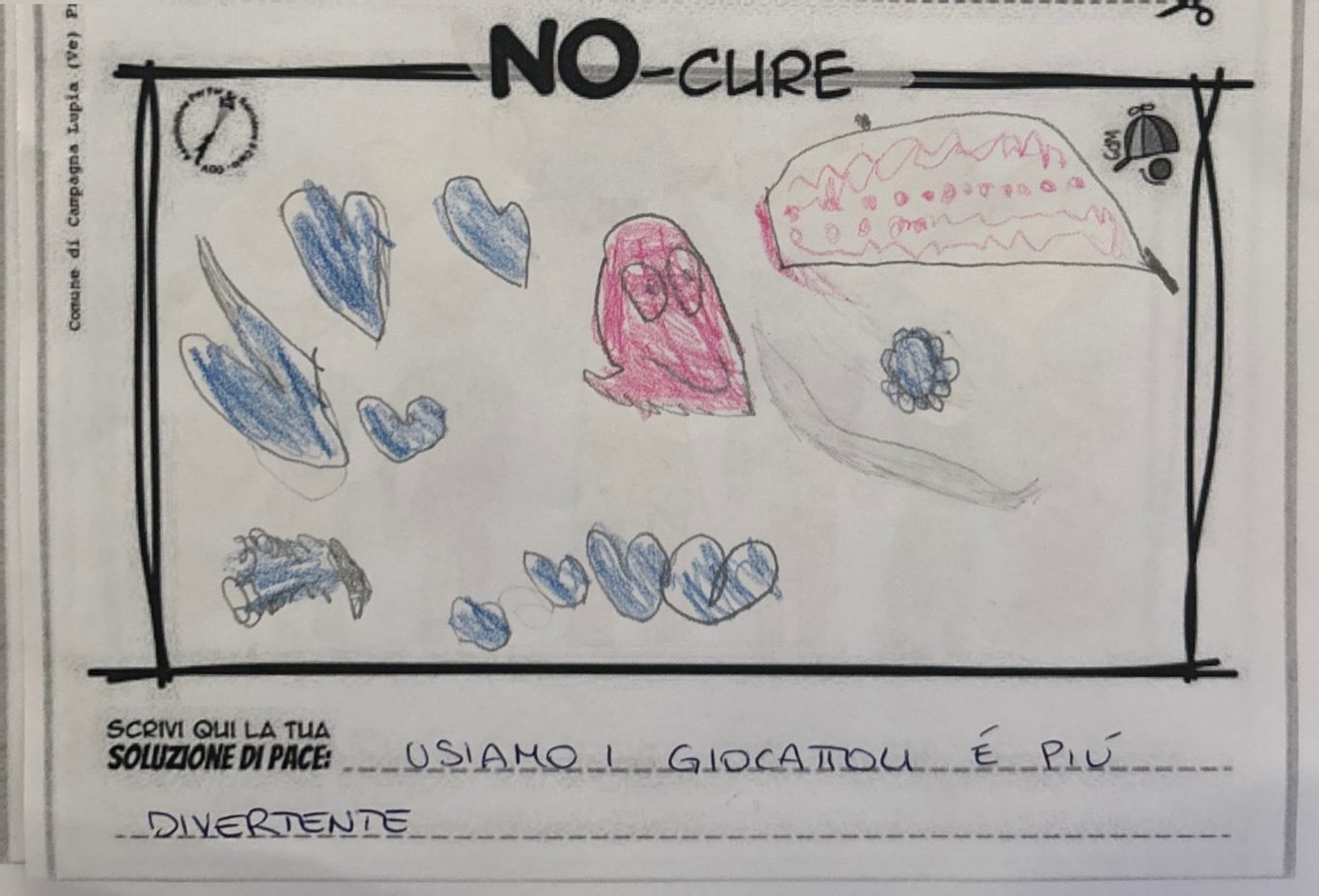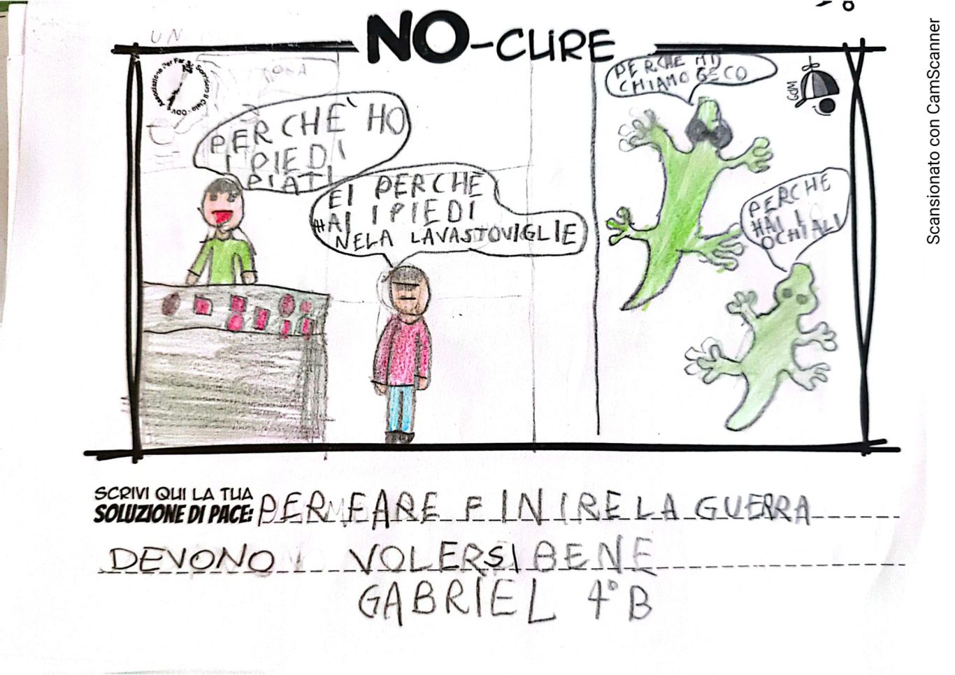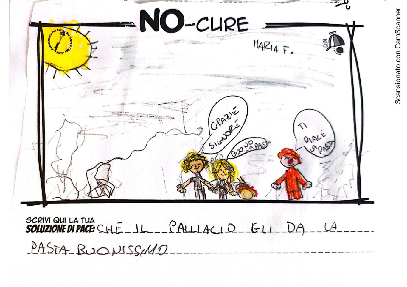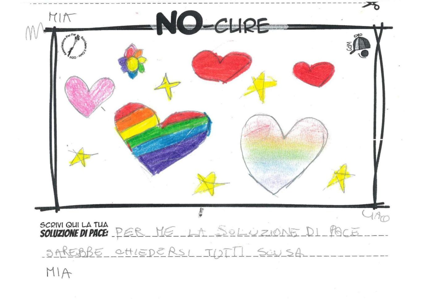 L’opera di sensibilizzazione si si esprime concretamente con la creazione di un DISEGNO DELLA MERAVIGLIA che andrà ad aiutare una delle 12 fatiche. Allo stesso modo chiederemo a tutti i partecipanti di andare a scrivere una “Soluzione di Pace” che possa aiutare anch’essa una delle 12 fatiche dei Bambini della guerra.