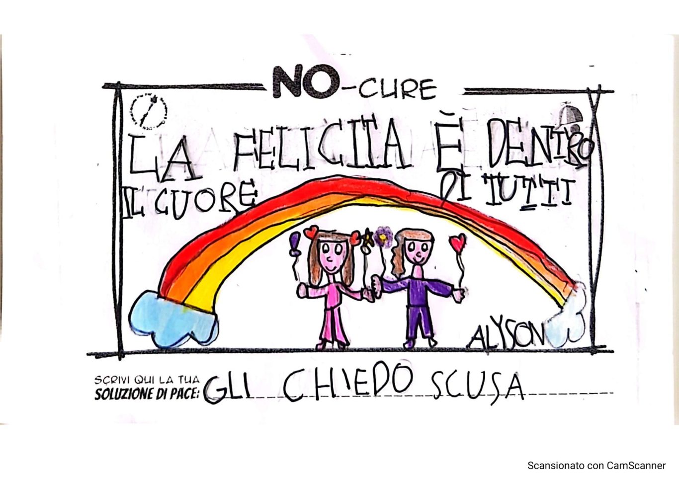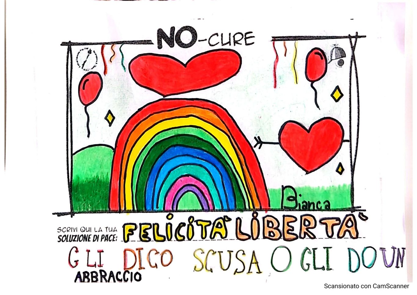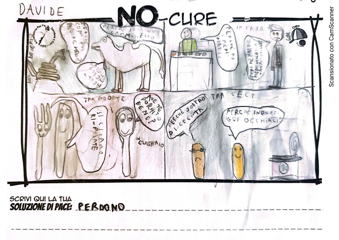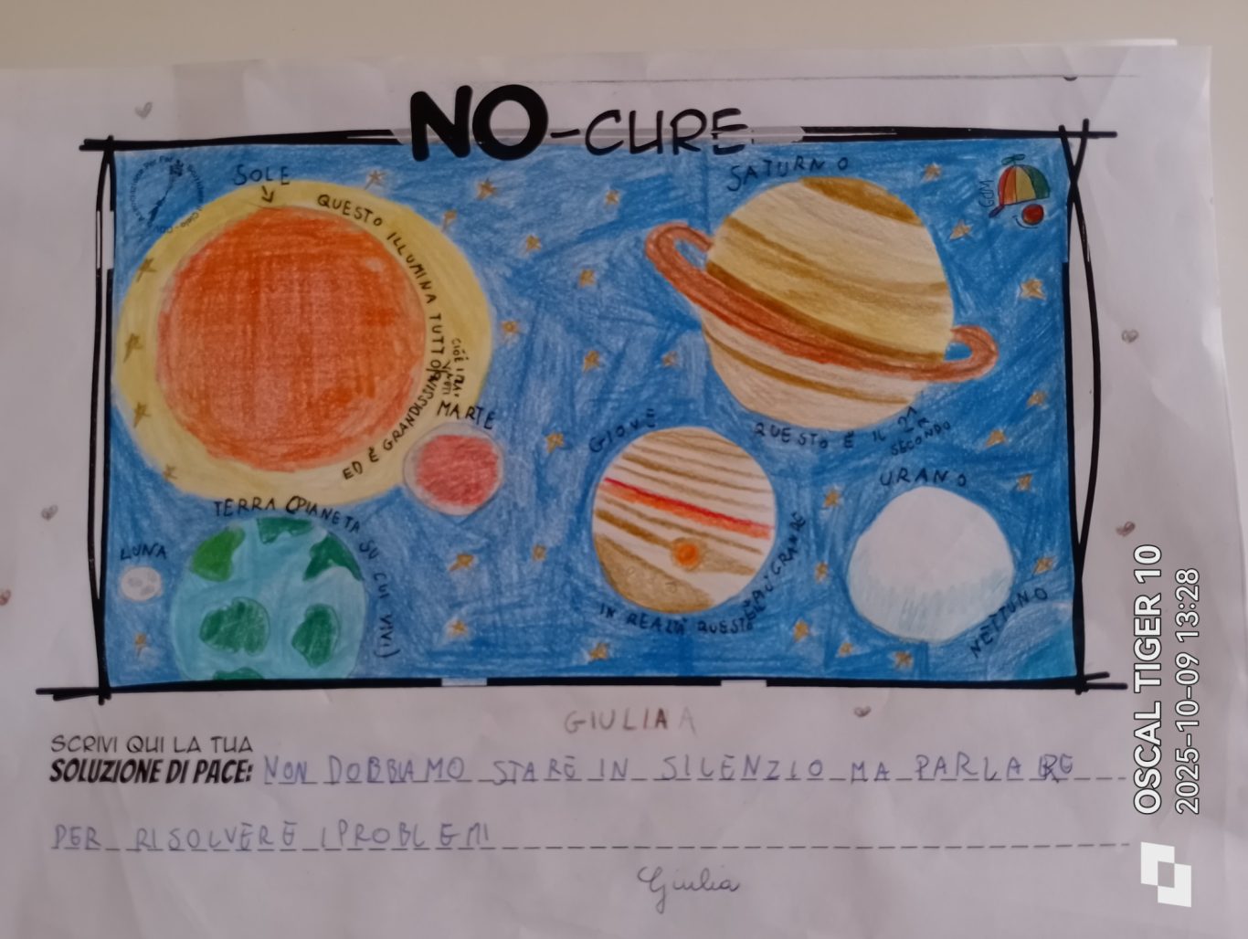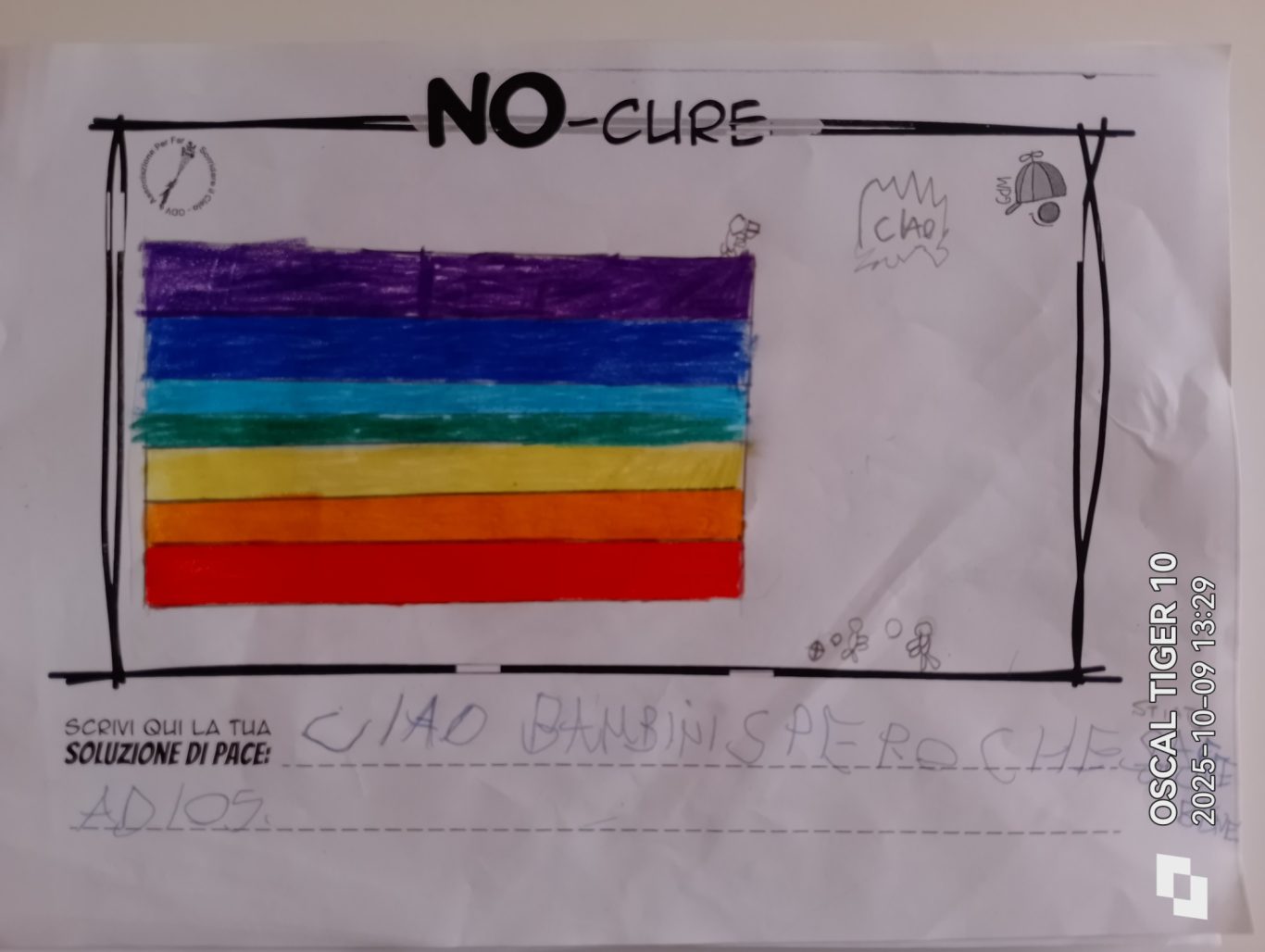 L’opera di sensibilizzazione si si esprime concretamente con la creazione di un DISEGNO DELLA MERAVIGLIA che andrà ad aiutare una delle 12 fatiche. Allo stesso modo chiederemo a tutti i partecipanti di andare a scrivere una “Soluzione di Pace” che possa aiutare anch’essa una delle 12 fatiche dei Bambini della guerra.