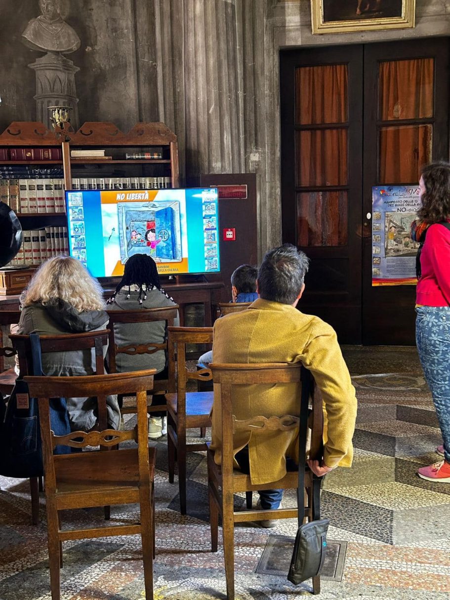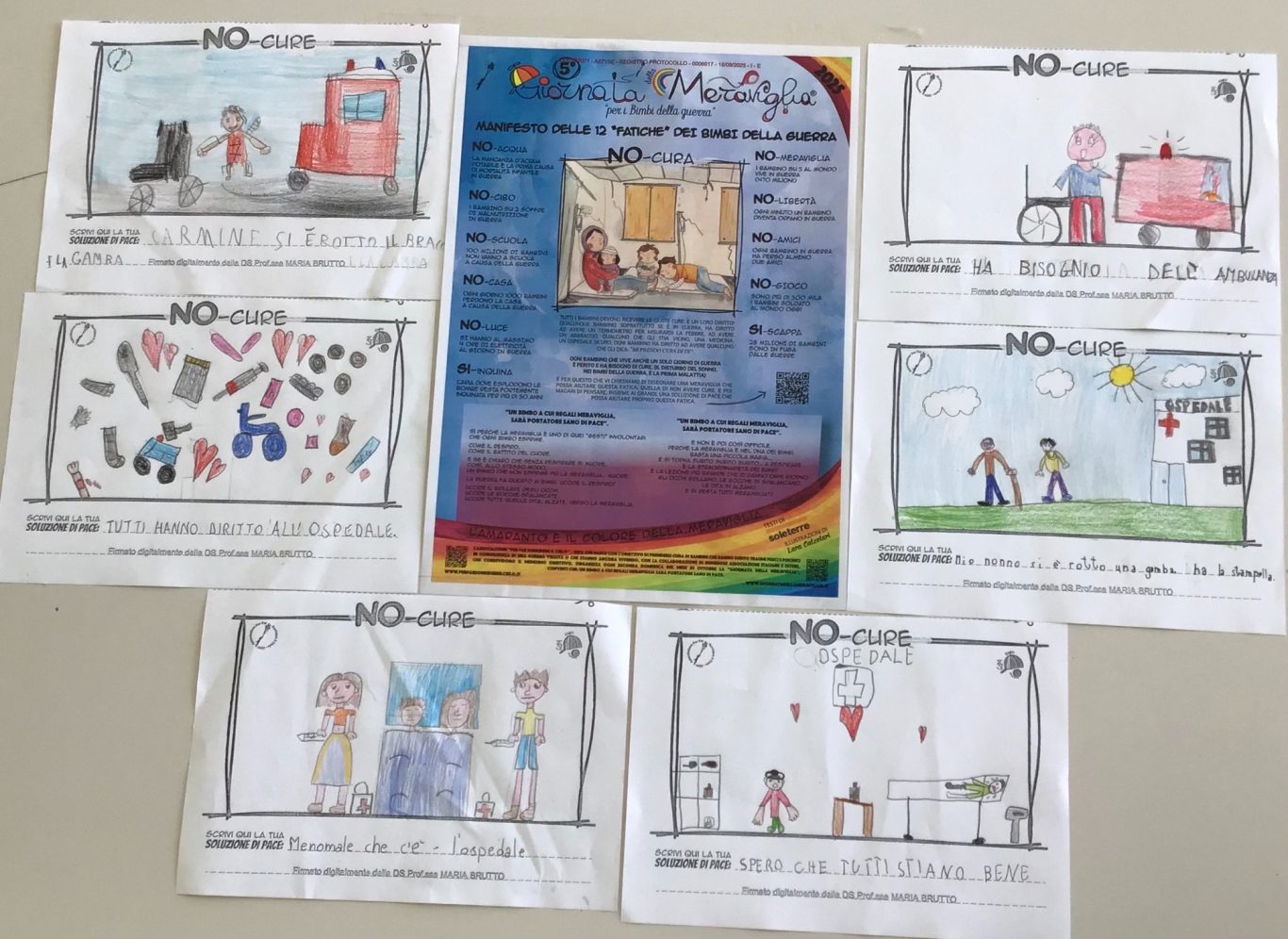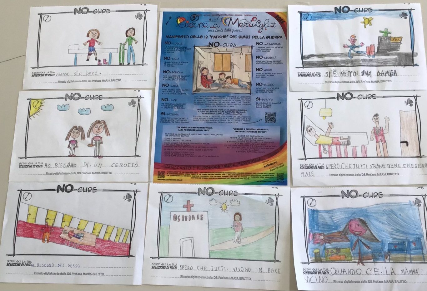 Il Manifesto delle 12 Fatiche dei Bimbi della guerra è lo “strumento” che utilizziamo, specialmente in Italia, per sensibilizzare tutti i partecipanti alle giornate, in particolar modo i bambini, sulle fatiche che vivono Bimbi e Bimbe (420 MILIONI) a causa della guerra.