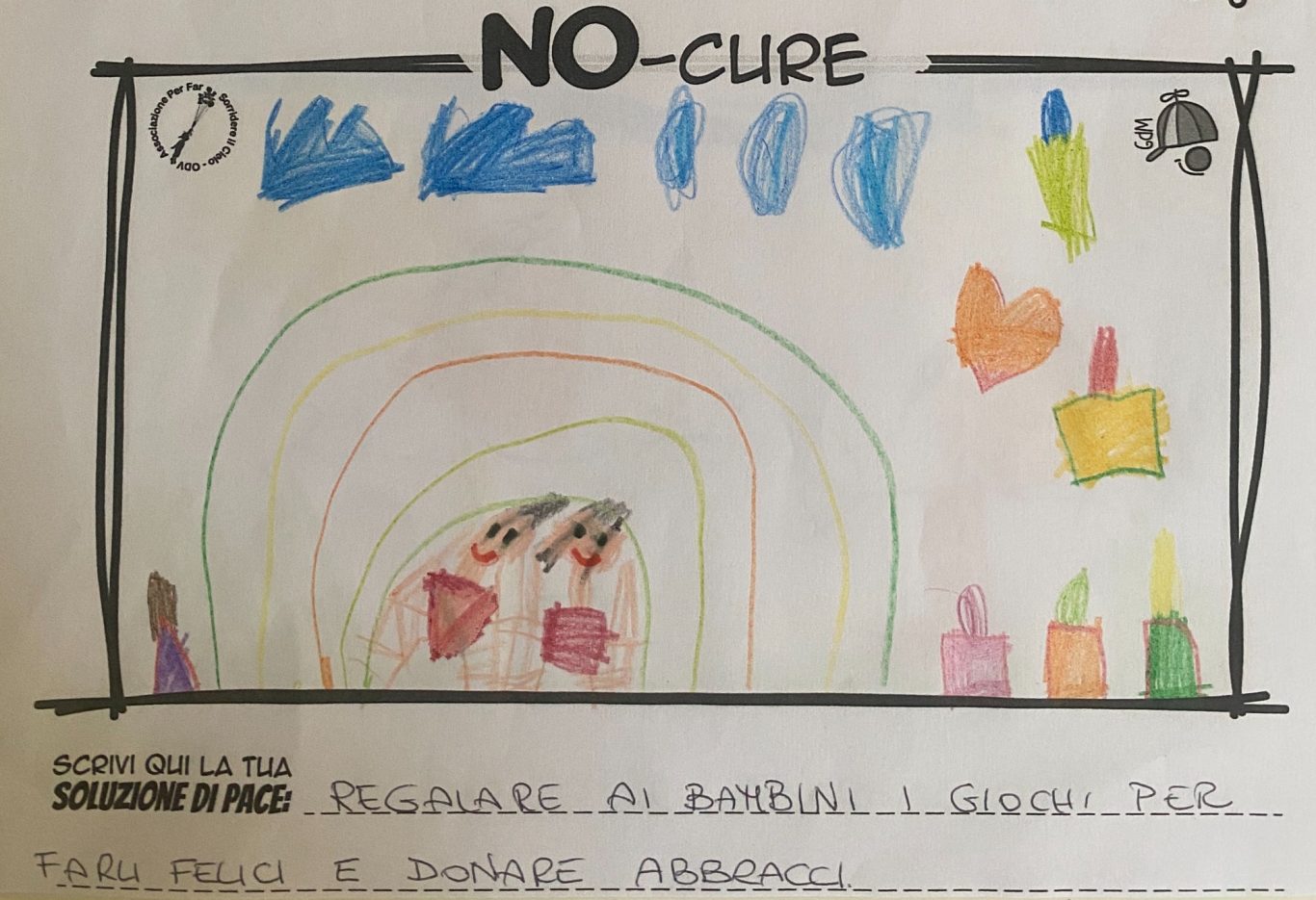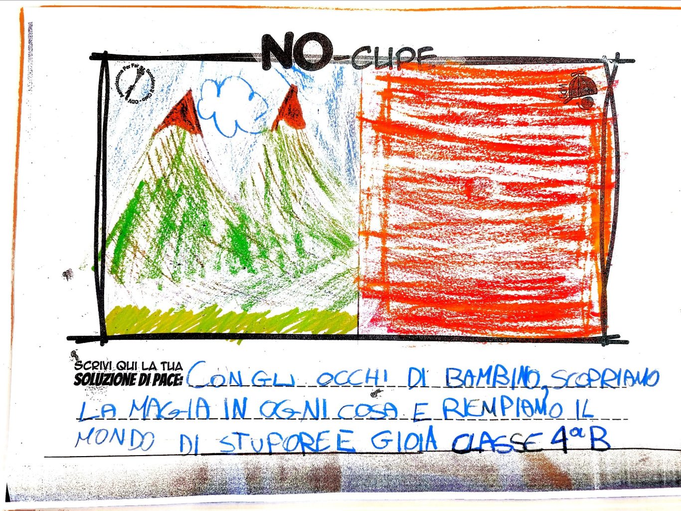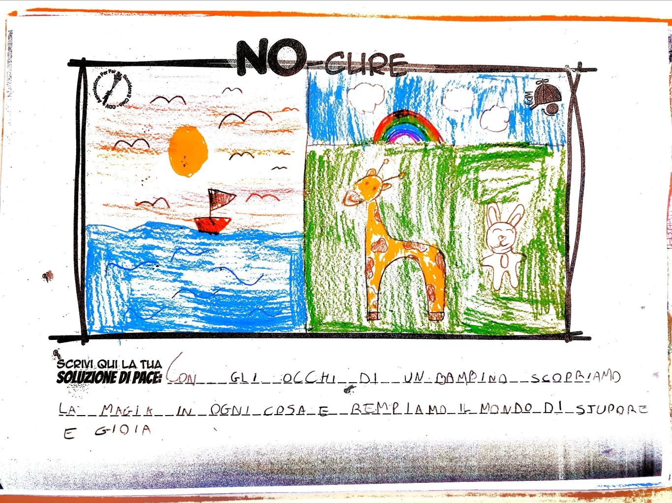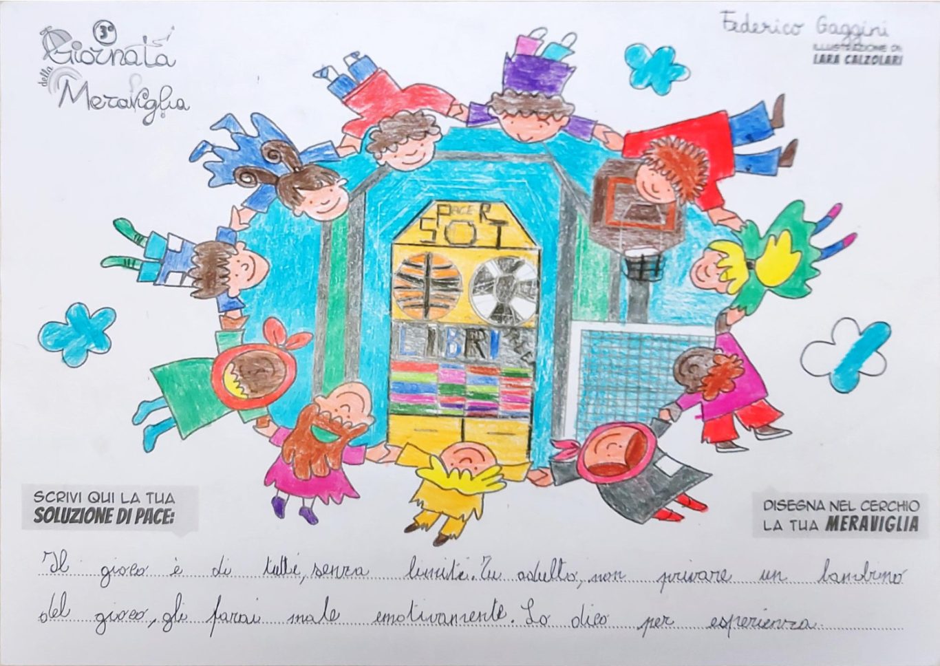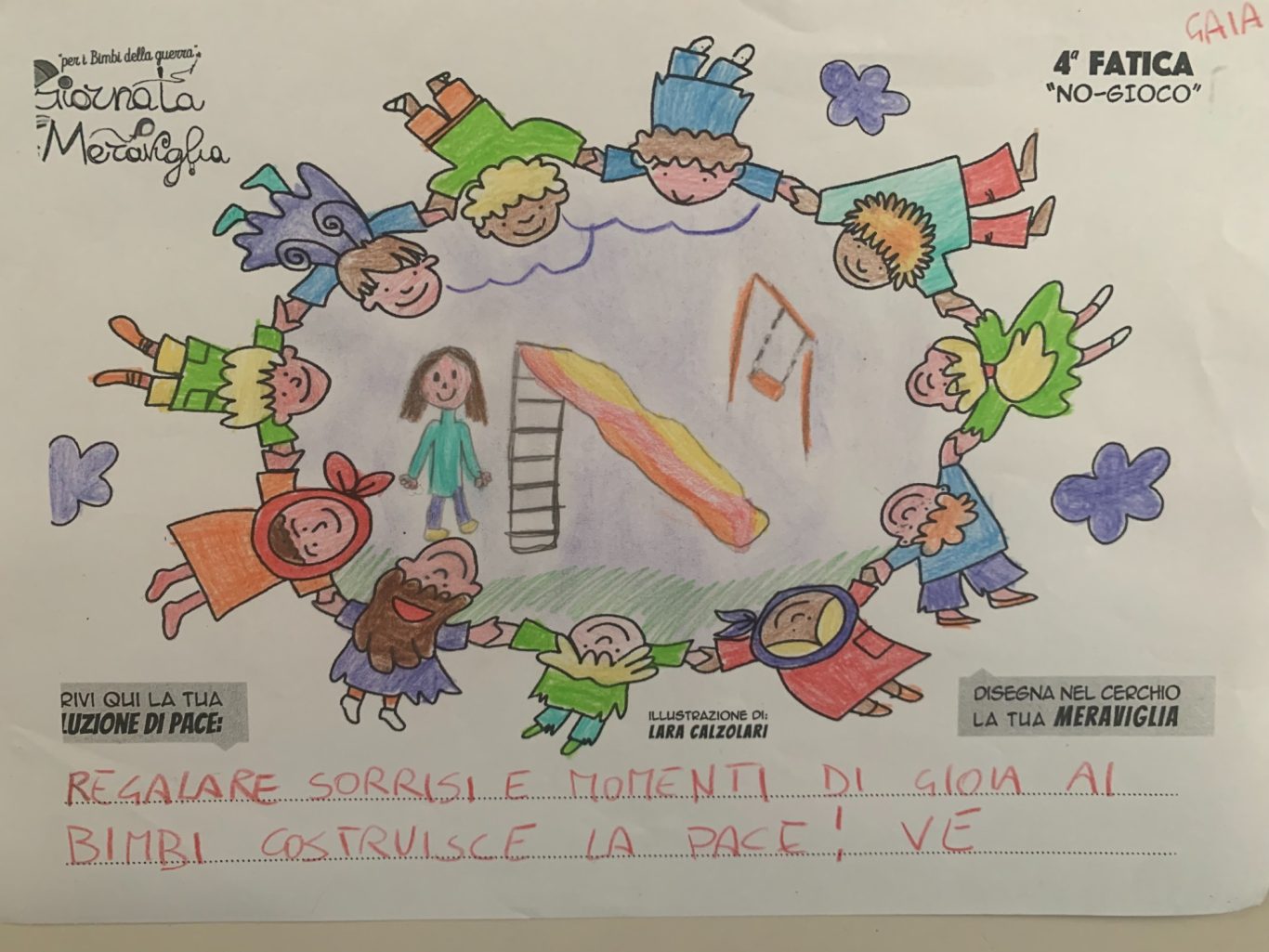 Tener viva la Meraviglia del Bambino fa sì che egli stesso possa andare oltre le macerie così da immaginare un mondo quantomeno diverso, alternativo alla desolata distruzione che quotidianamente lo circonda, convinti che un Bimbo a cui regali meraviglia, diventa portatore sano di Pace.