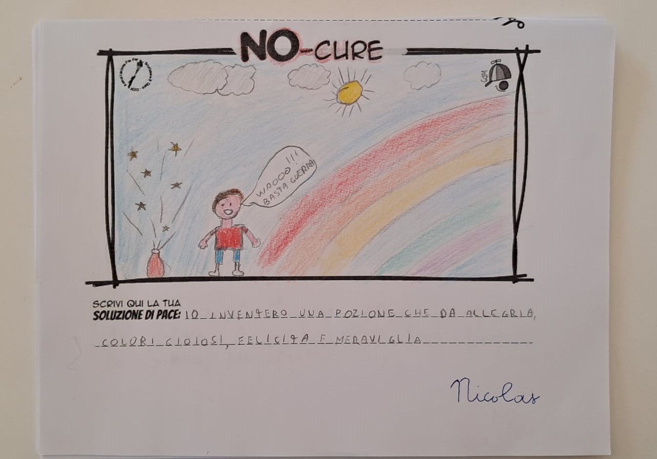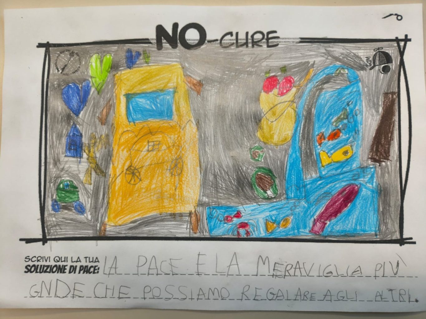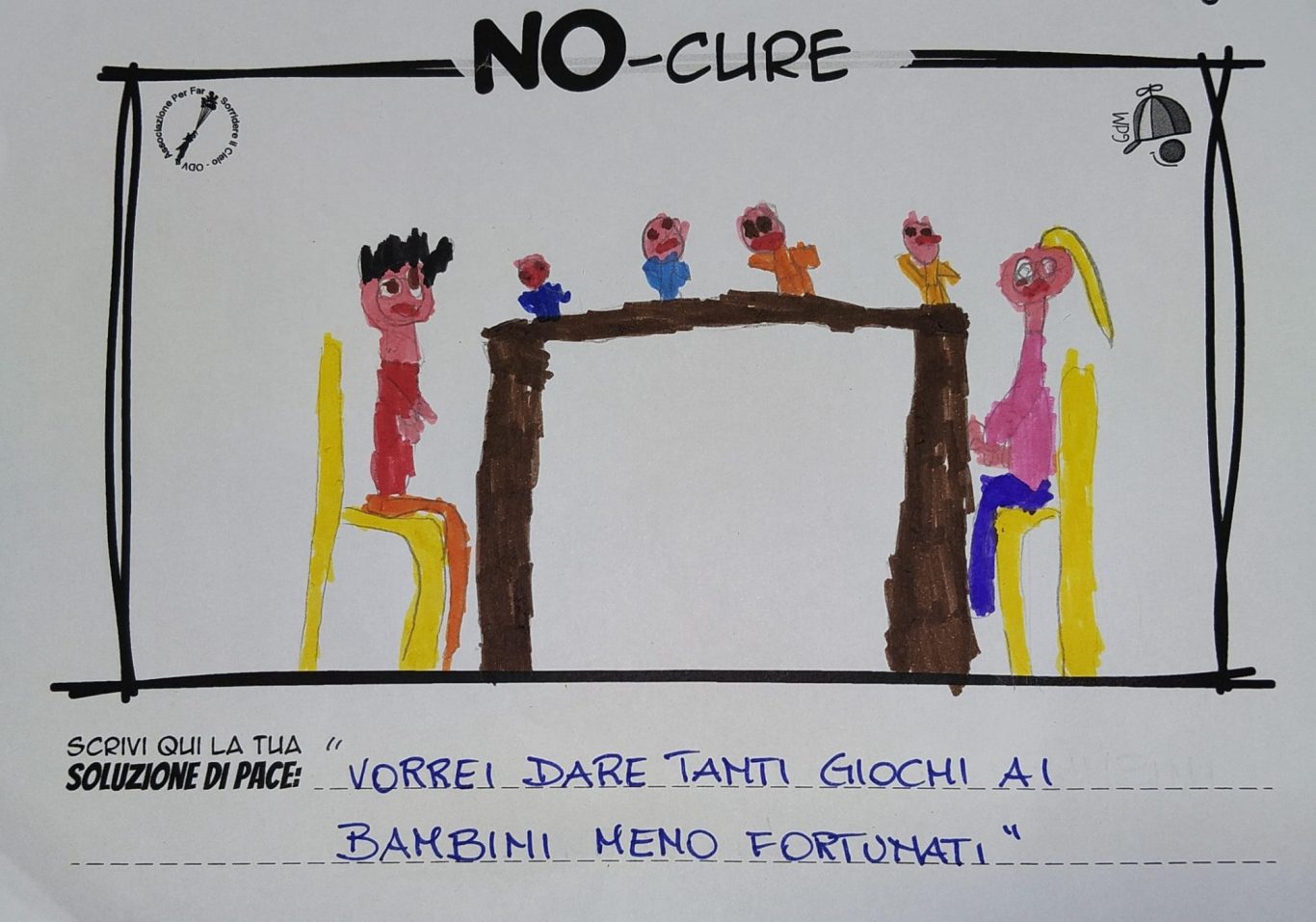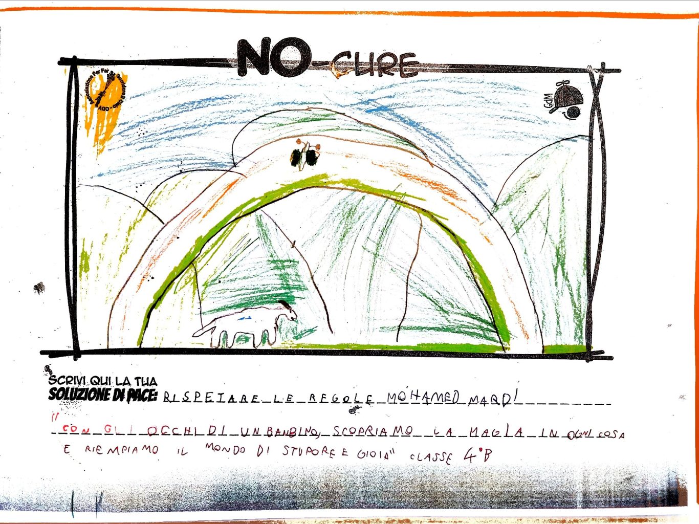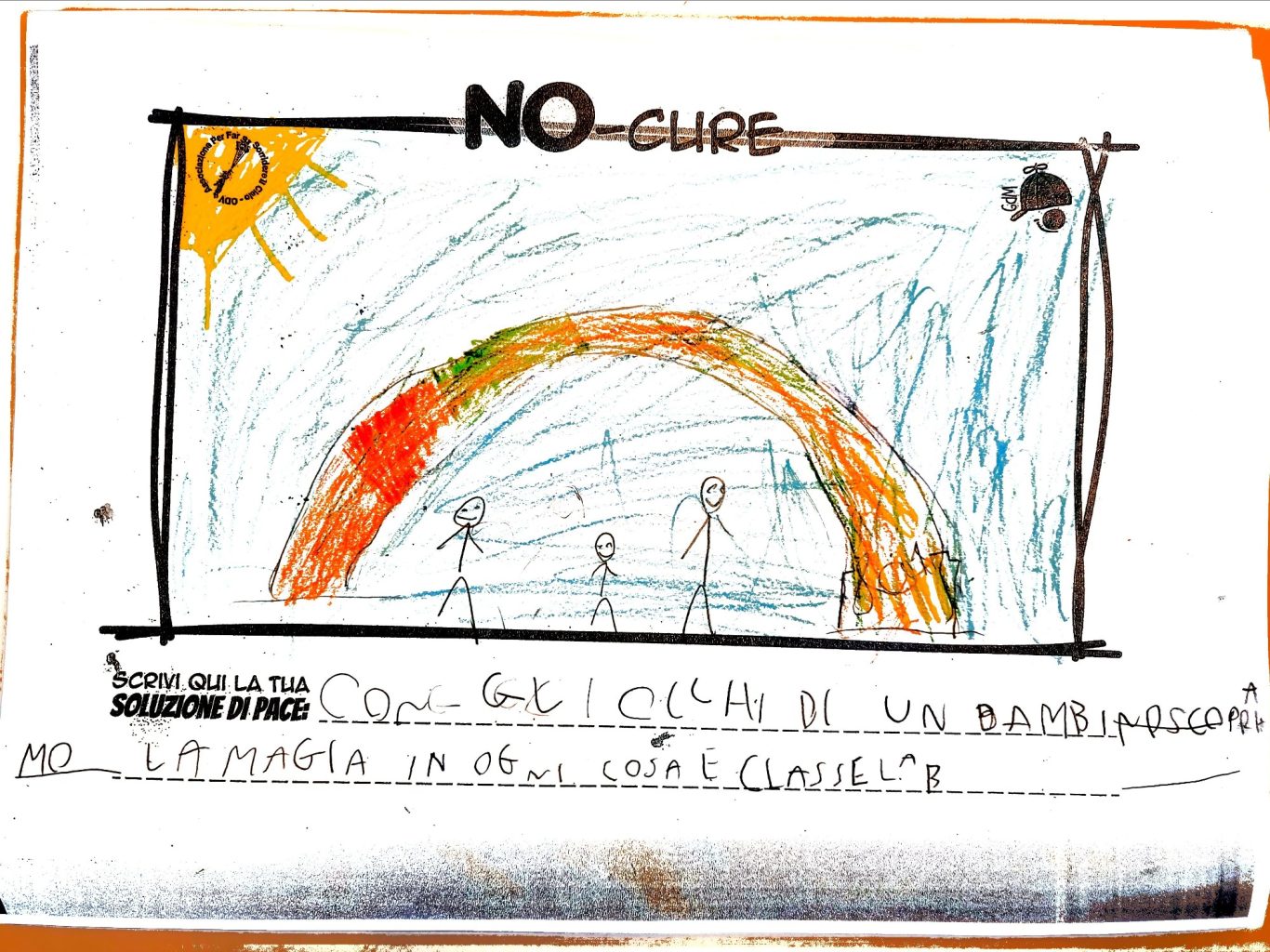 Tener viva la Meraviglia del Bambino fa sì che egli stesso possa andare oltre le macerie così da immaginare un mondo quantomeno diverso, alternativo alla desolata distruzione che quotidianamente lo circonda, convinti che un Bimbo a cui regali meraviglia, diventa portatore sano di Pace.