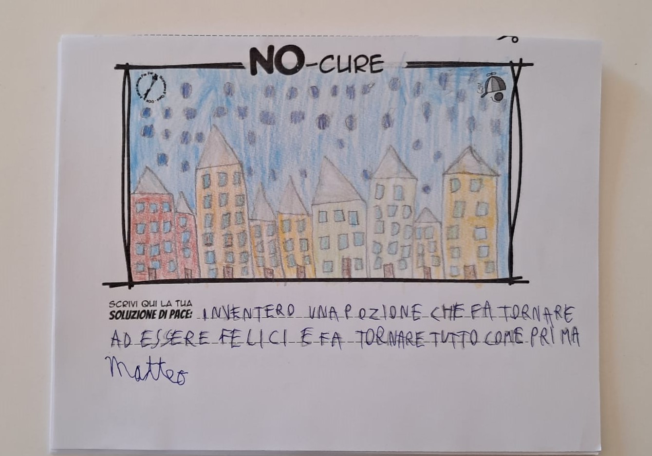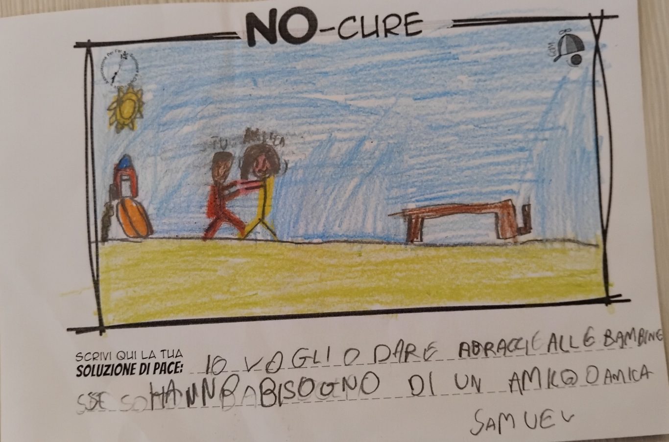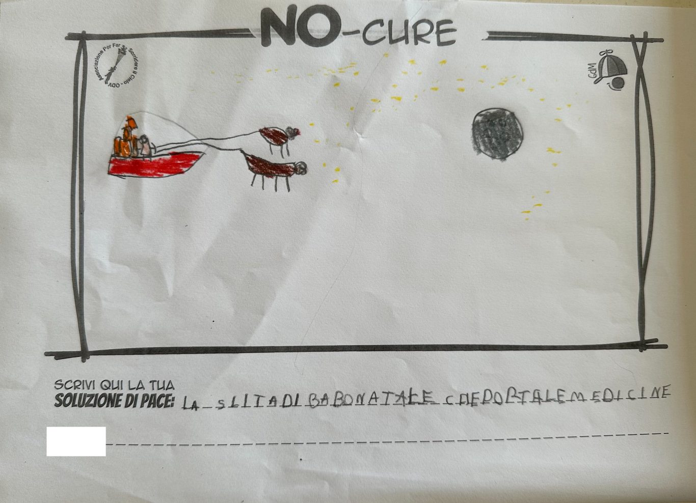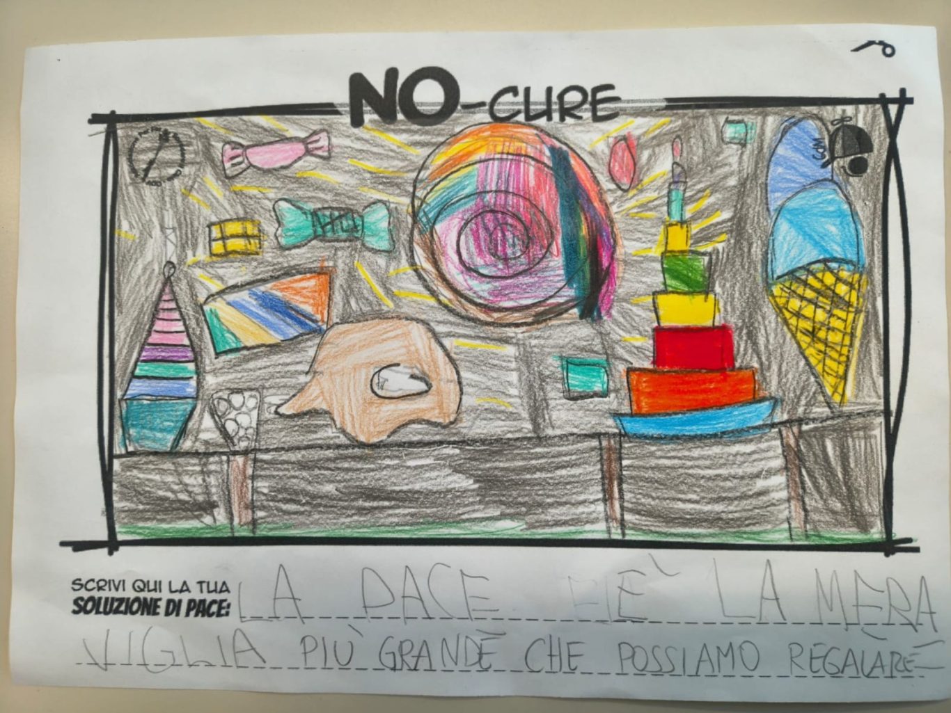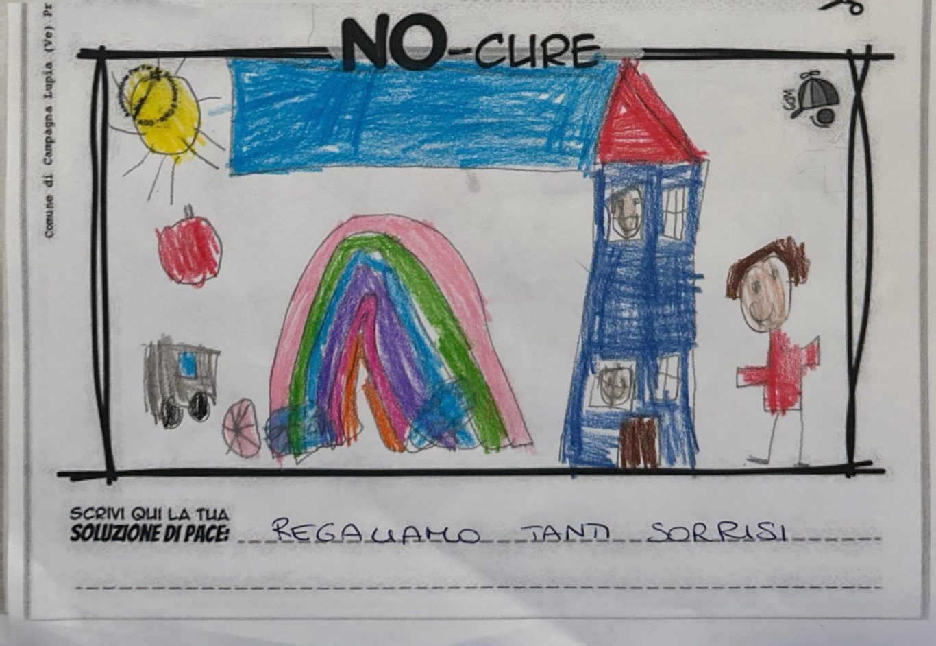 Tener viva la Meraviglia del Bambino fa sì che egli stesso possa andare oltre le macerie così da immaginare un mondo quantomeno diverso, alternativo alla desolata distruzione che quotidianamente lo circonda, convinti che un Bimbo a cui regali meraviglia, diventa portatore sano di Pace.