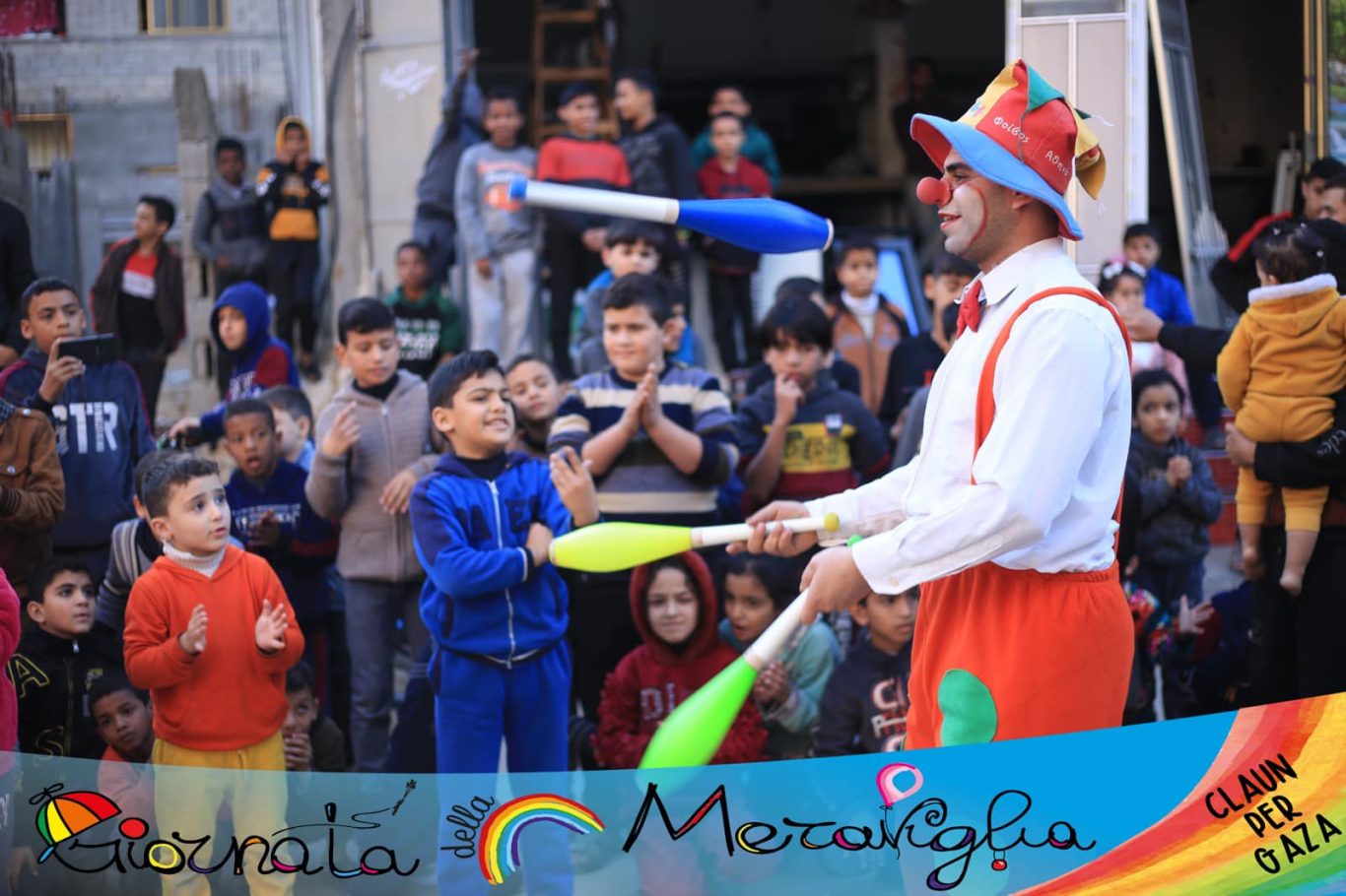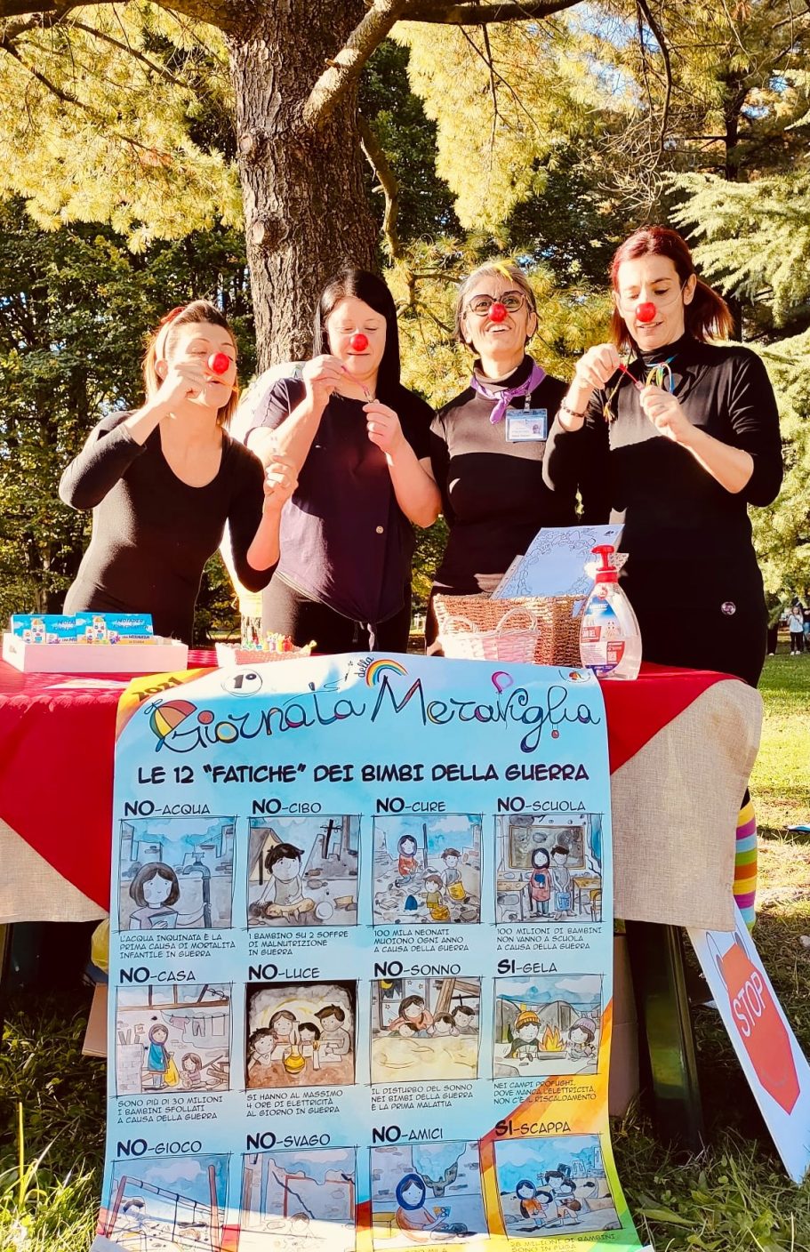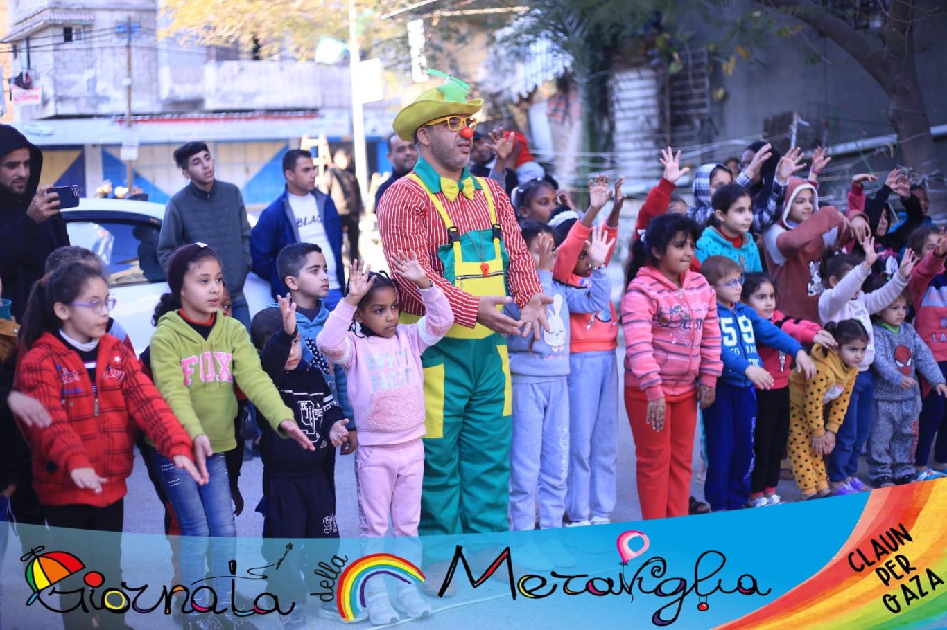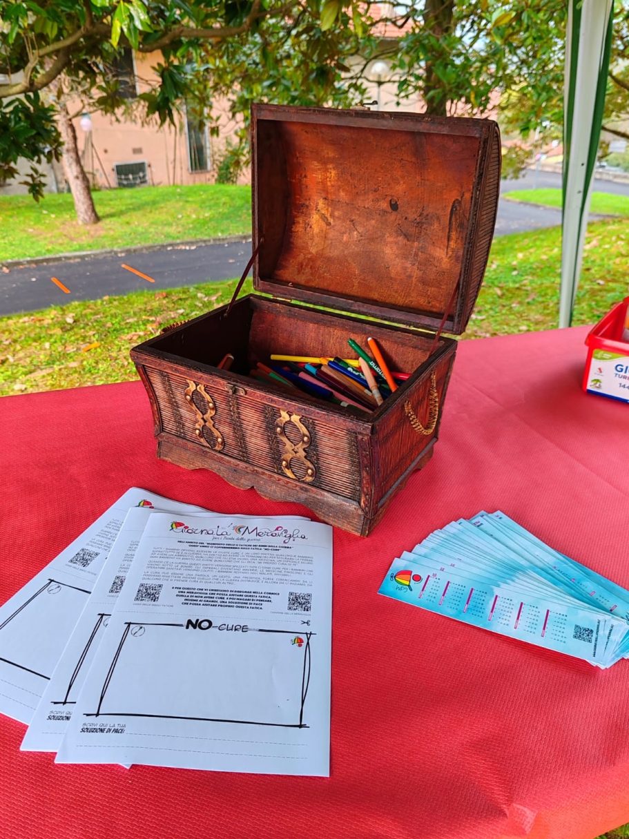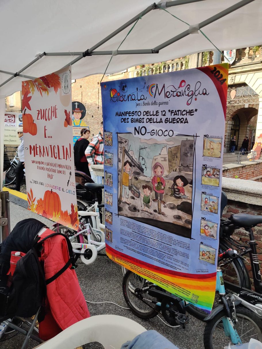 L’Associazione “Per far Sorridere il Cielo” – Claun il Pimpa – Odv, che nasce con l’obiettivo di prendersi cura di bambini che hanno subito traumi fisici e psichici in conseguenza di una guerra vissuta o che stanno ancora vivendo. Con la collaborazione di numerose associazioni italiane e estere, che condividono il medesimo obiettivo, organizza ogni seconda domenica del mese di ottobre la “Giornata della Meraviglia”.